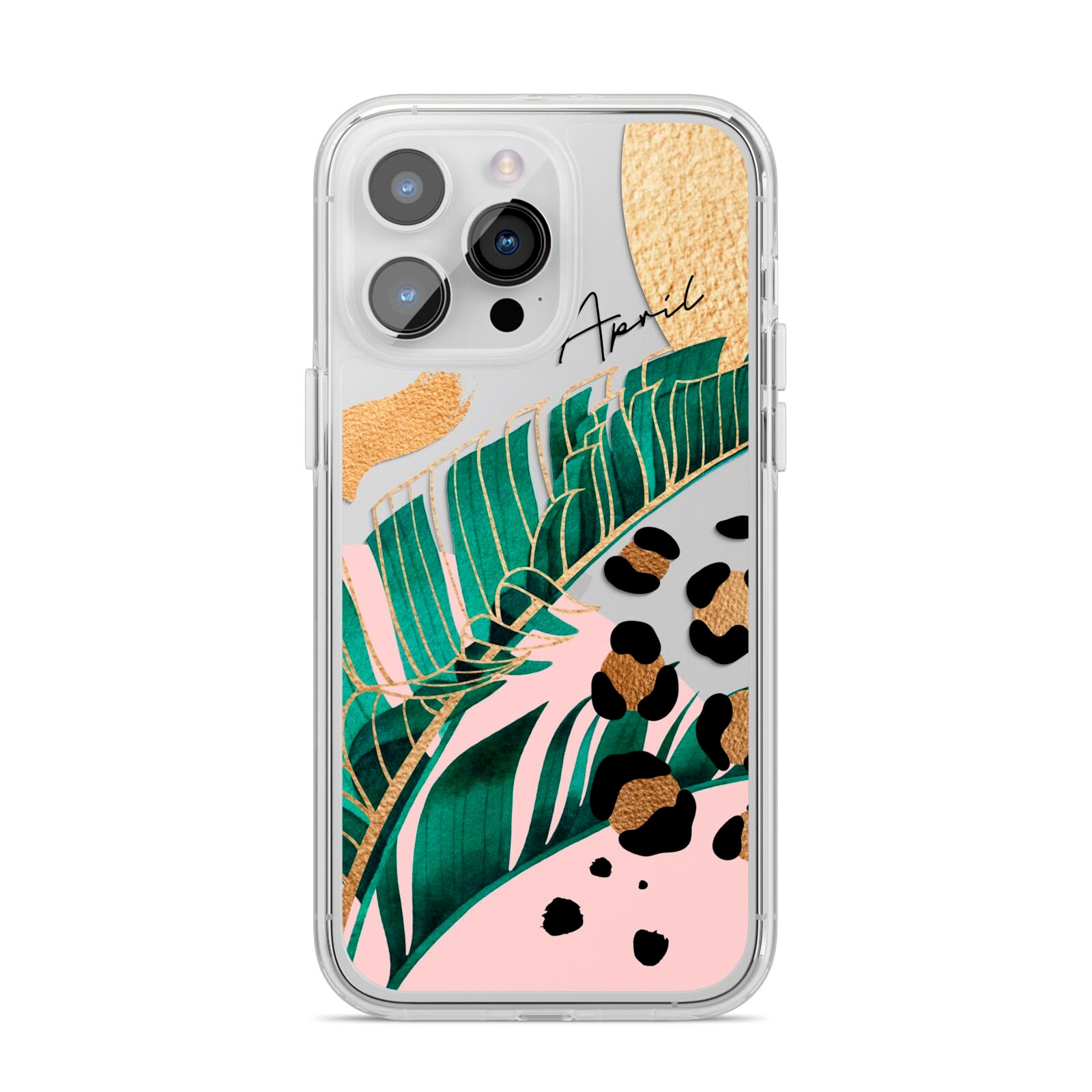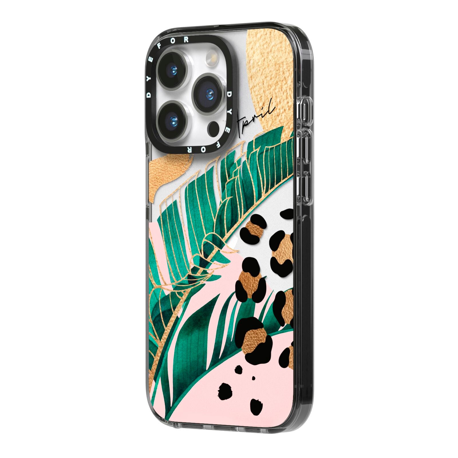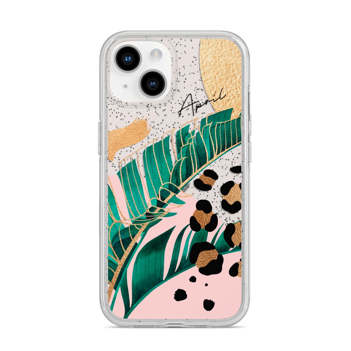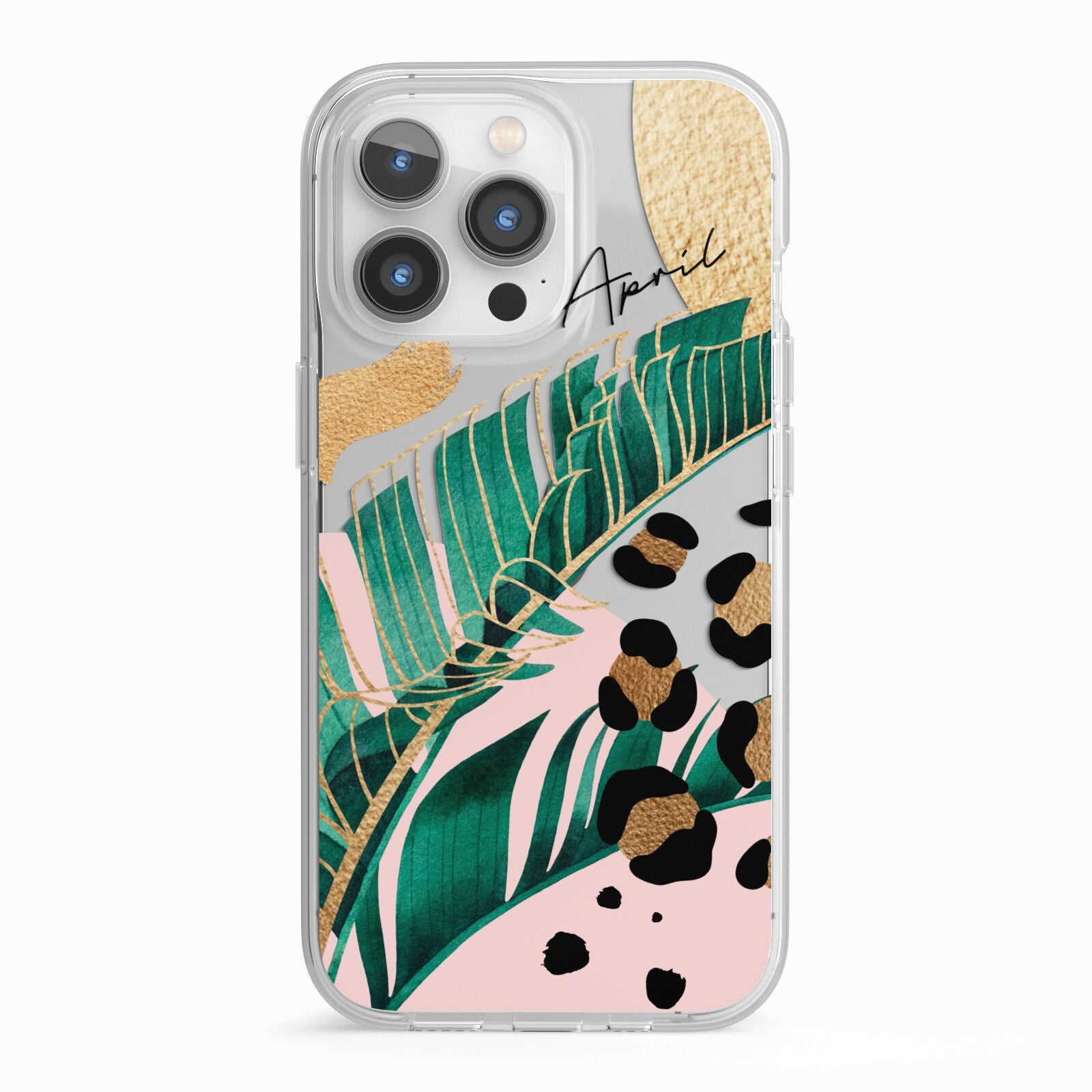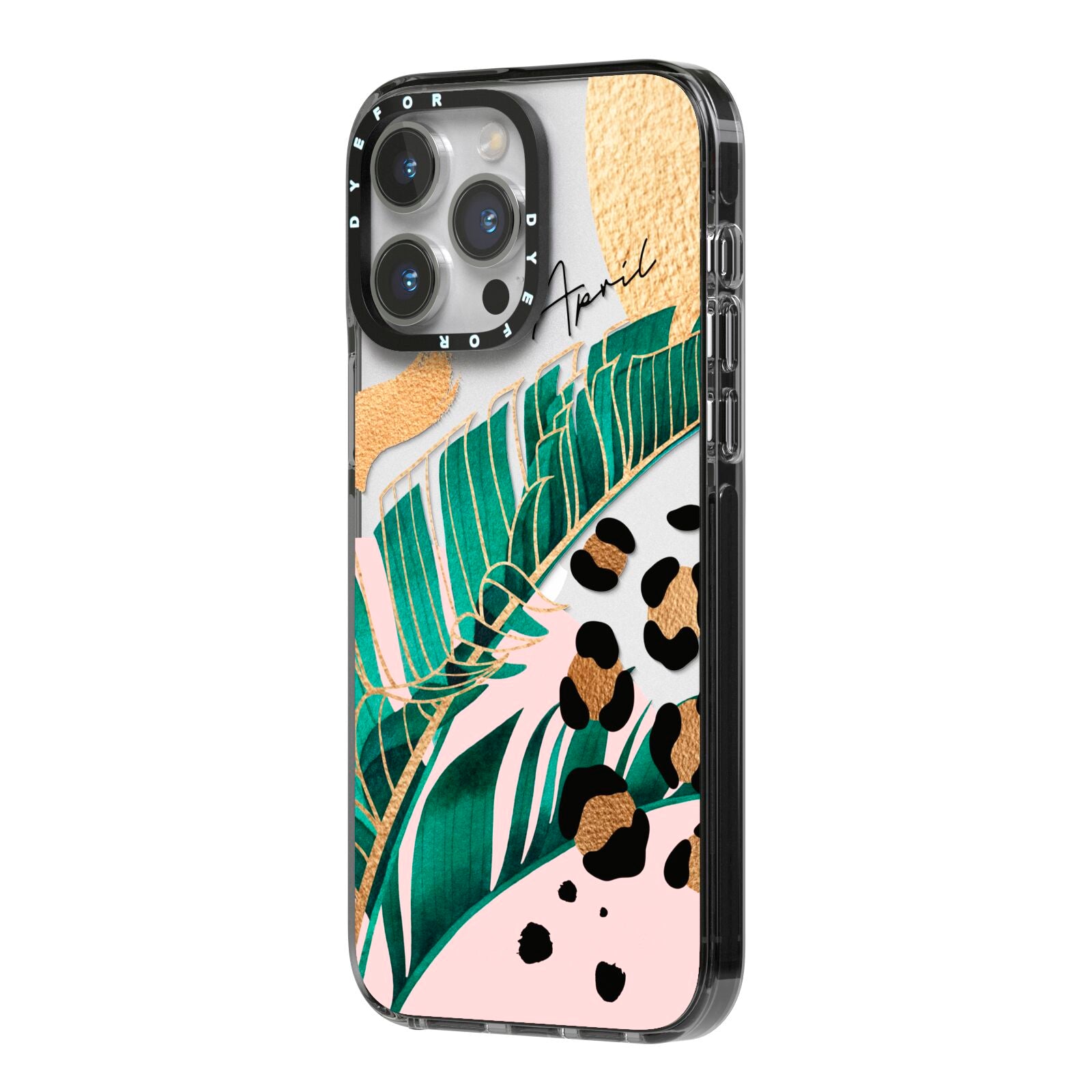 This Personalised Tropical Gold Apple iPhone Case is a watercolour design featuring tropical leaves, gold details and leopard print spots. Add your name to this phone case to own it.