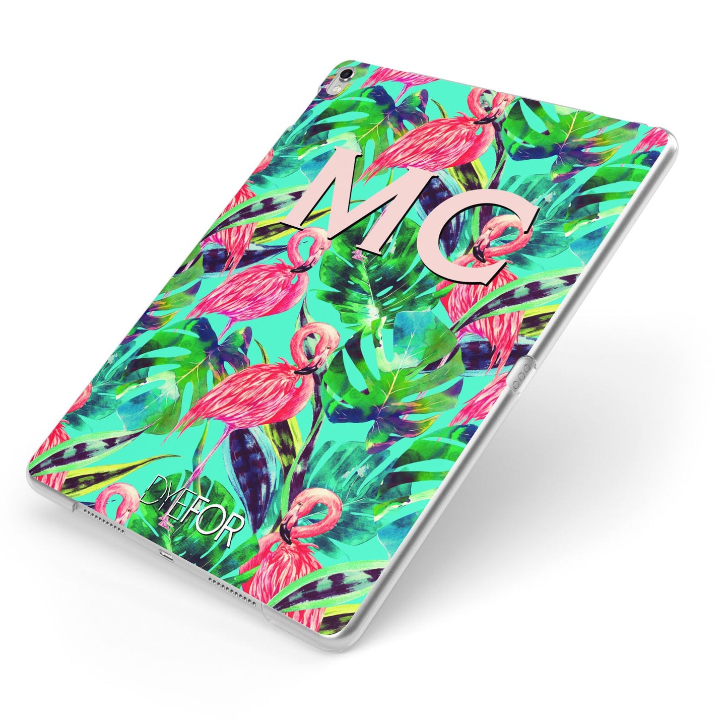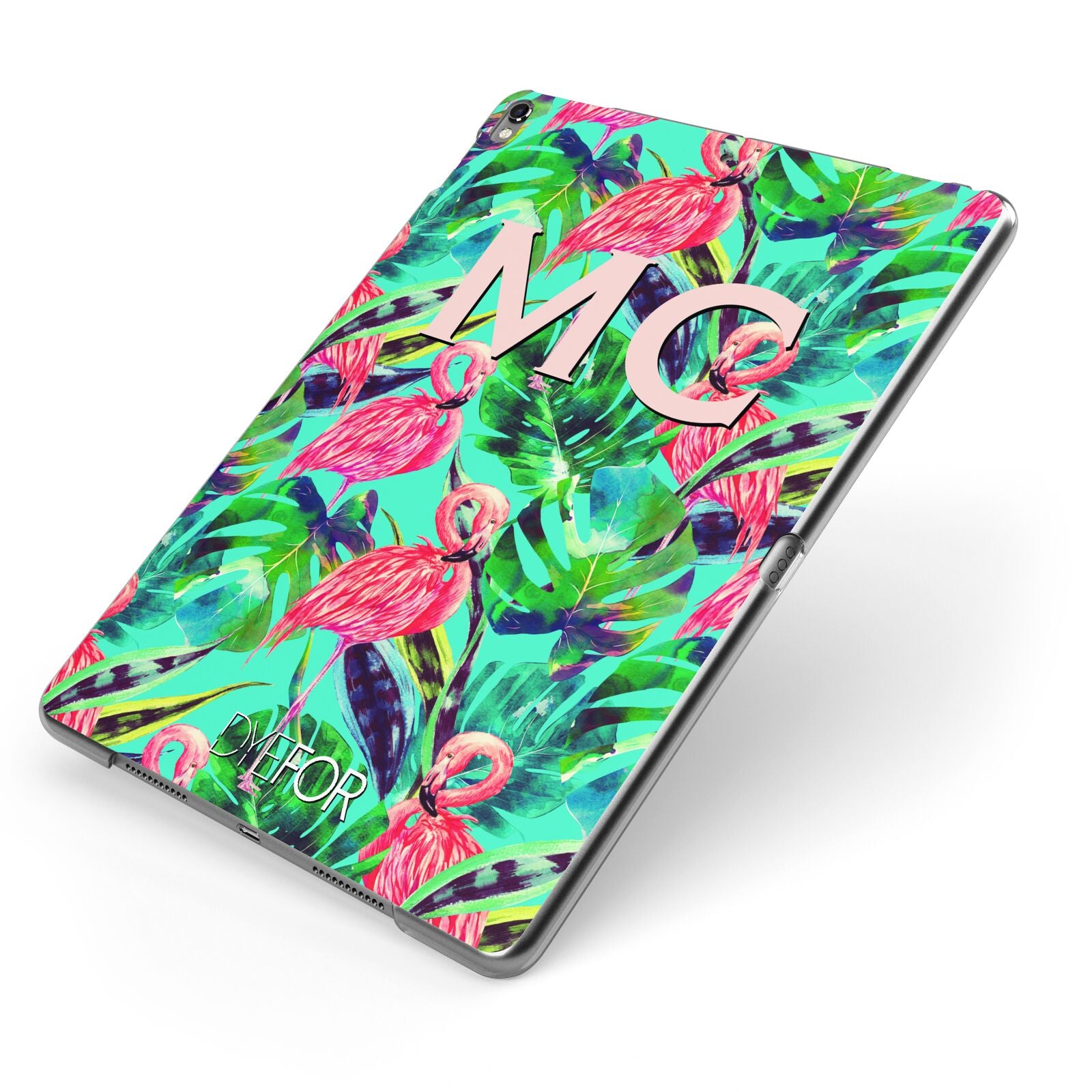 Our Personalised Tropical Green Leaves Flamingo iPad Case is just so damn cute! Featuring cute little flamingos, amongst tropical jungle leaves and an aqua green backdrop. Customise with matching drop shadow initials for that personal touch.