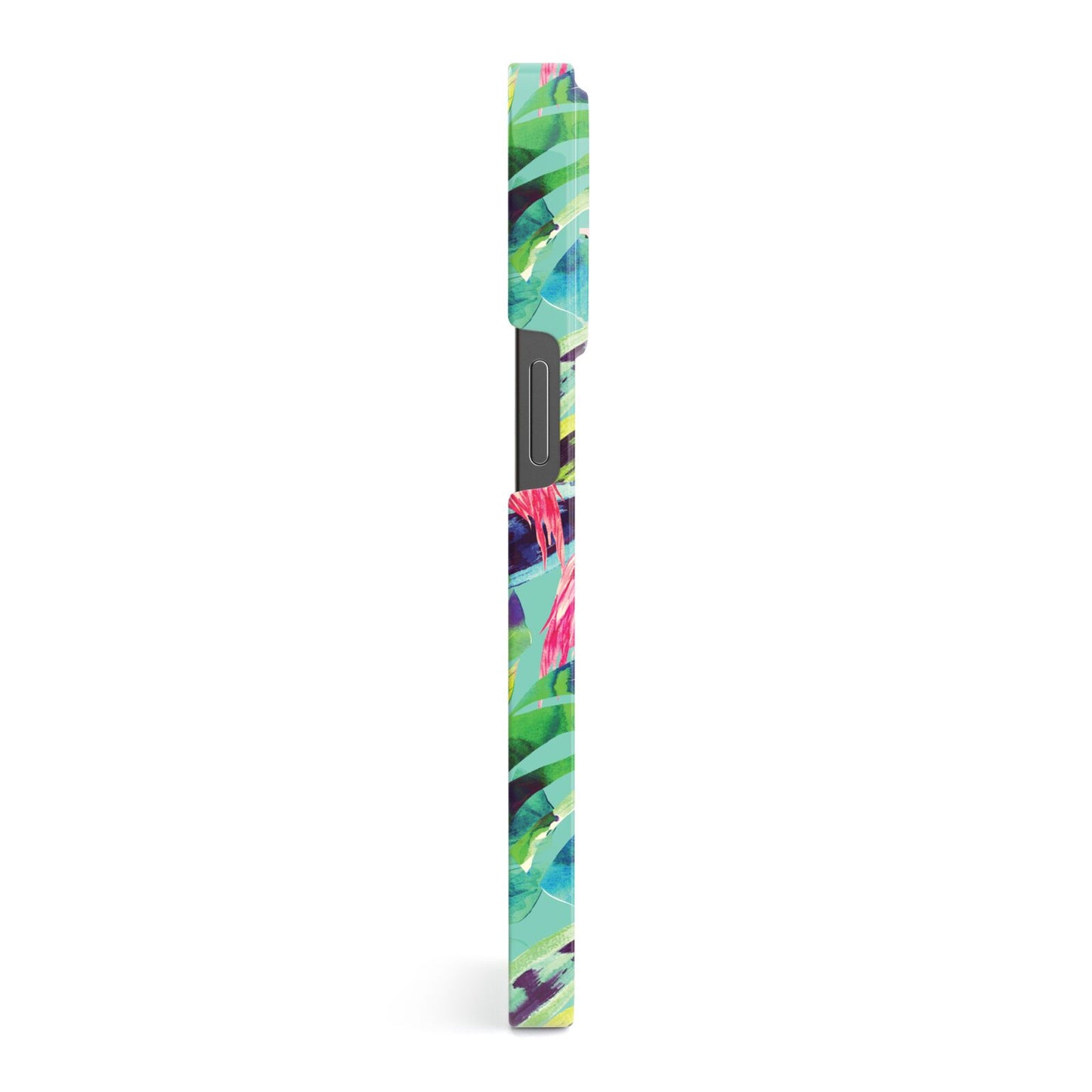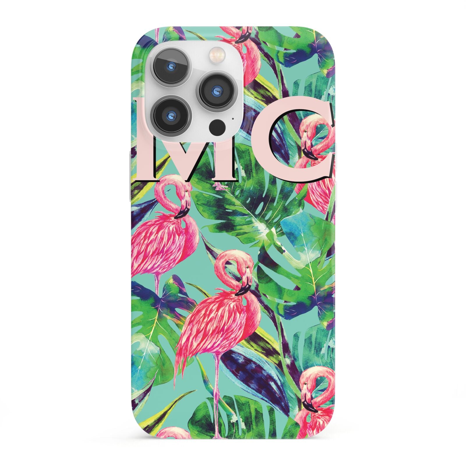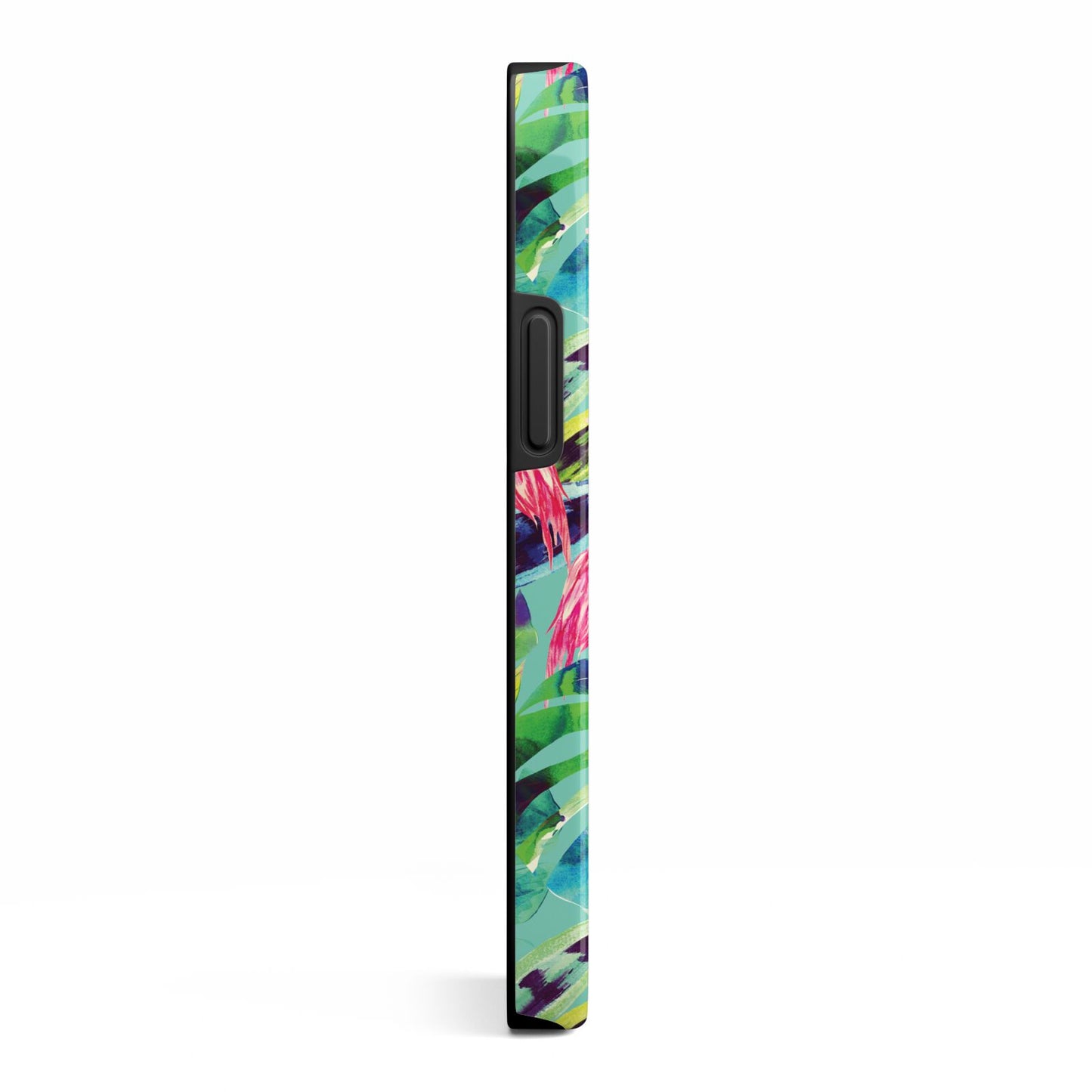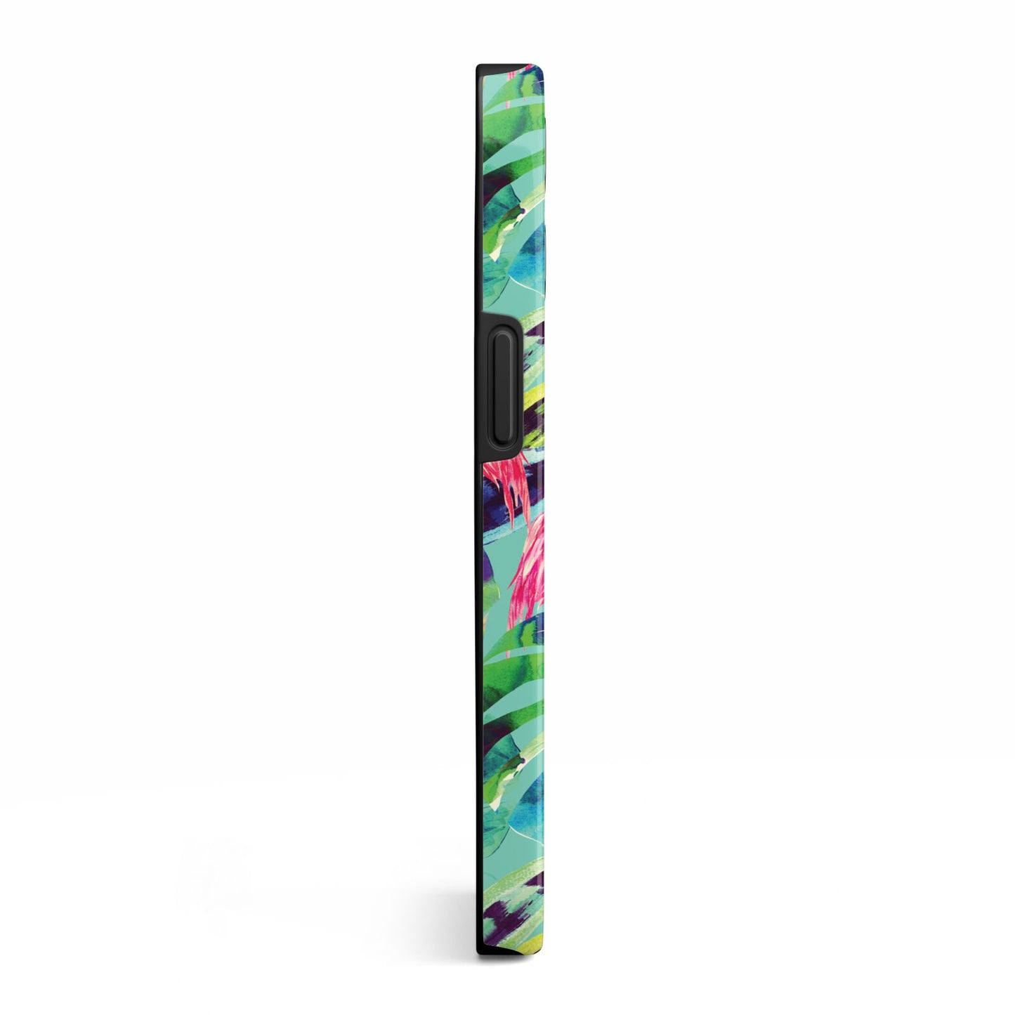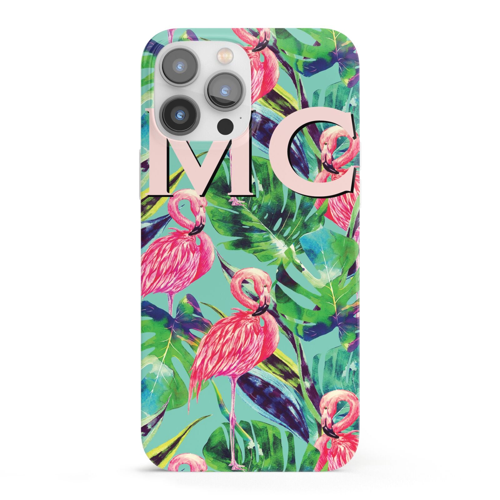 Personalised Tropical Green Leaves Flamingo Apple iPhone Case