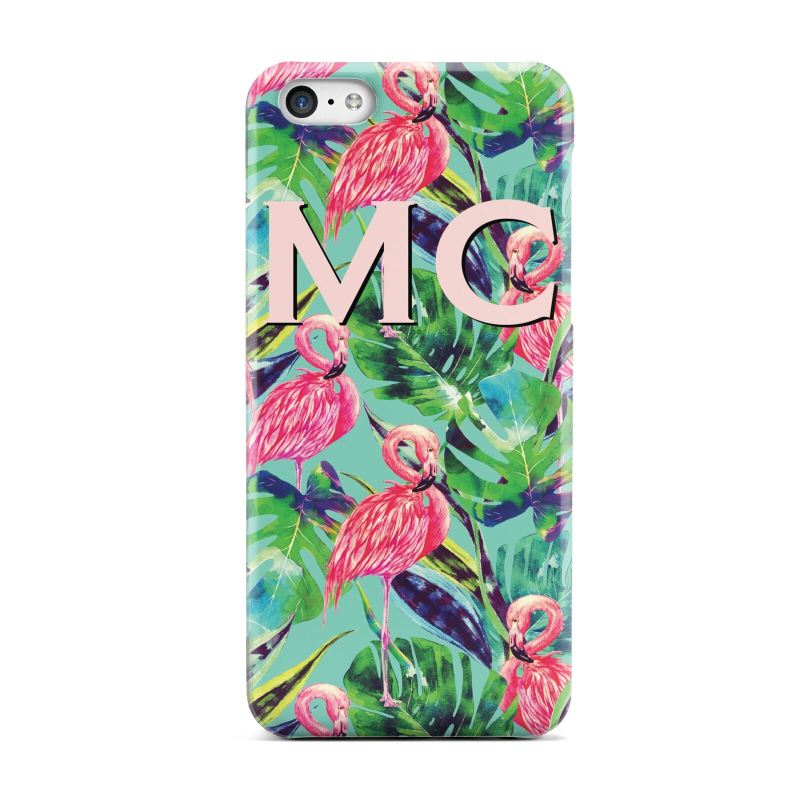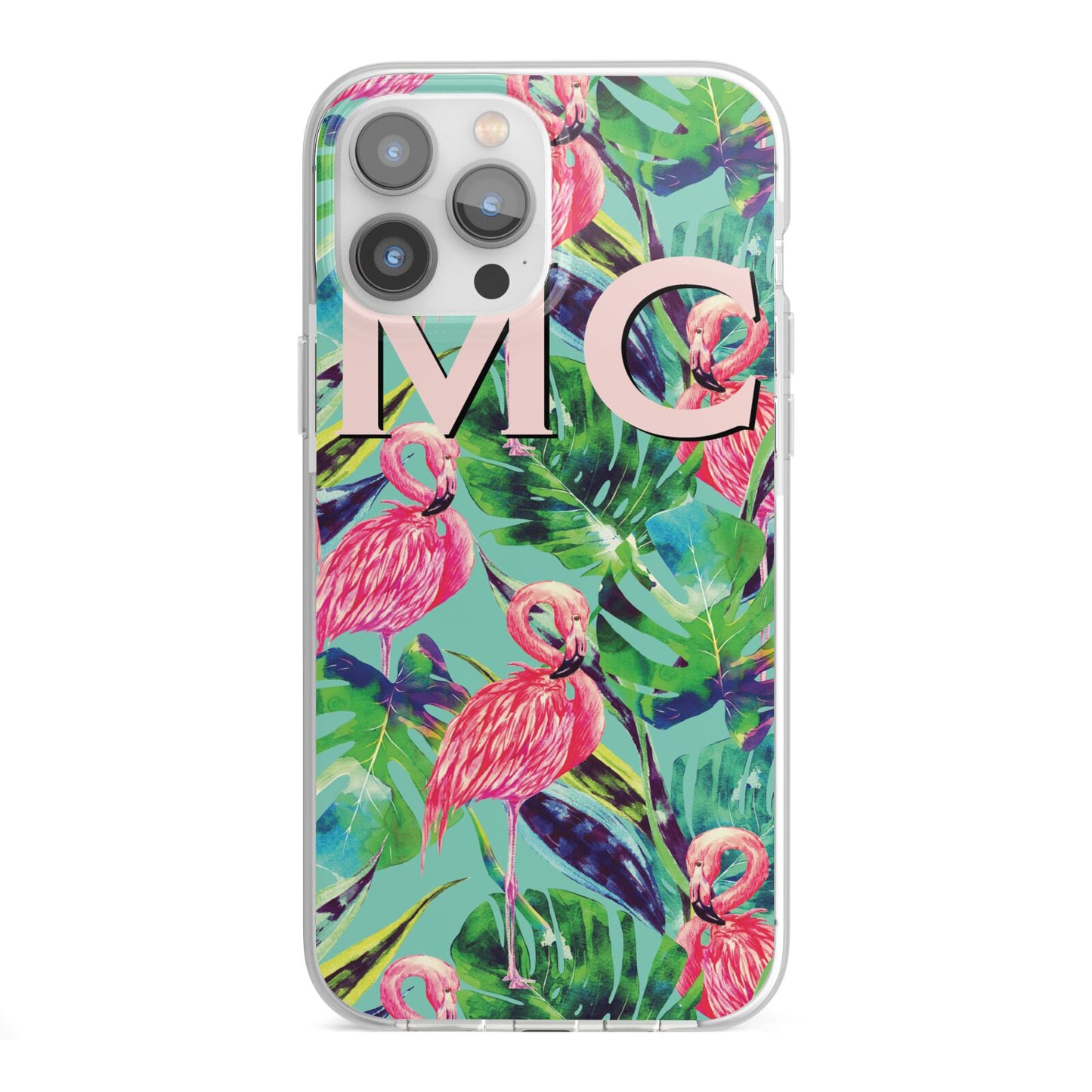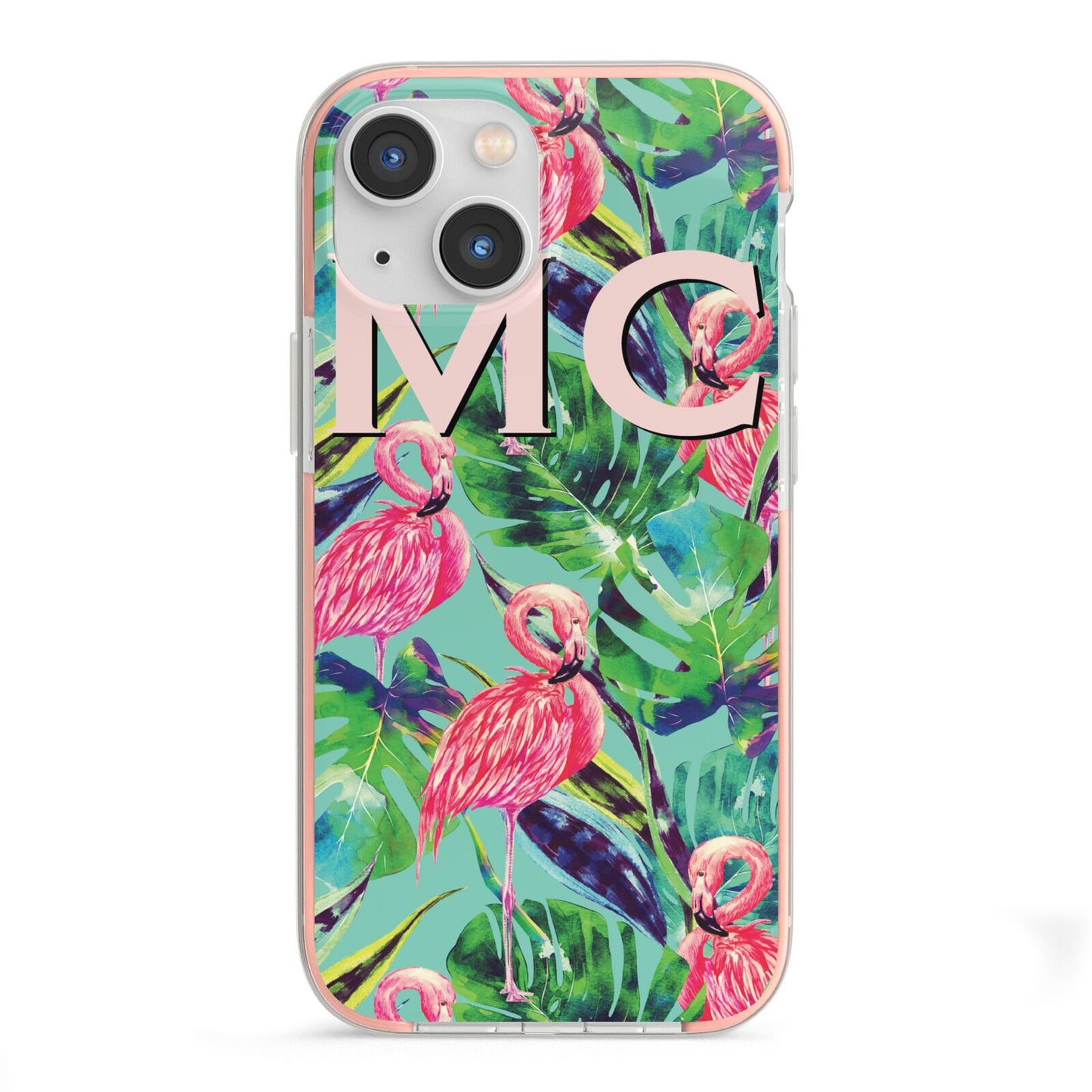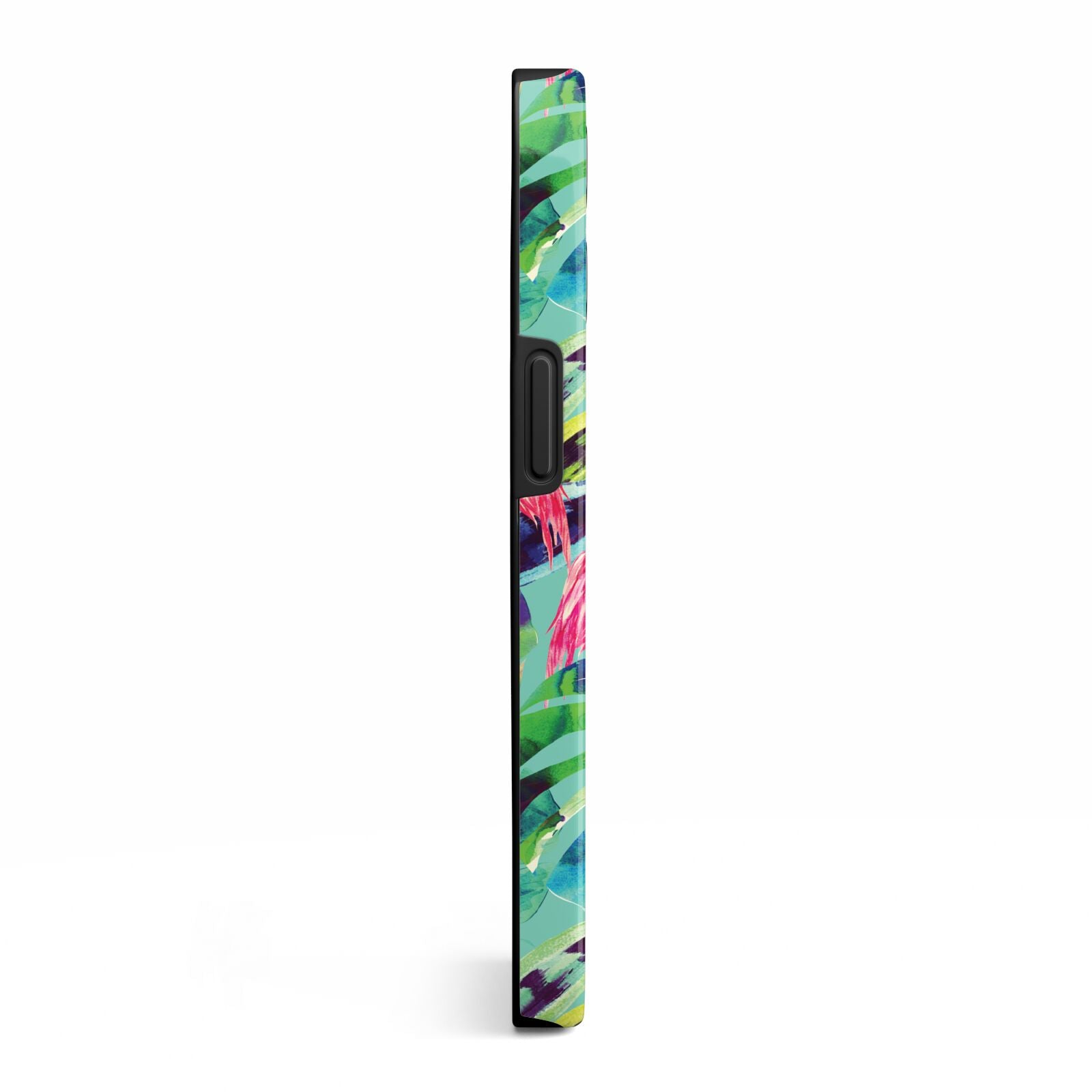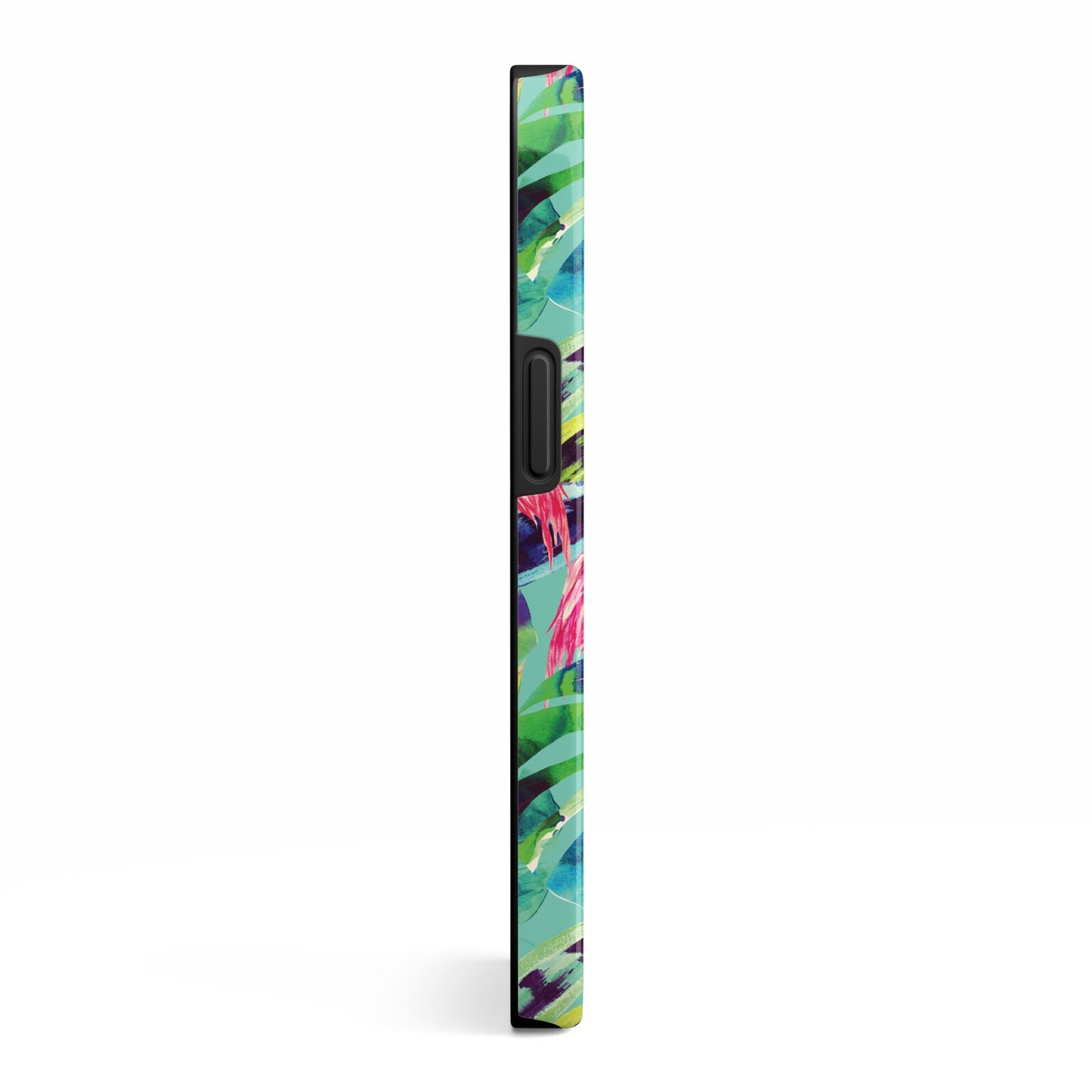 Personalised Tropical Green Leaves Flamingo Apple iPhone Case