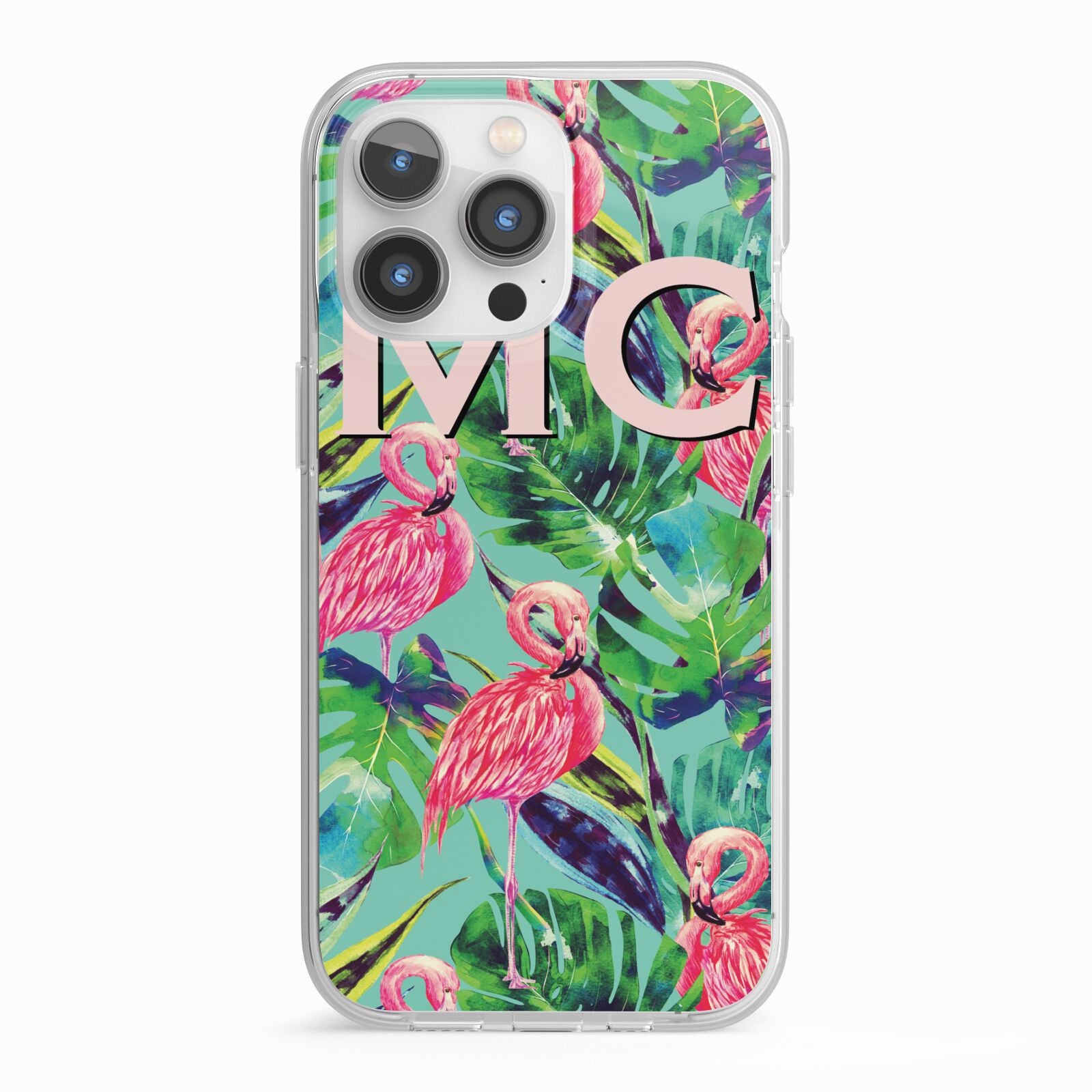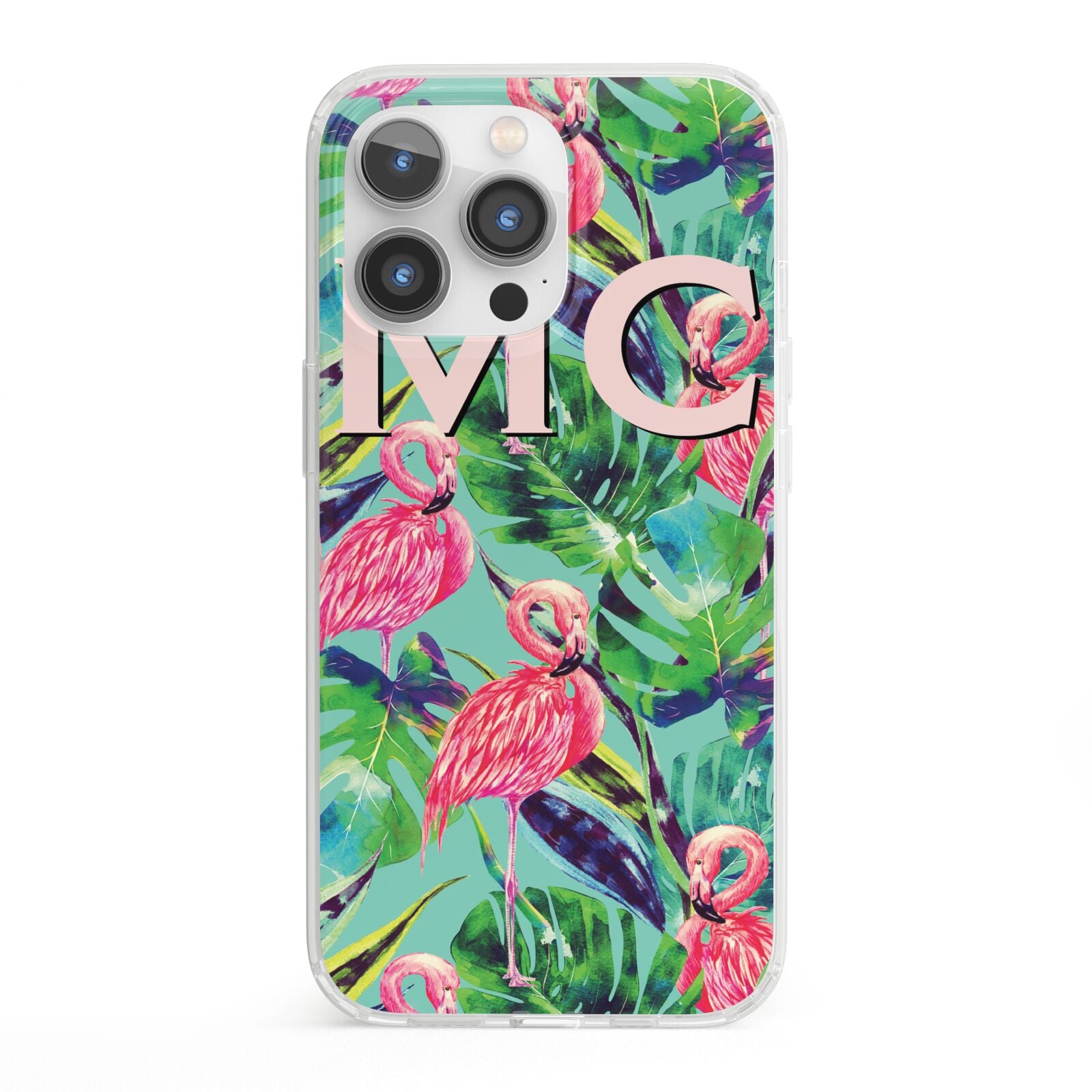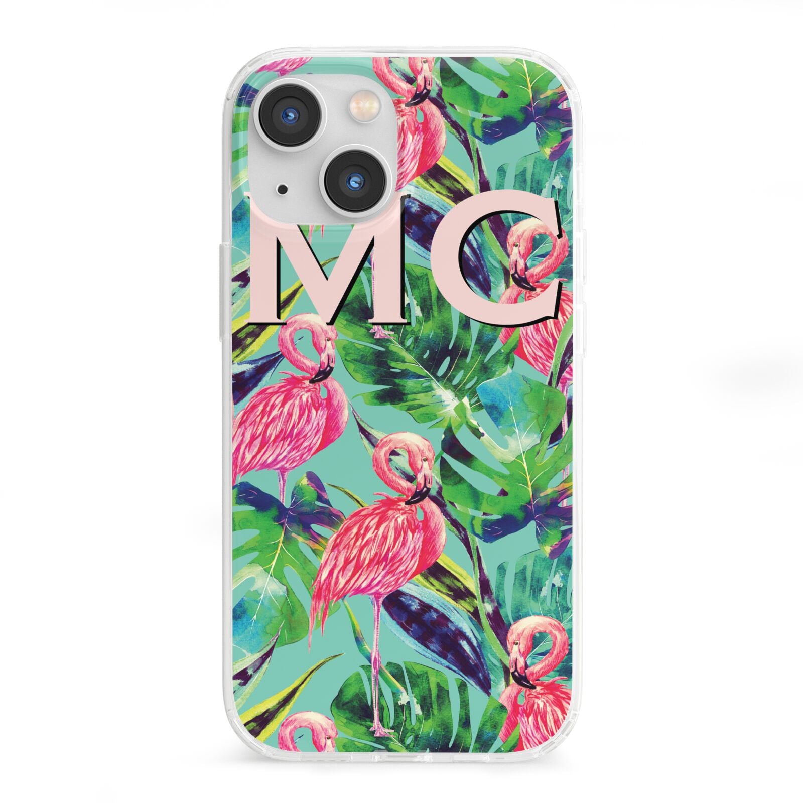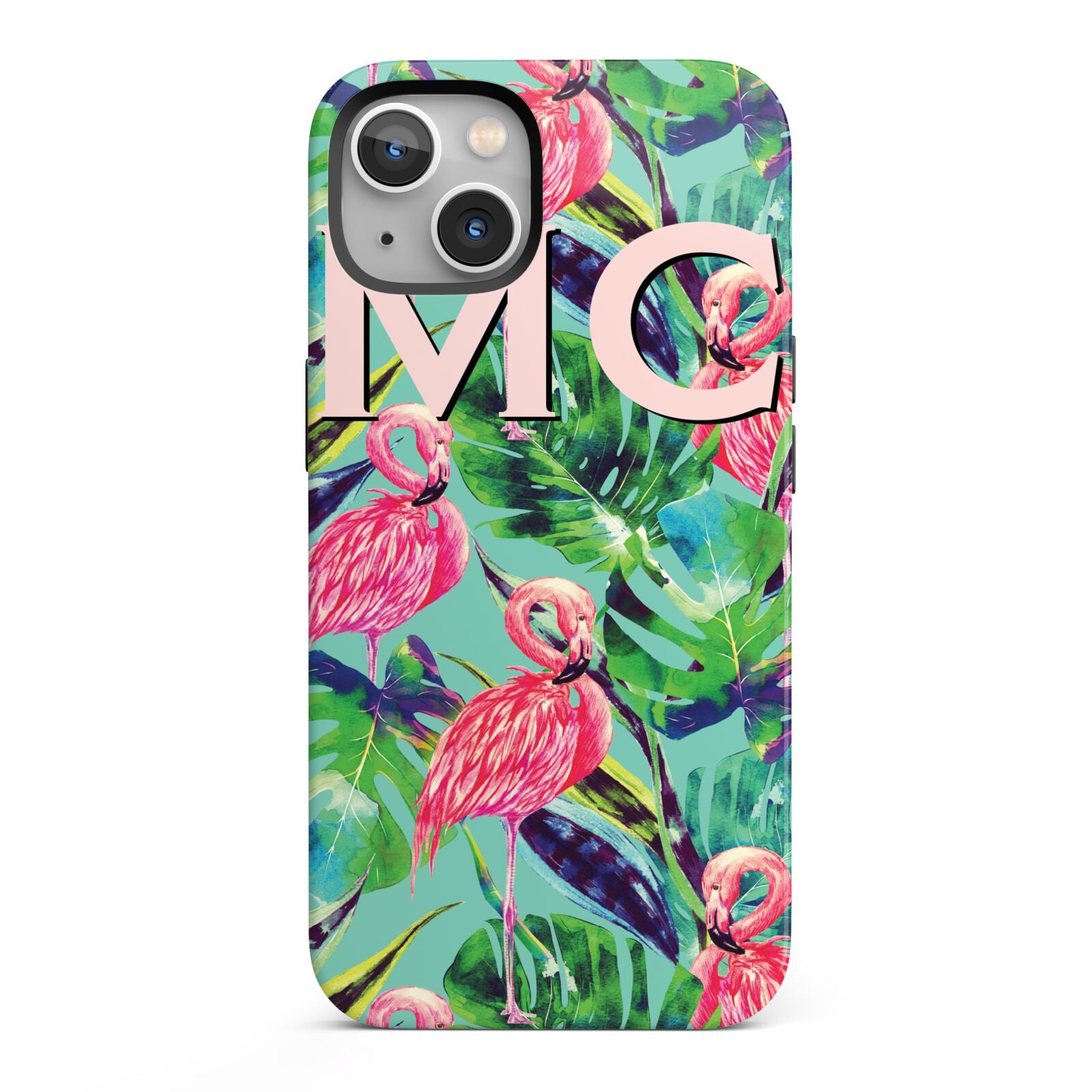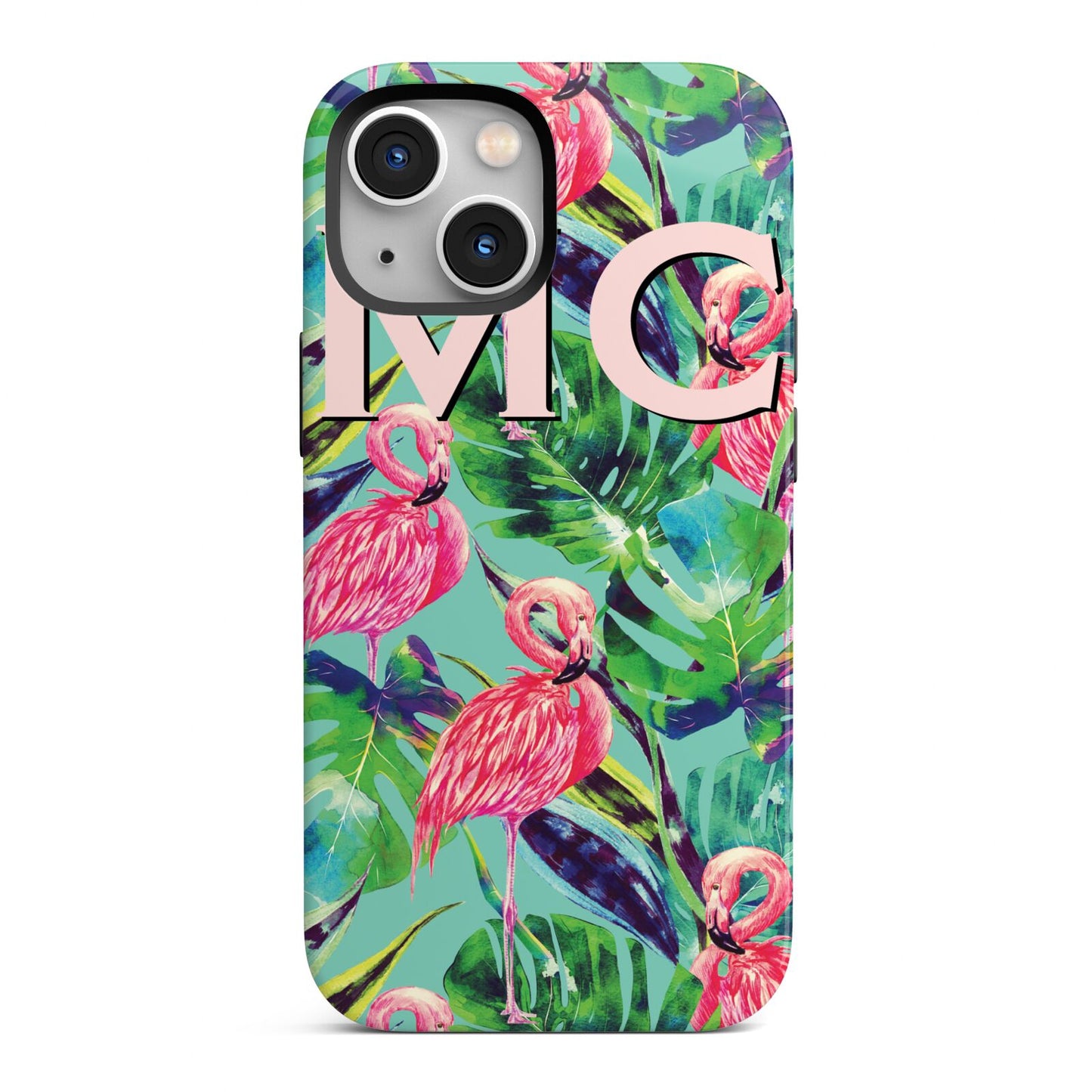 Personalised Tropical Green Leaves Flamingo Apple iPhone Case