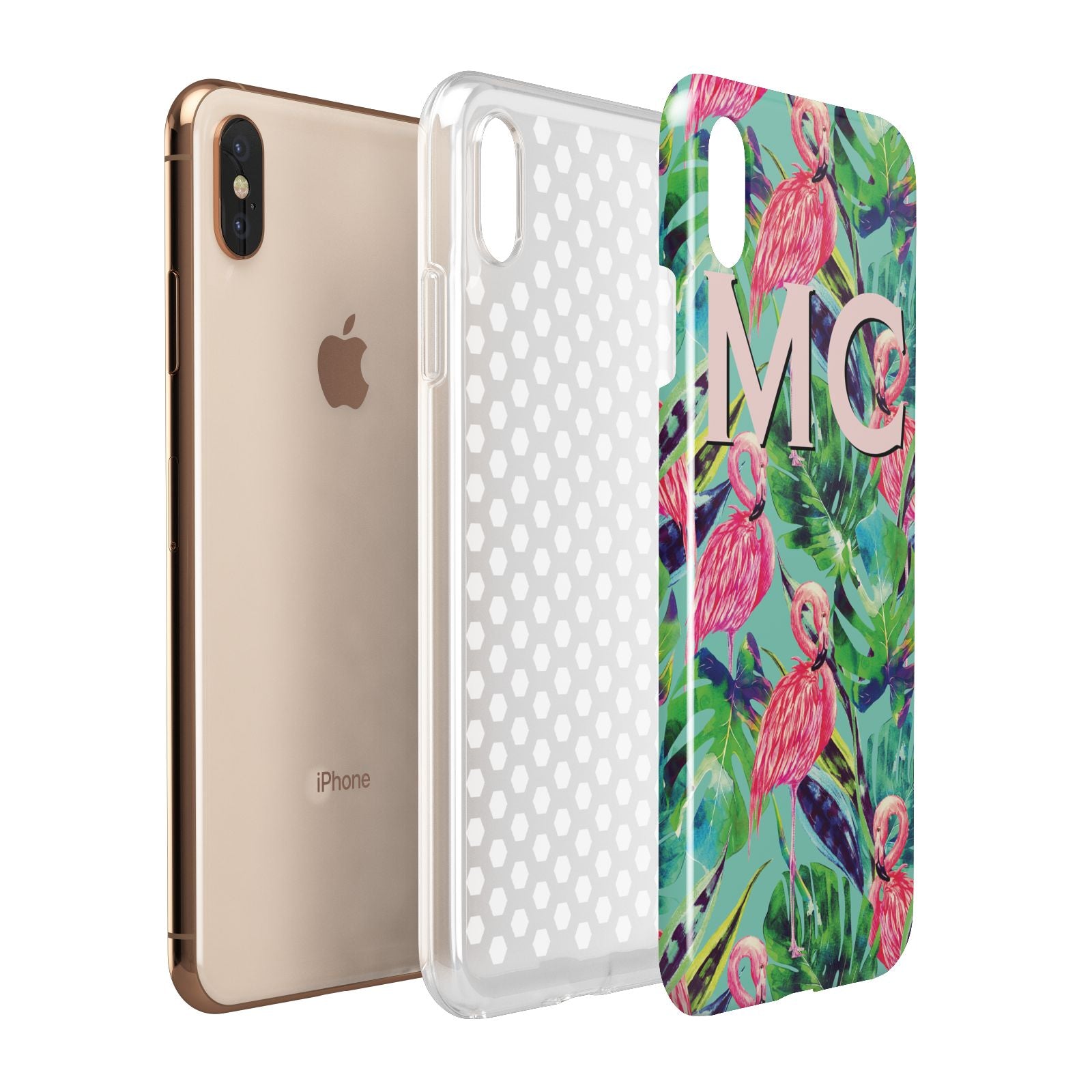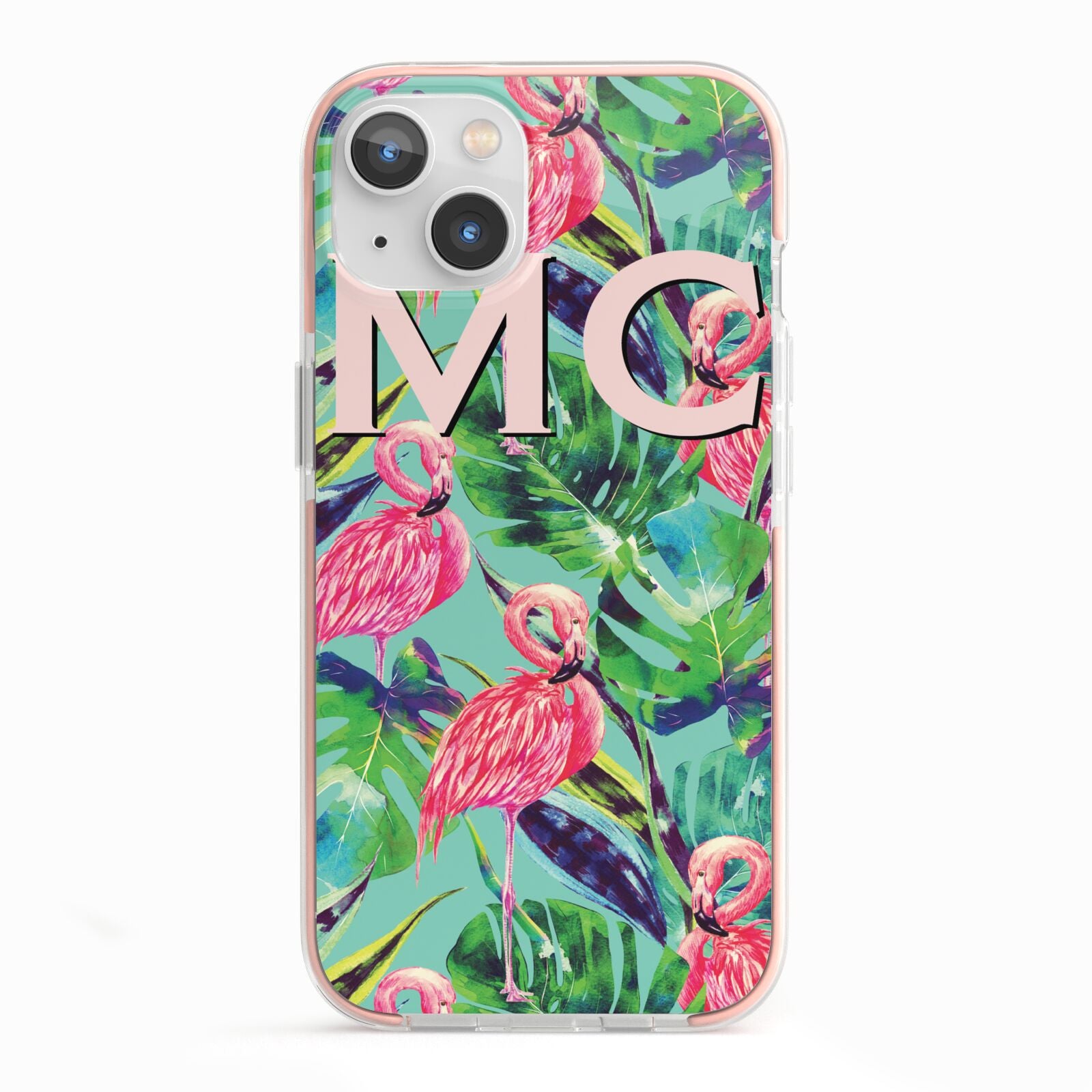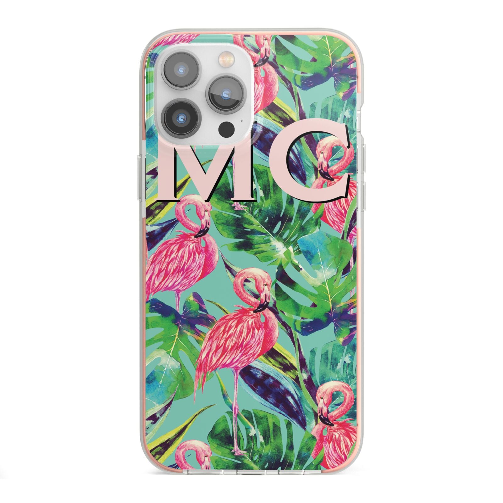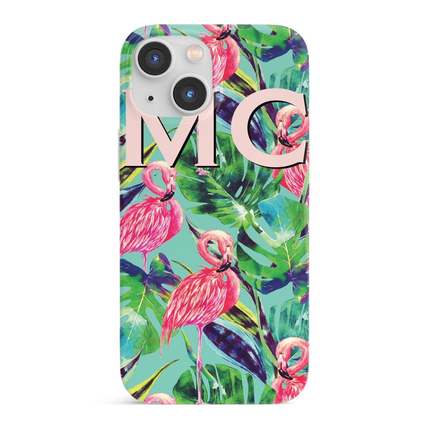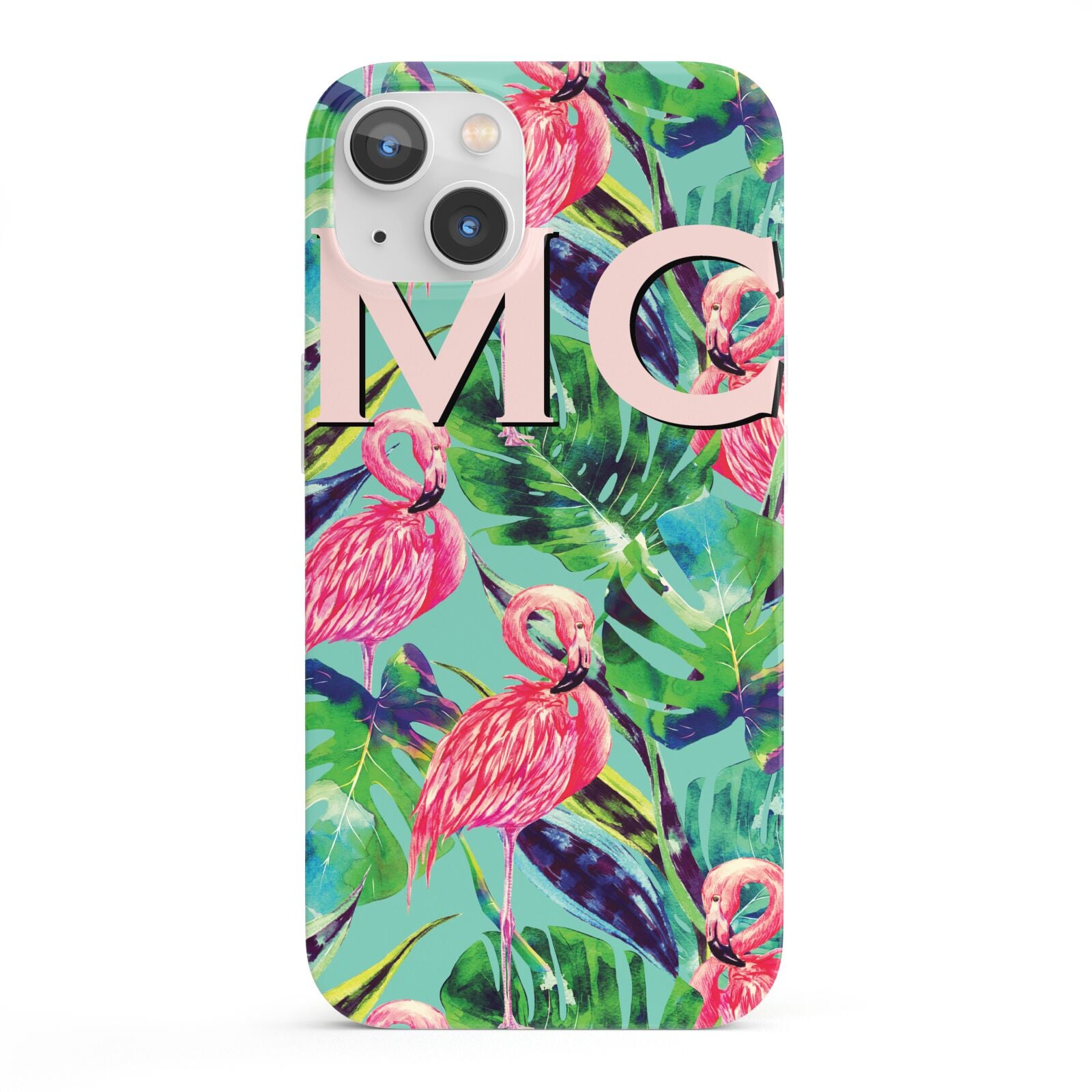 Personalised Tropical Green Leaves Flamingo Apple iPhone Case