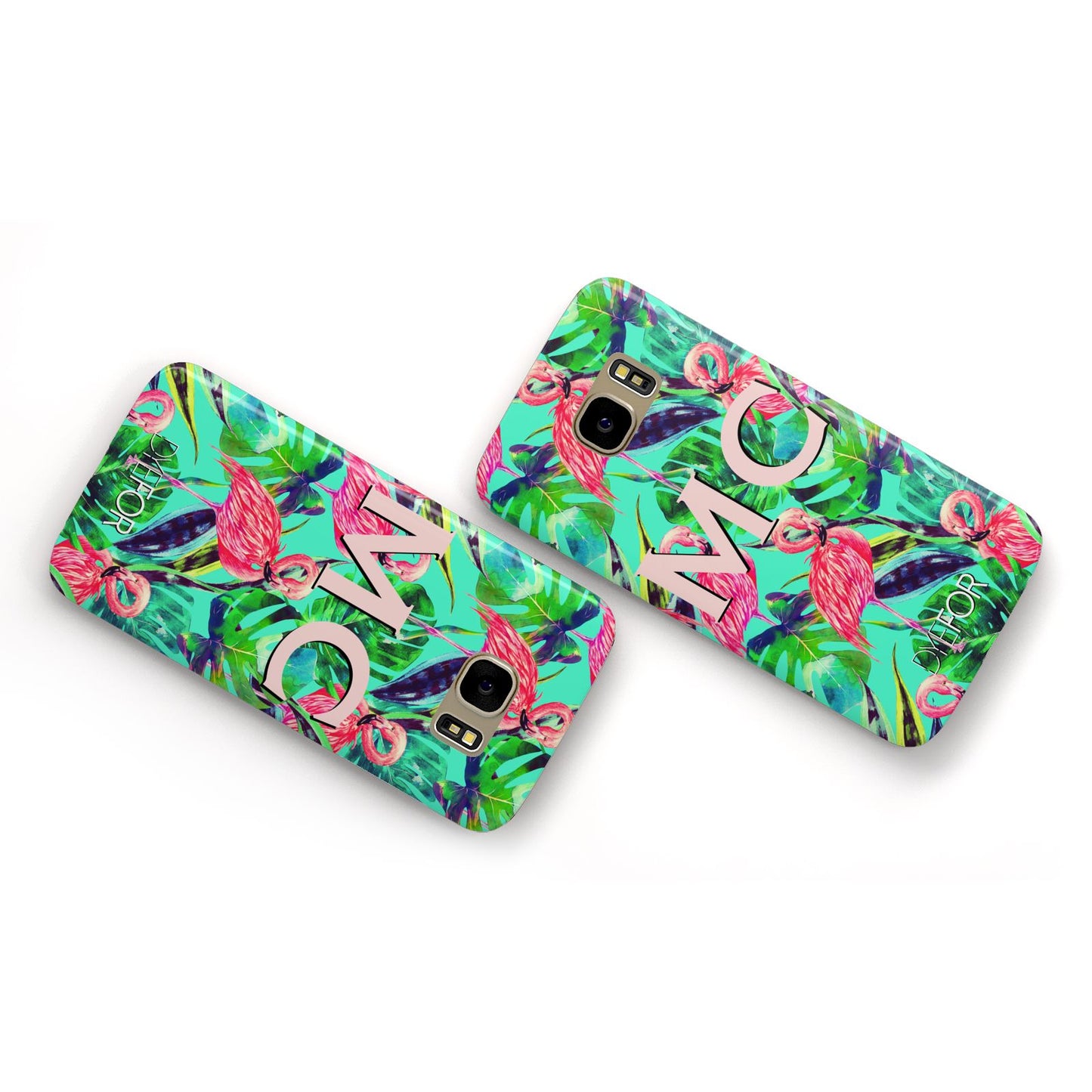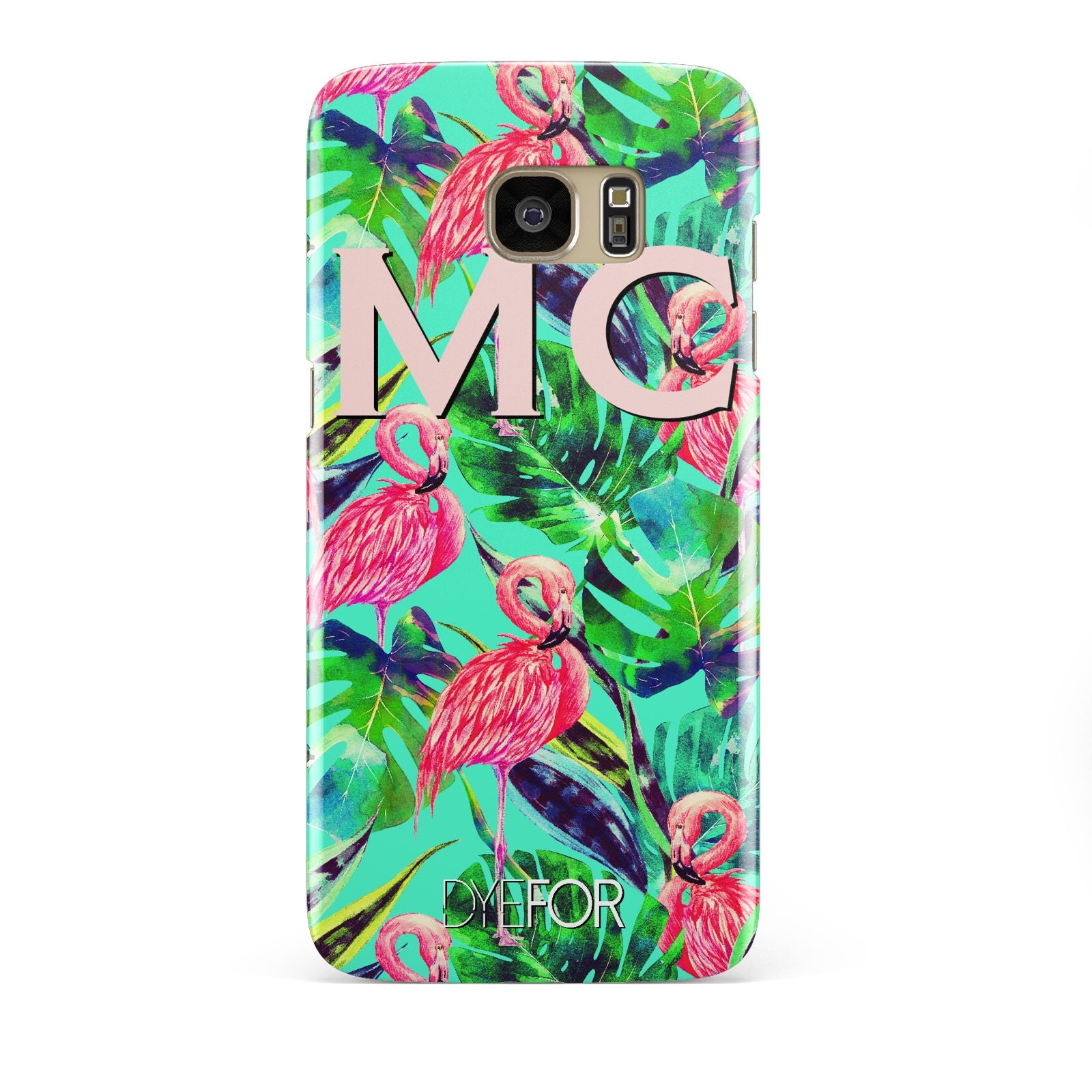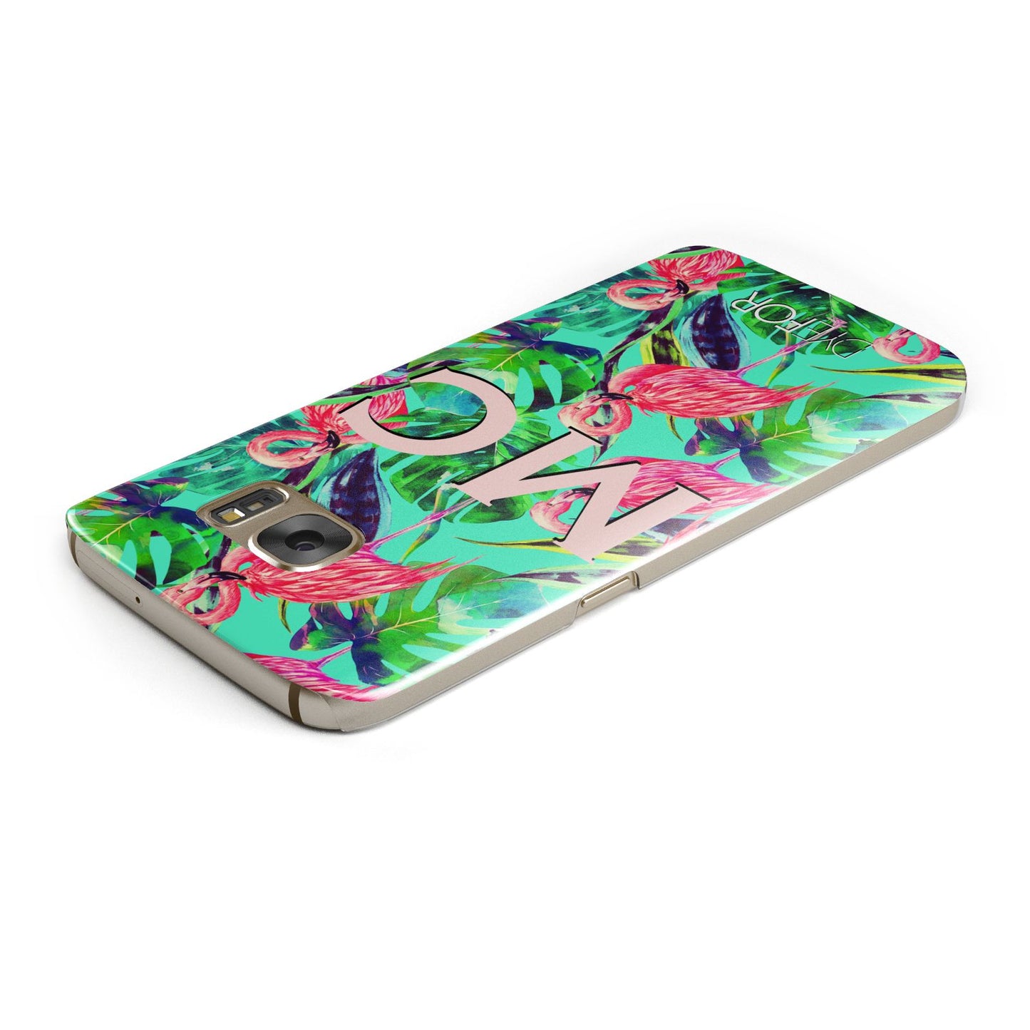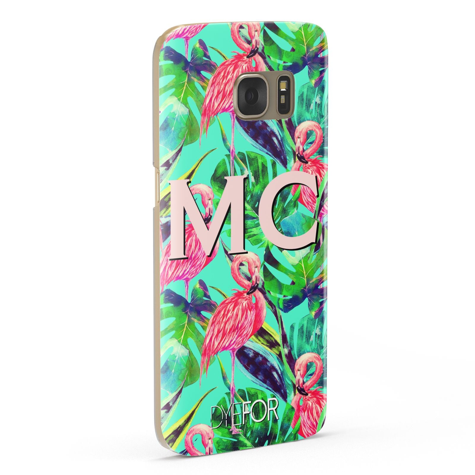 Personalised Tropical Green Leaves Flamingo Samsung Galaxy Case