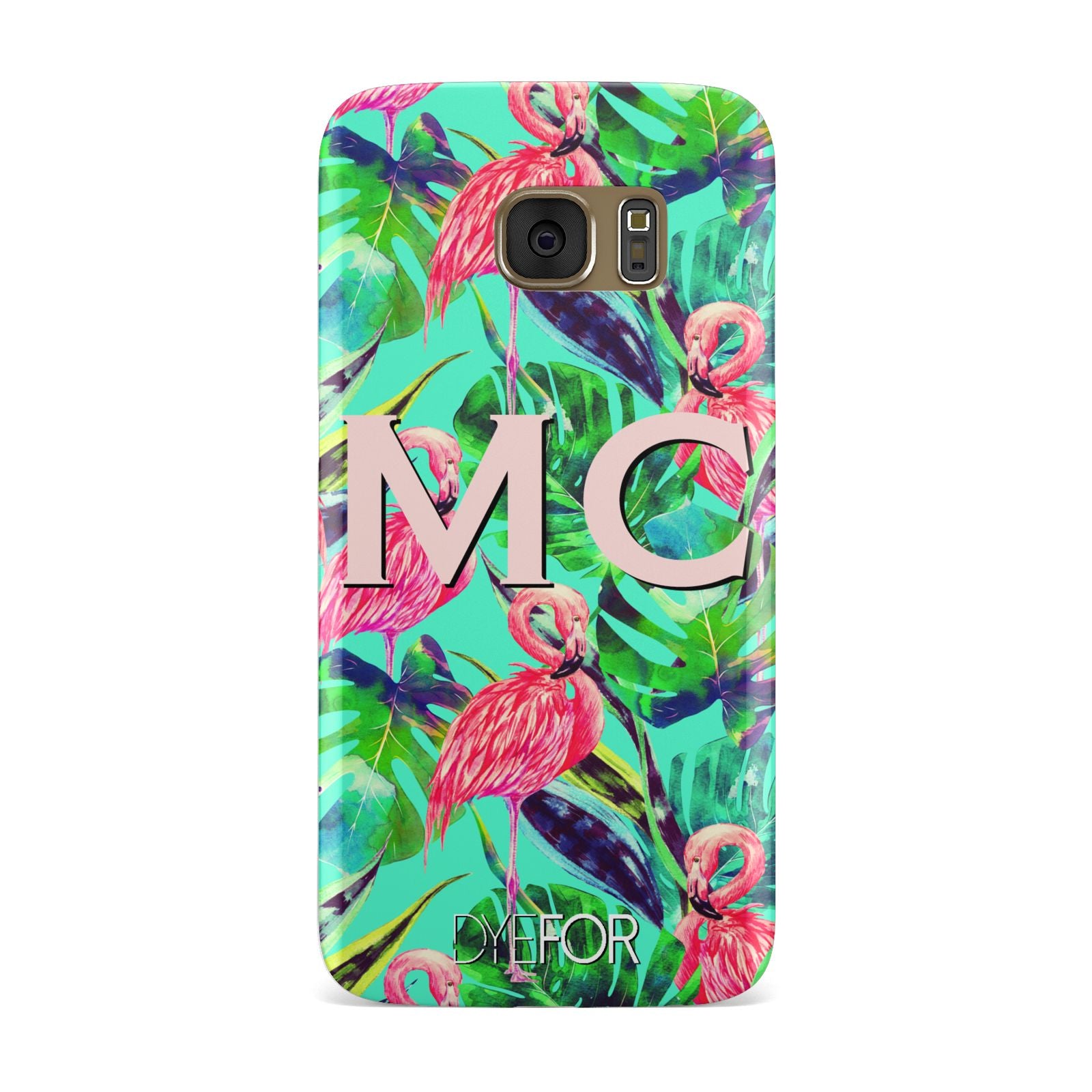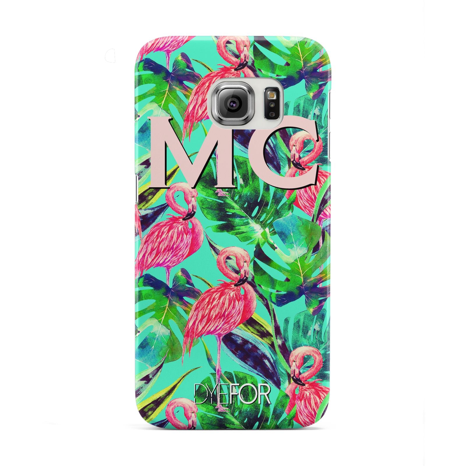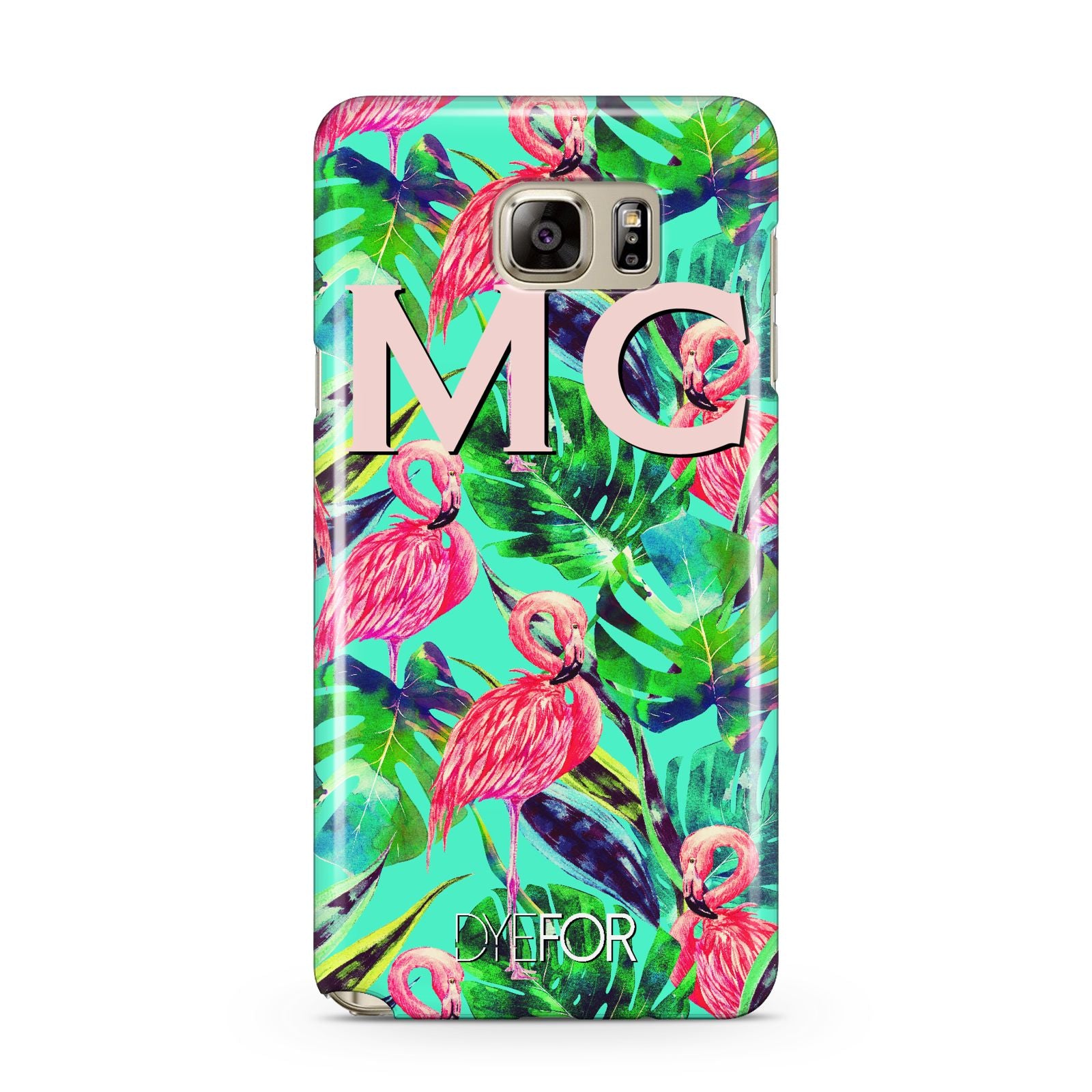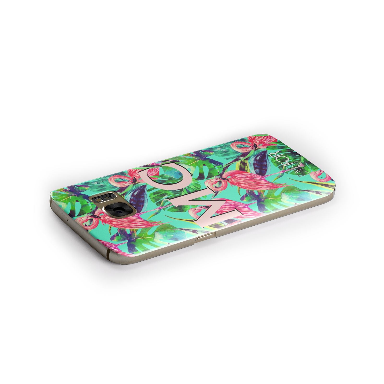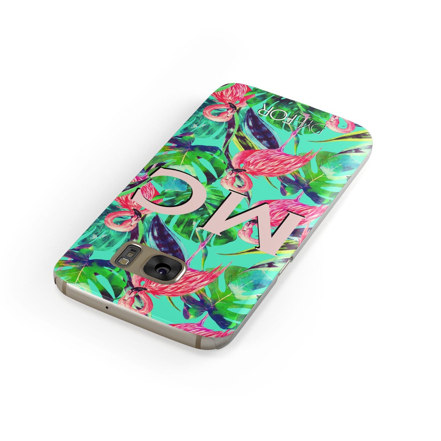 Personalised Tropical Green Leaves Flamingo Samsung Galaxy Case