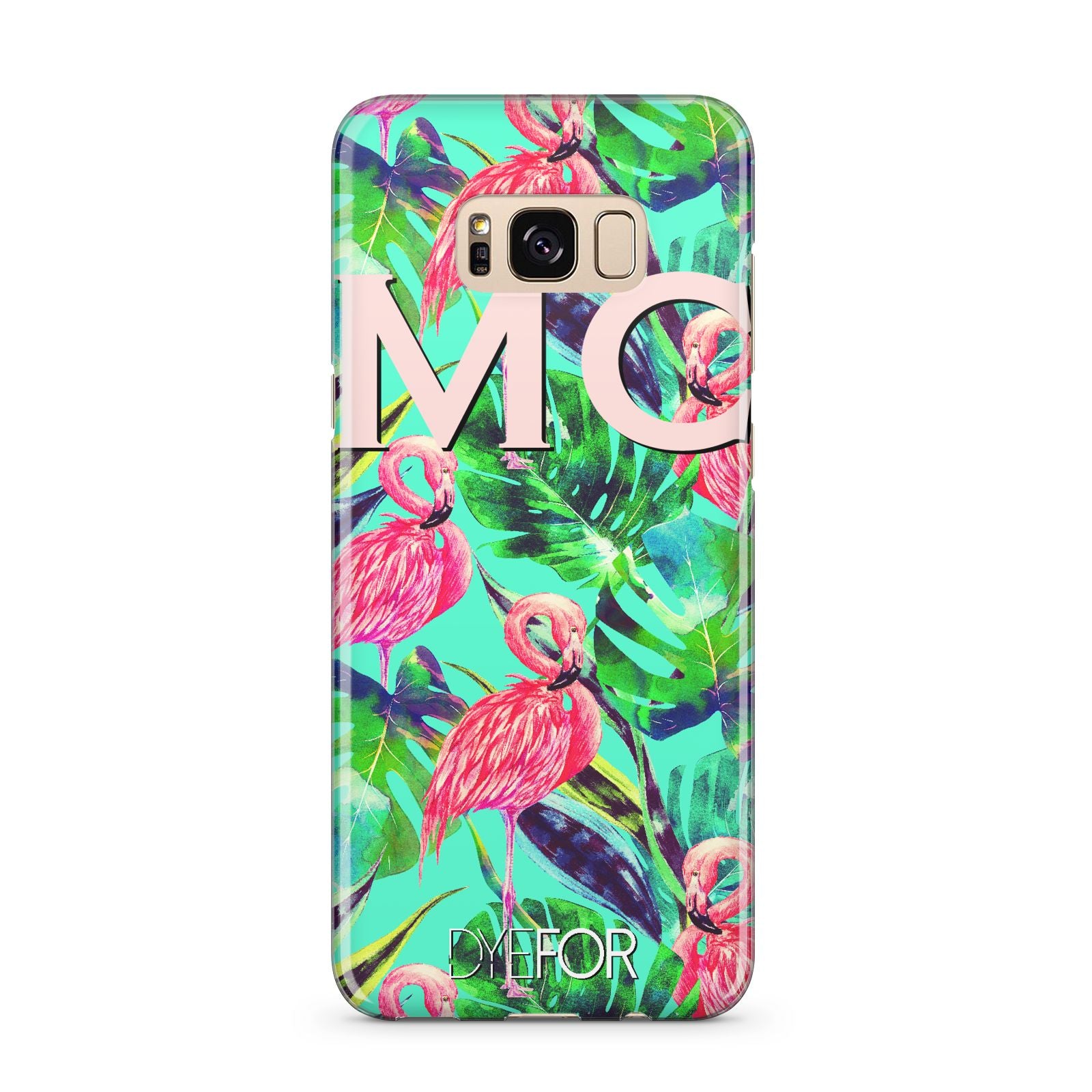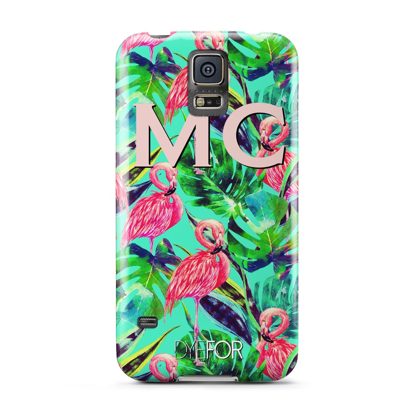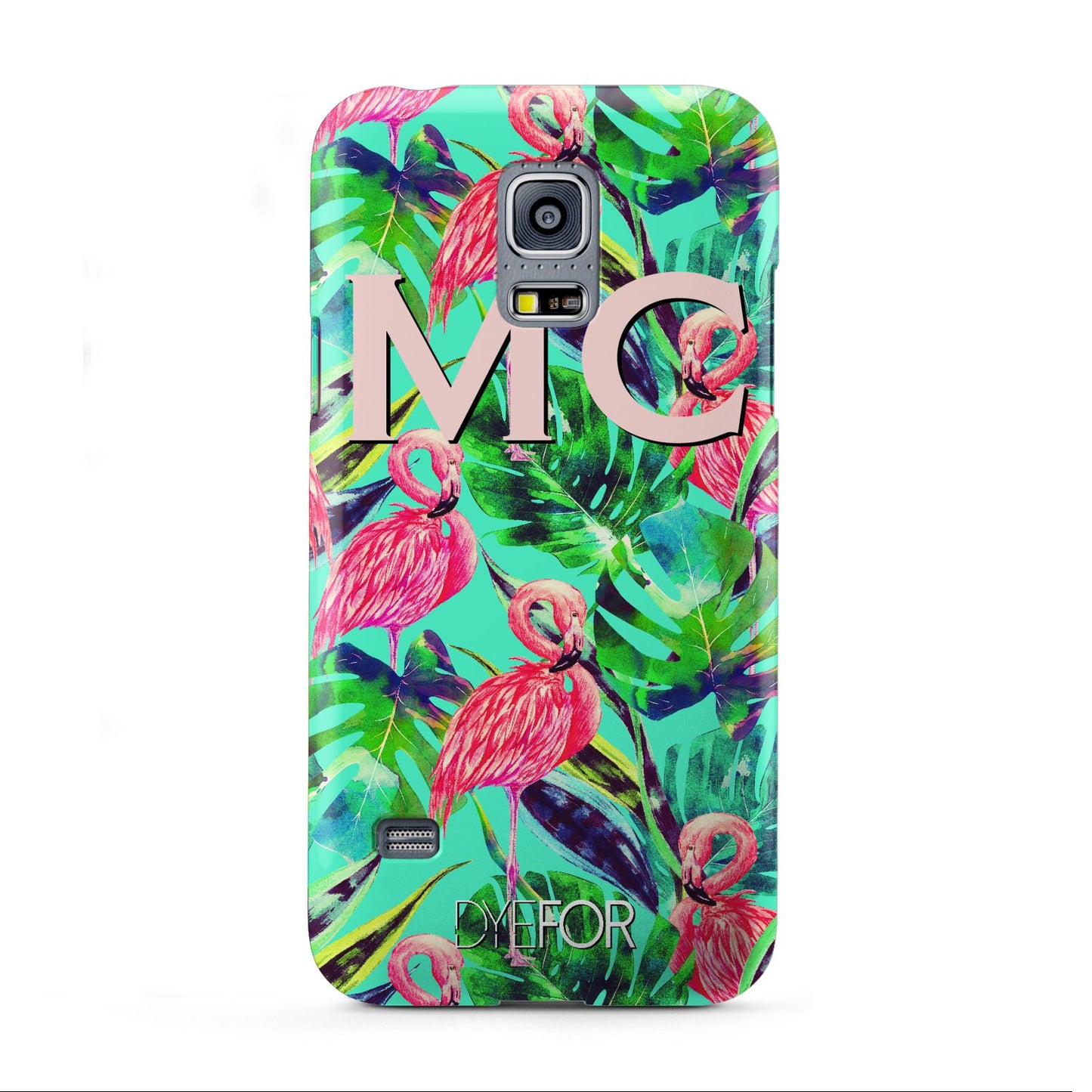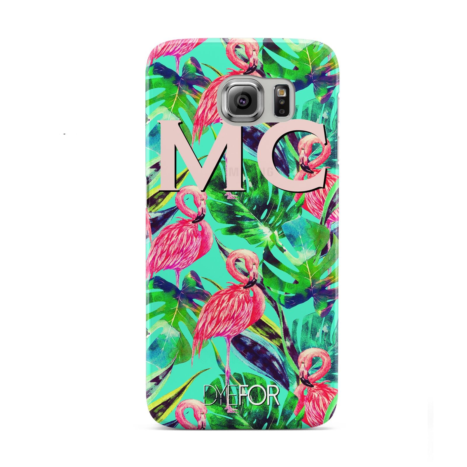 Personalised Tropical Green Leaves Flamingo Samsung Galaxy Case