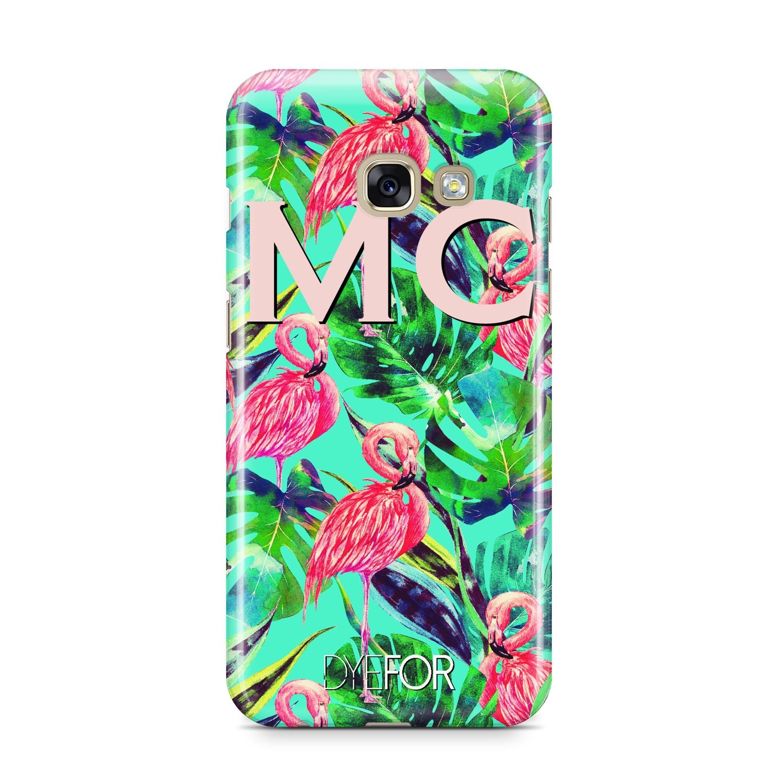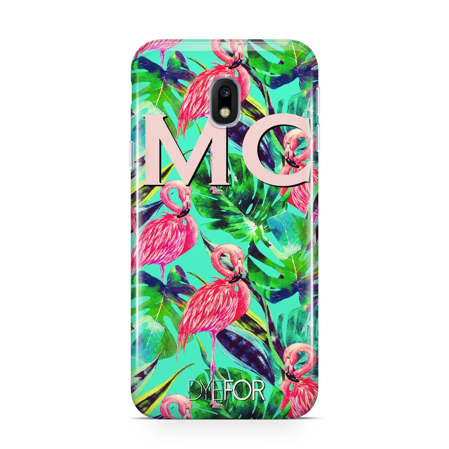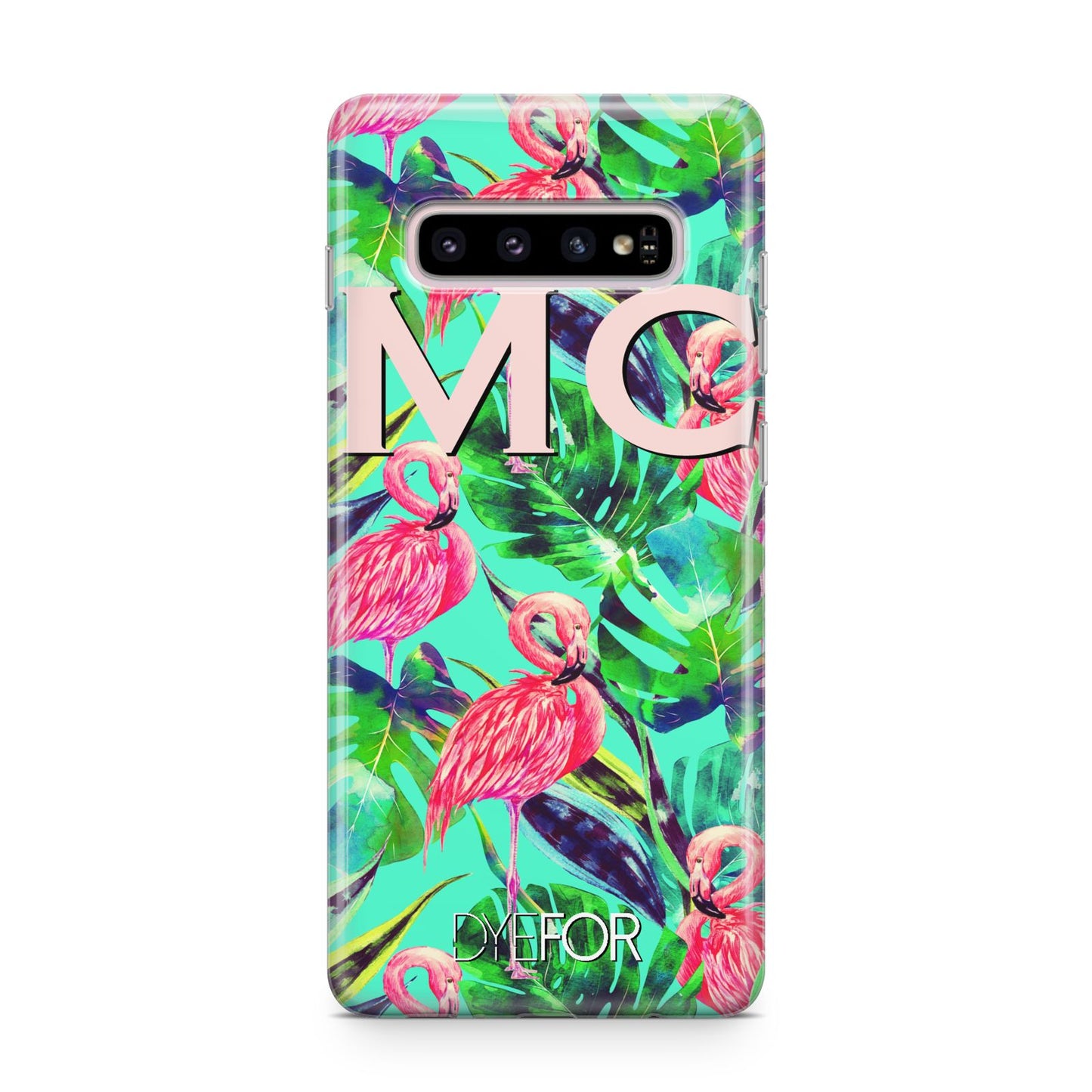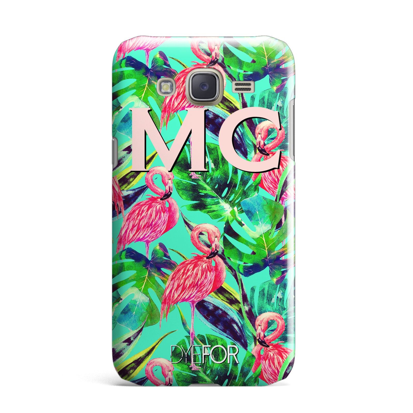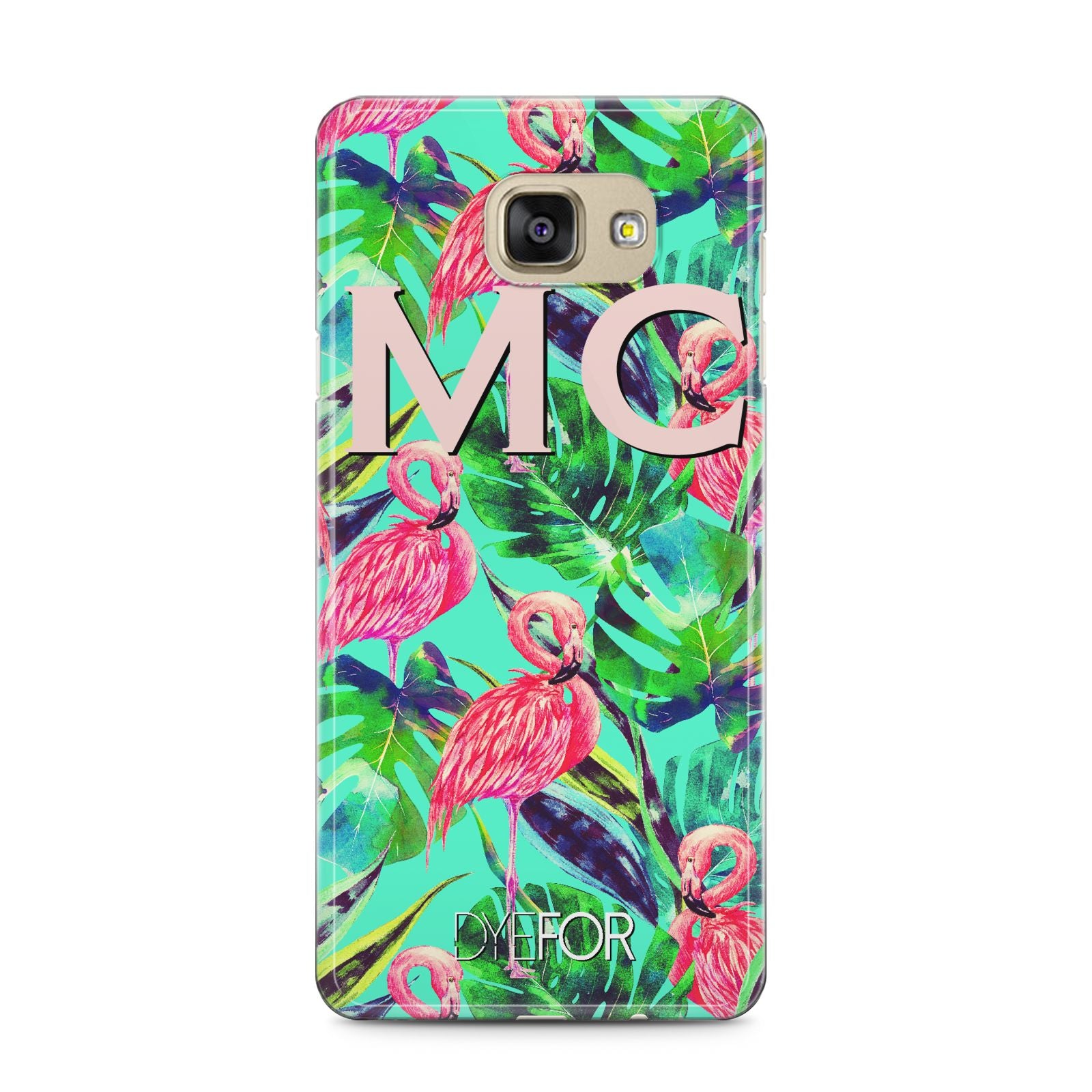 Personalised Tropical Green Leaves Flamingo Samsung Galaxy Case