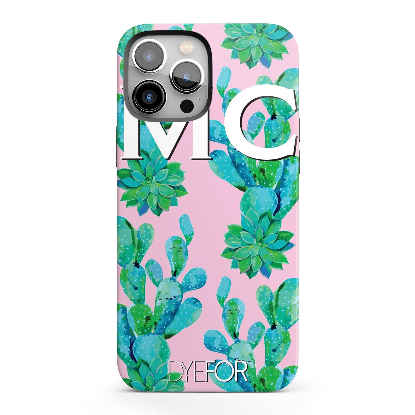 Our beautiful Personalised Tropical Pink Cactus iPhone Case looks fab on your phone. Featuring green watercolour cactus against a dusty pink background. Complimented with our drop shadow initials. Designed and printed in the UK.