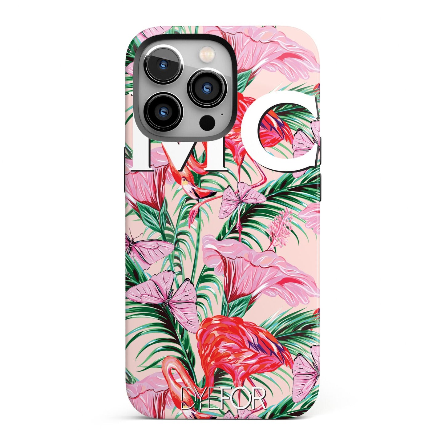 This Personalised Tropical Pink Flamingo looks truly stunning on your phone. Beautiful butterflies and flamingoes designed against a pale pink background. Be unique and personalise with our signature drop shadow initials on your iPhone Case.