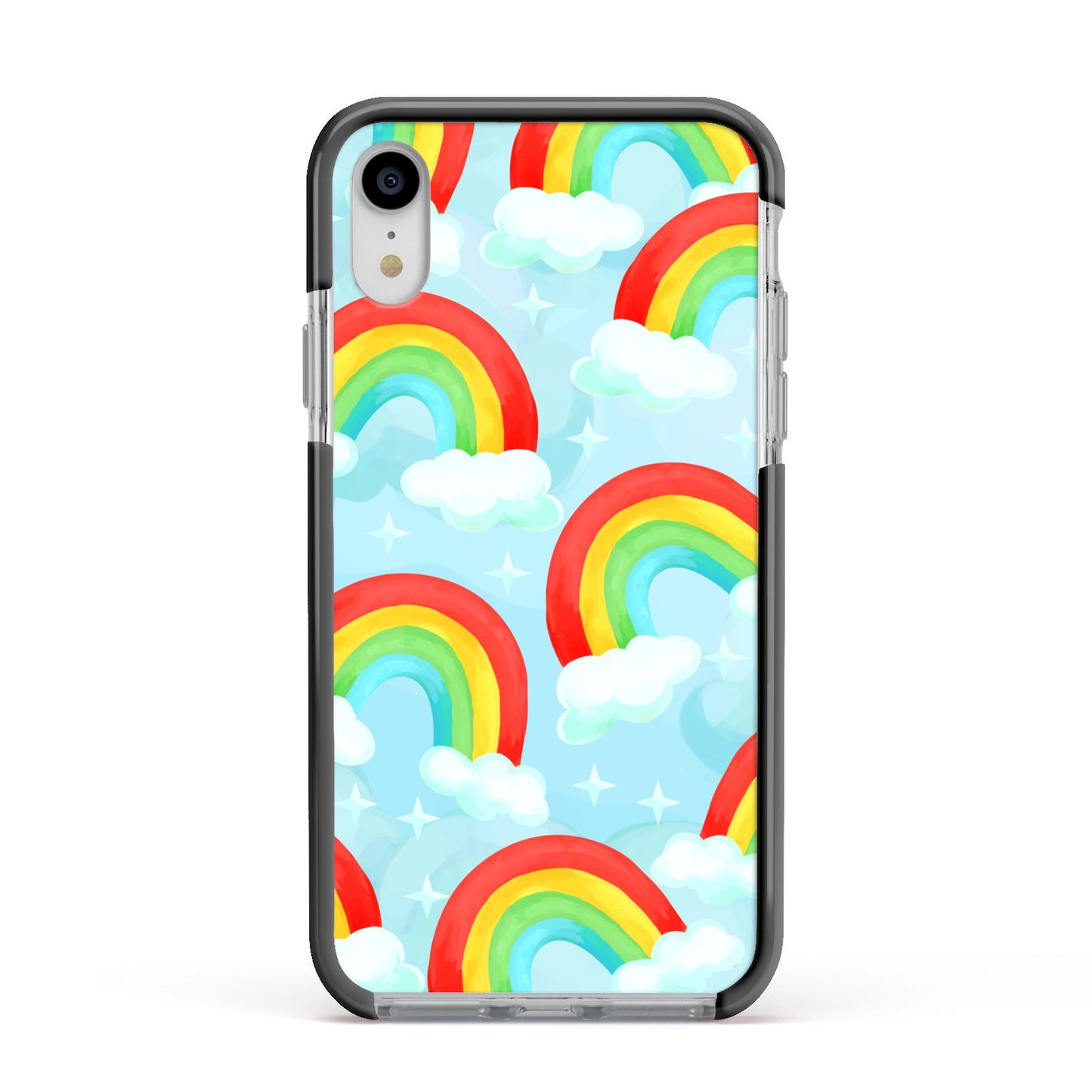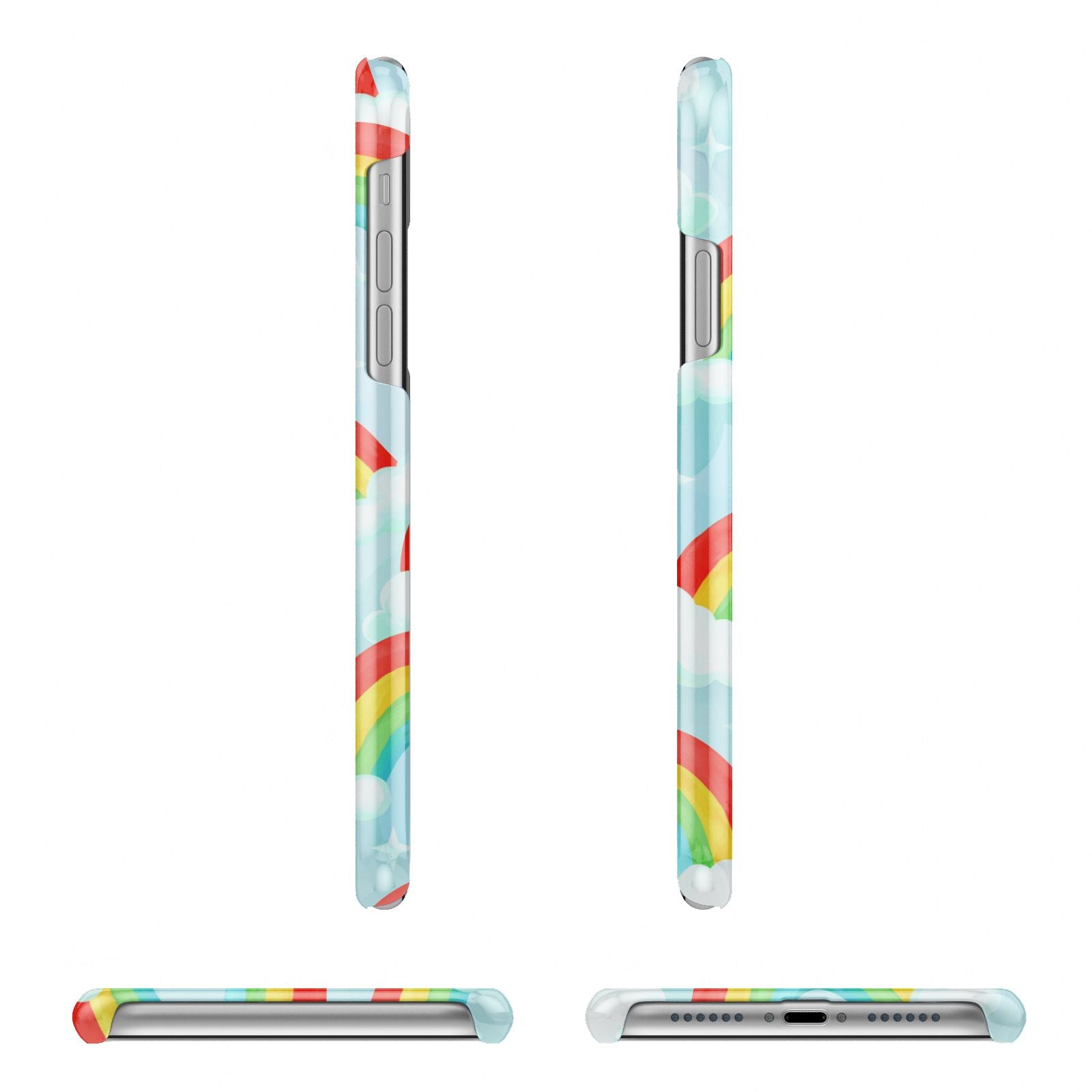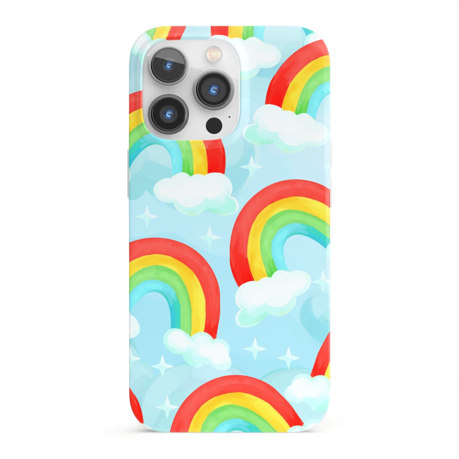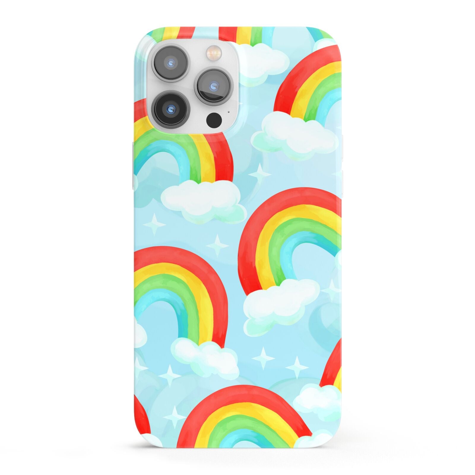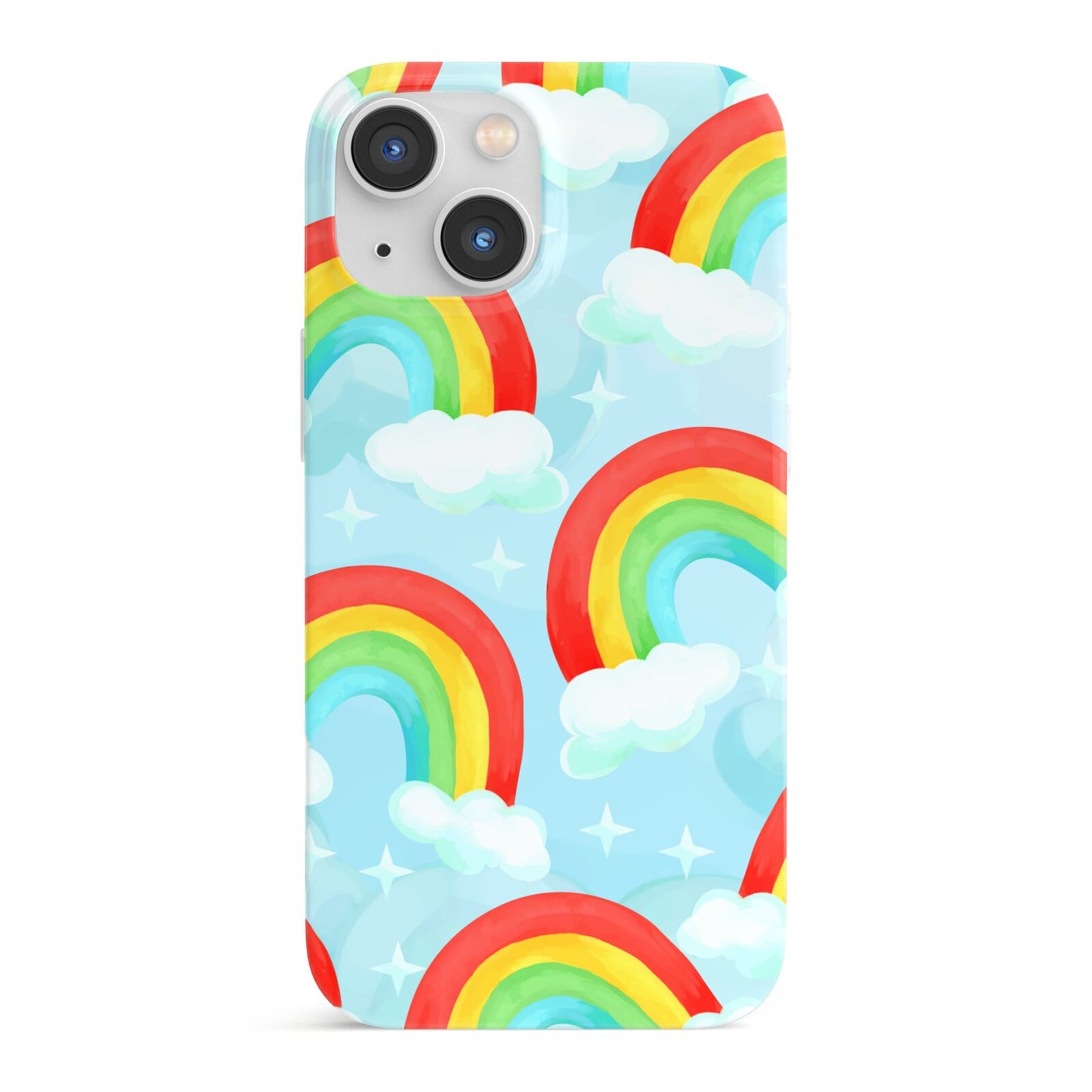 Our beautiful hand-drawn Rainbow Sky Apple iPhone Case is a fabulously colourful design, featuring rainbows and clouds with diamond stars. Fun and playful, this is a great way to add a dose of happiness and vibrancy to our phone case products. This design is available across a number of our products to allow you to complete a set.