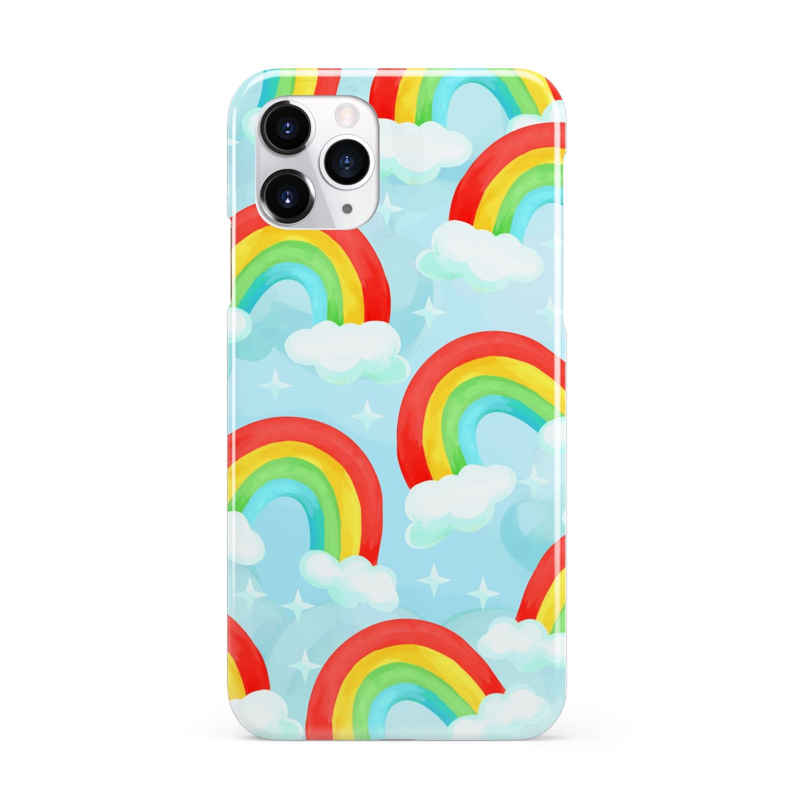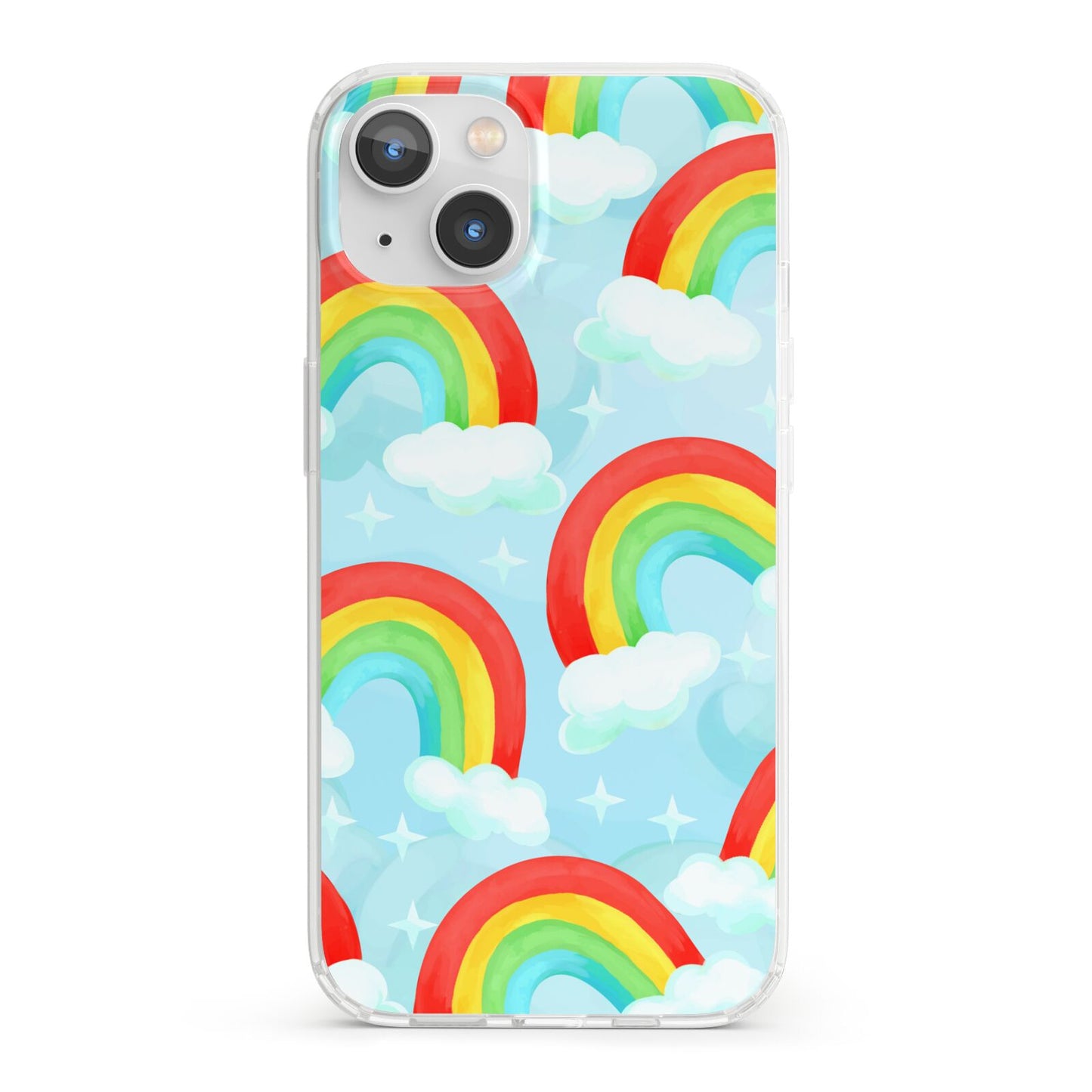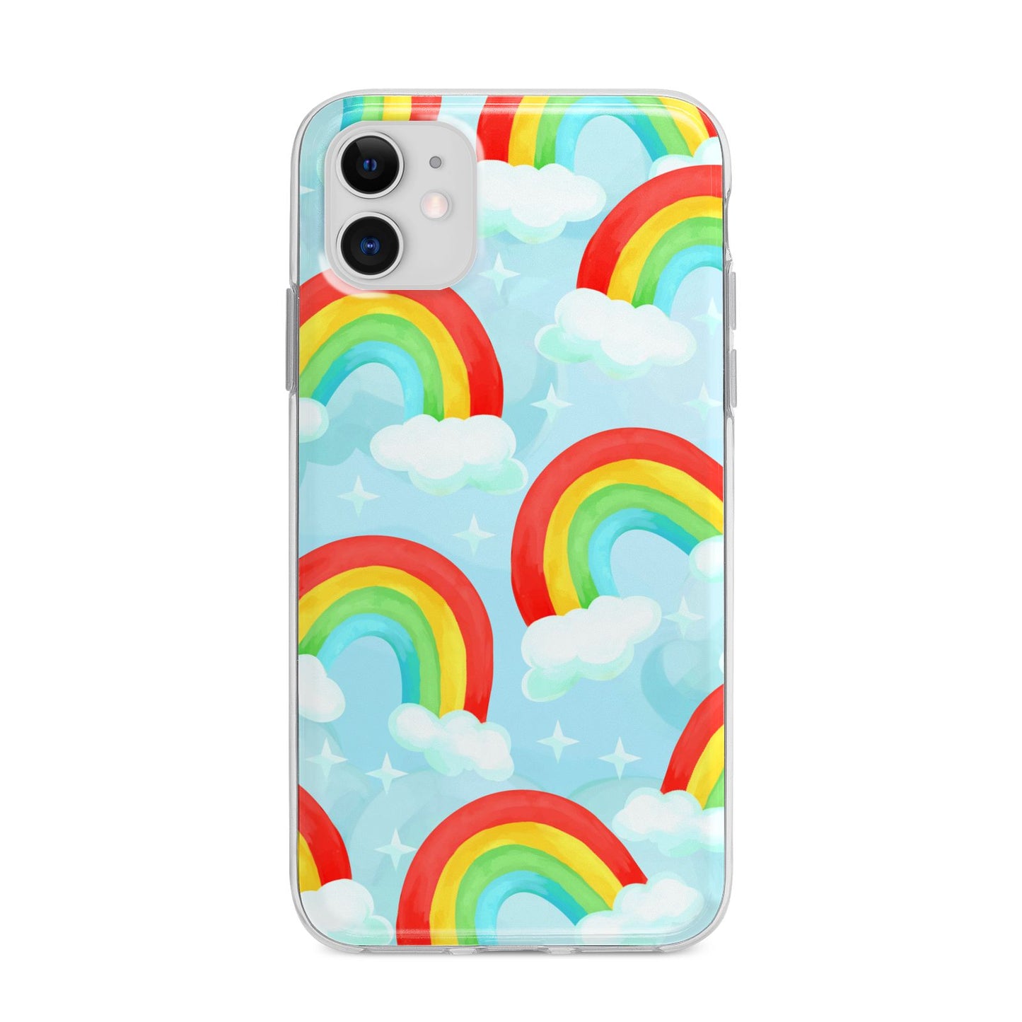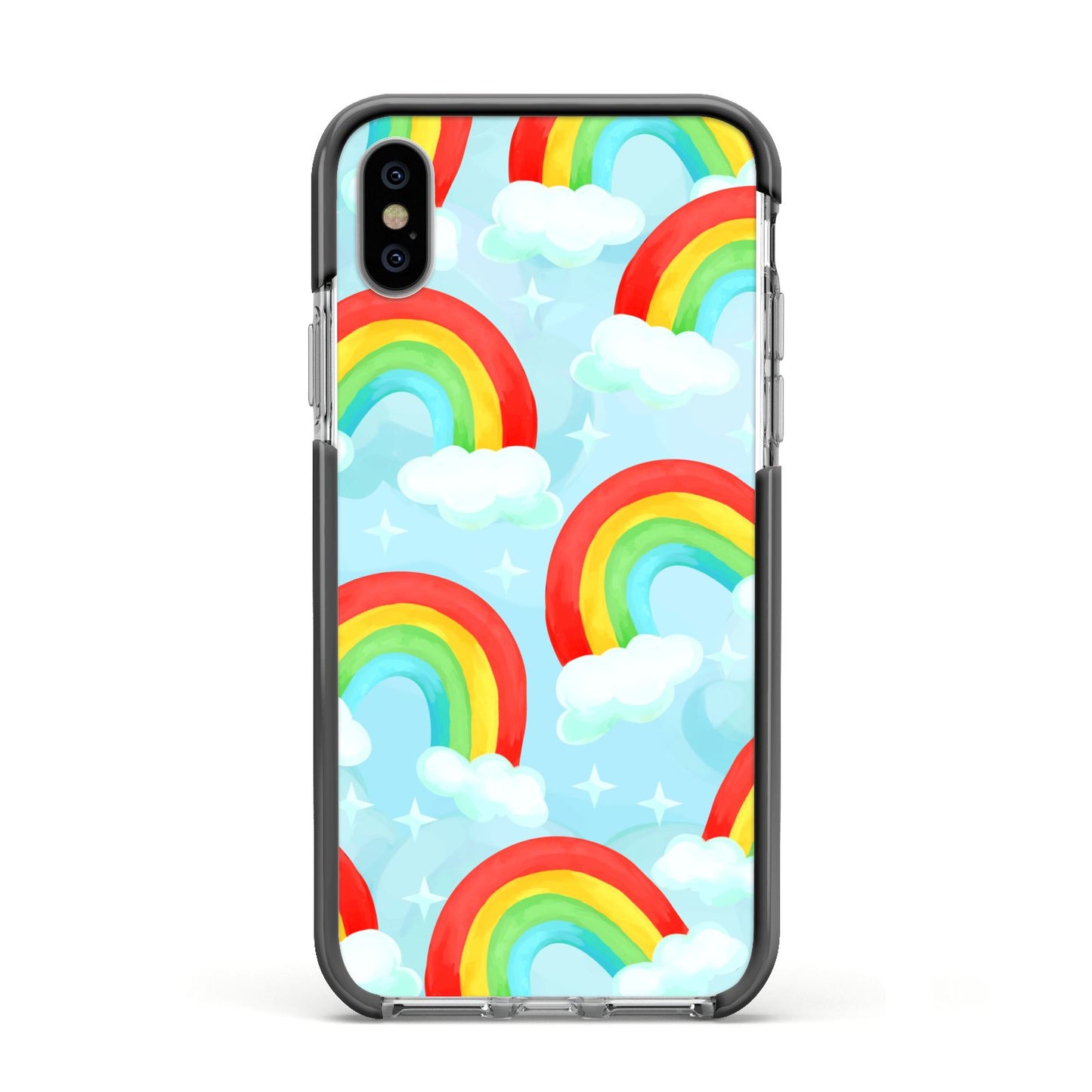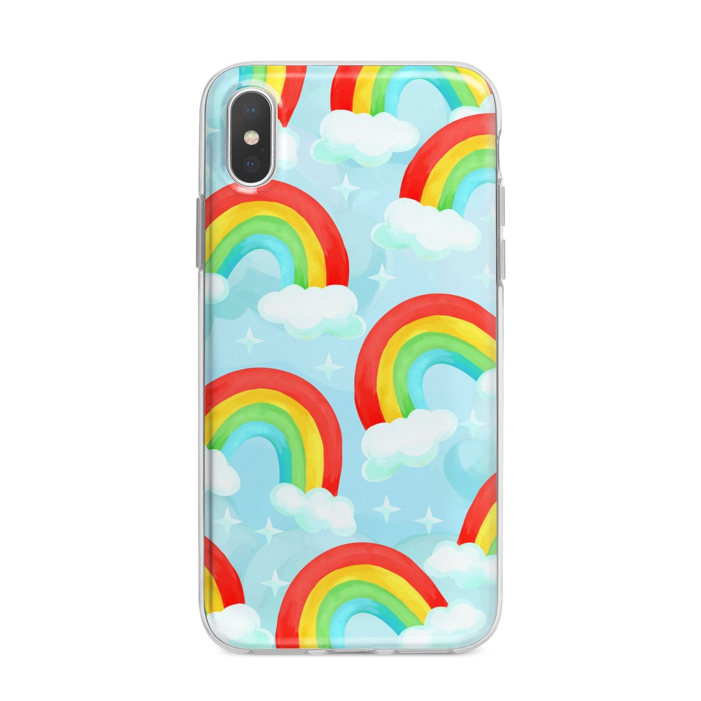 Our beautiful hand-drawn Rainbow Sky Apple iPhone Case is a fabulously colourful design, featuring rainbows and clouds with diamond stars. Fun and playful, this is a great way to add a dose of happiness and vibrancy to our phone case products. This design is available across a number of our products to allow you to complete a set.