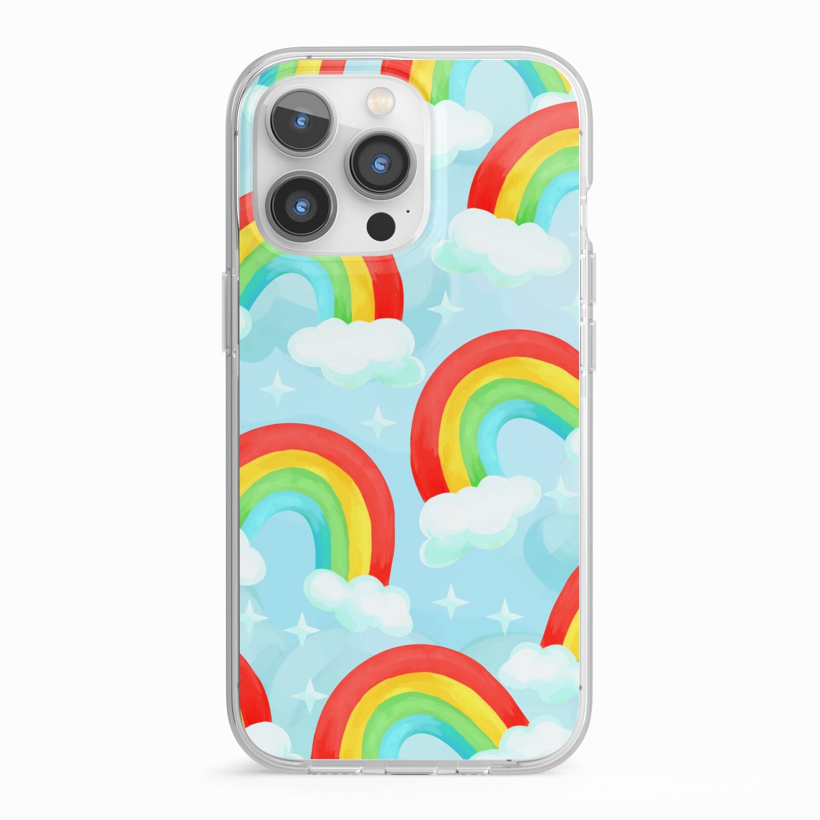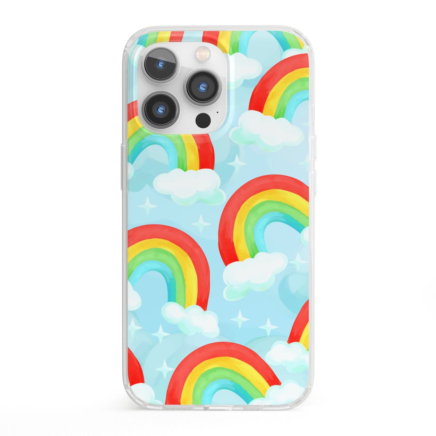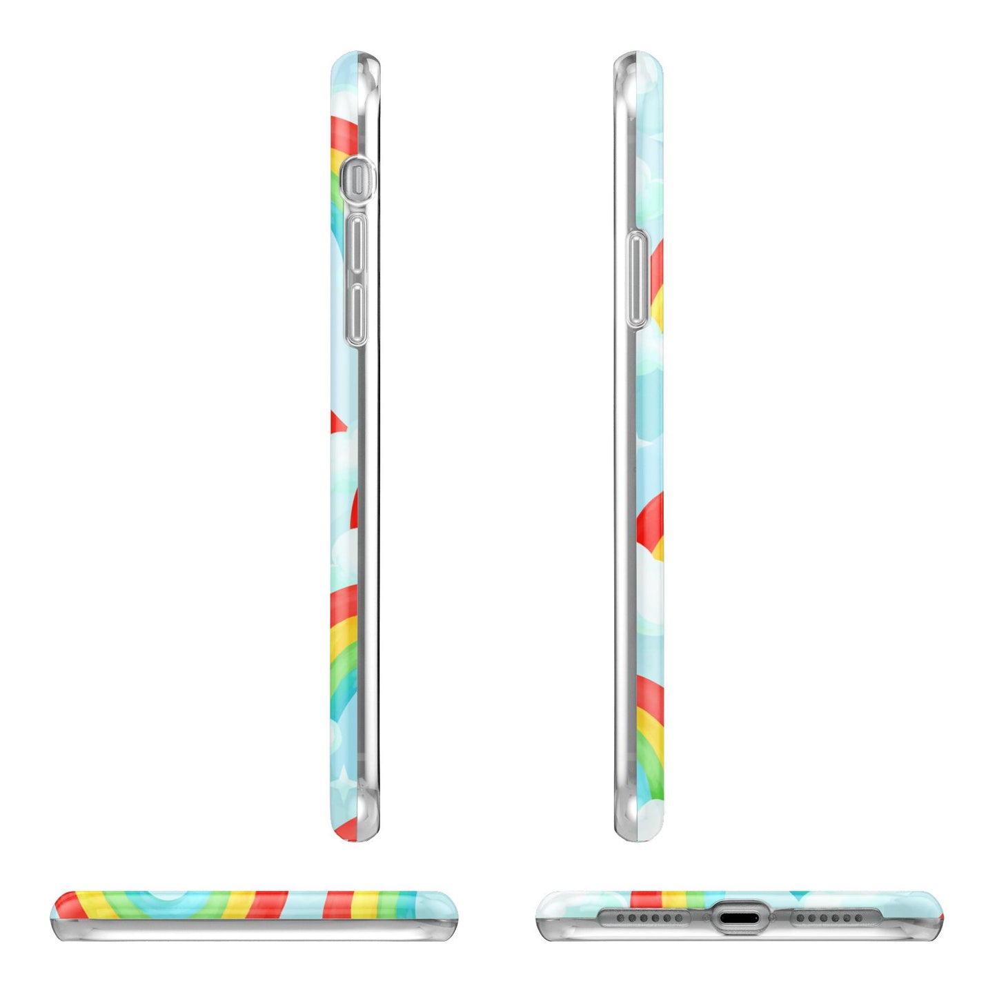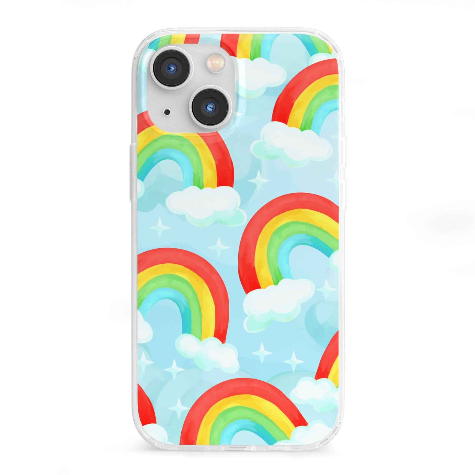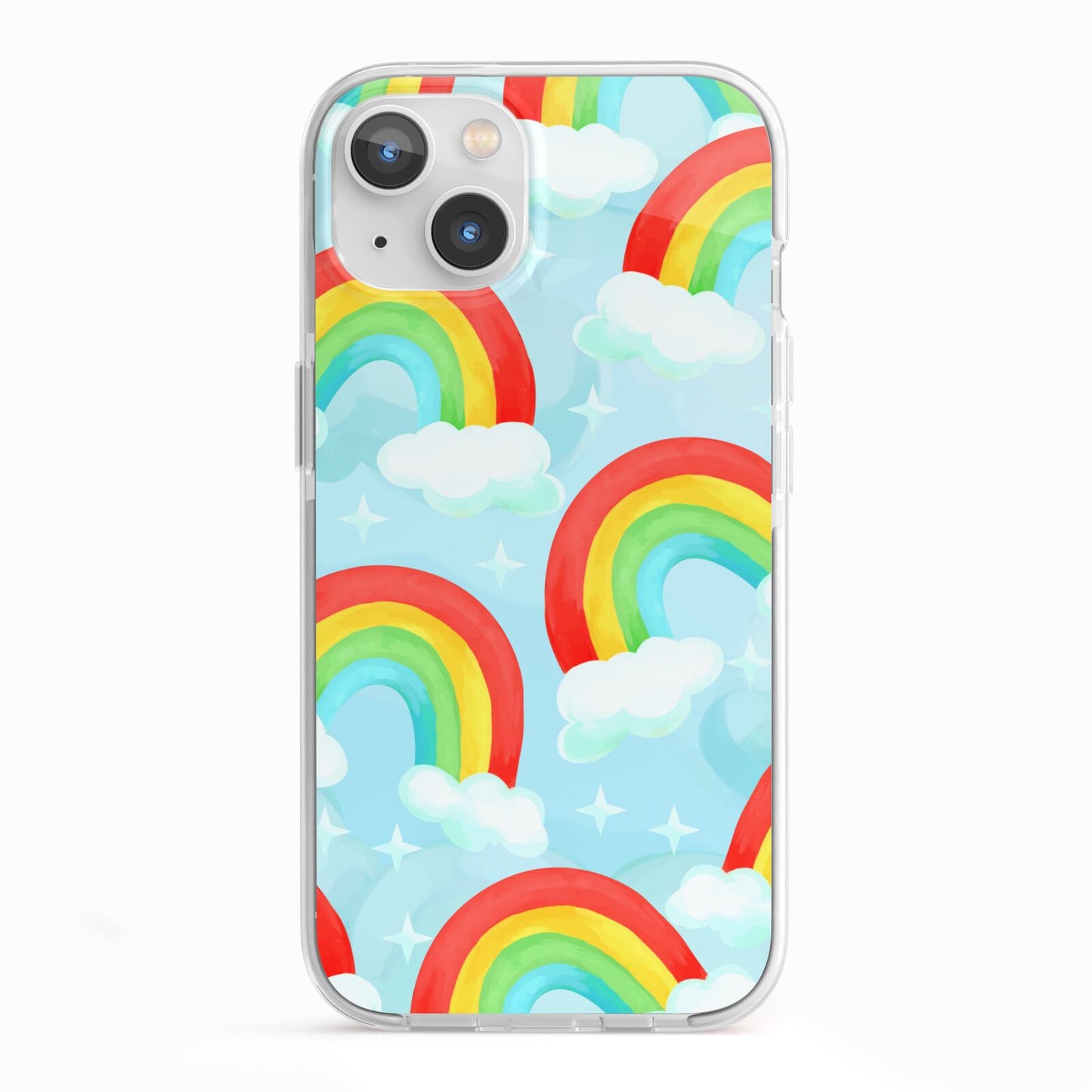 Our beautiful hand-drawn Rainbow Sky Apple iPhone Case is a fabulously colourful design, featuring rainbows and clouds with diamond stars. Fun and playful, this is a great way to add a dose of happiness and vibrancy to our phone case products. This design is available across a number of our products to allow you to complete a set.