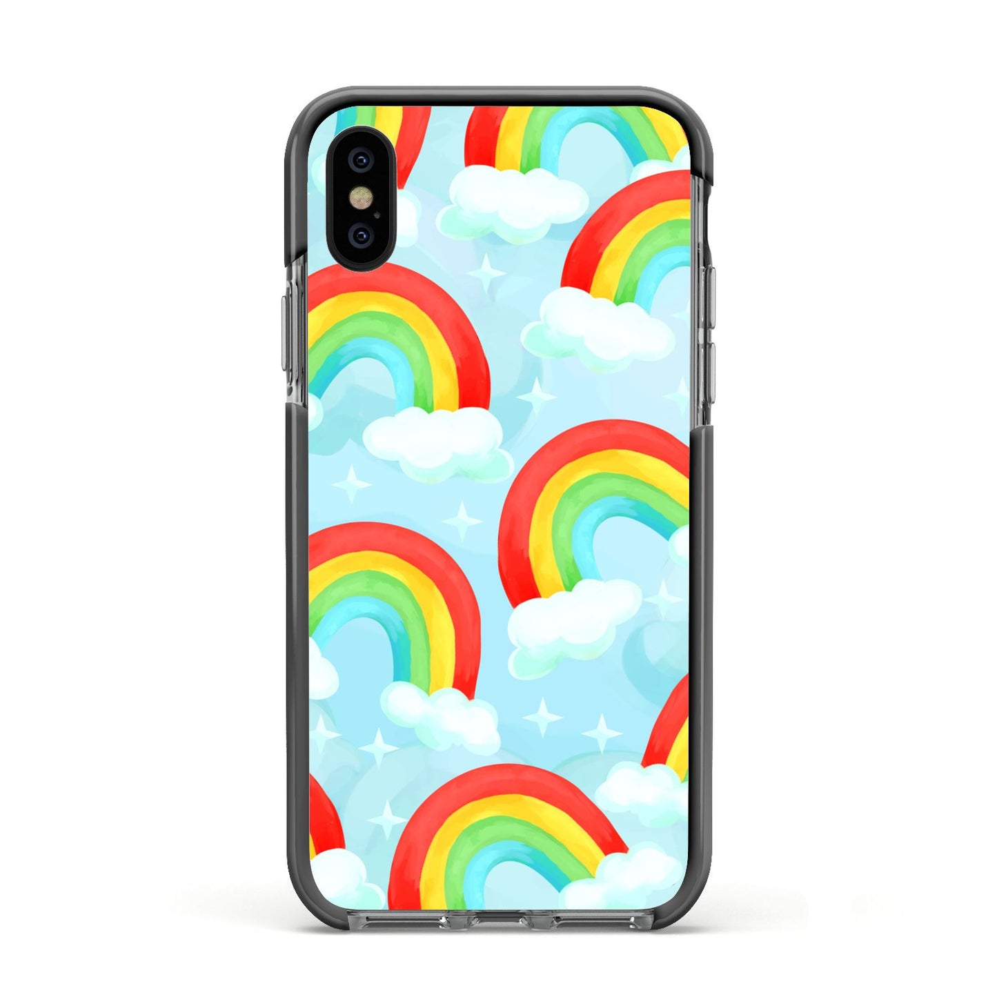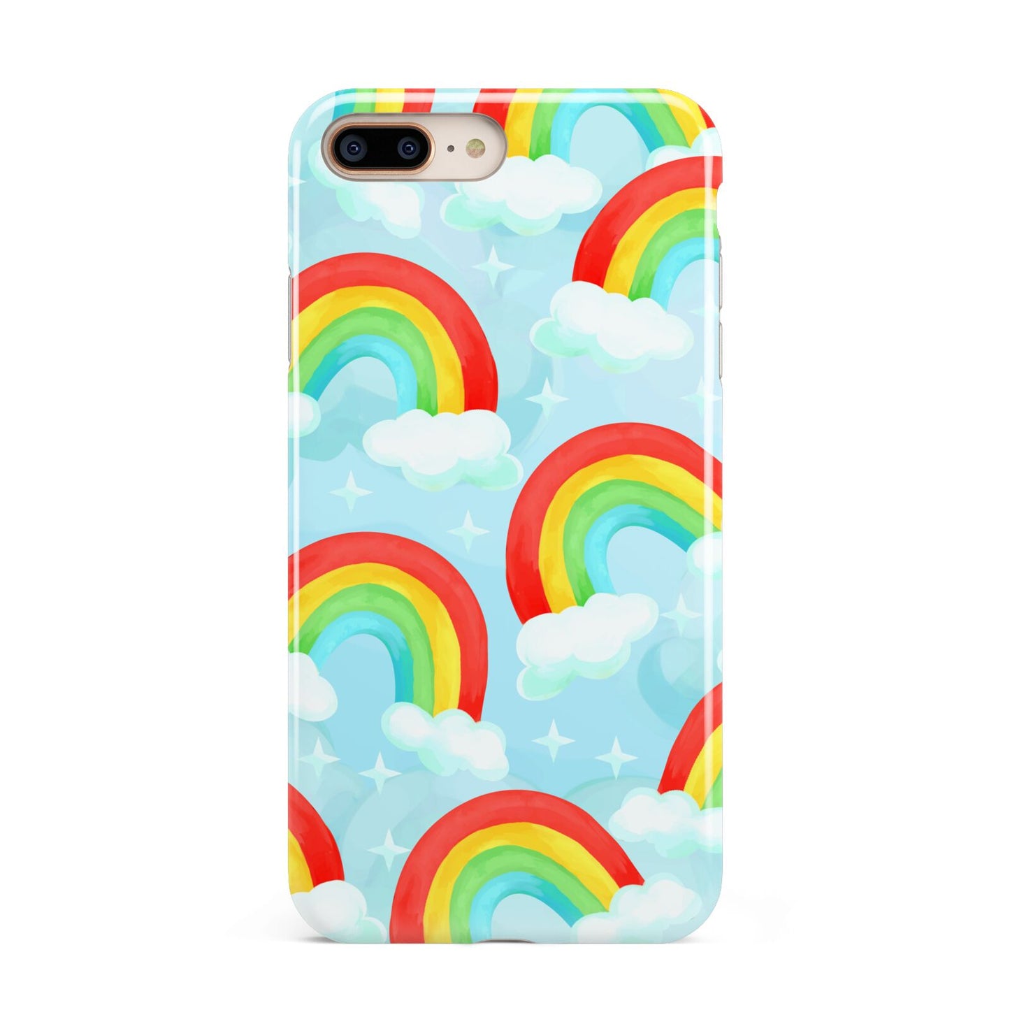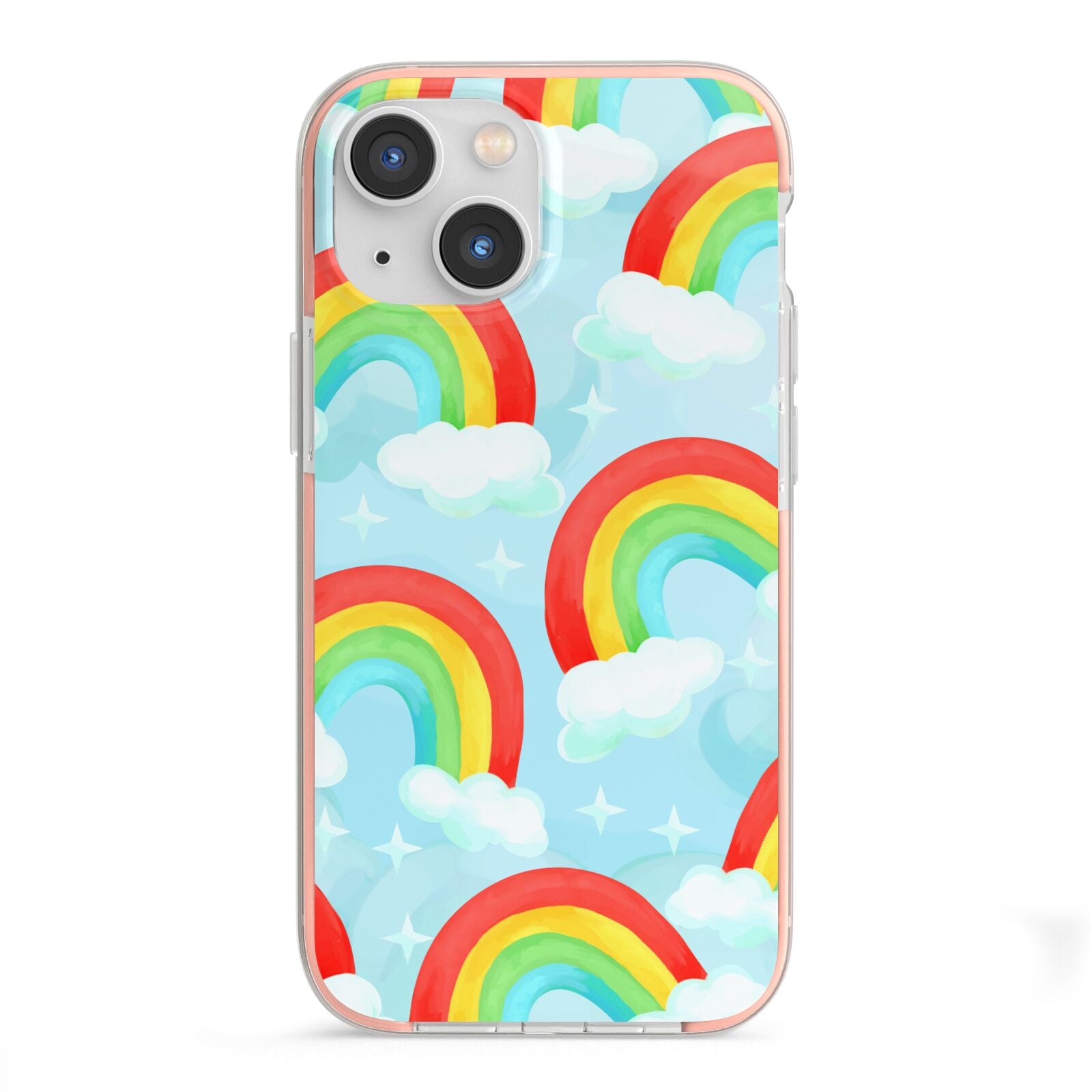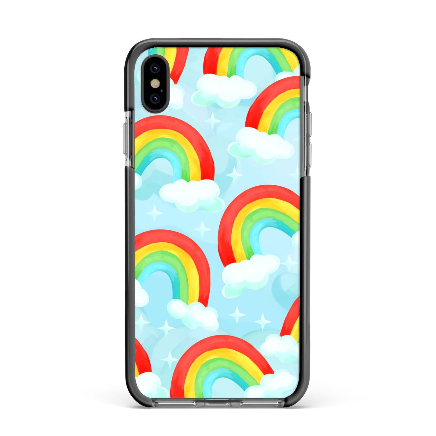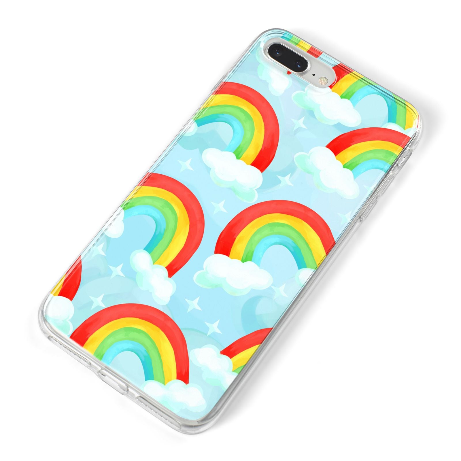 Our beautiful hand-drawn Rainbow Sky Apple iPhone Case is a fabulously colourful design, featuring rainbows and clouds with diamond stars. Fun and playful, this is a great way to add a dose of happiness and vibrancy to our phone case products. This design is available across a number of our products to allow you to complete a set.