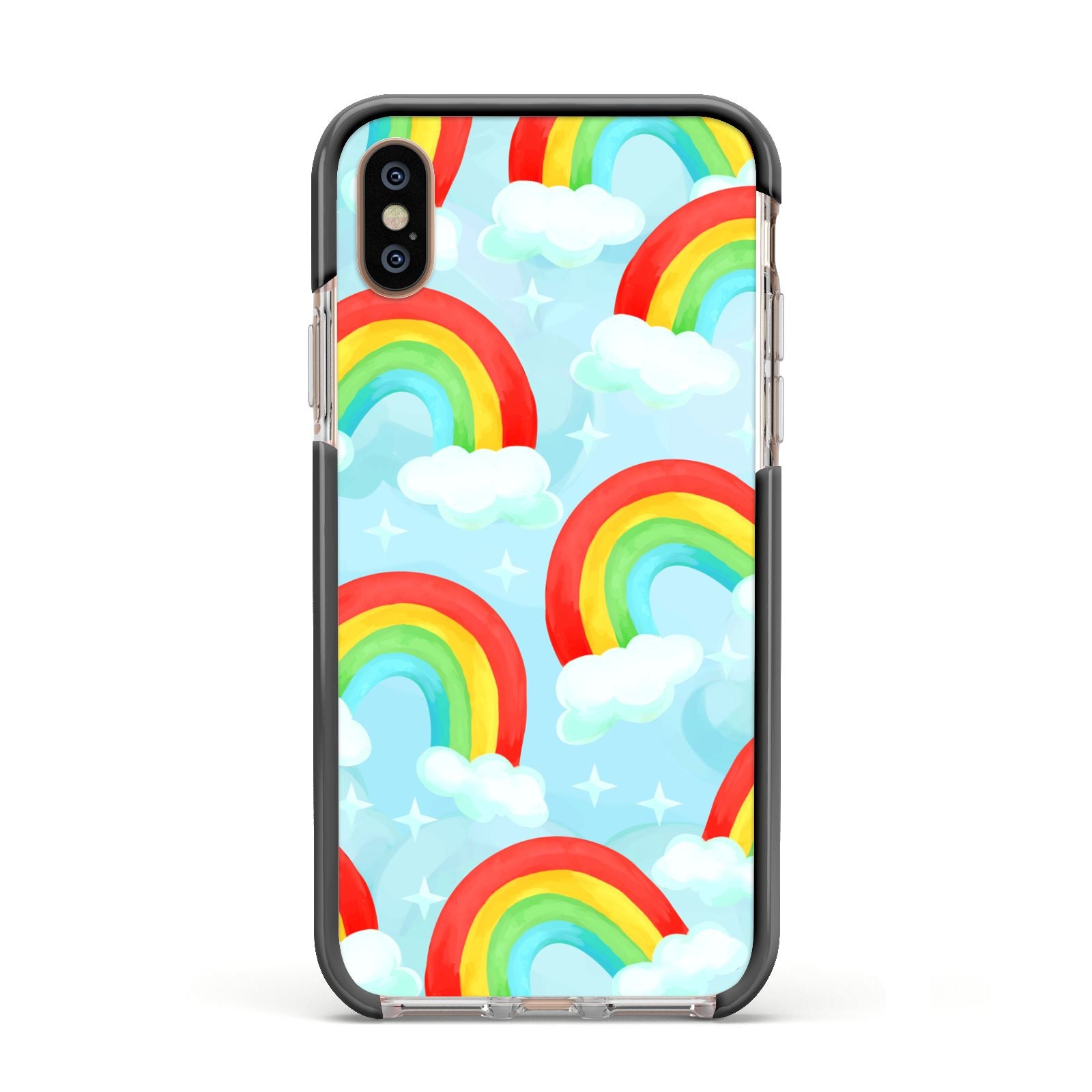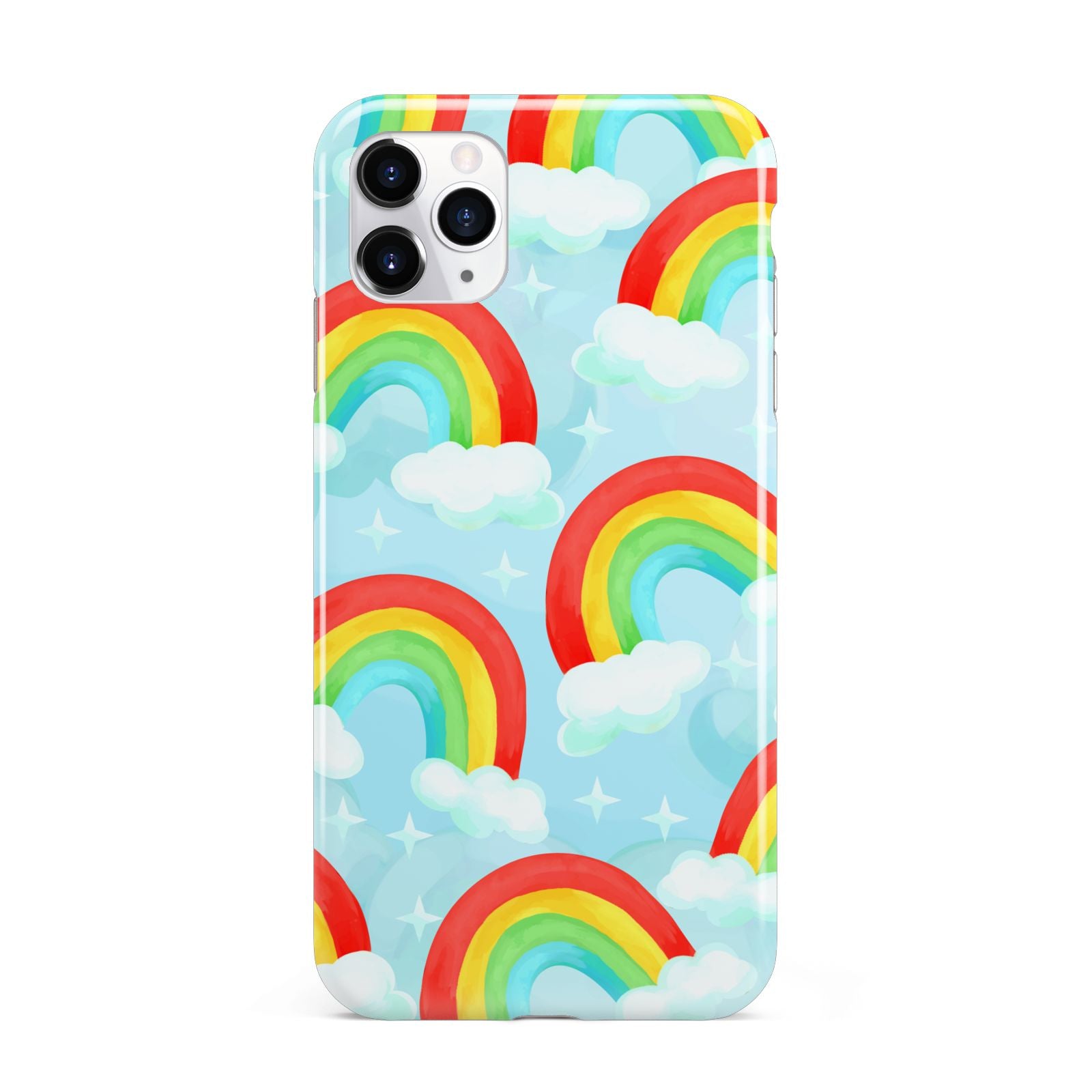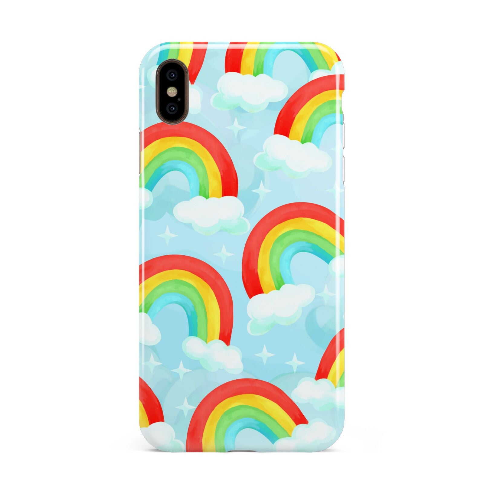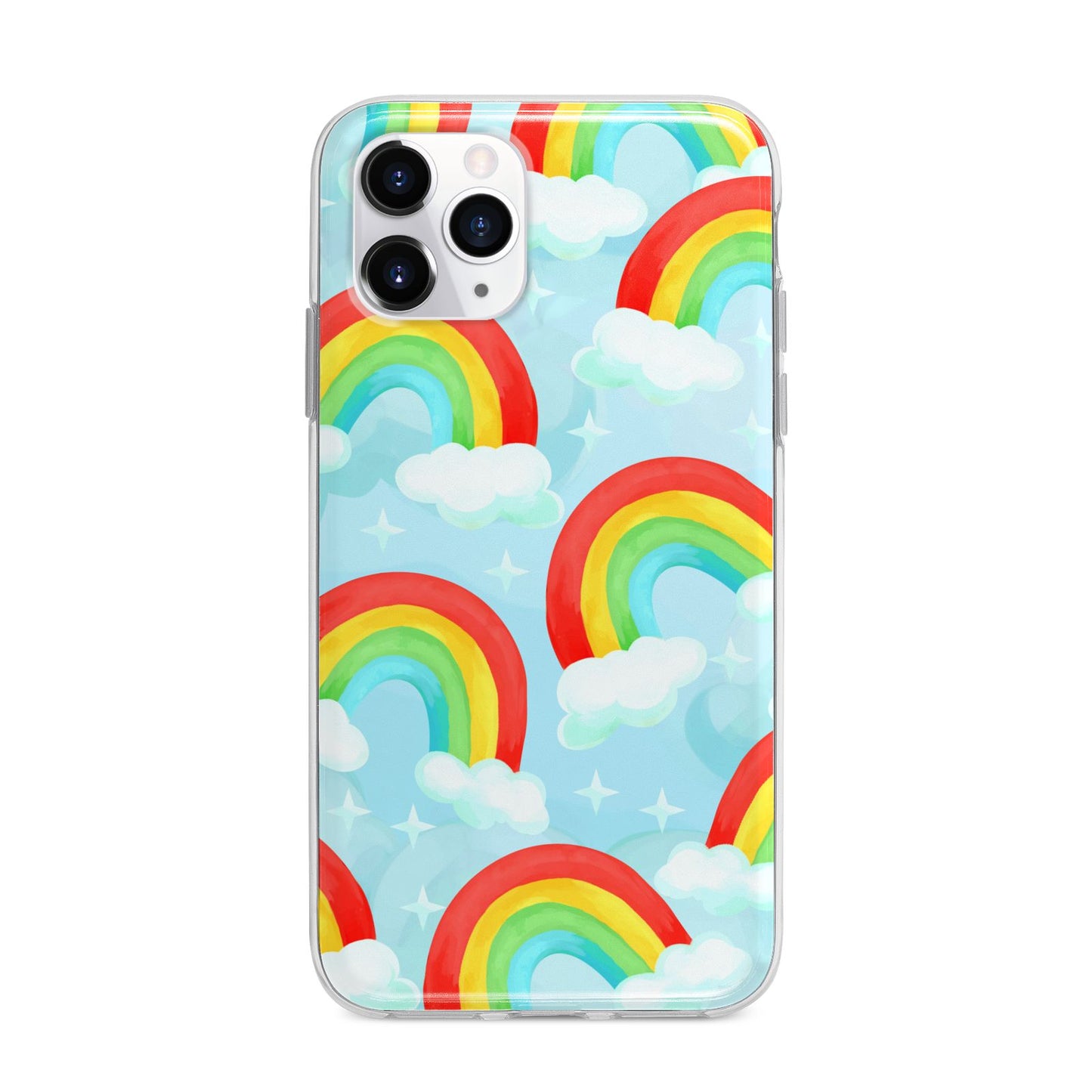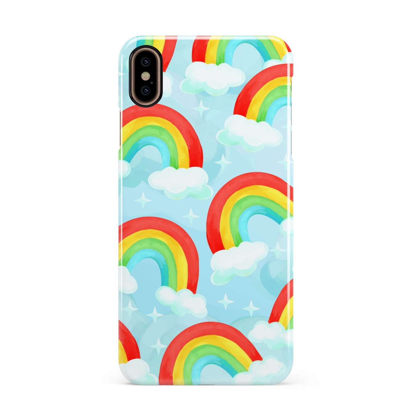 Our beautiful hand-drawn Rainbow Sky Apple iPhone Case is a fabulously colourful design, featuring rainbows and clouds with diamond stars. Fun and playful, this is a great way to add a dose of happiness and vibrancy to our phone case products. This design is available across a number of our products to allow you to complete a set.