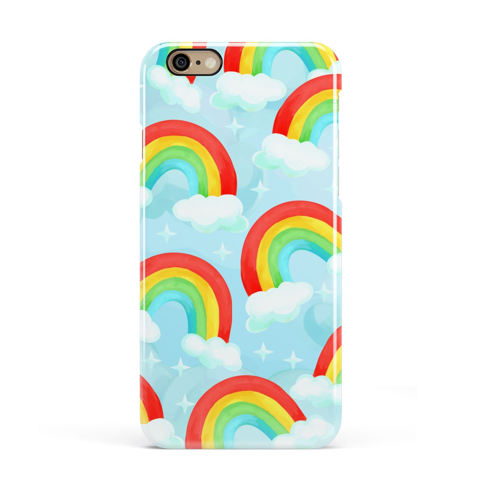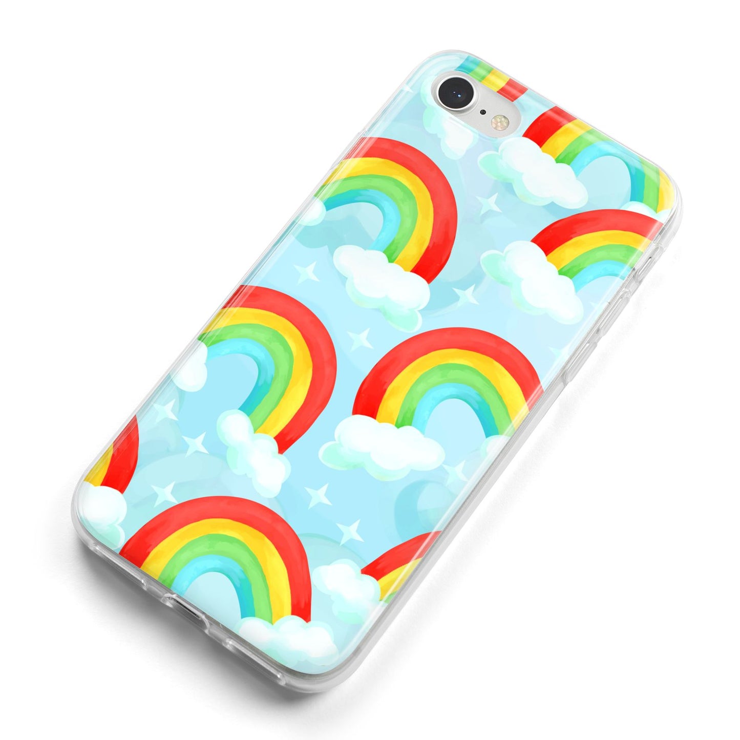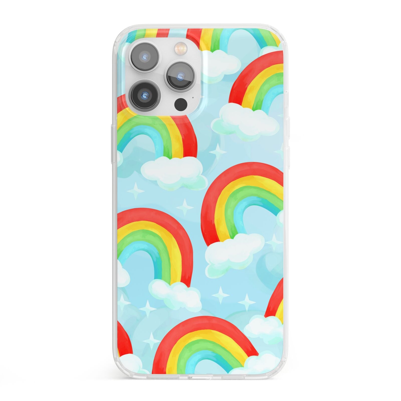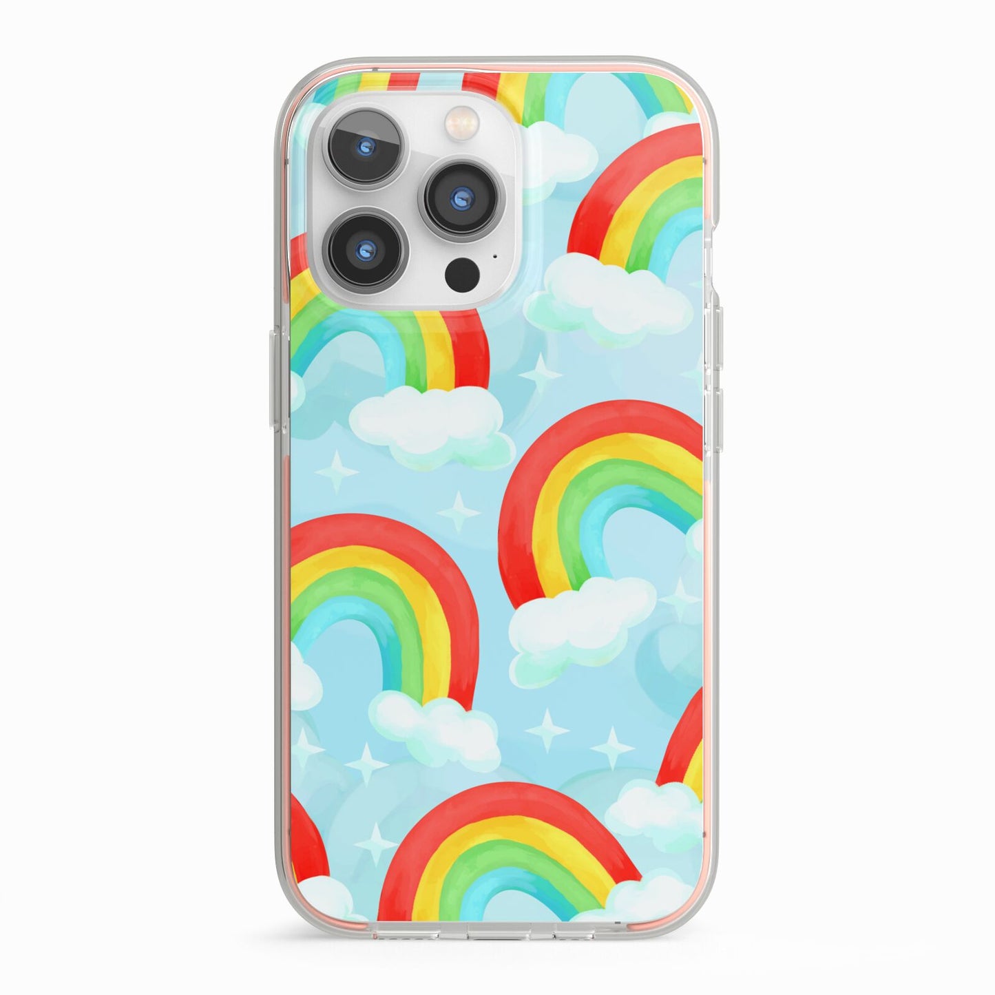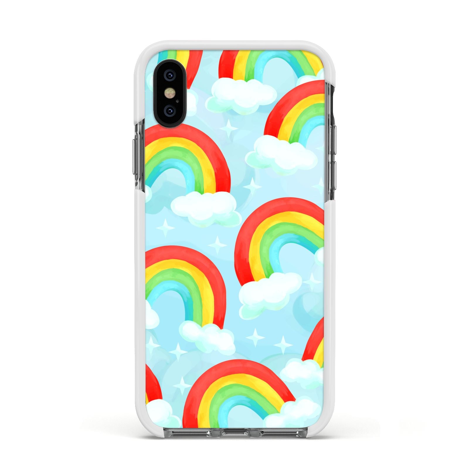 Our beautiful hand-drawn Rainbow Sky Apple iPhone Case is a fabulously colourful design, featuring rainbows and clouds with diamond stars. Fun and playful, this is a great way to add a dose of happiness and vibrancy to our phone case products. This design is available across a number of our products to allow you to complete a set.