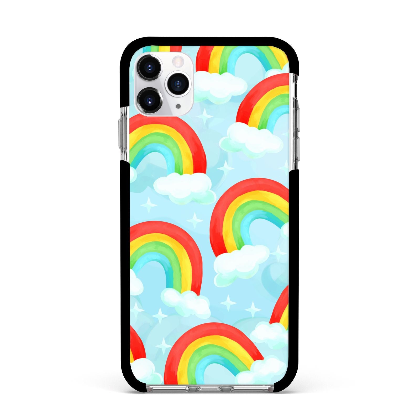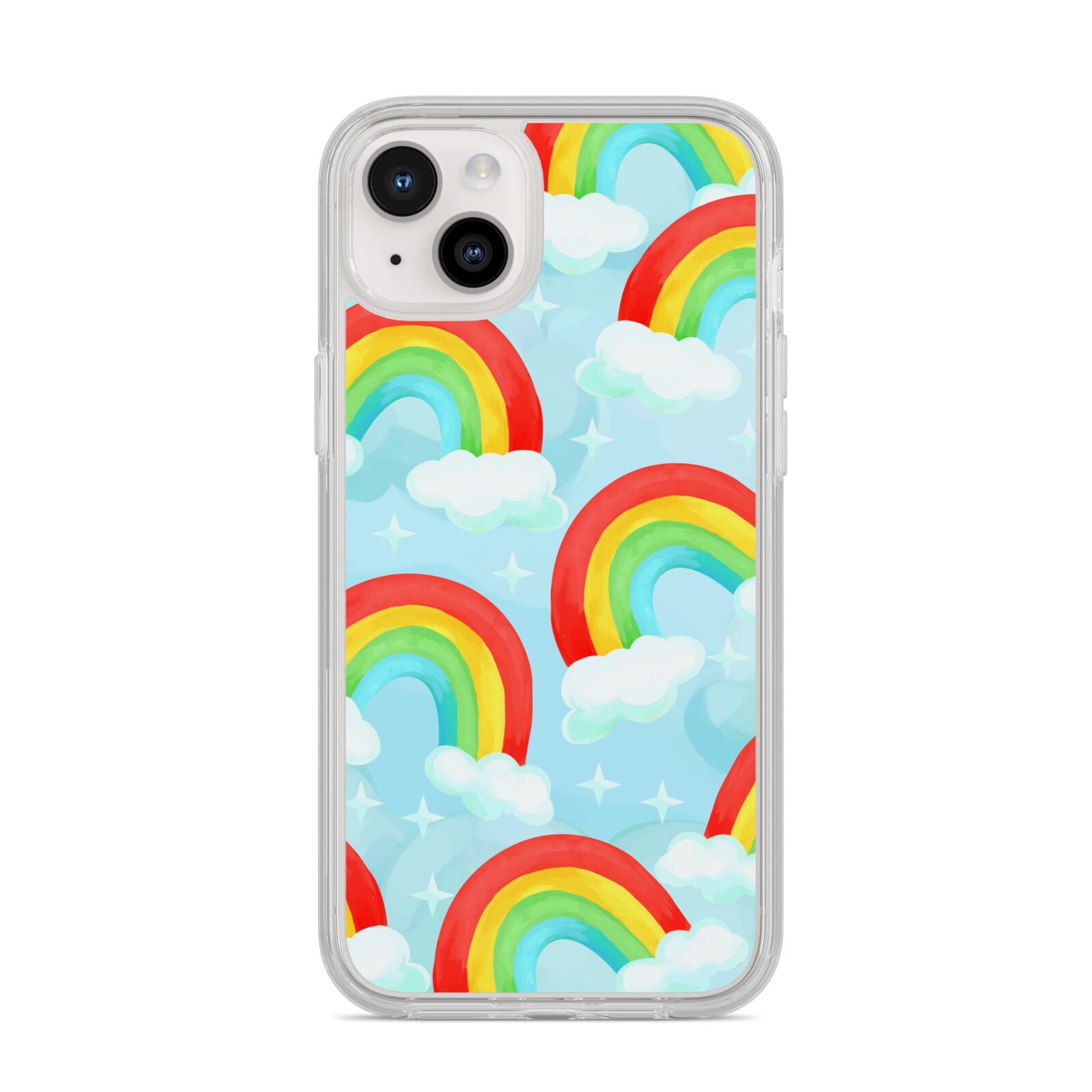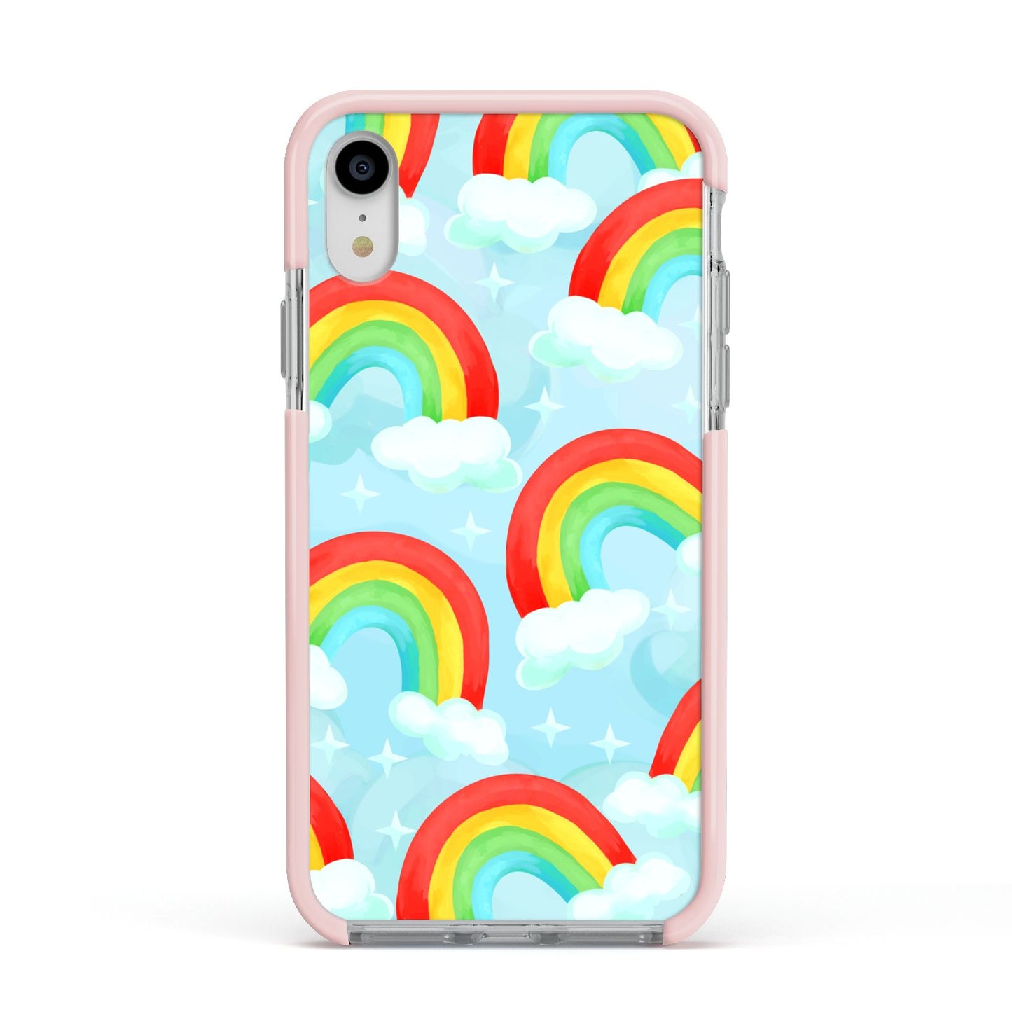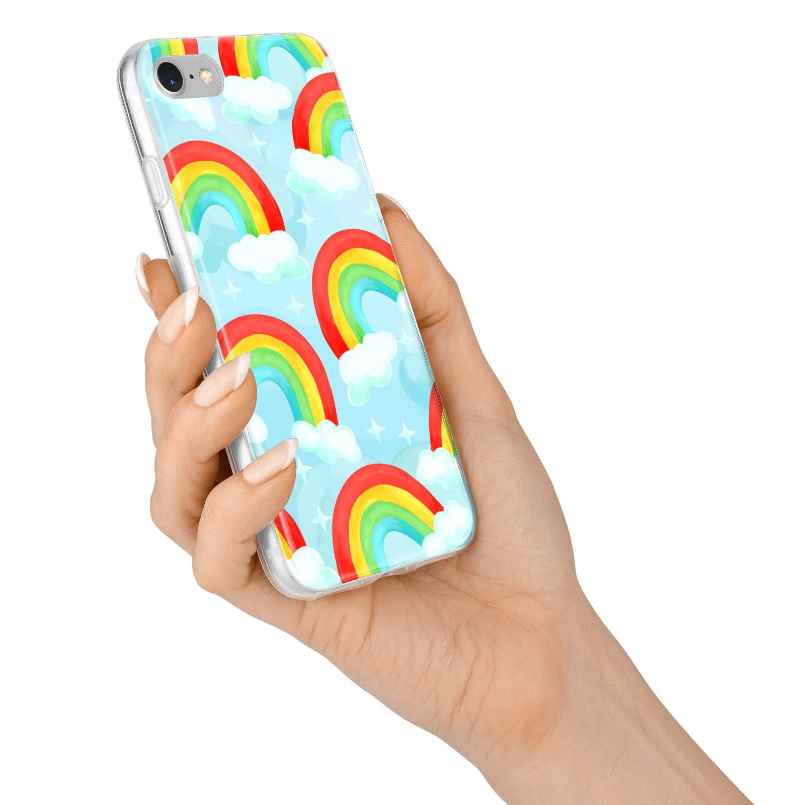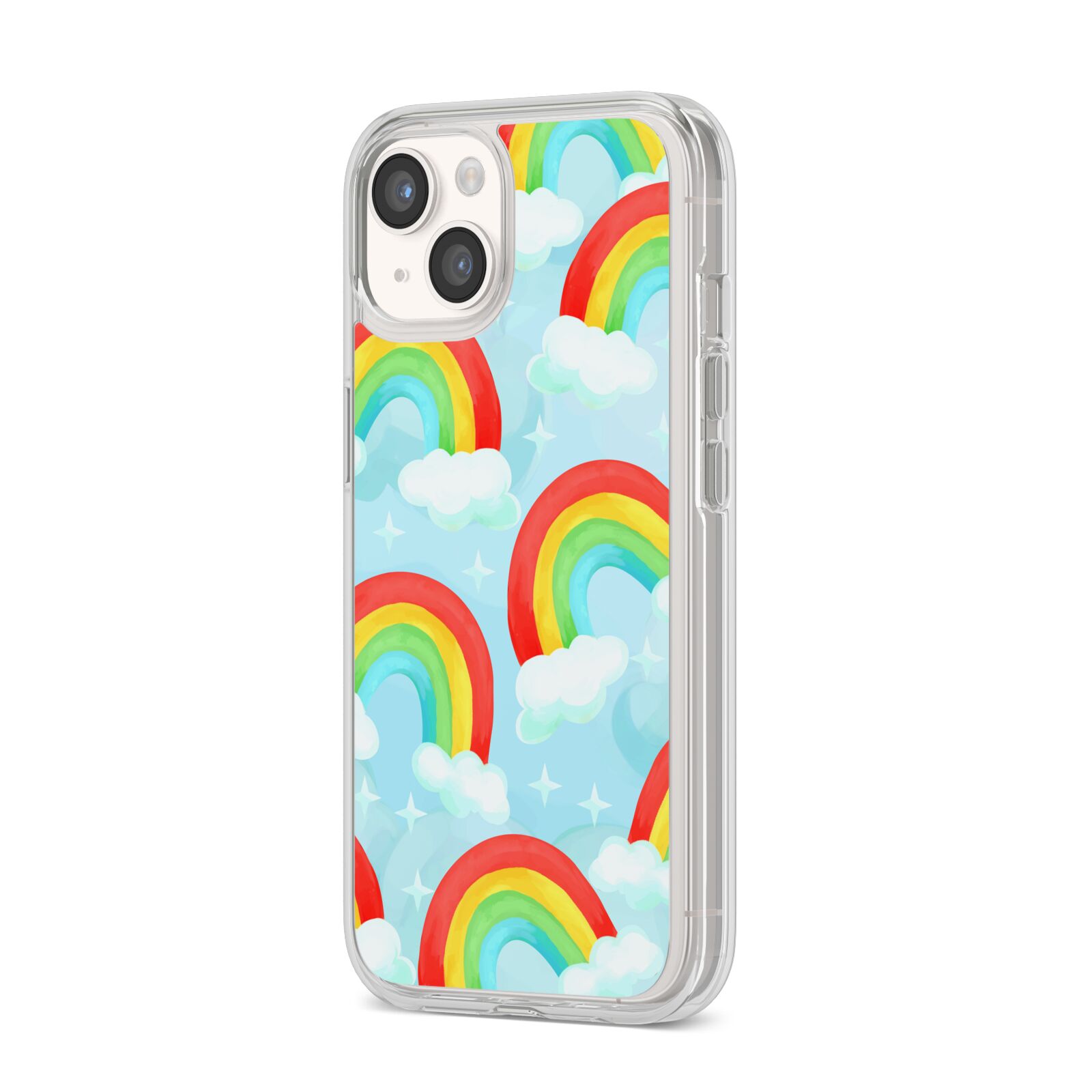 Our beautiful hand-drawn Rainbow Sky Apple iPhone Case is a fabulously colourful design, featuring rainbows and clouds with diamond stars. Fun and playful, this is a great way to add a dose of happiness and vibrancy to our phone case products. This design is available across a number of our products to allow you to complete a set.