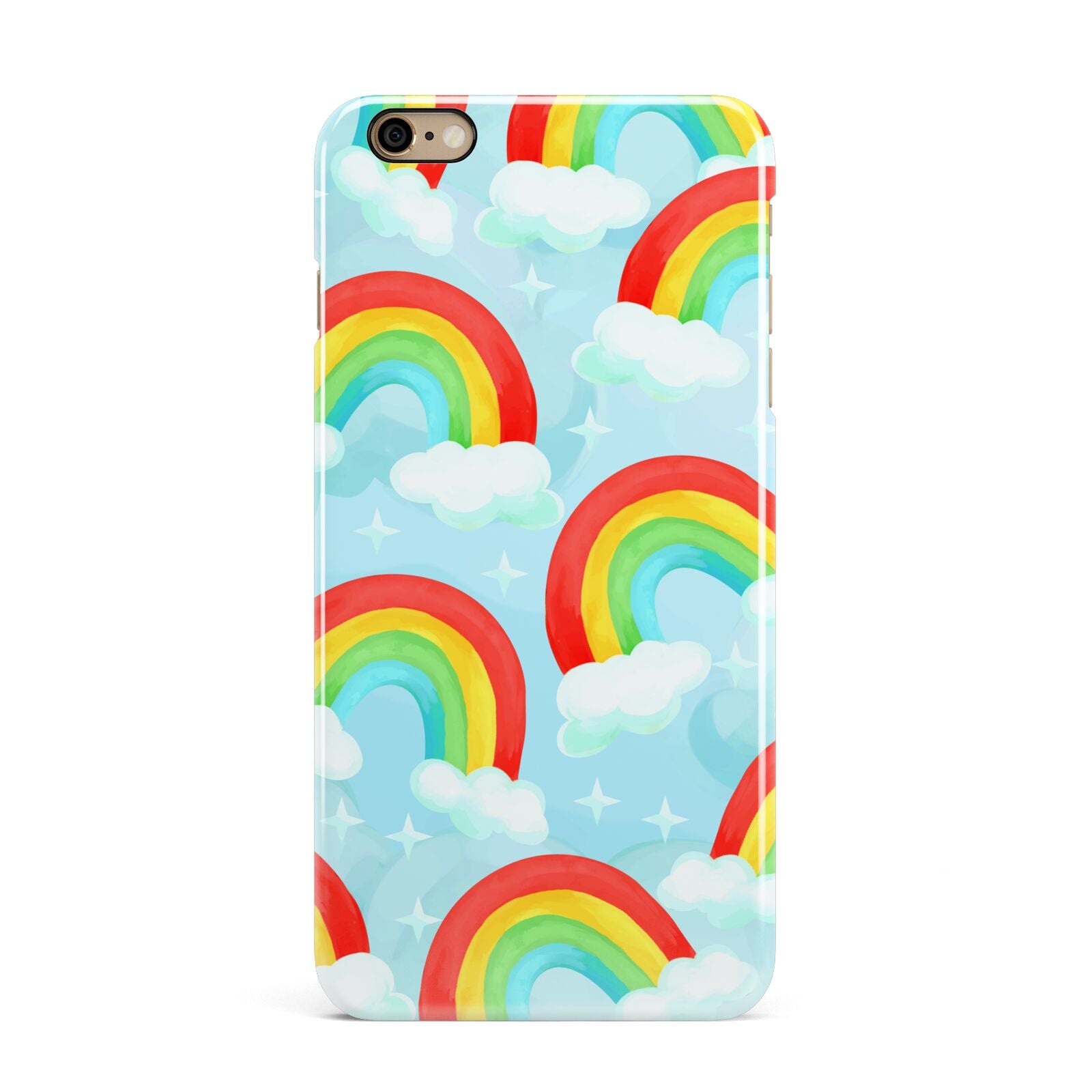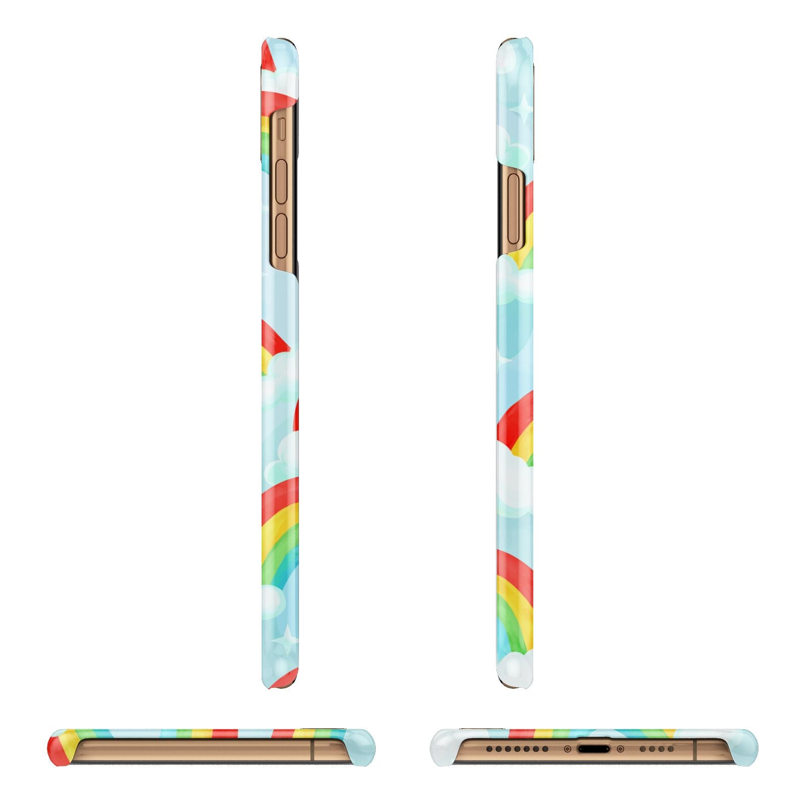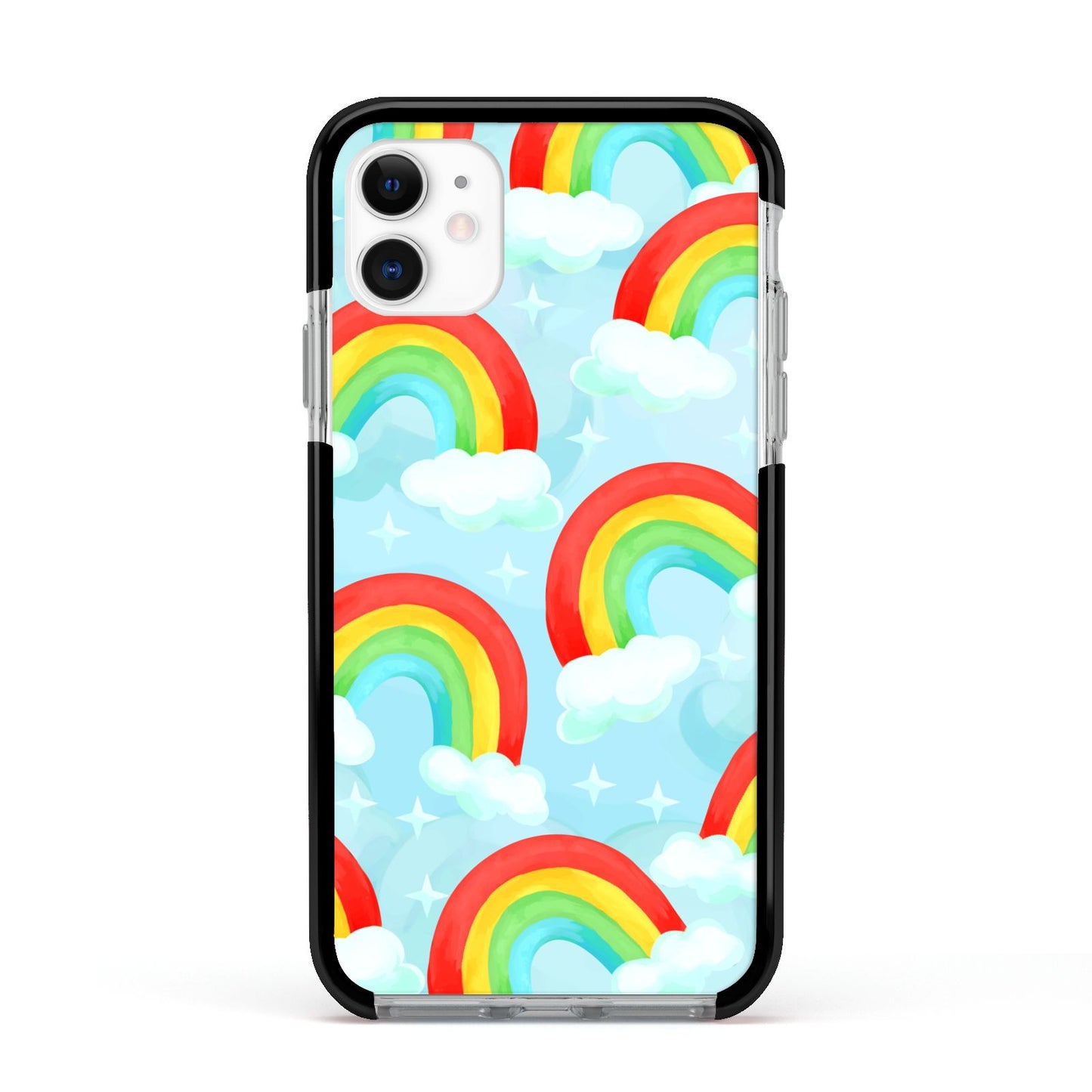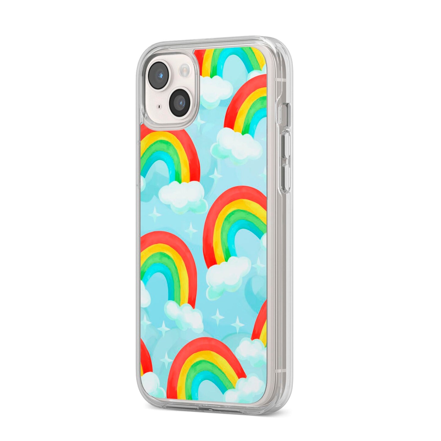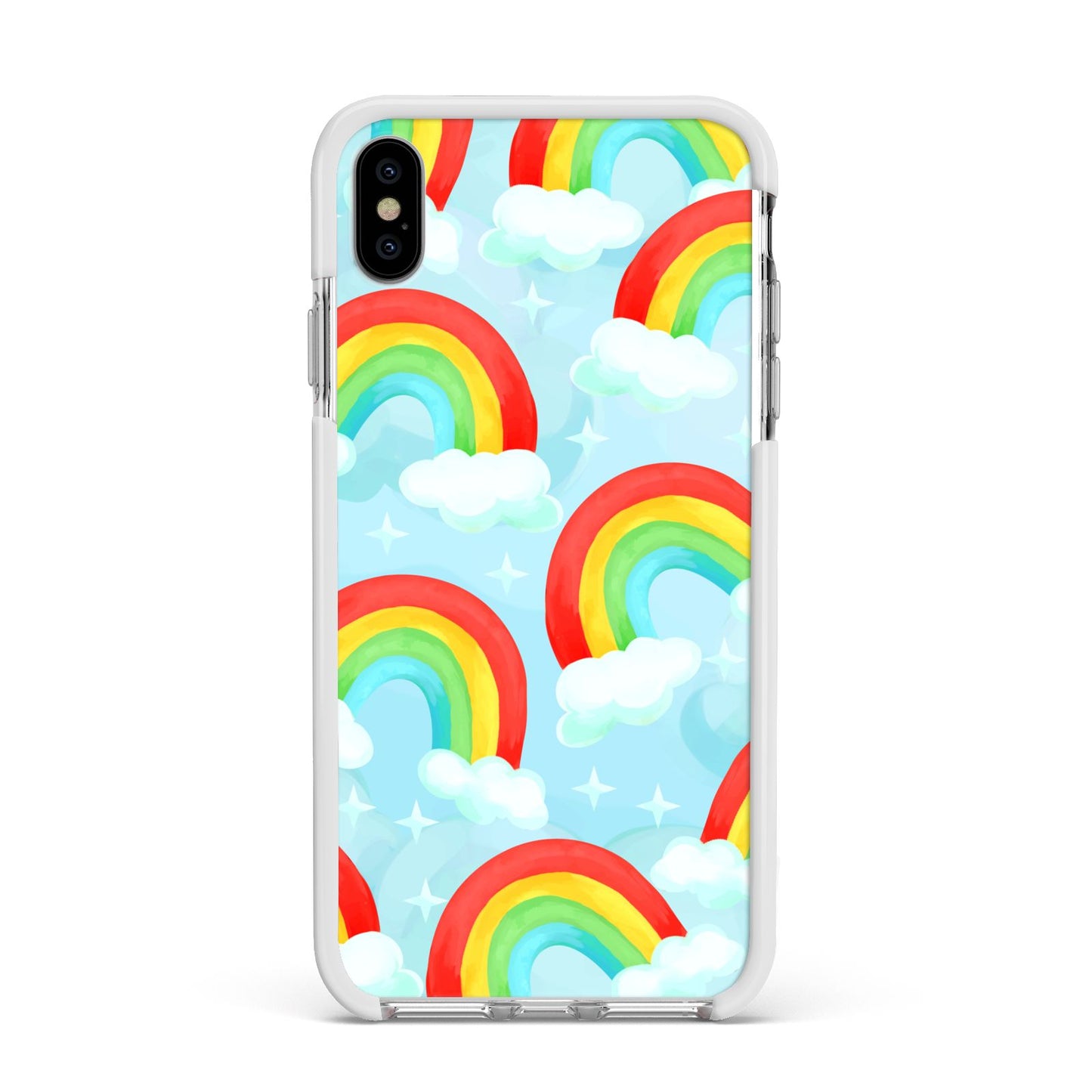 Our beautiful hand-drawn Rainbow Sky Apple iPhone Case is a fabulously colourful design, featuring rainbows and clouds with diamond stars. Fun and playful, this is a great way to add a dose of happiness and vibrancy to our phone case products. This design is available across a number of our products to allow you to complete a set.