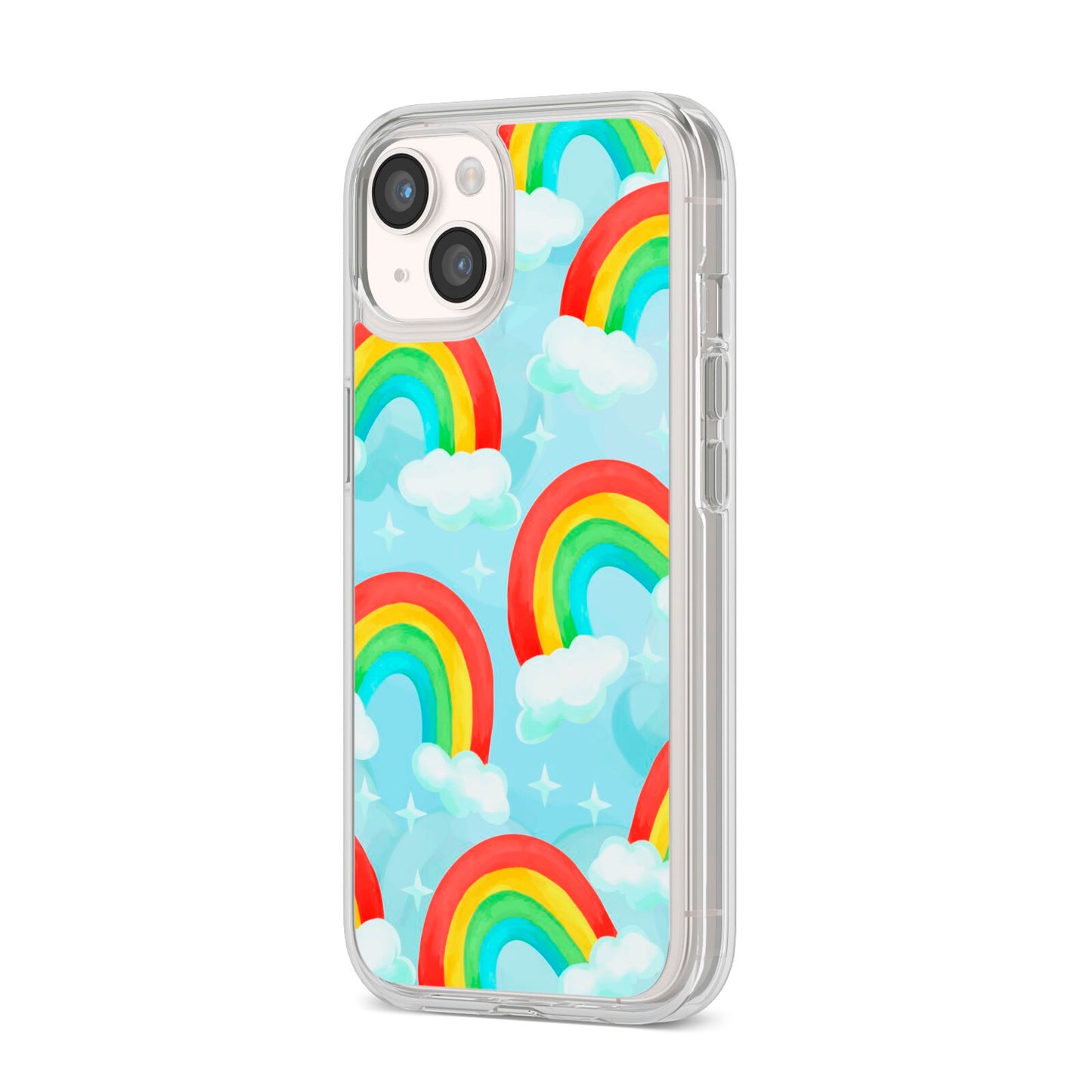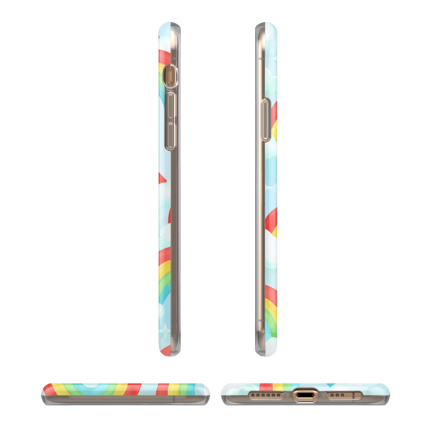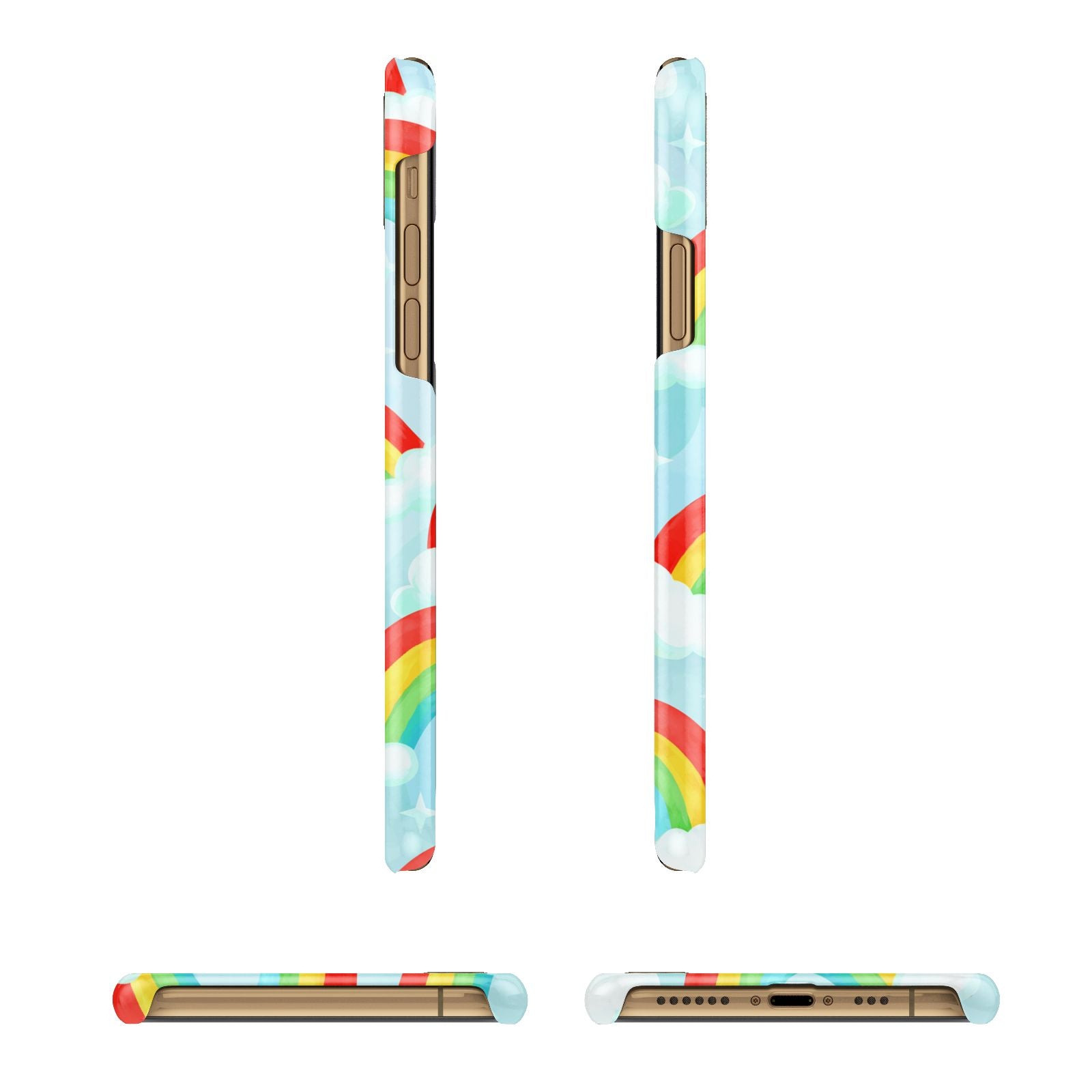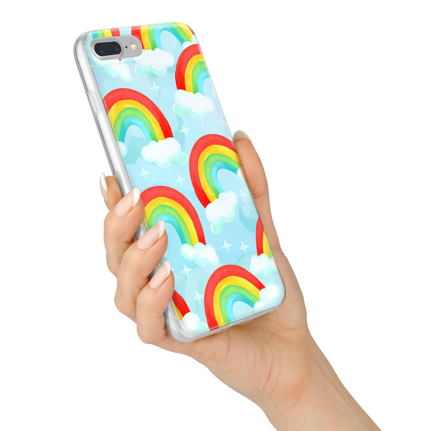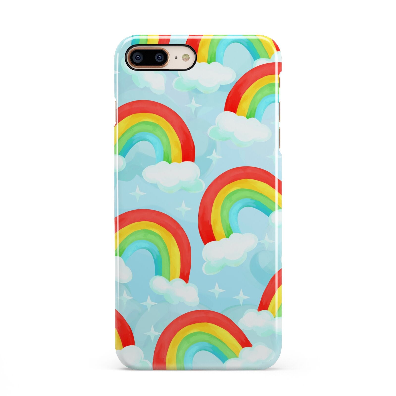 Our beautiful hand-drawn Rainbow Sky Apple iPhone Case is a fabulously colourful design, featuring rainbows and clouds with diamond stars. Fun and playful, this is a great way to add a dose of happiness and vibrancy to our phone case products. This design is available across a number of our products to allow you to complete a set.