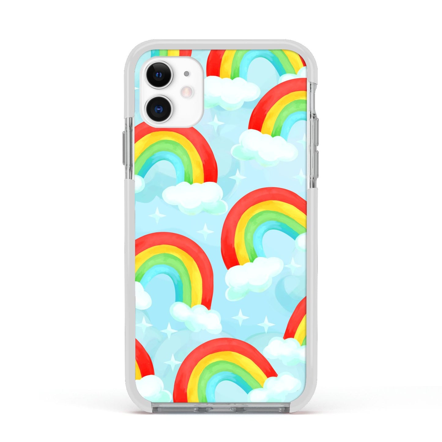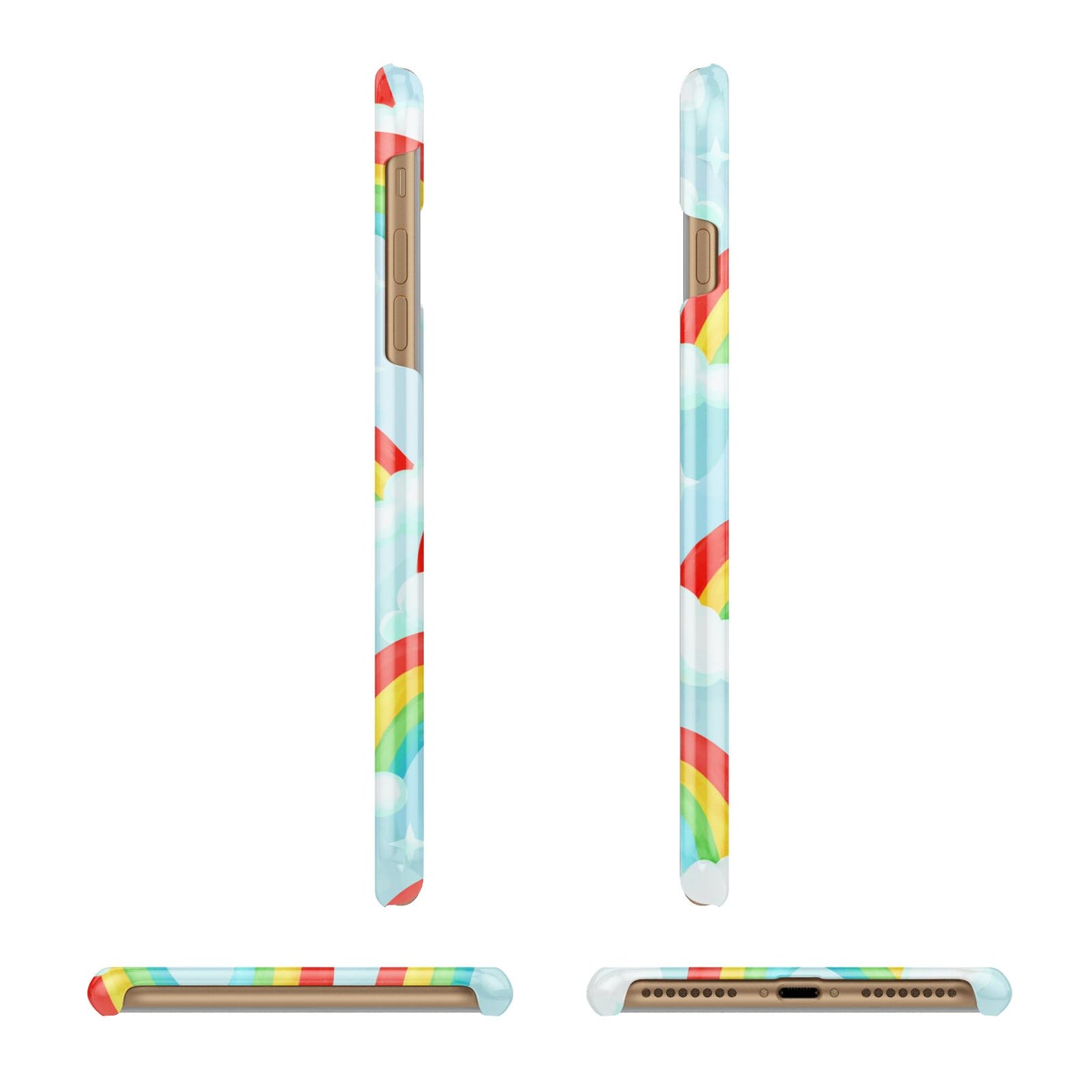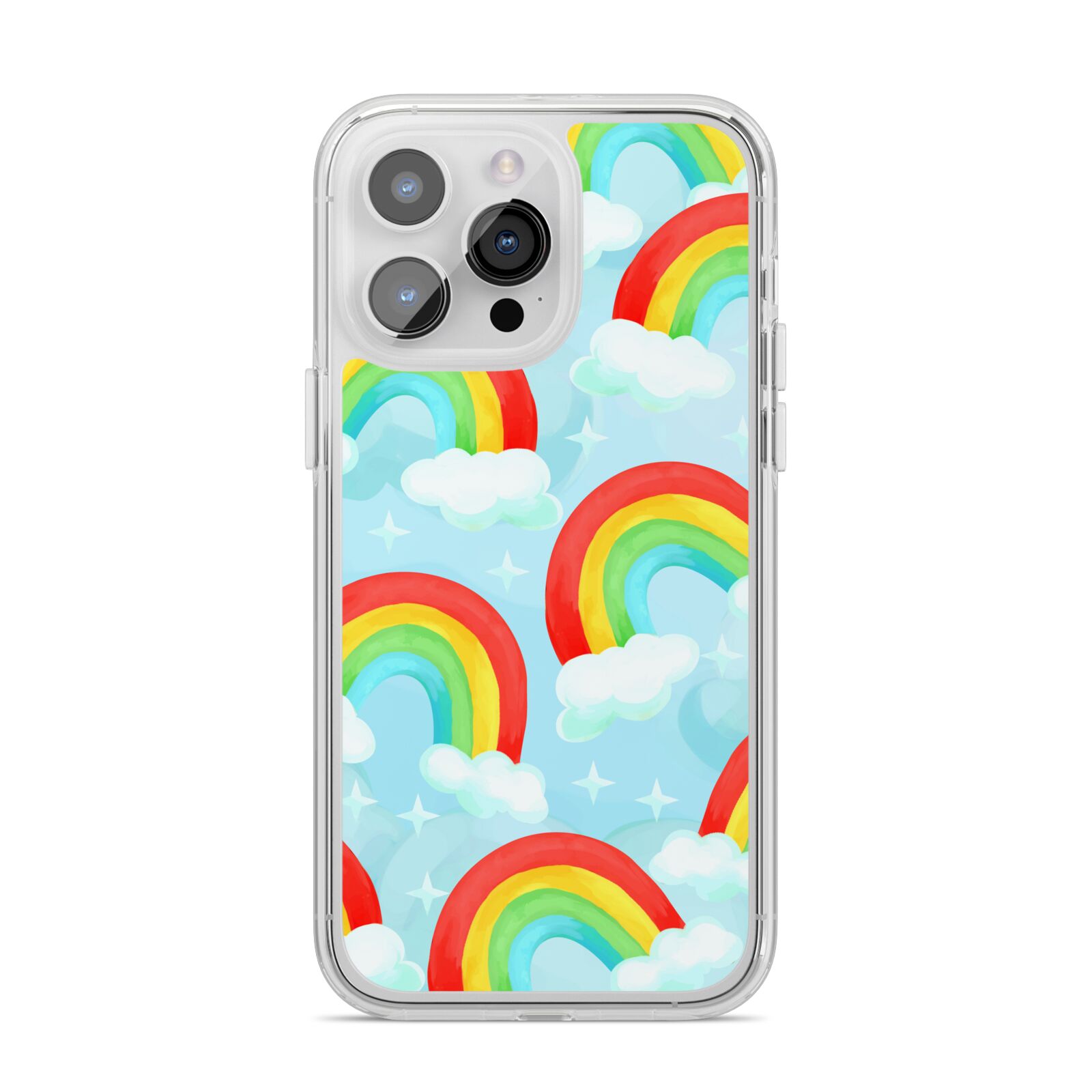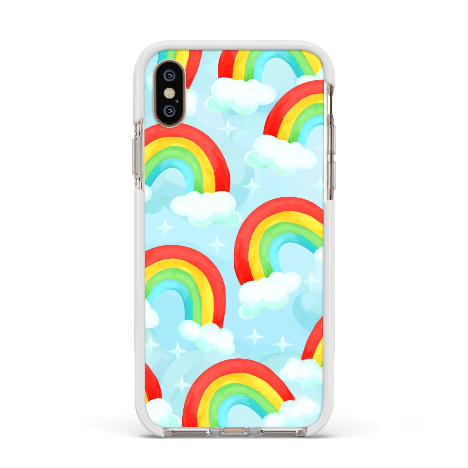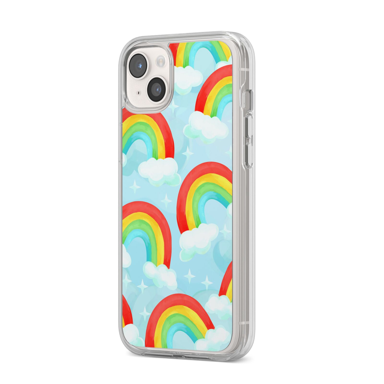 Our beautiful hand-drawn Rainbow Sky Apple iPhone Case is a fabulously colourful design, featuring rainbows and clouds with diamond stars. Fun and playful, this is a great way to add a dose of happiness and vibrancy to our phone case products. This design is available across a number of our products to allow you to complete a set.