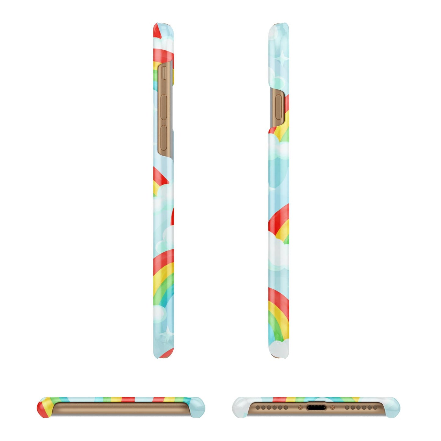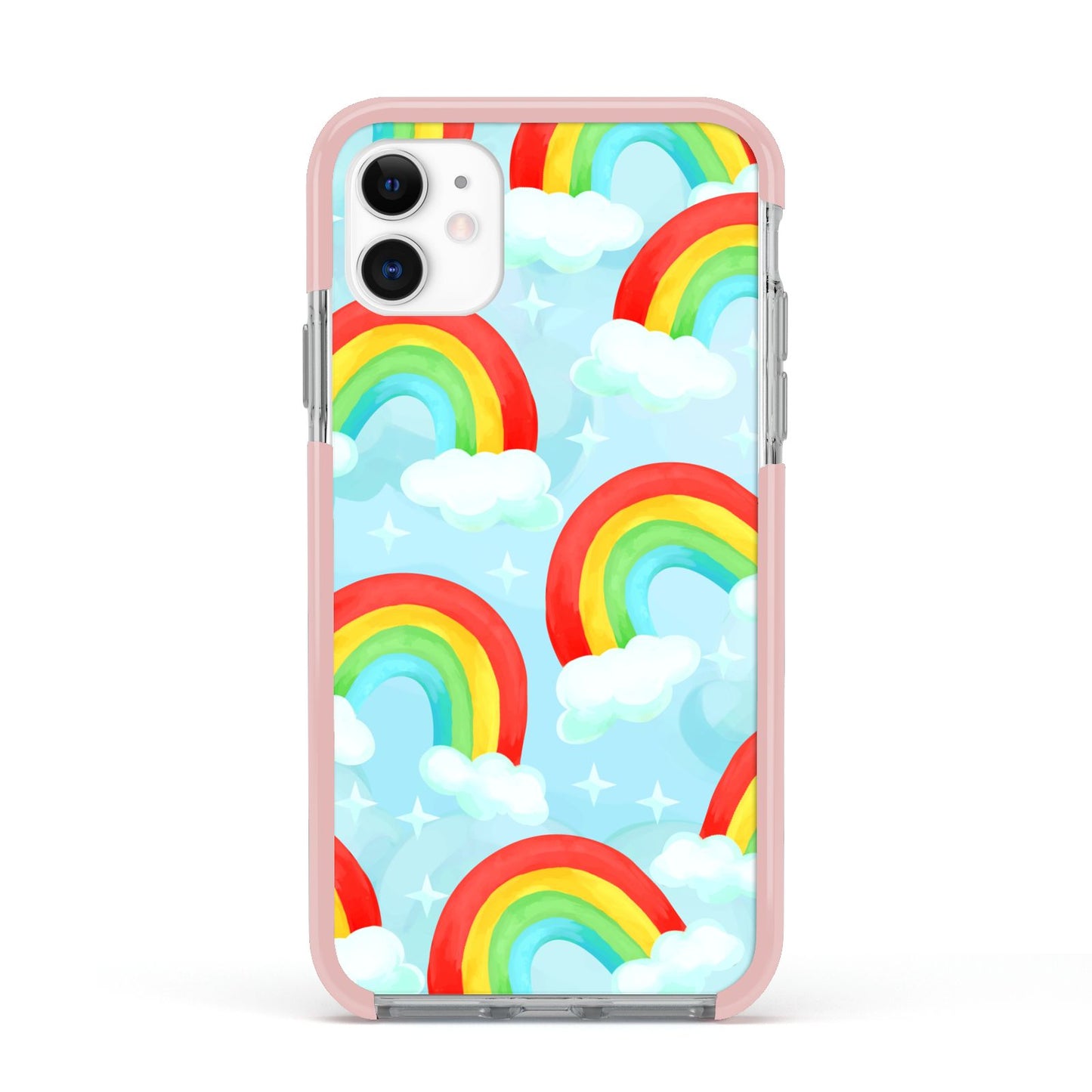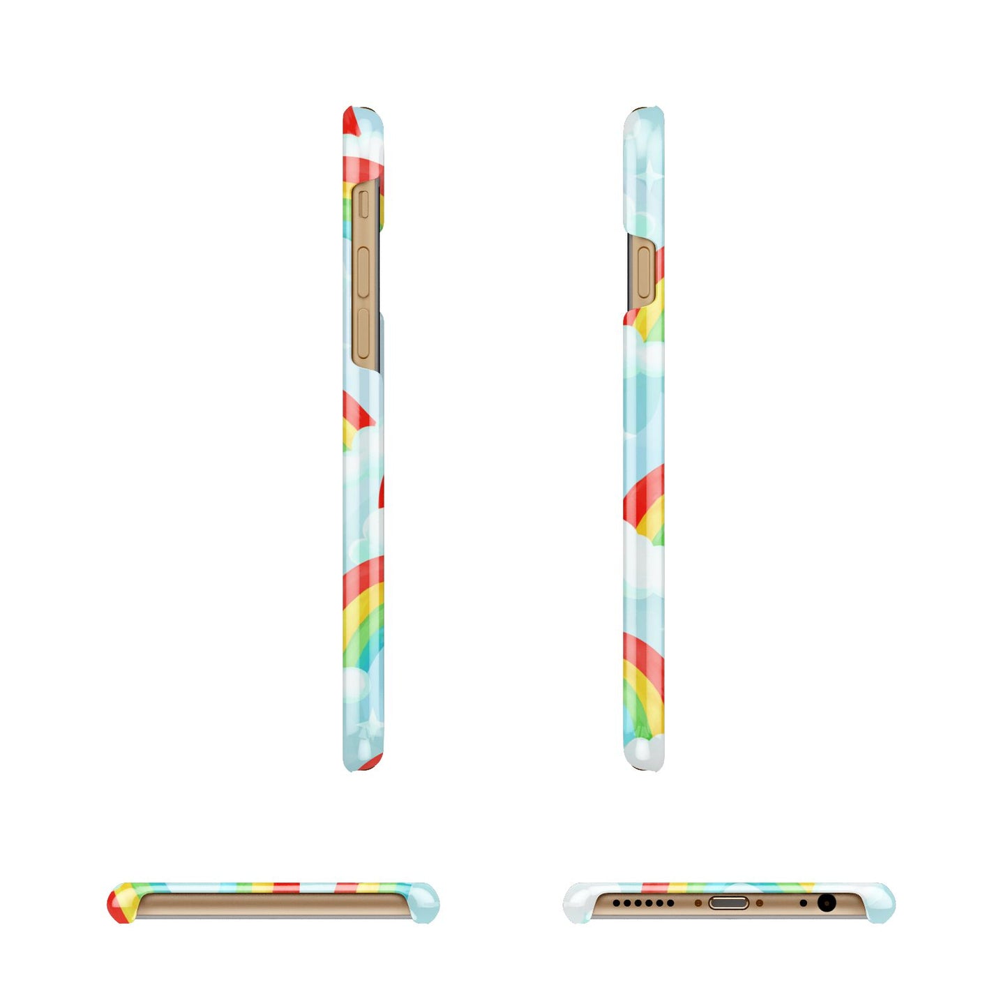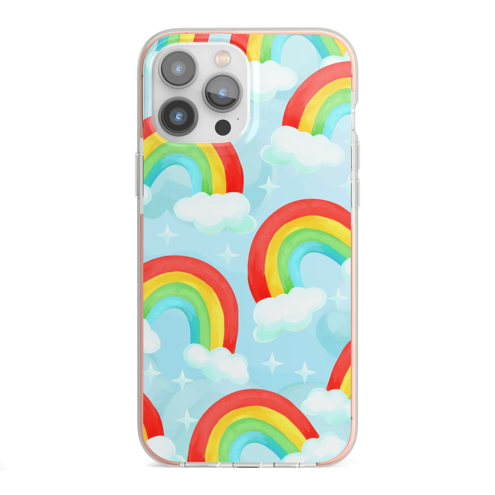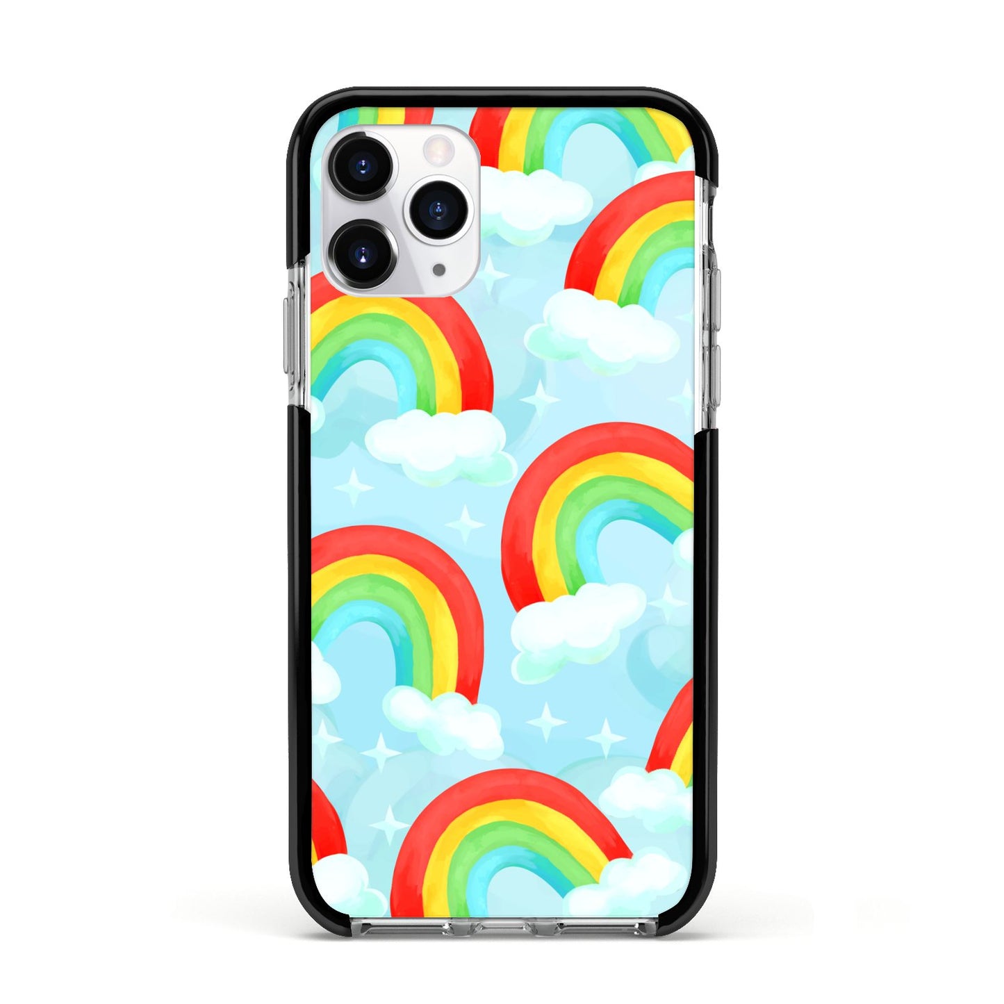 Our beautiful hand-drawn Rainbow Sky Apple iPhone Case is a fabulously colourful design, featuring rainbows and clouds with diamond stars. Fun and playful, this is a great way to add a dose of happiness and vibrancy to our phone case products. This design is available across a number of our products to allow you to complete a set.