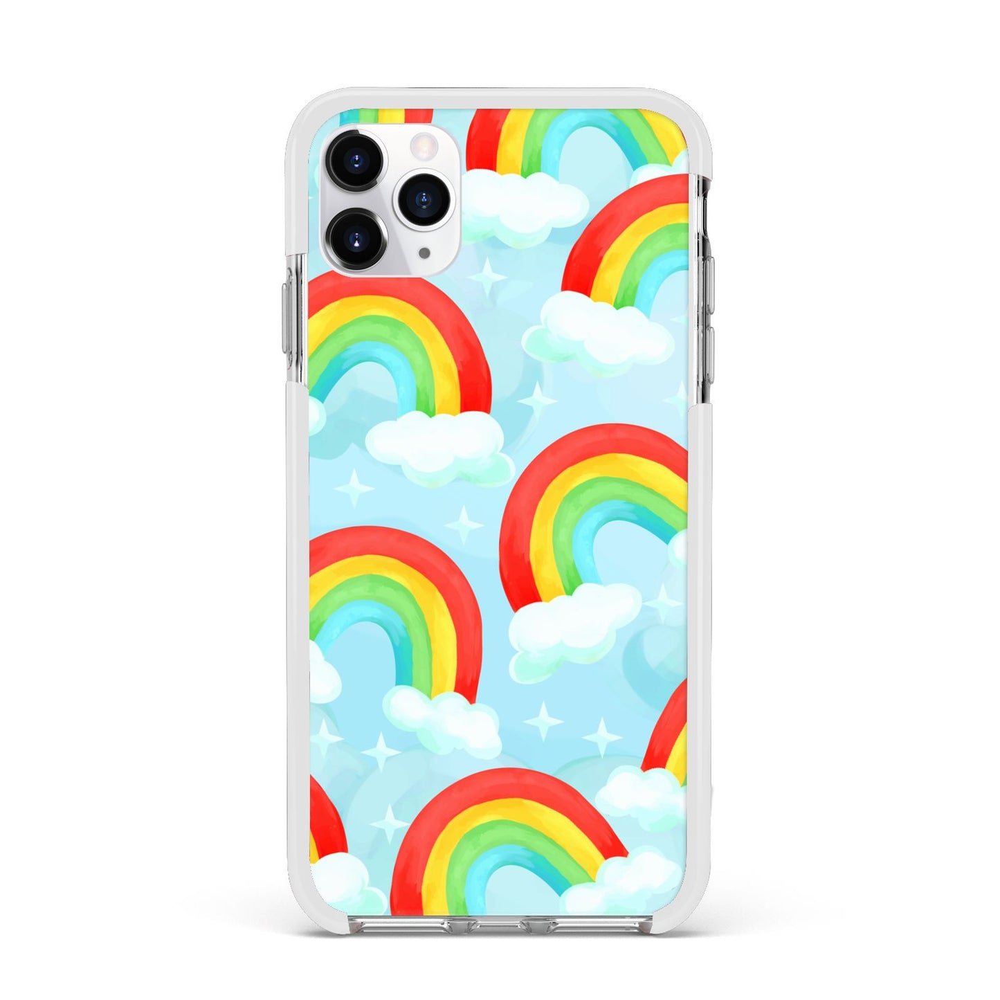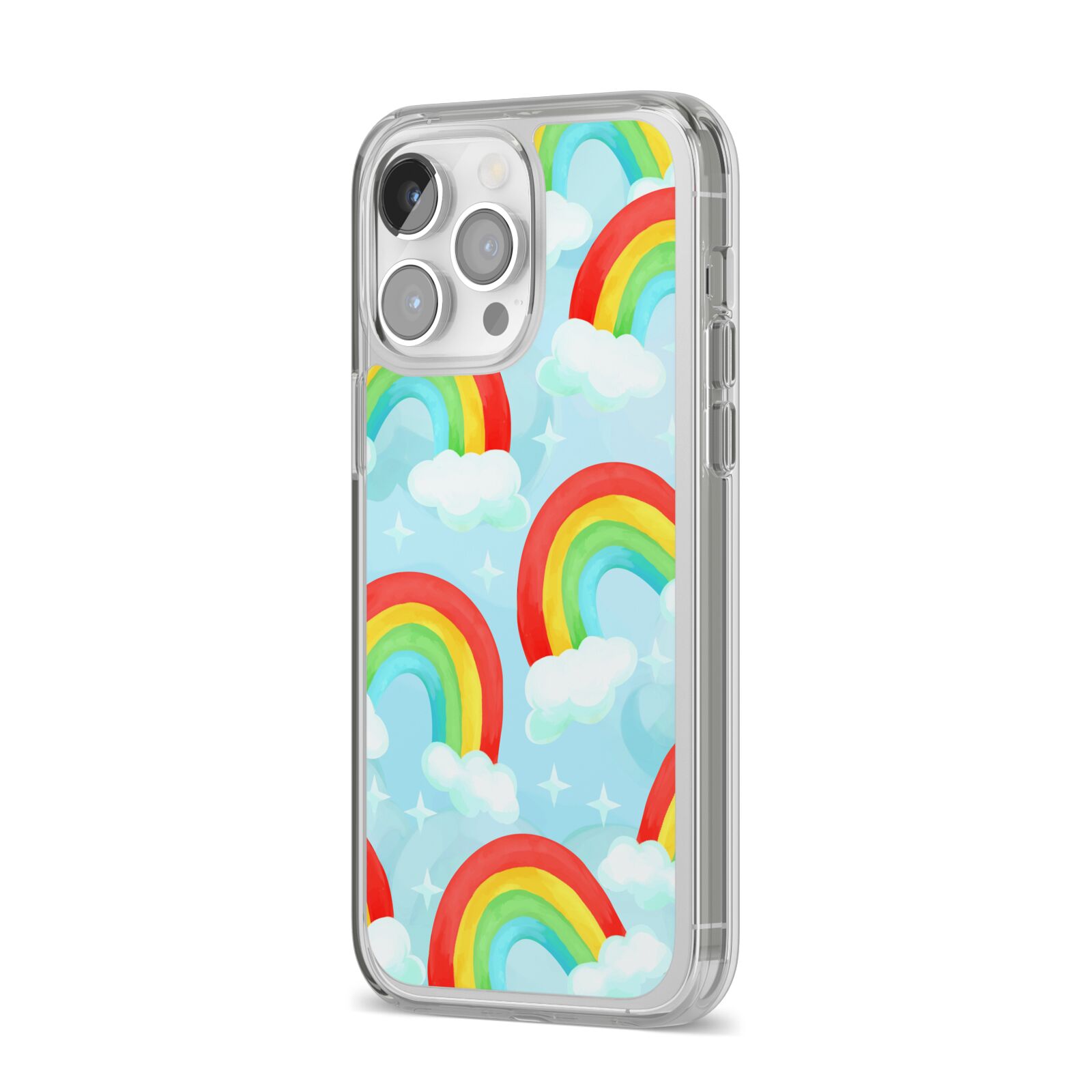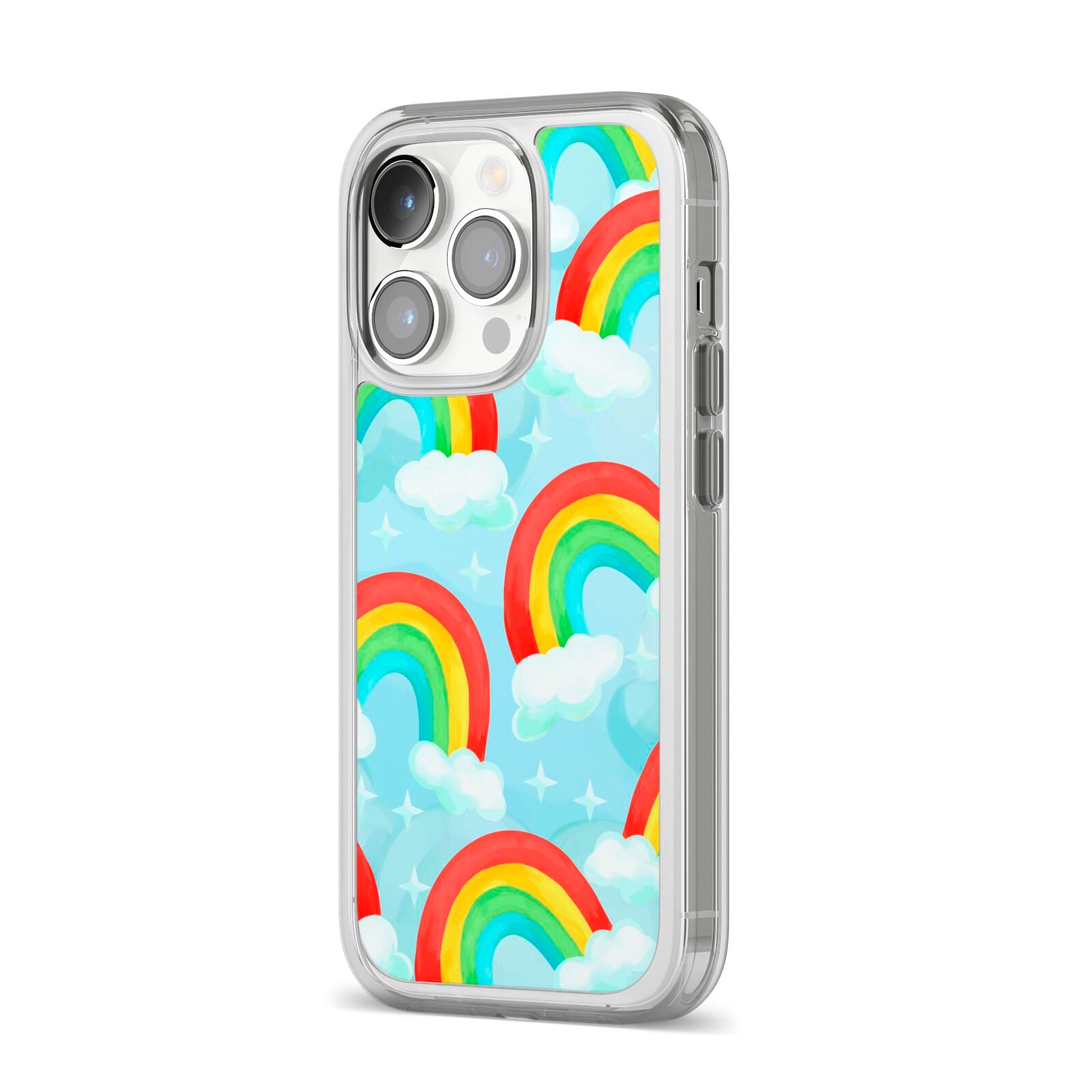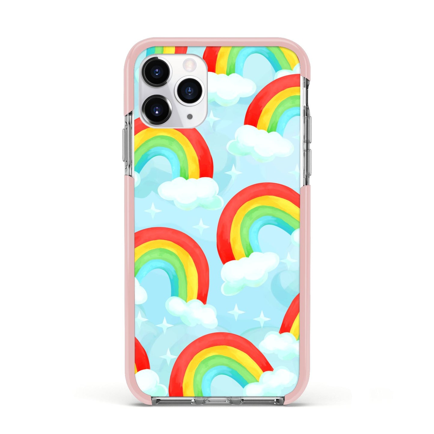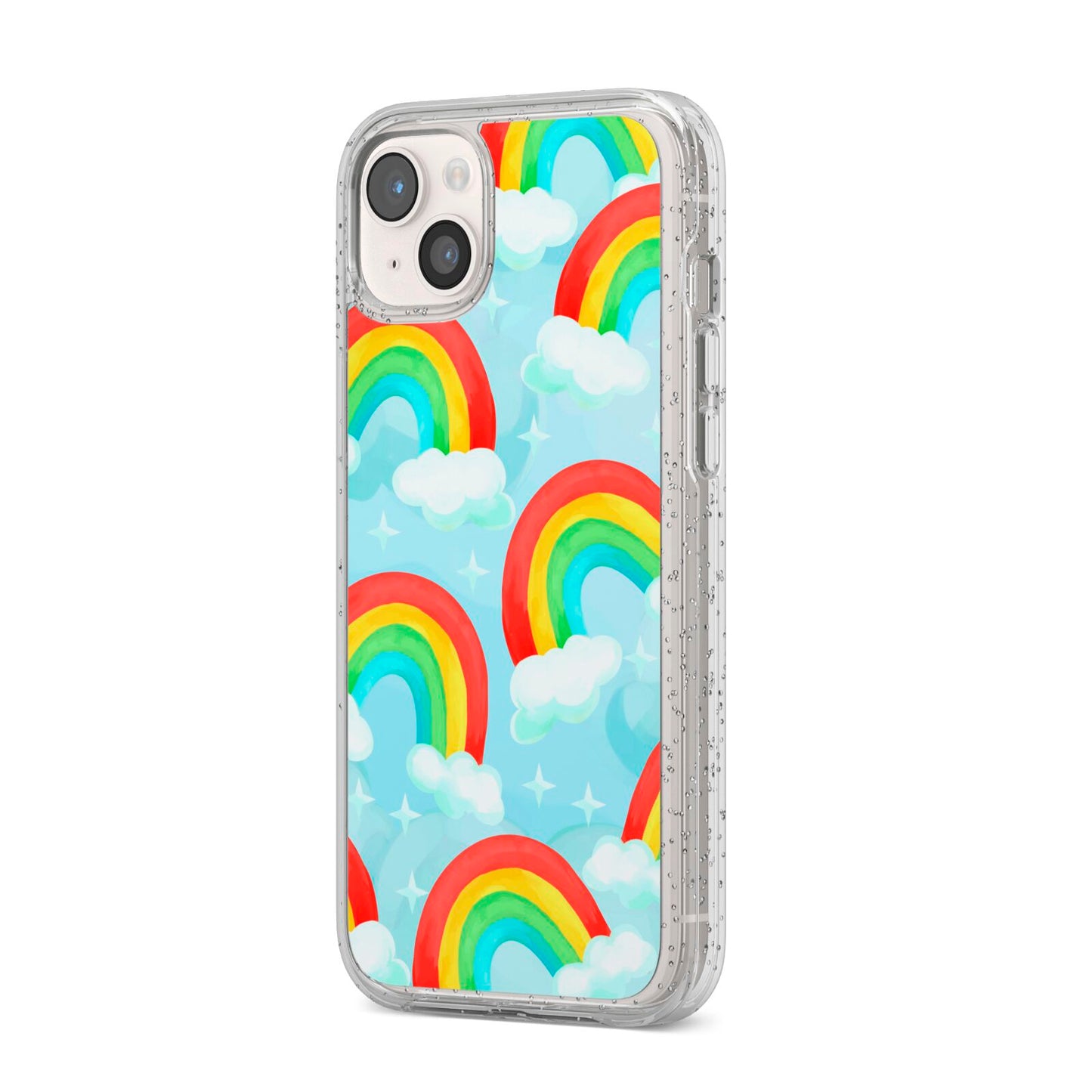 Our beautiful hand-drawn Rainbow Sky Apple iPhone Case is a fabulously colourful design, featuring rainbows and clouds with diamond stars. Fun and playful, this is a great way to add a dose of happiness and vibrancy to our phone case products. This design is available across a number of our products to allow you to complete a set.