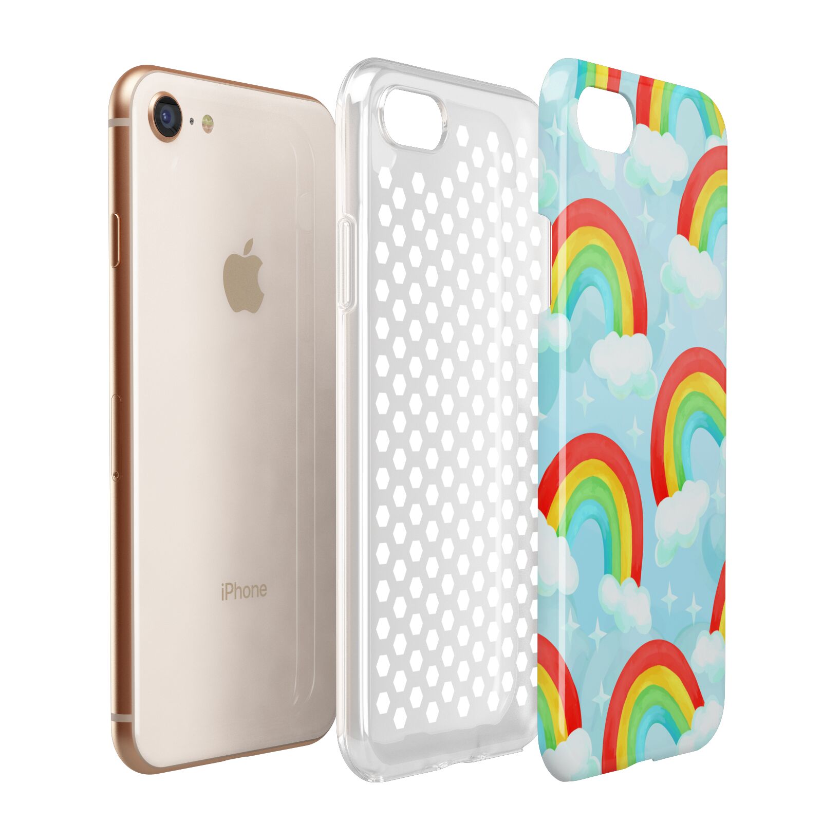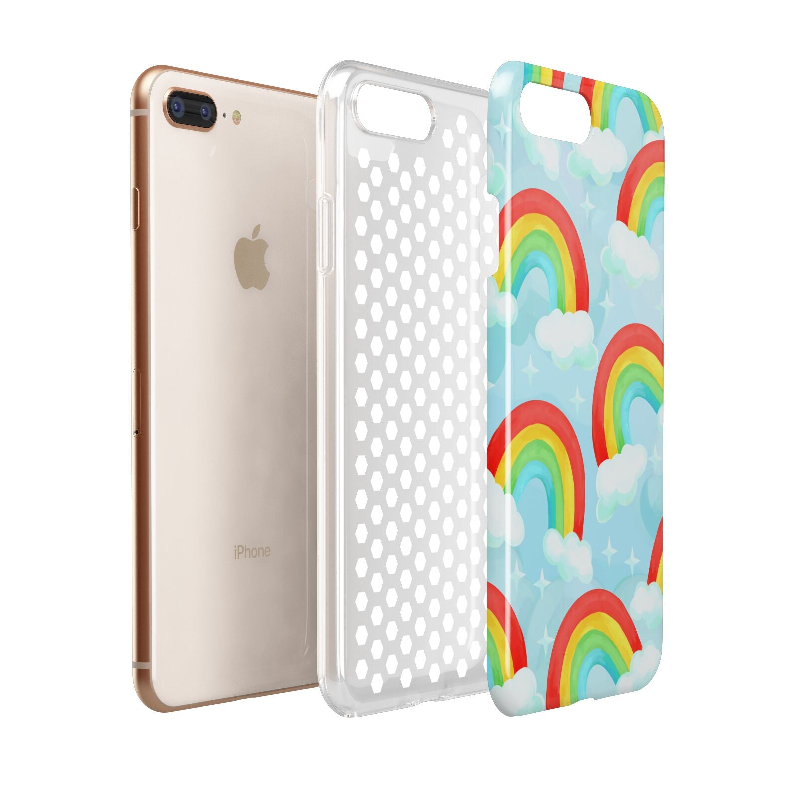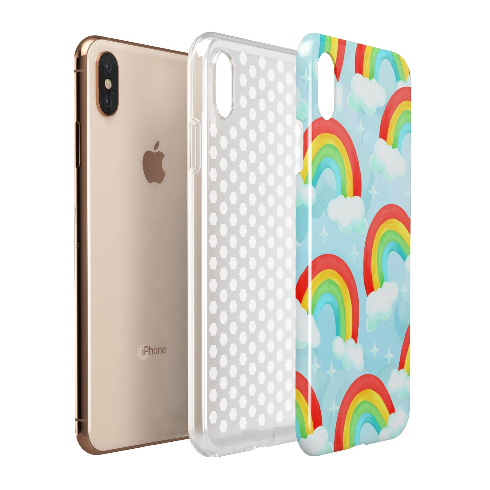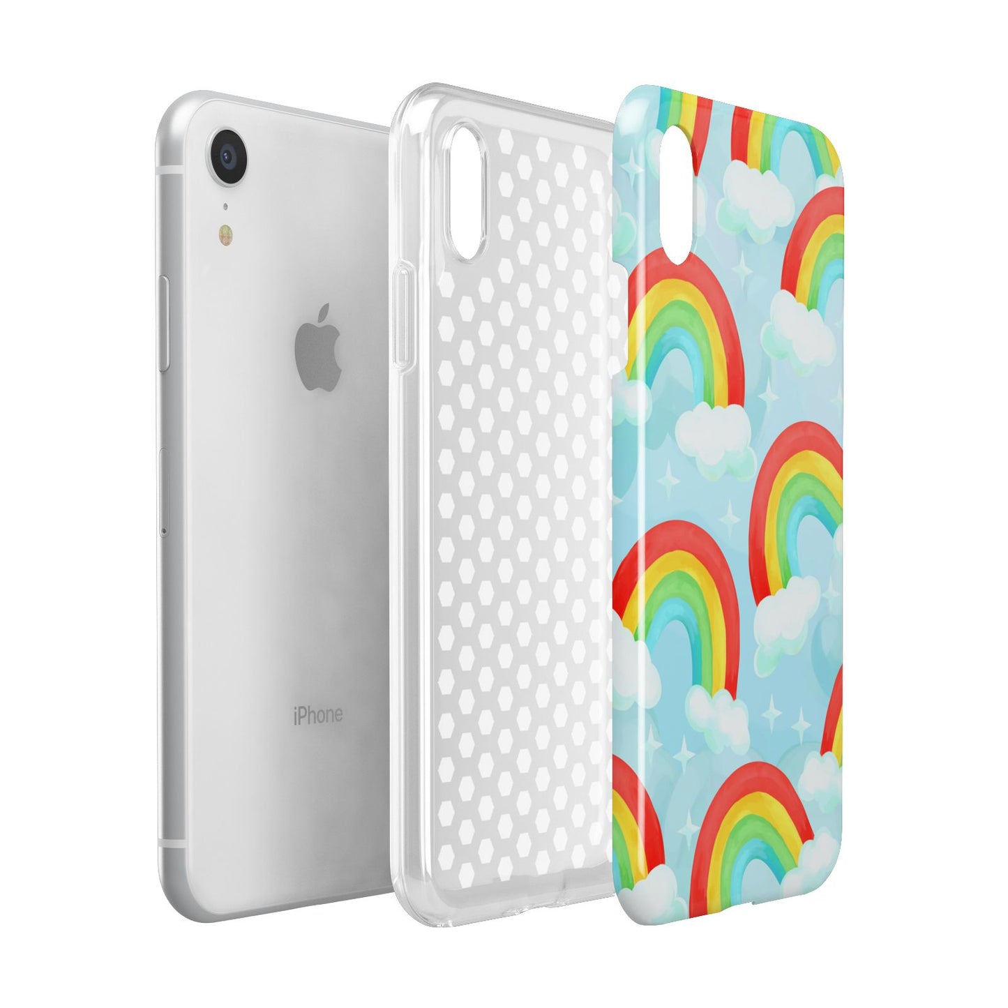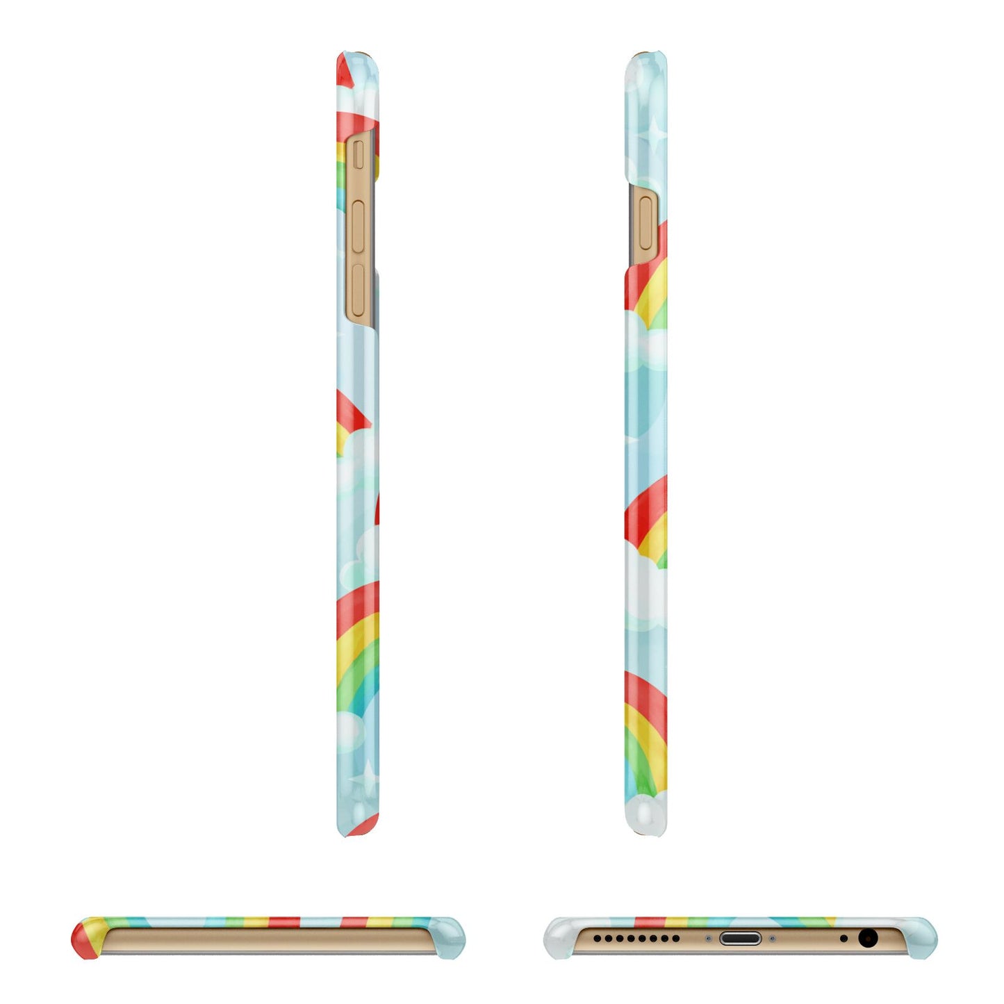 Our beautiful hand-drawn Rainbow Sky Apple iPhone Case is a fabulously colourful design, featuring rainbows and clouds with diamond stars. Fun and playful, this is a great way to add a dose of happiness and vibrancy to our phone case products. This design is available across a number of our products to allow you to complete a set.
