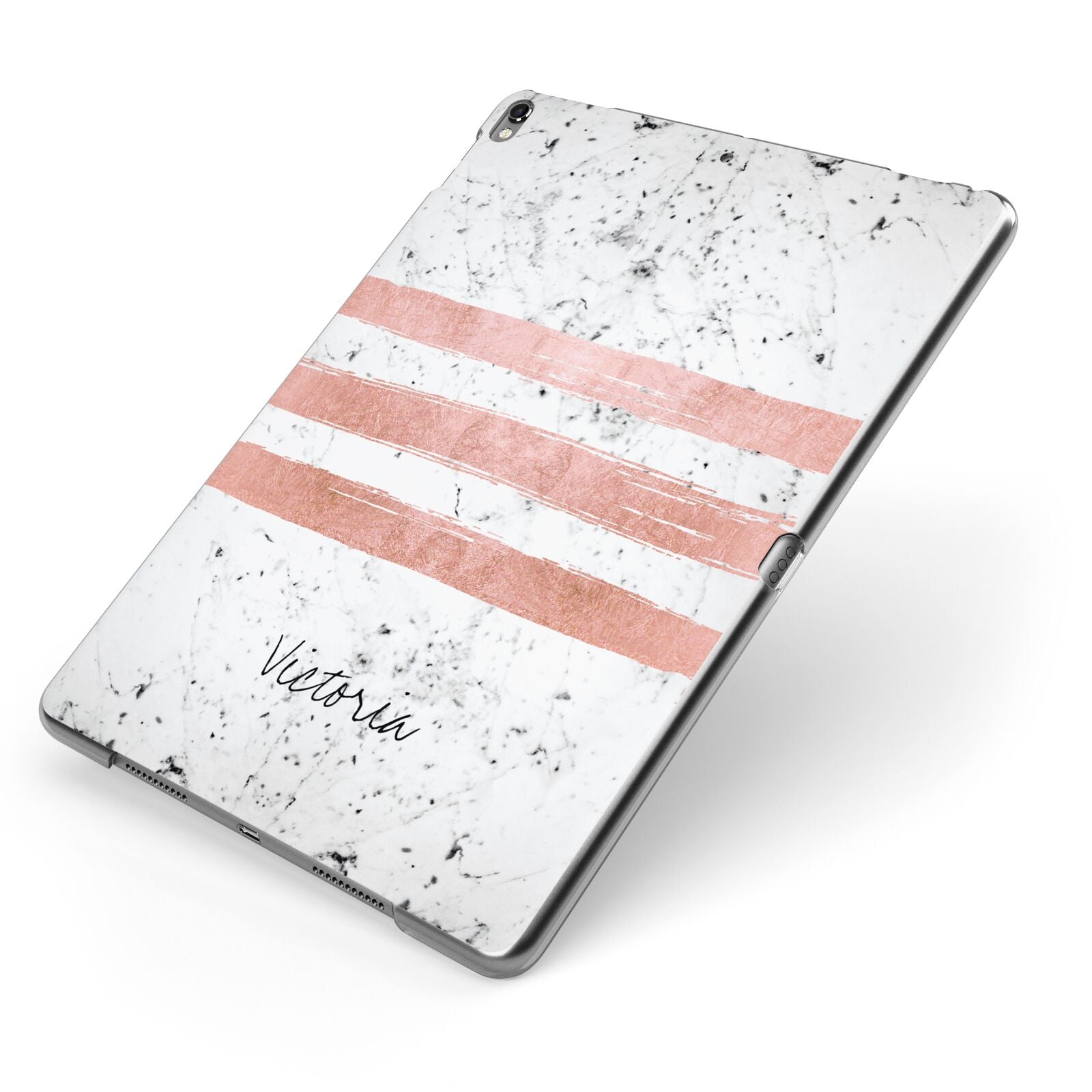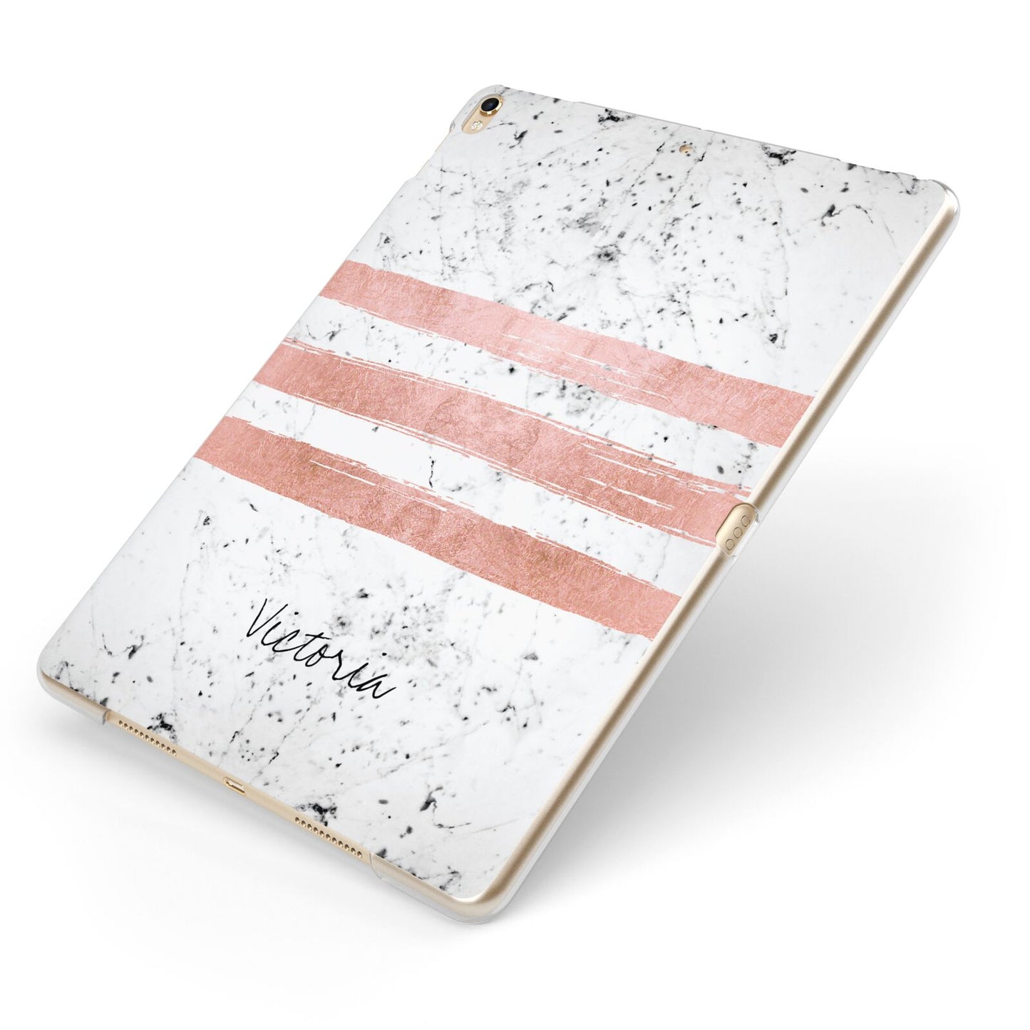 Personalised Rose Gold Brush Marble Initial Apple iPad Case