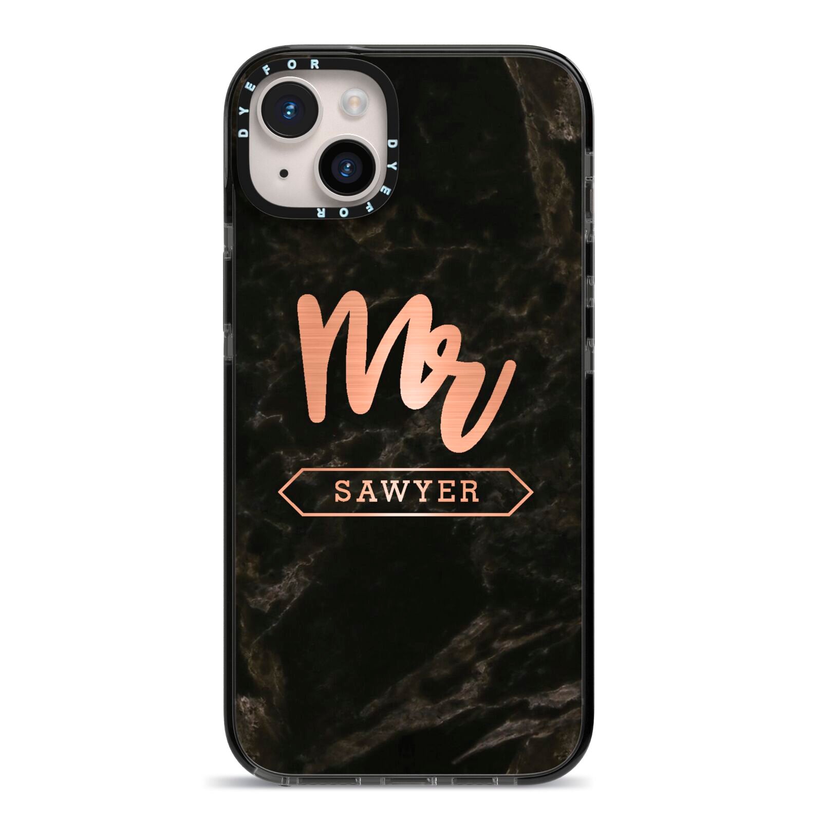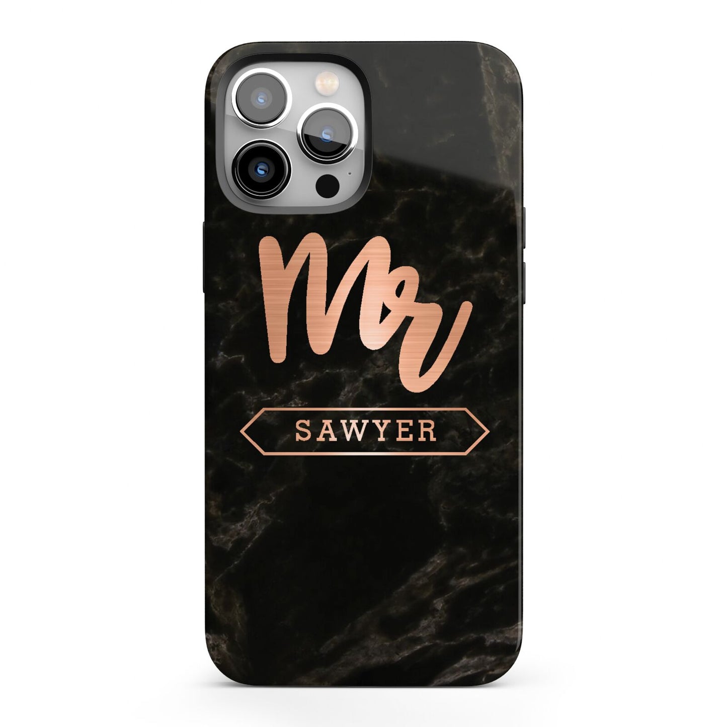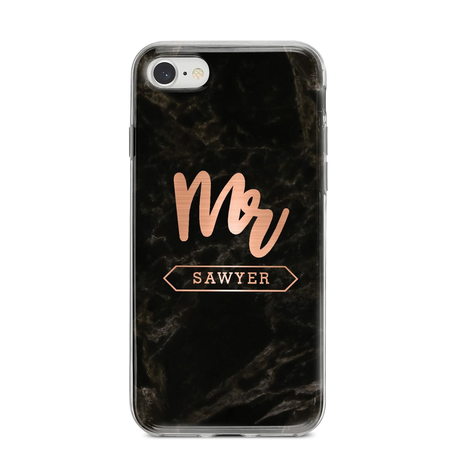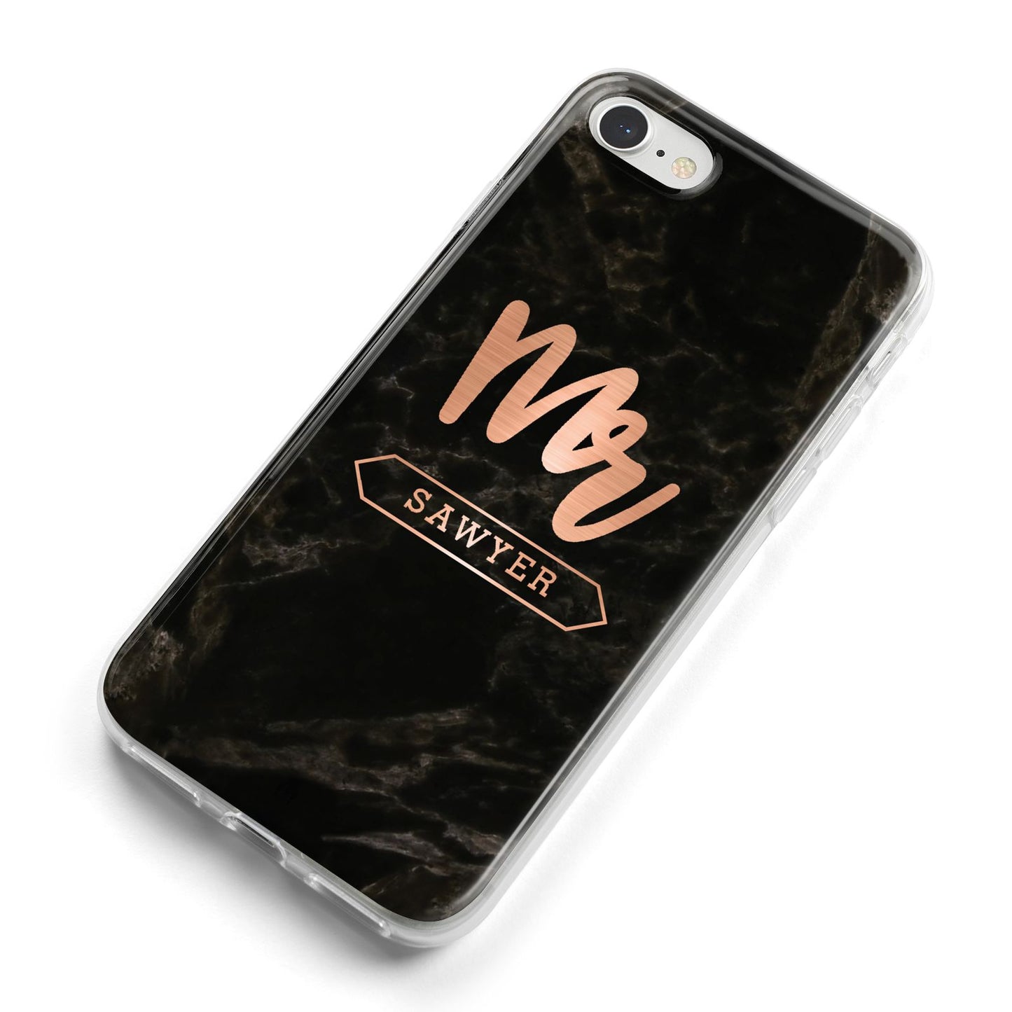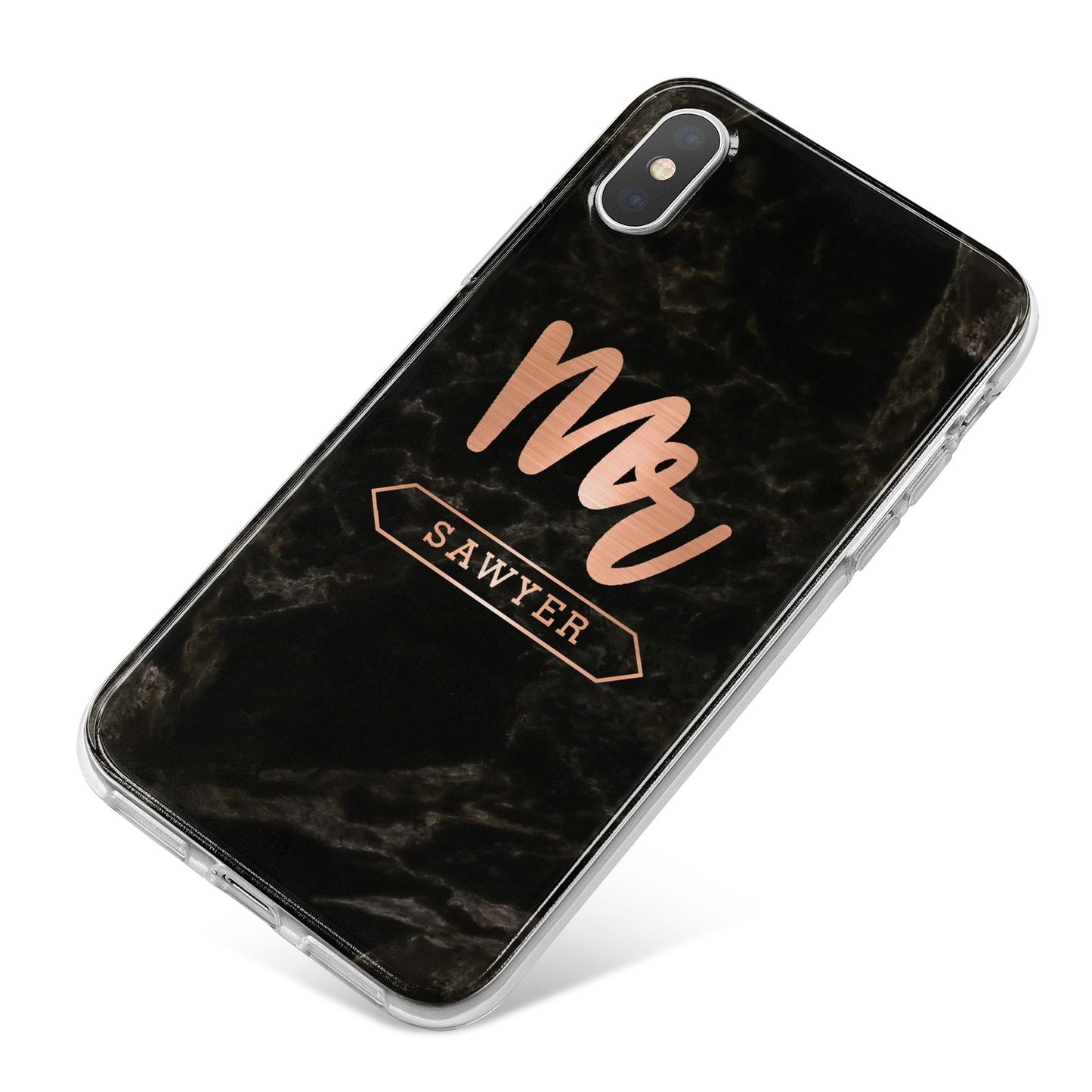 Personalised Rose Gold Mr Surname Marble Apple iPhone Case