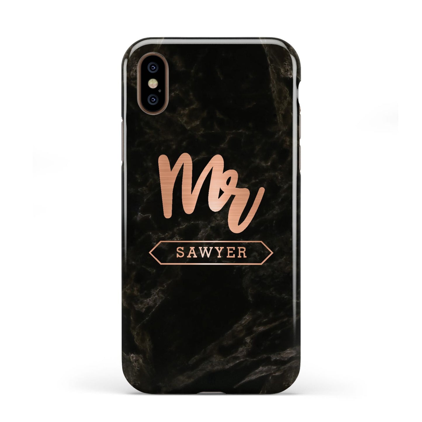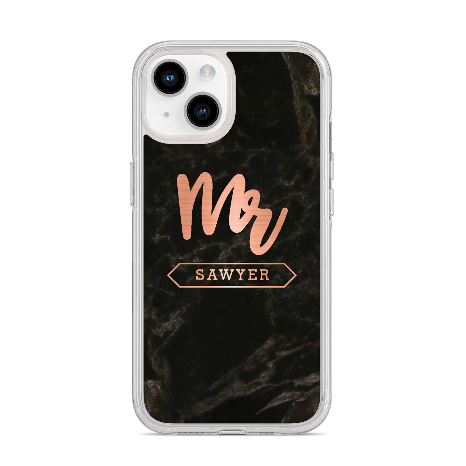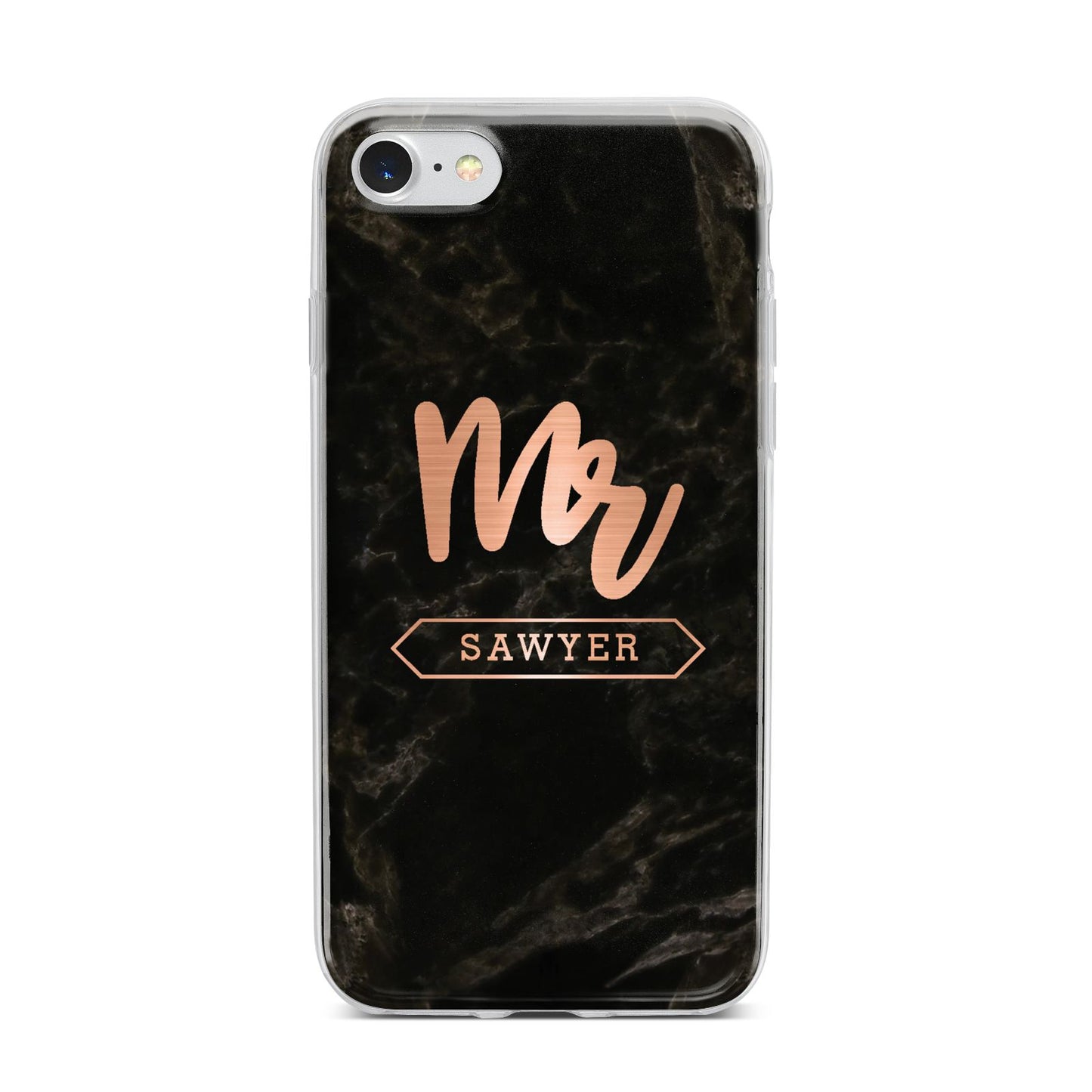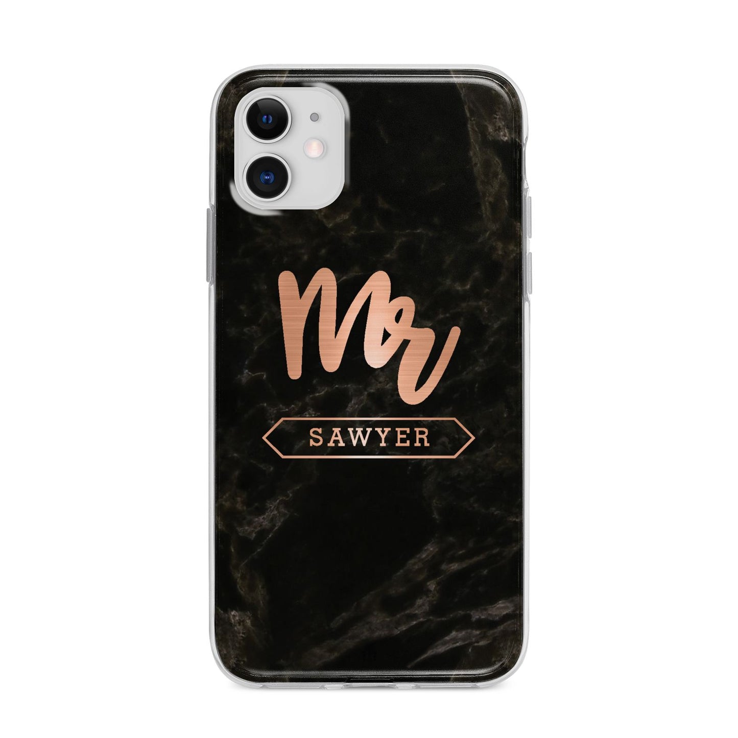 Personalised Rose Gold Mr Surname Marble Apple iPhone Case