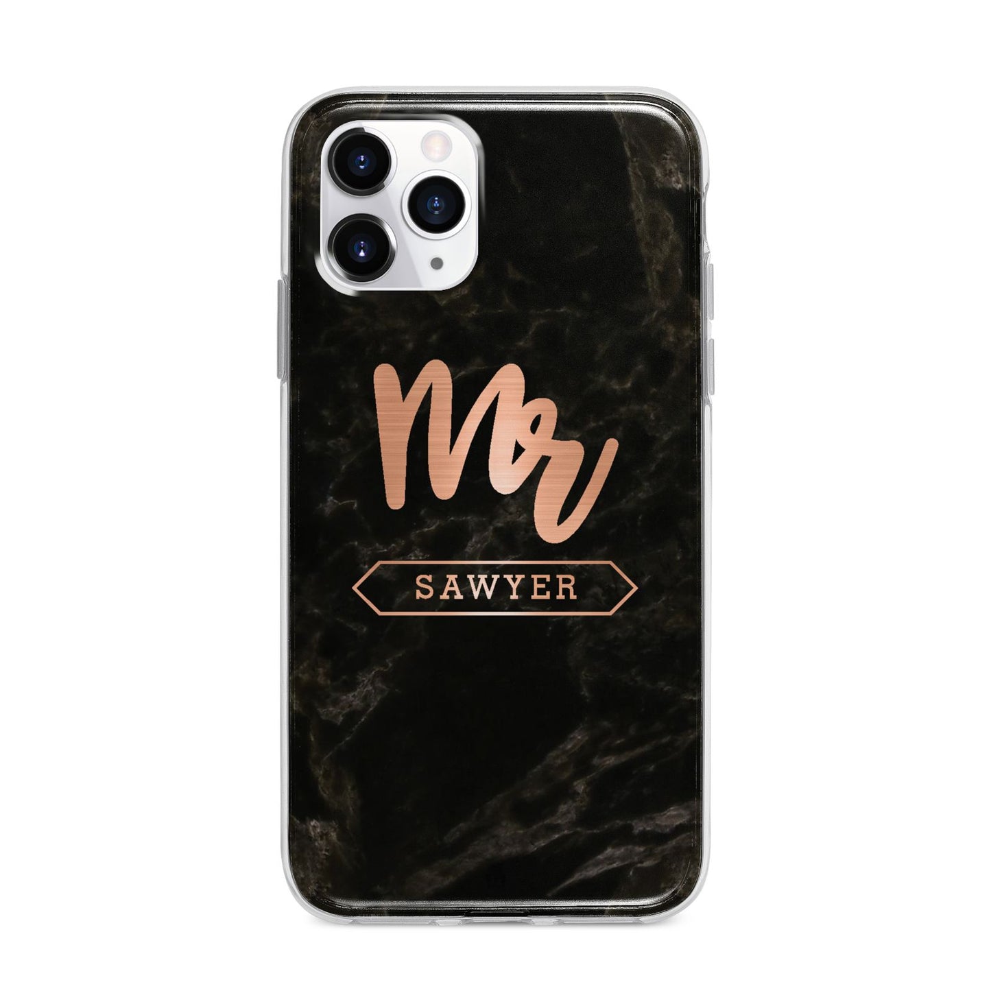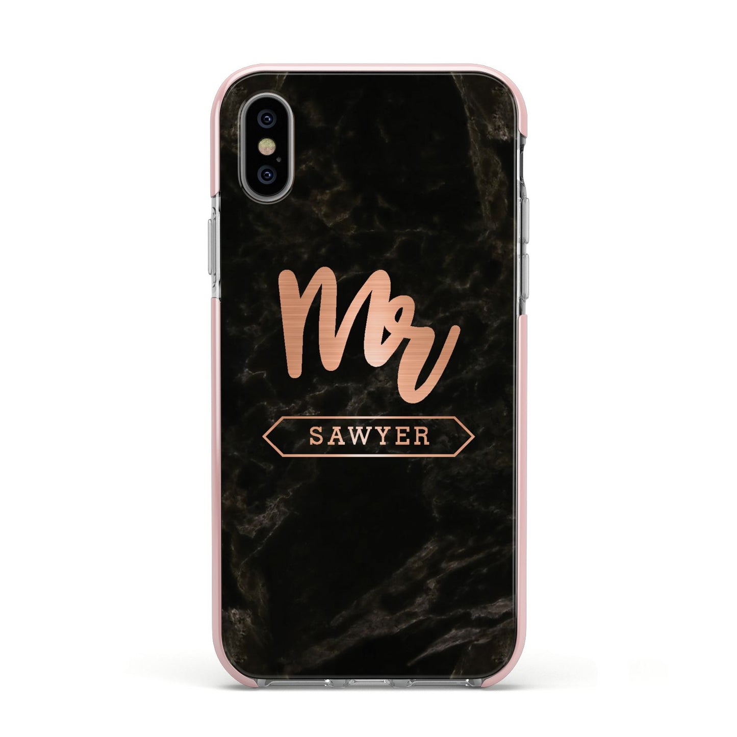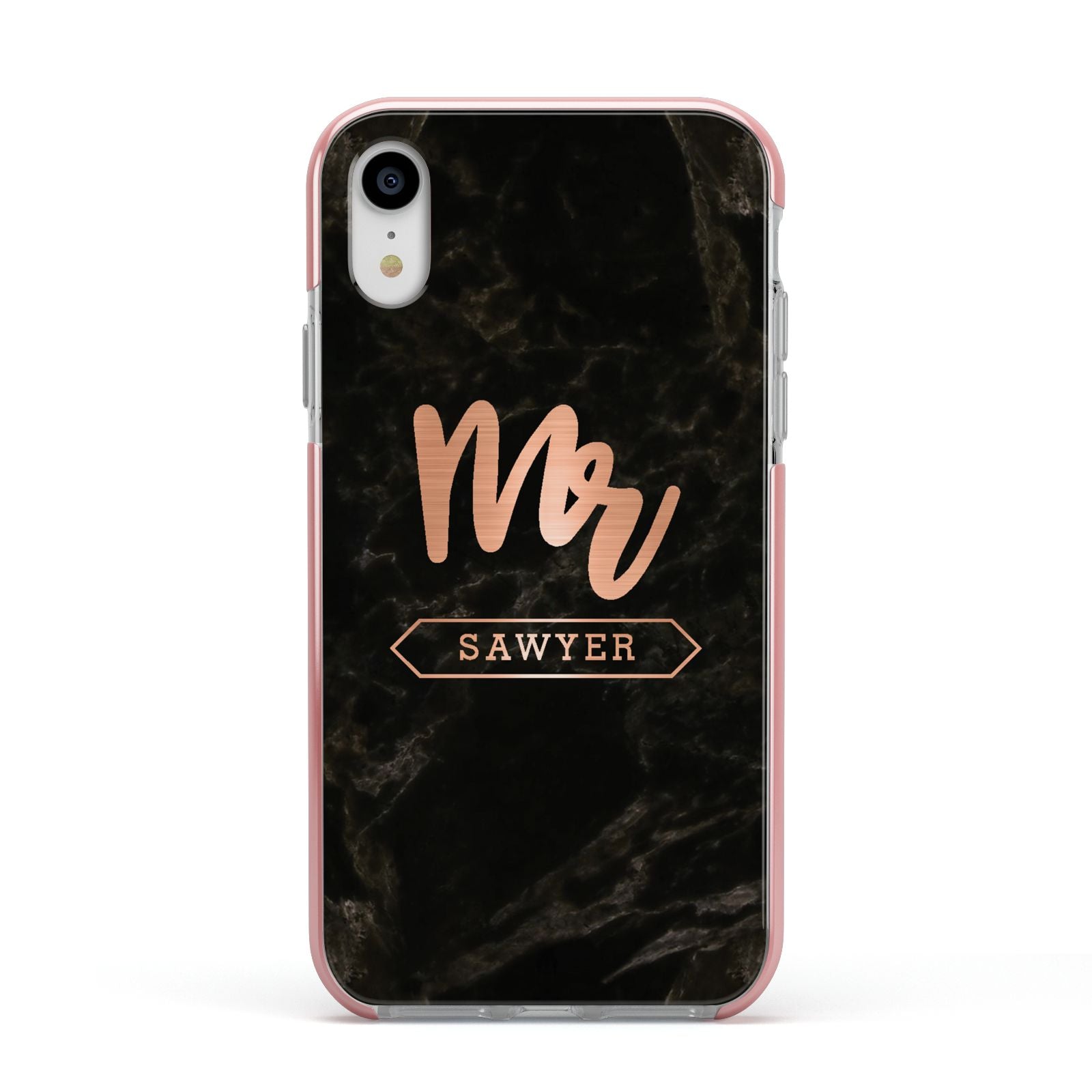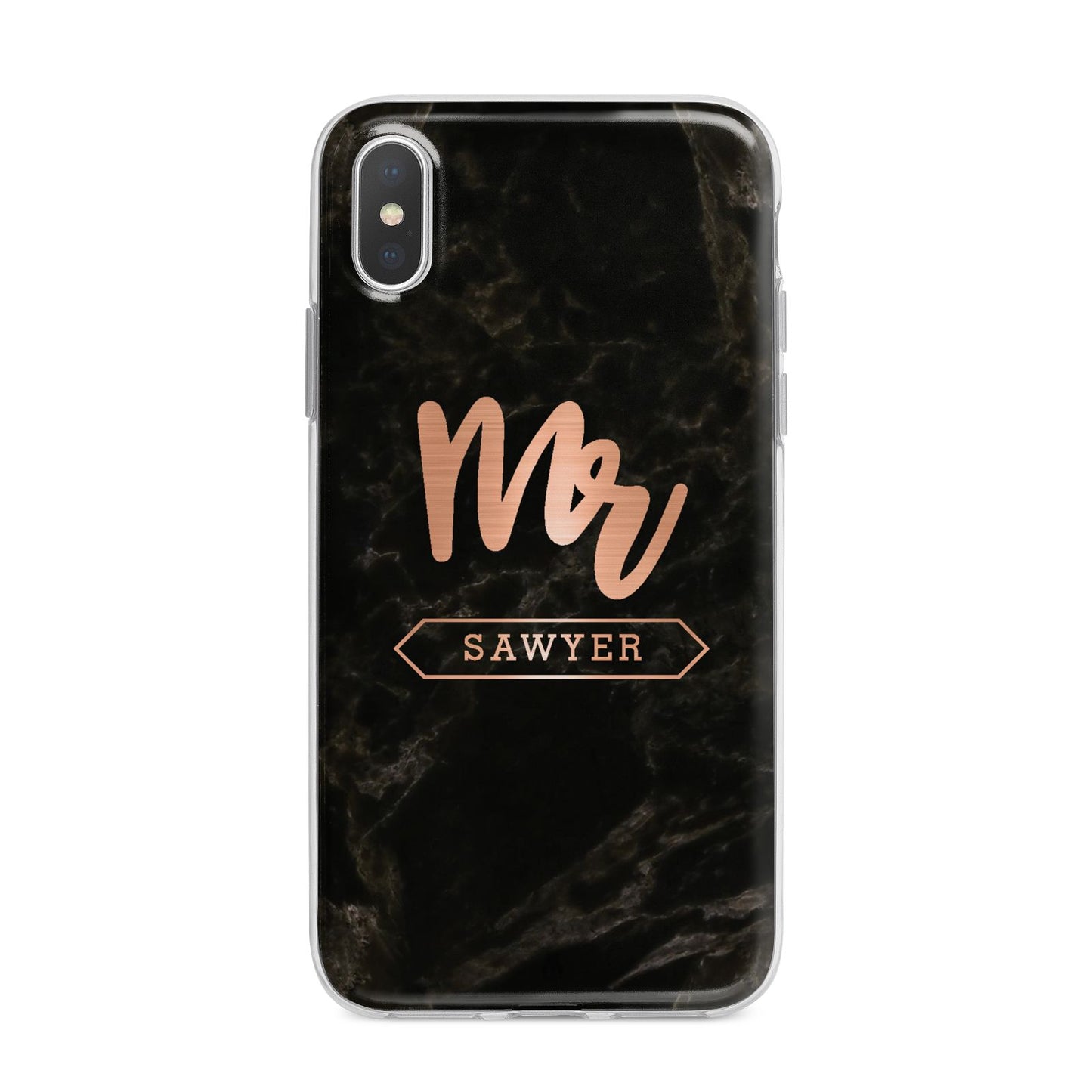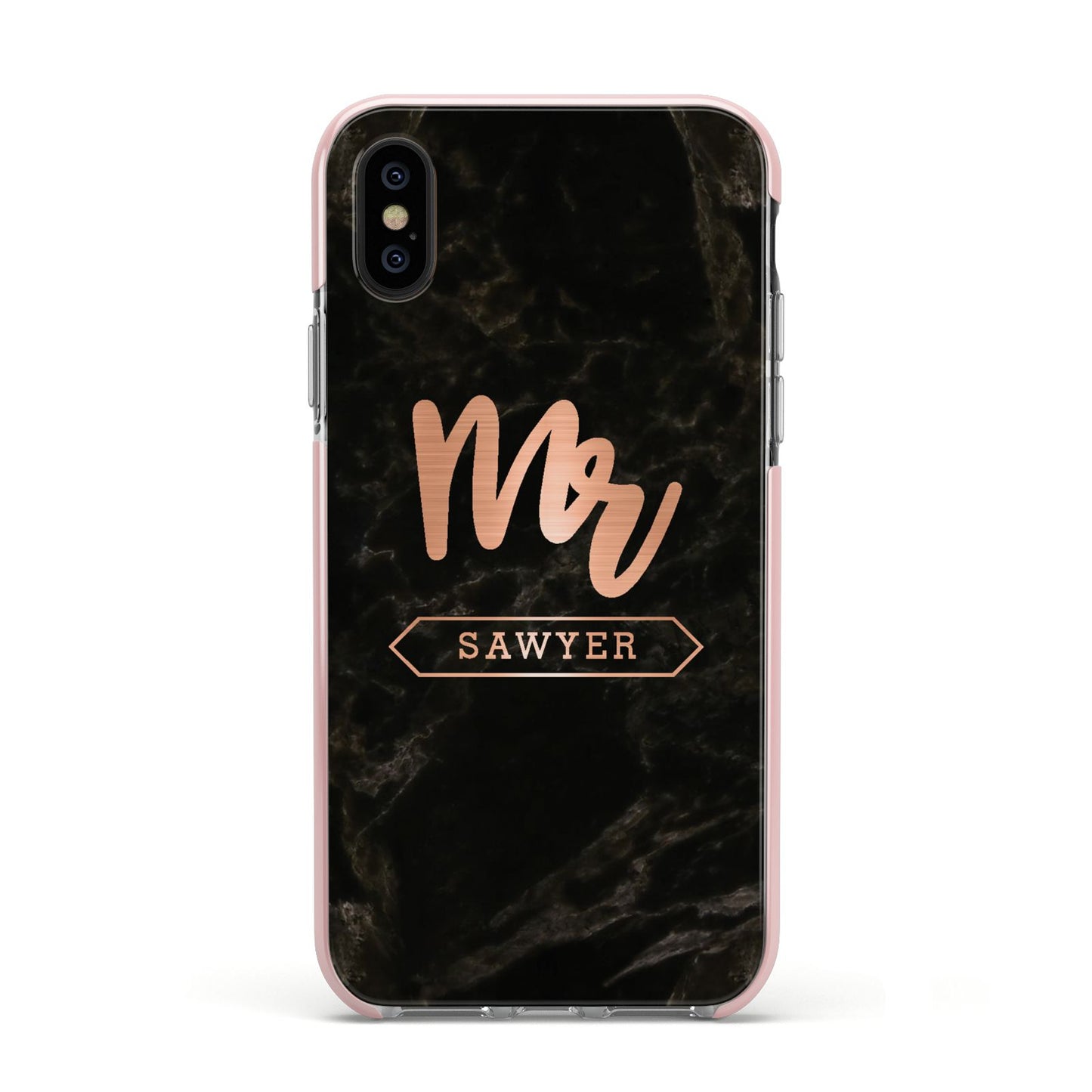 Personalised Rose Gold Mr Surname Marble Apple iPhone Case