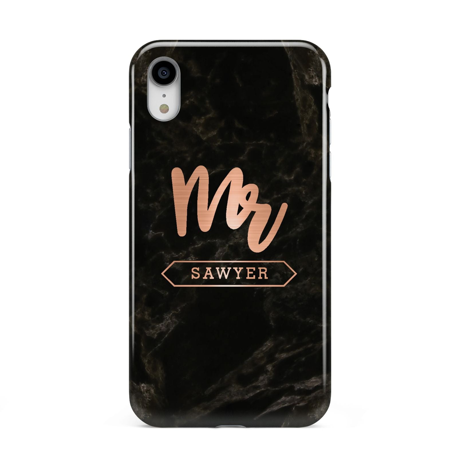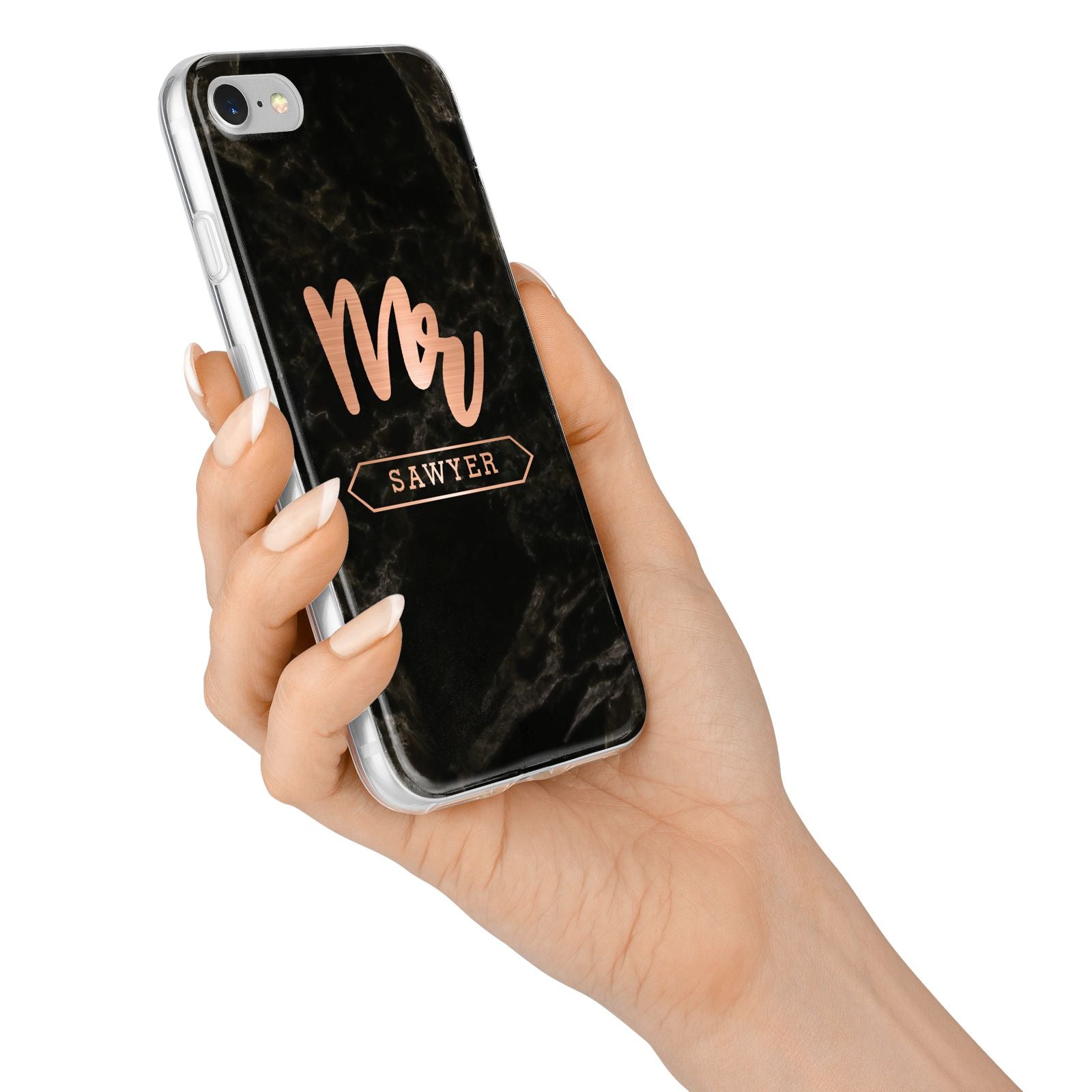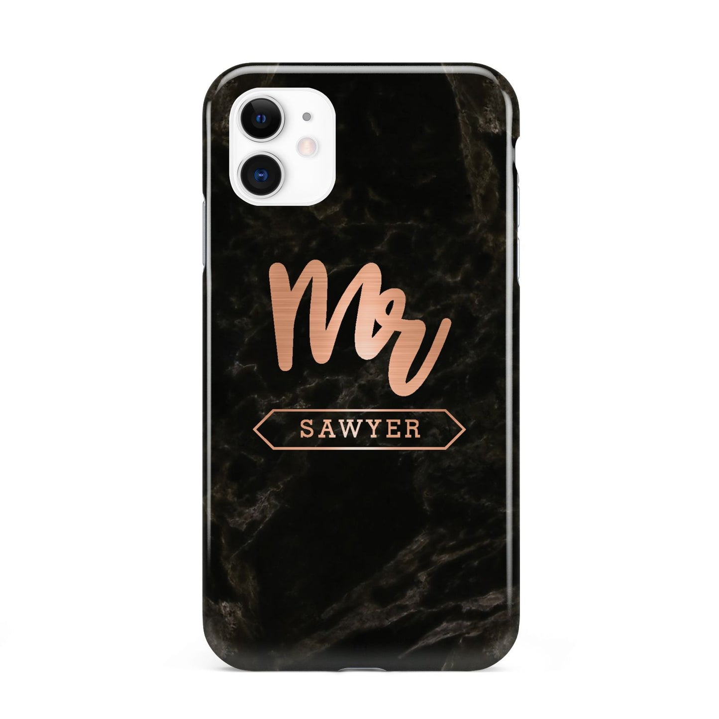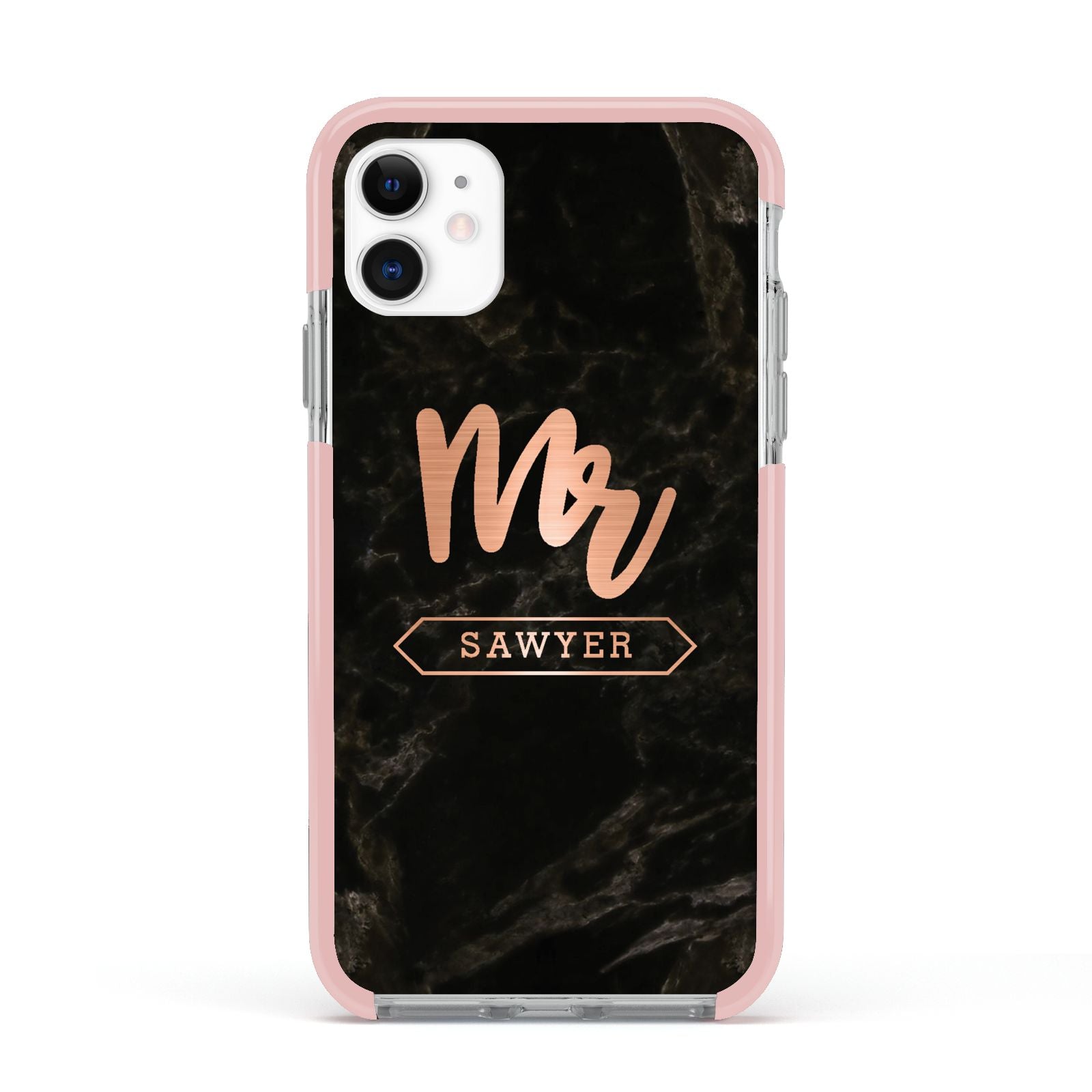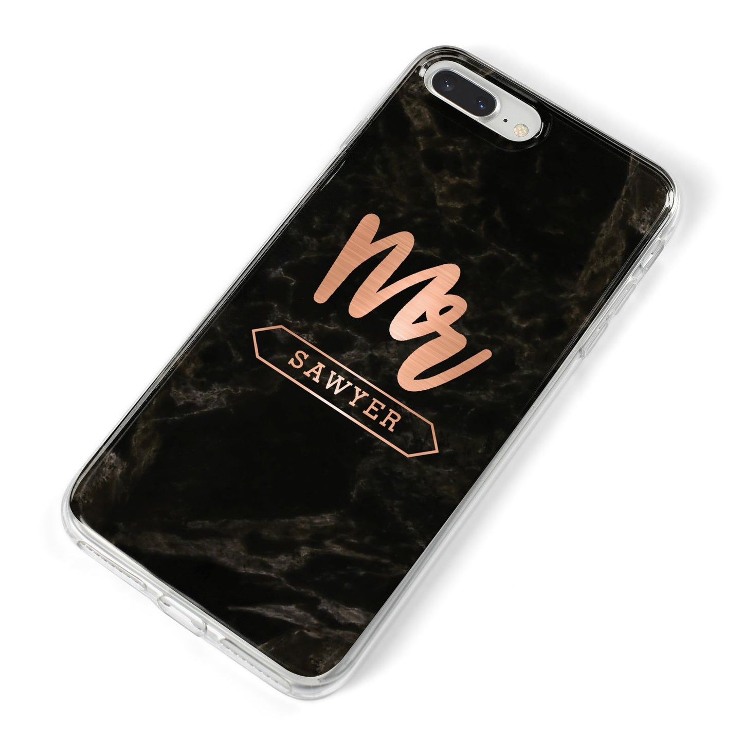 Personalised Rose Gold Mr Surname Marble Apple iPhone Case
