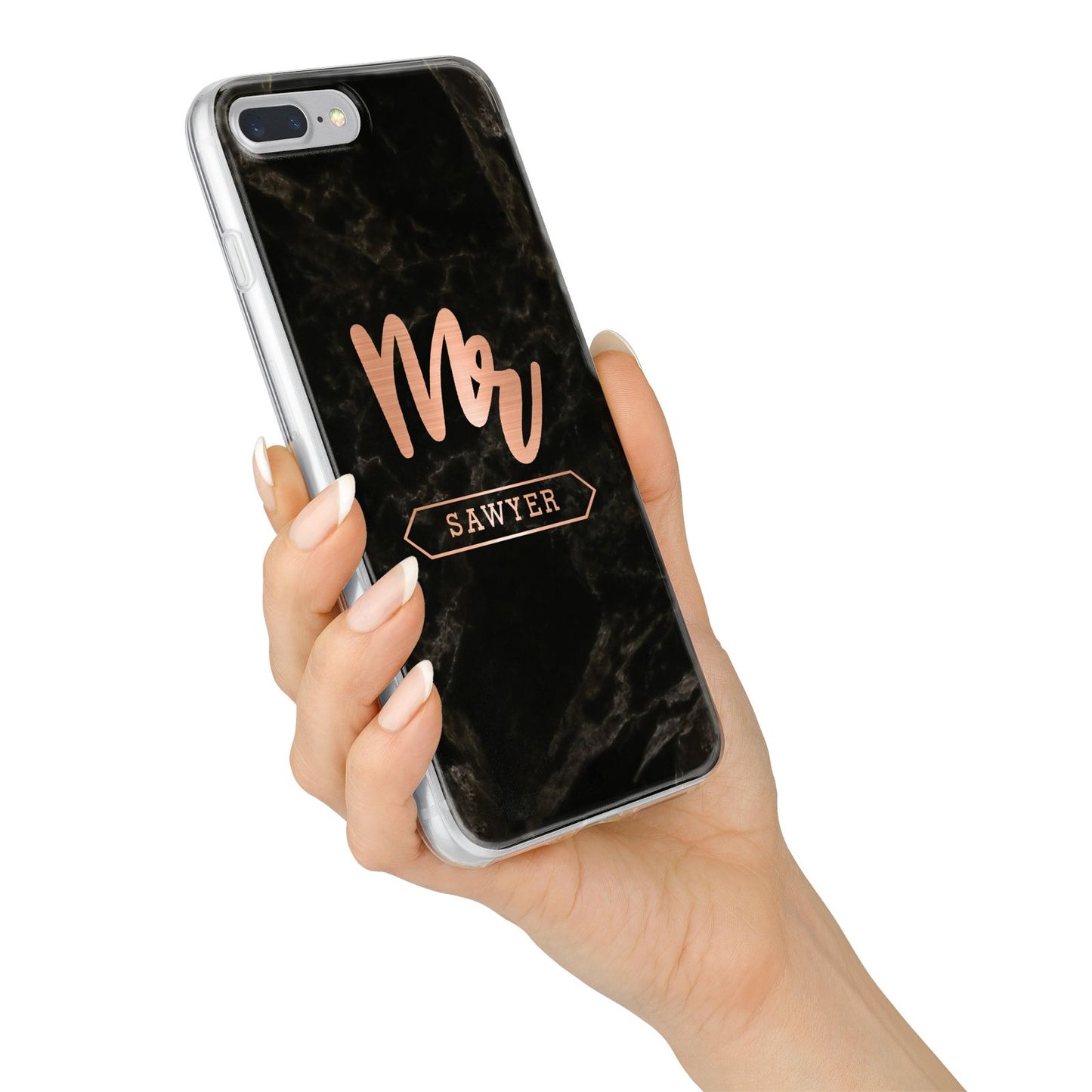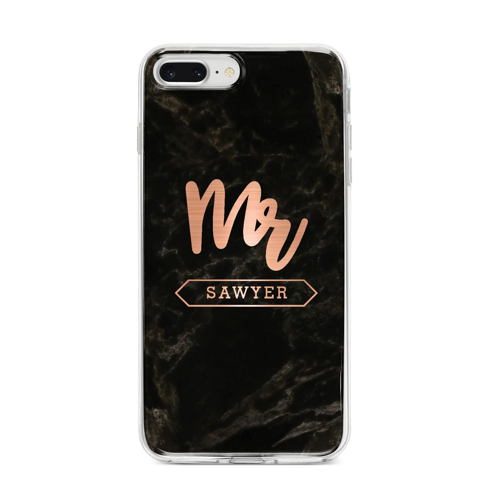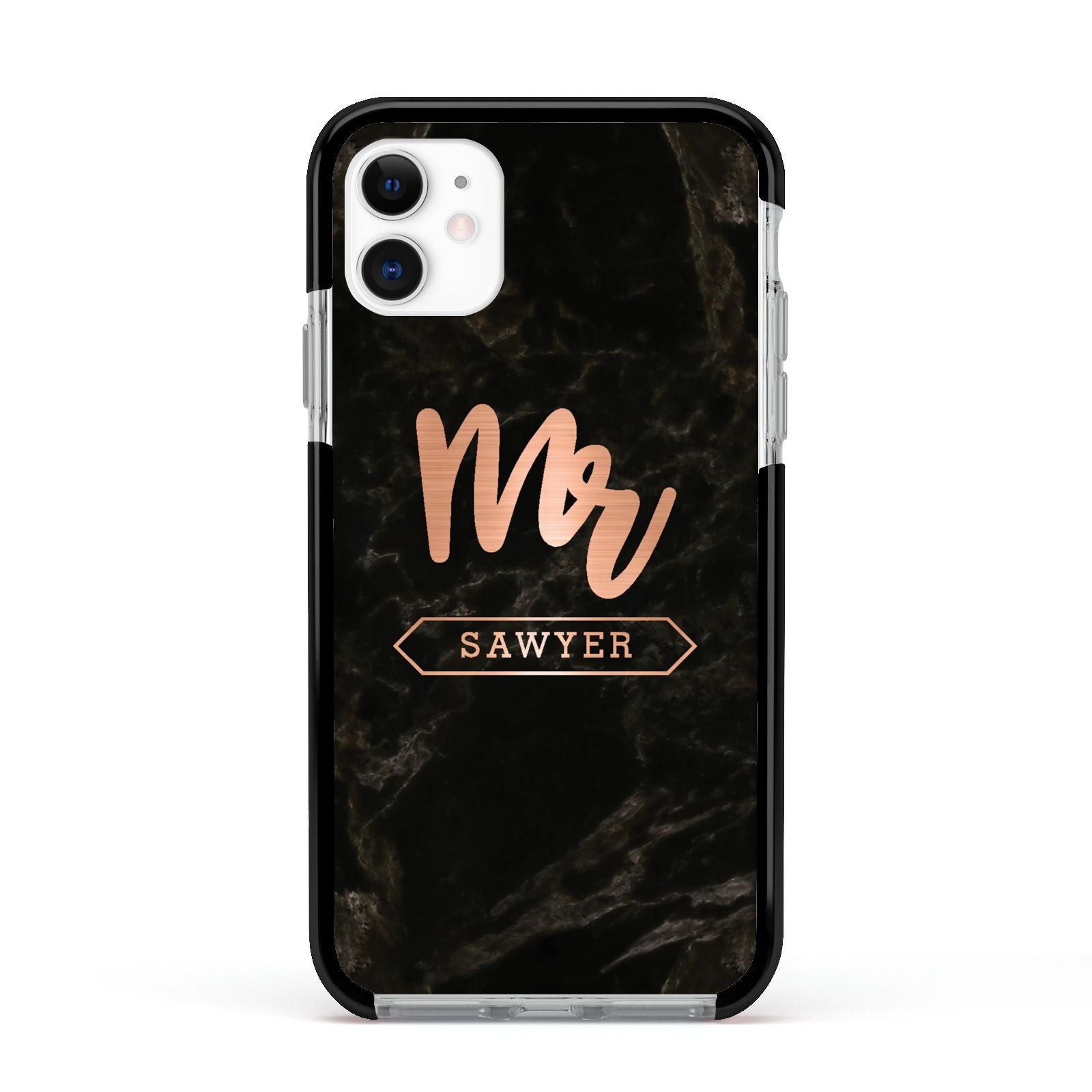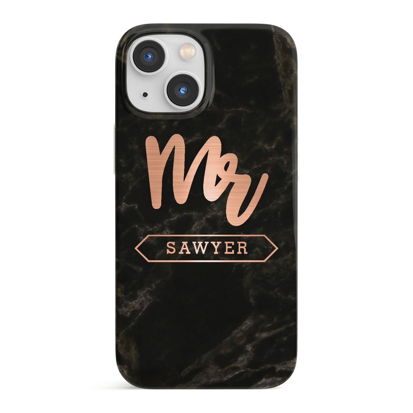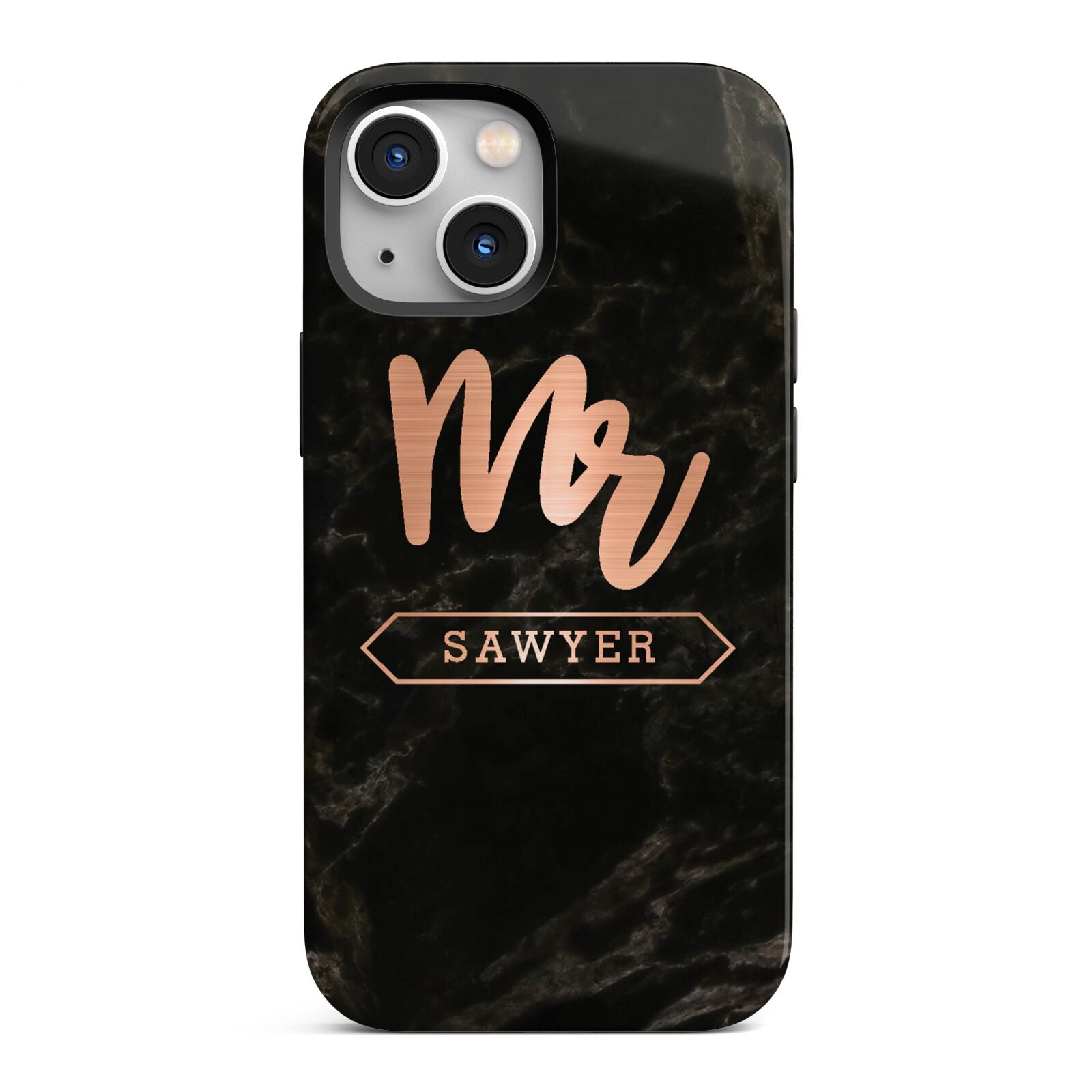 Personalised Rose Gold Mr Surname Marble Apple iPhone Case