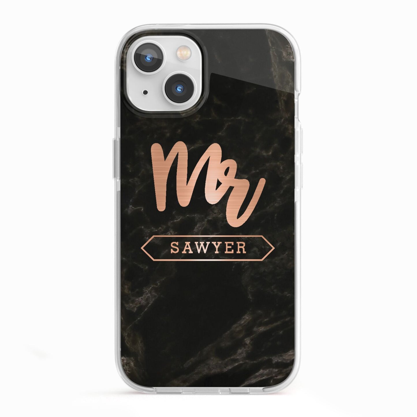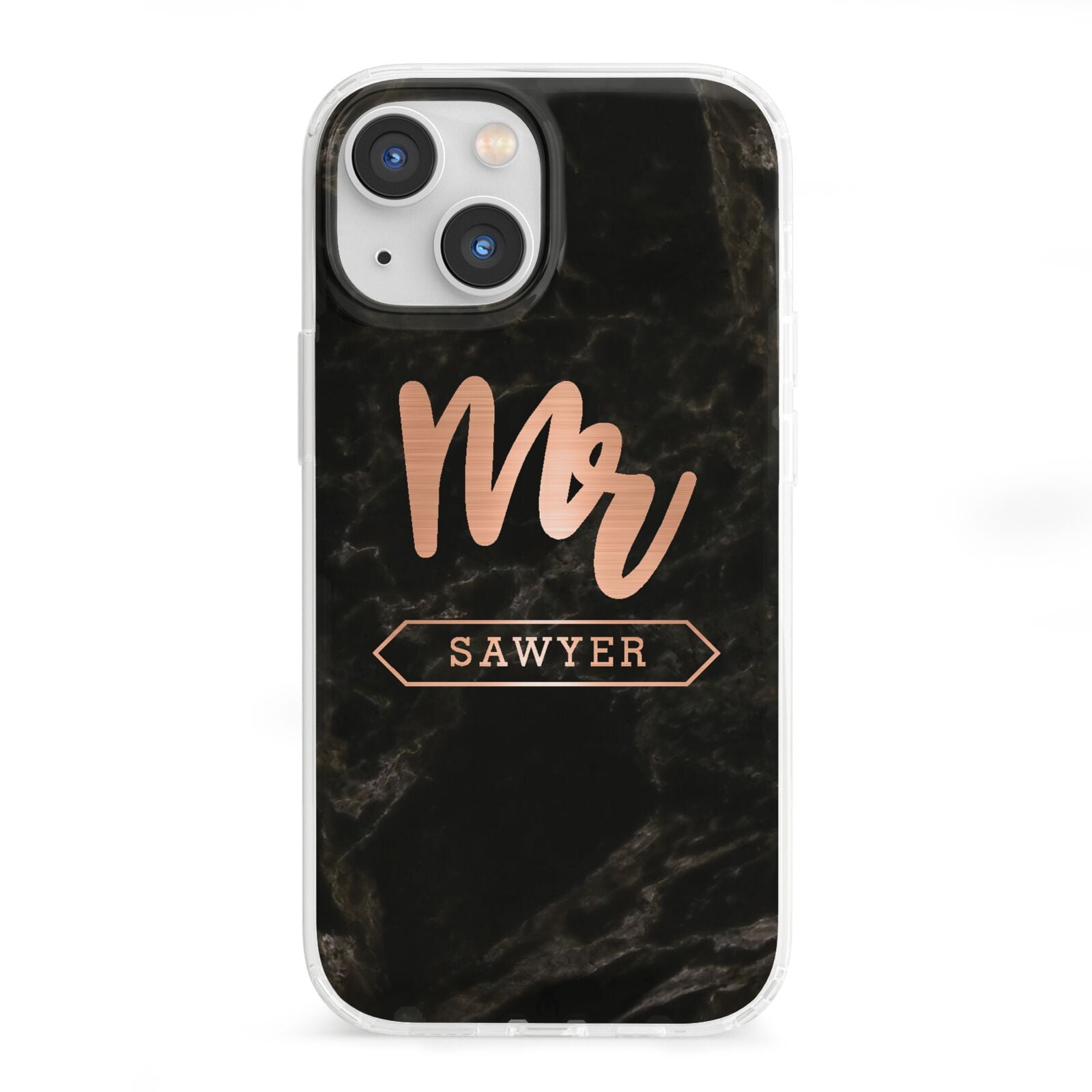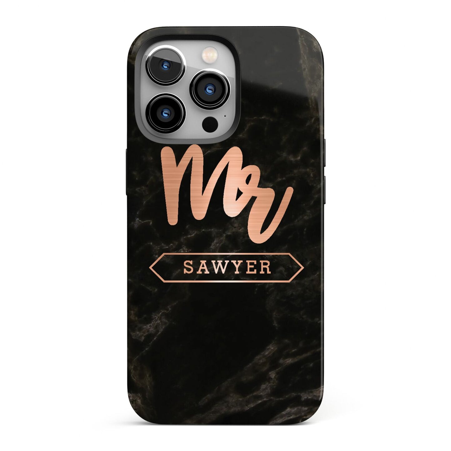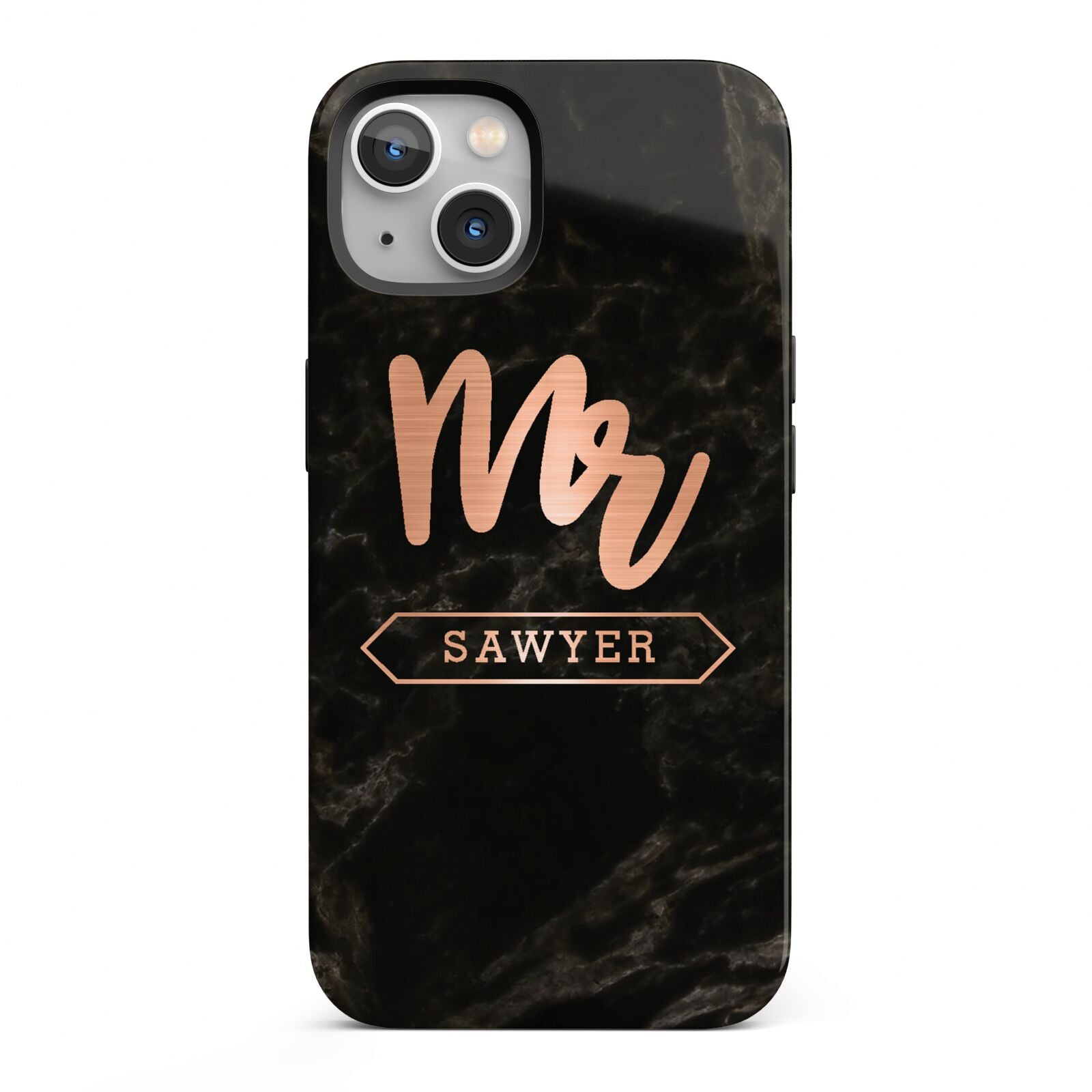 Personalised Rose Gold Mr Surname Marble Apple iPhone Case