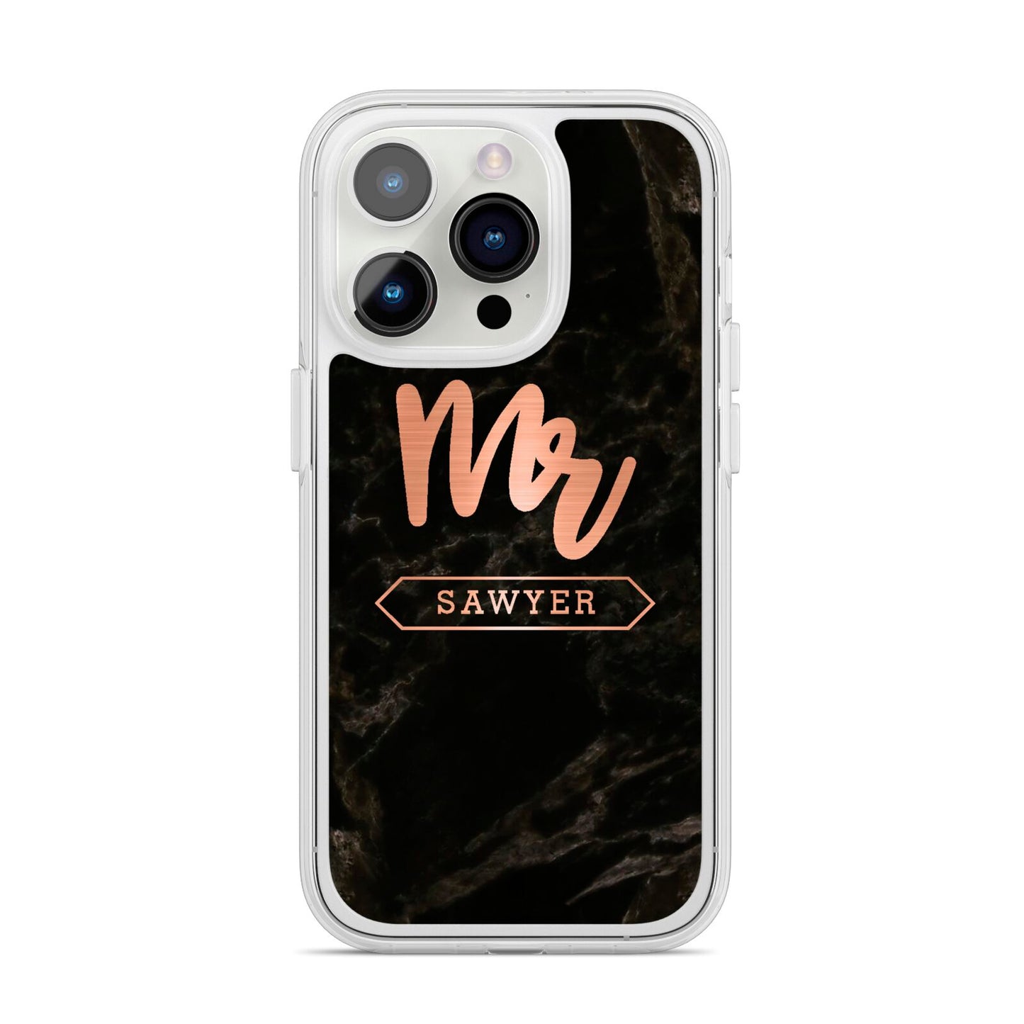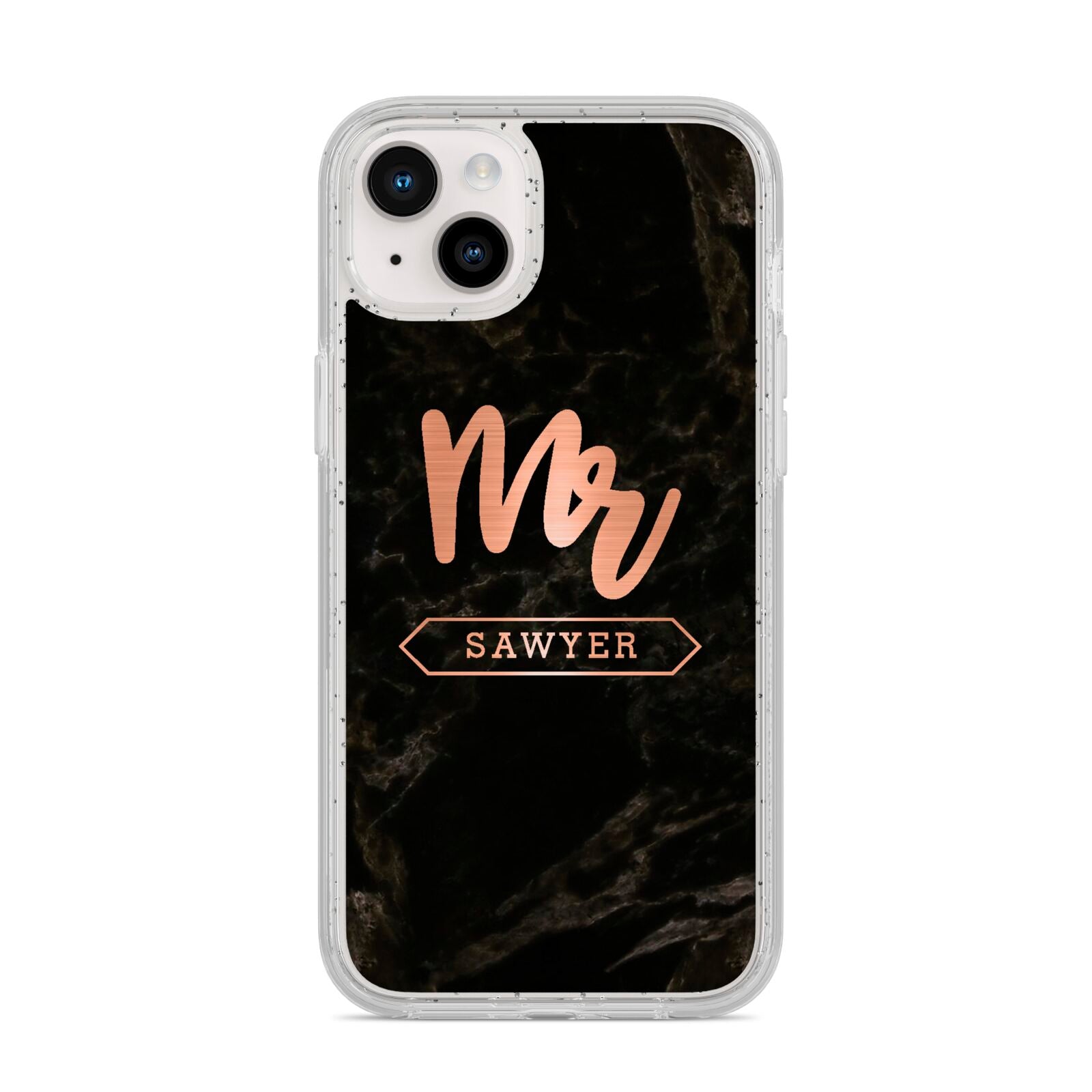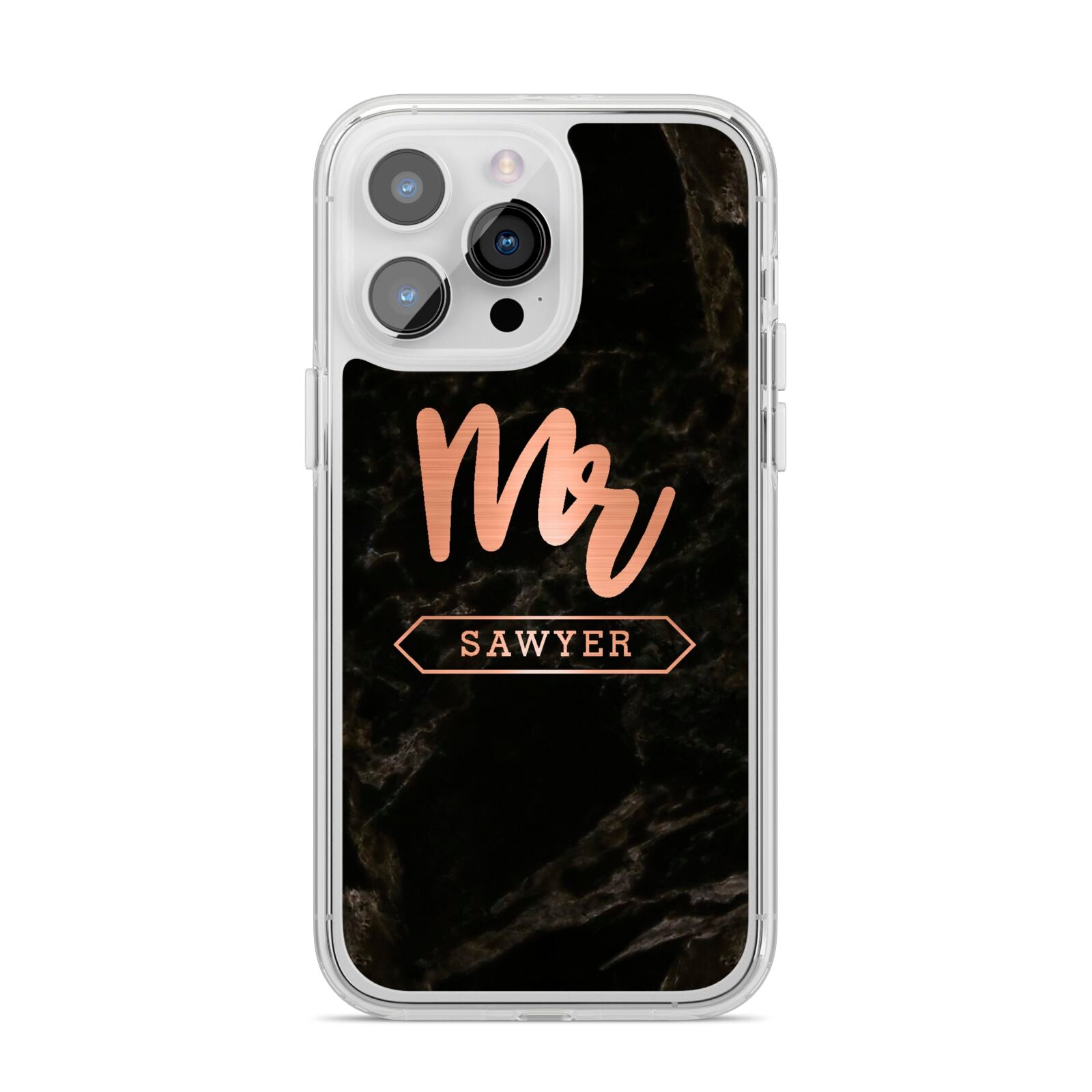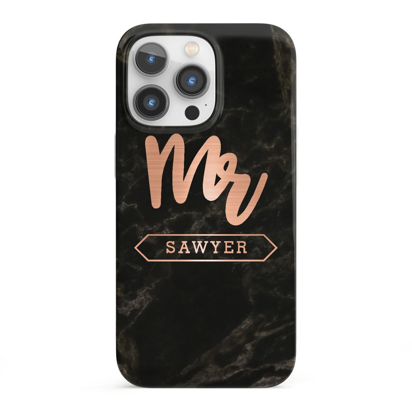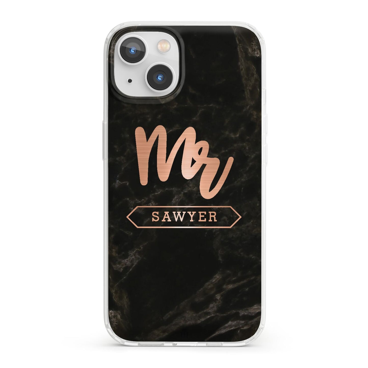 Personalised Rose Gold Mr Surname Marble Apple iPhone Case