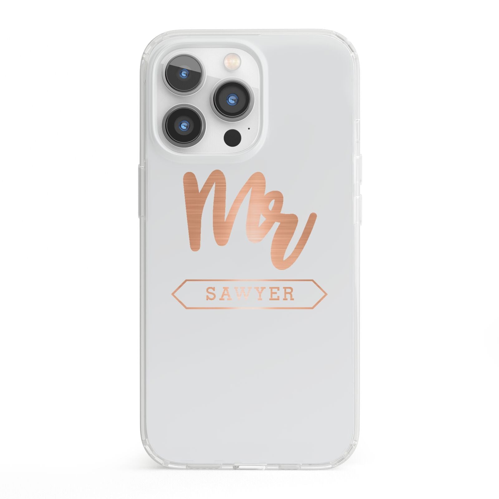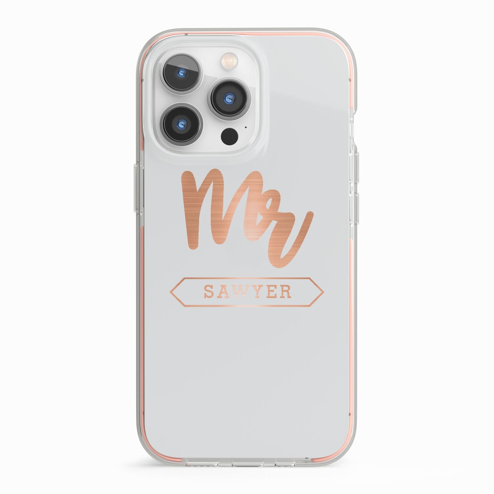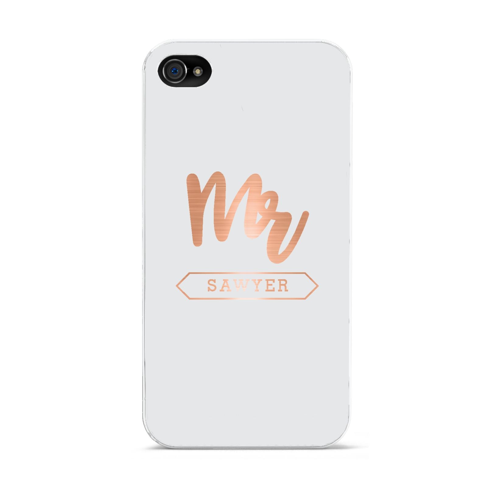 Personalised Rose Gold Mr Surname On Grey Apple iPhone Case