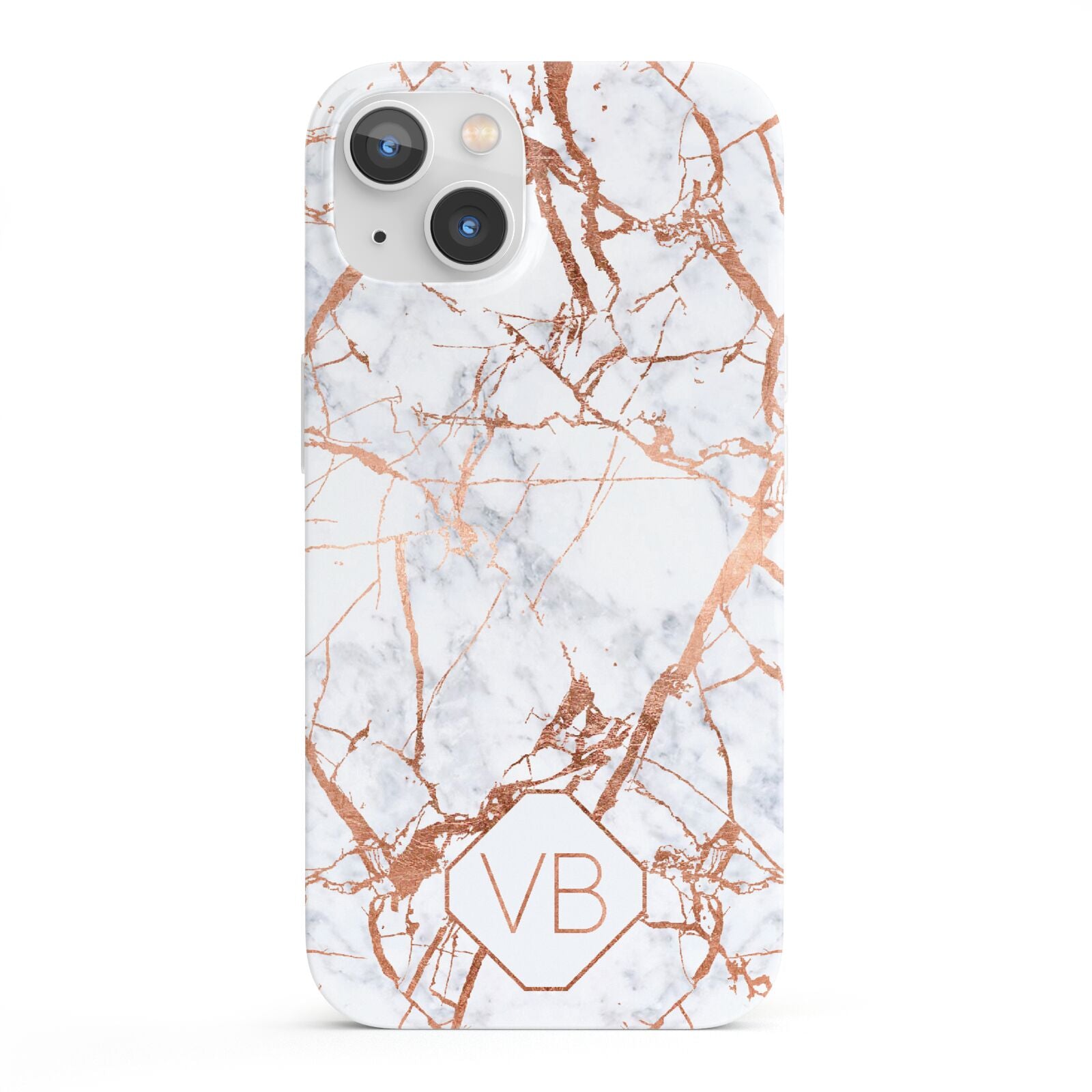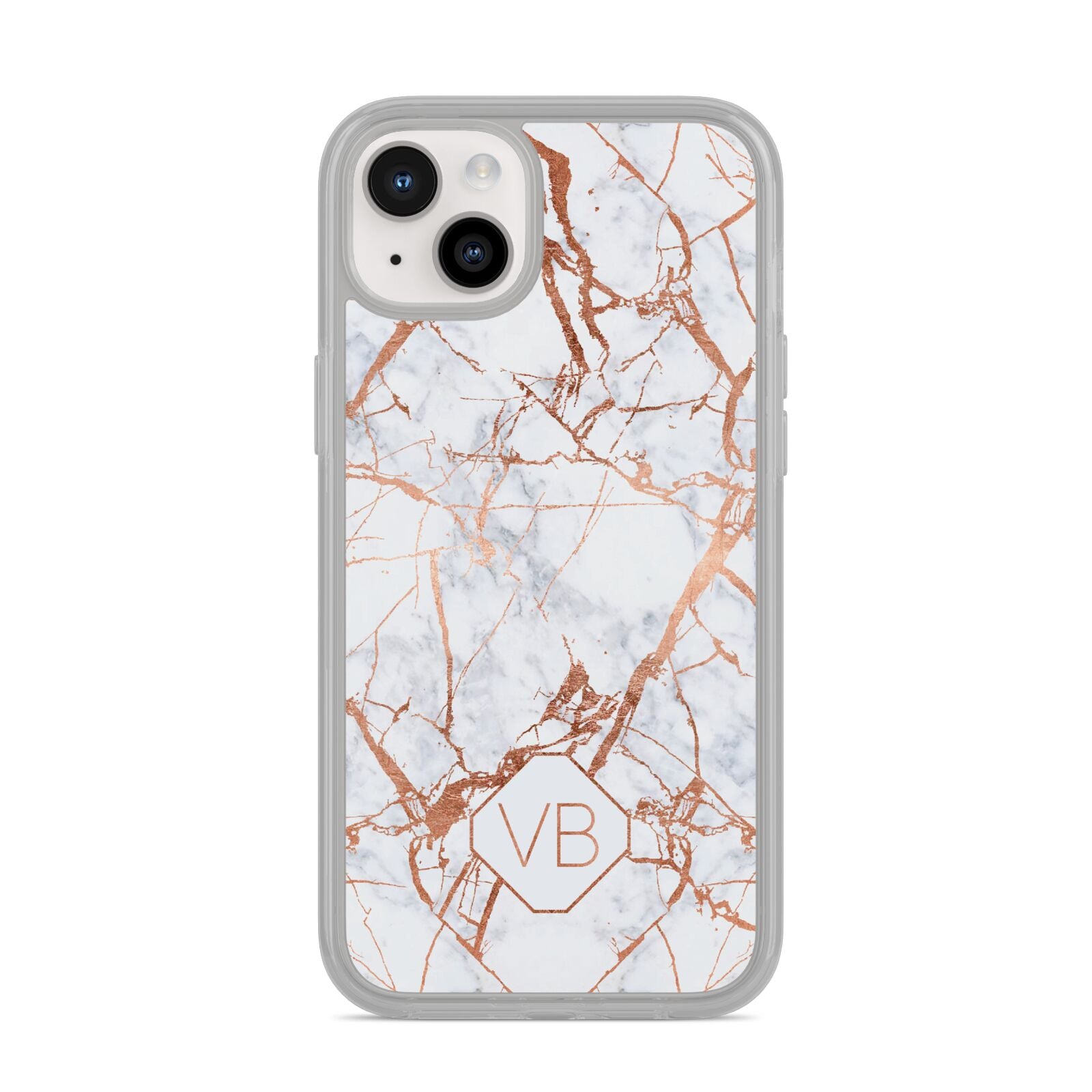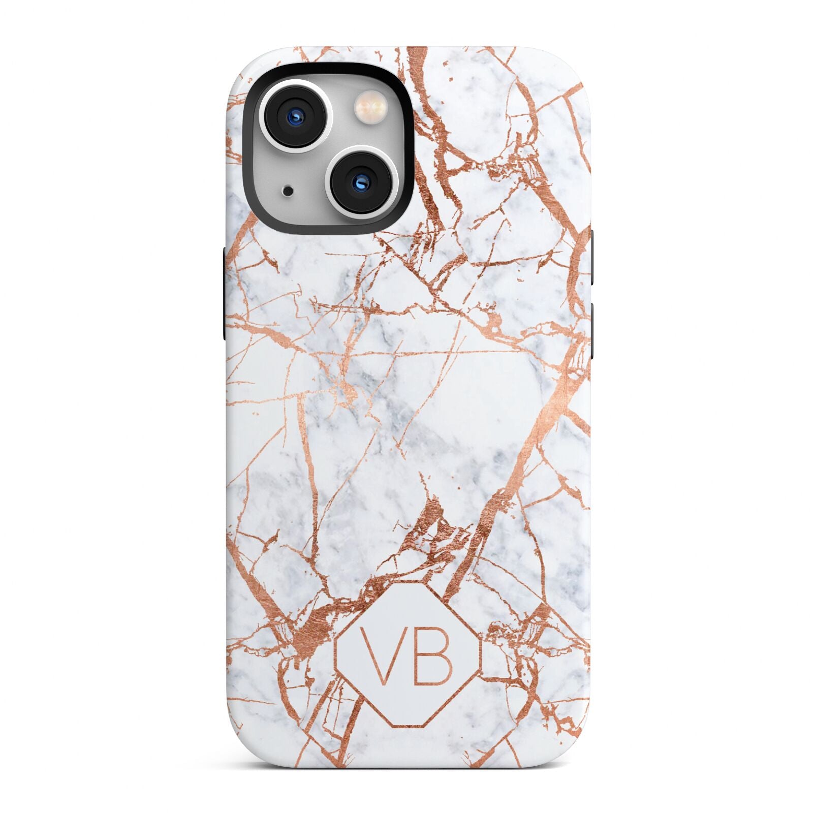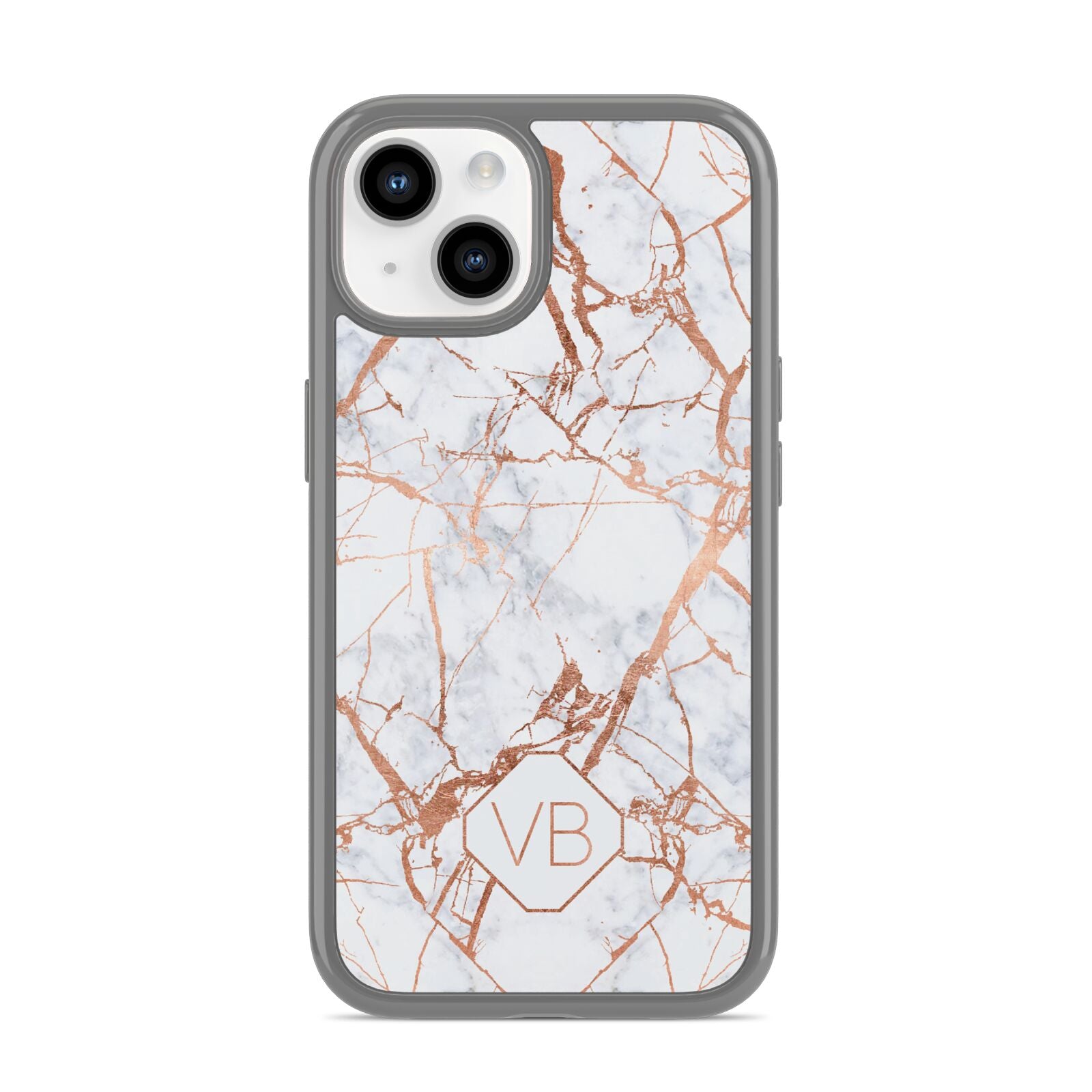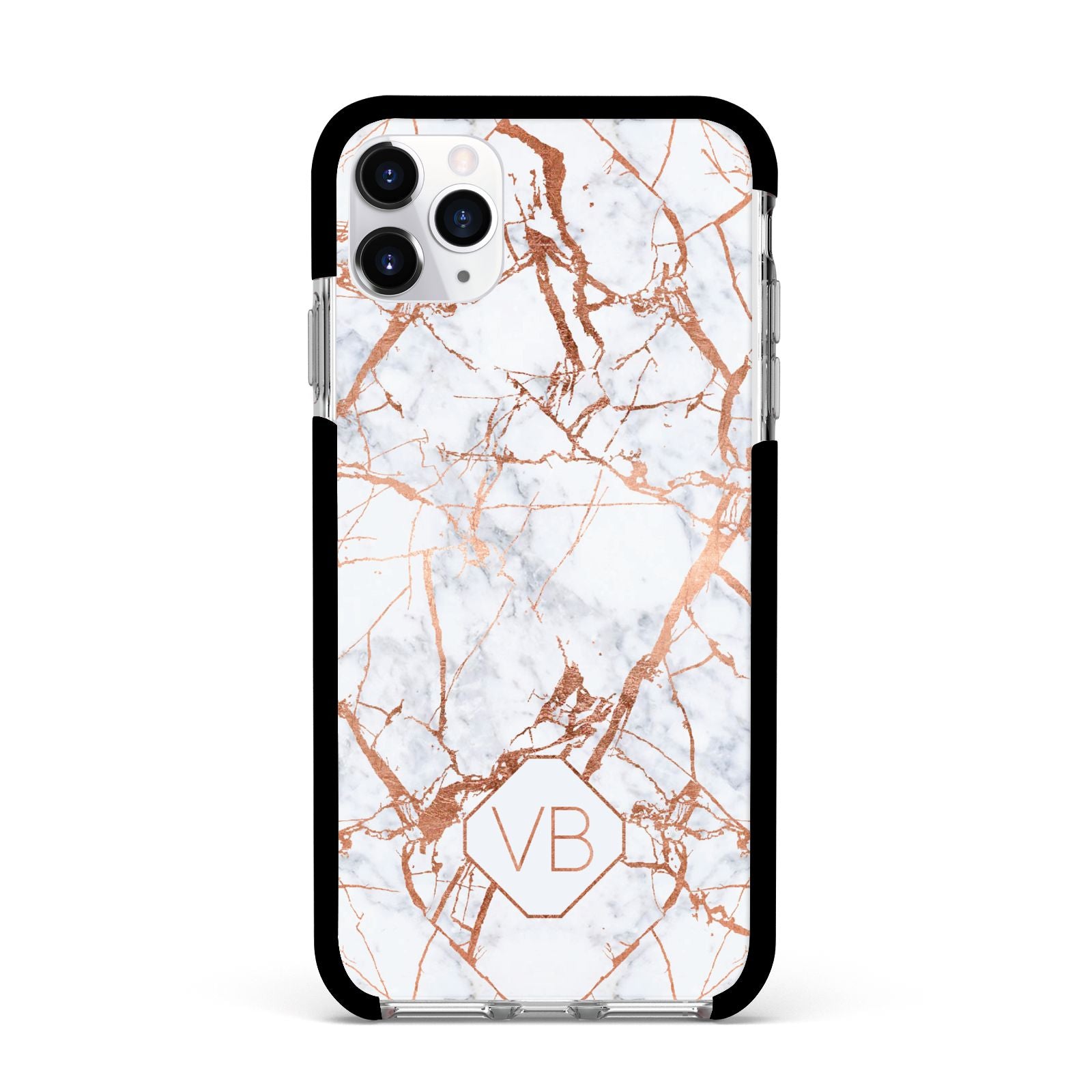 Personalised Rose Gold Vein Marble Initials Apple iPhone Case