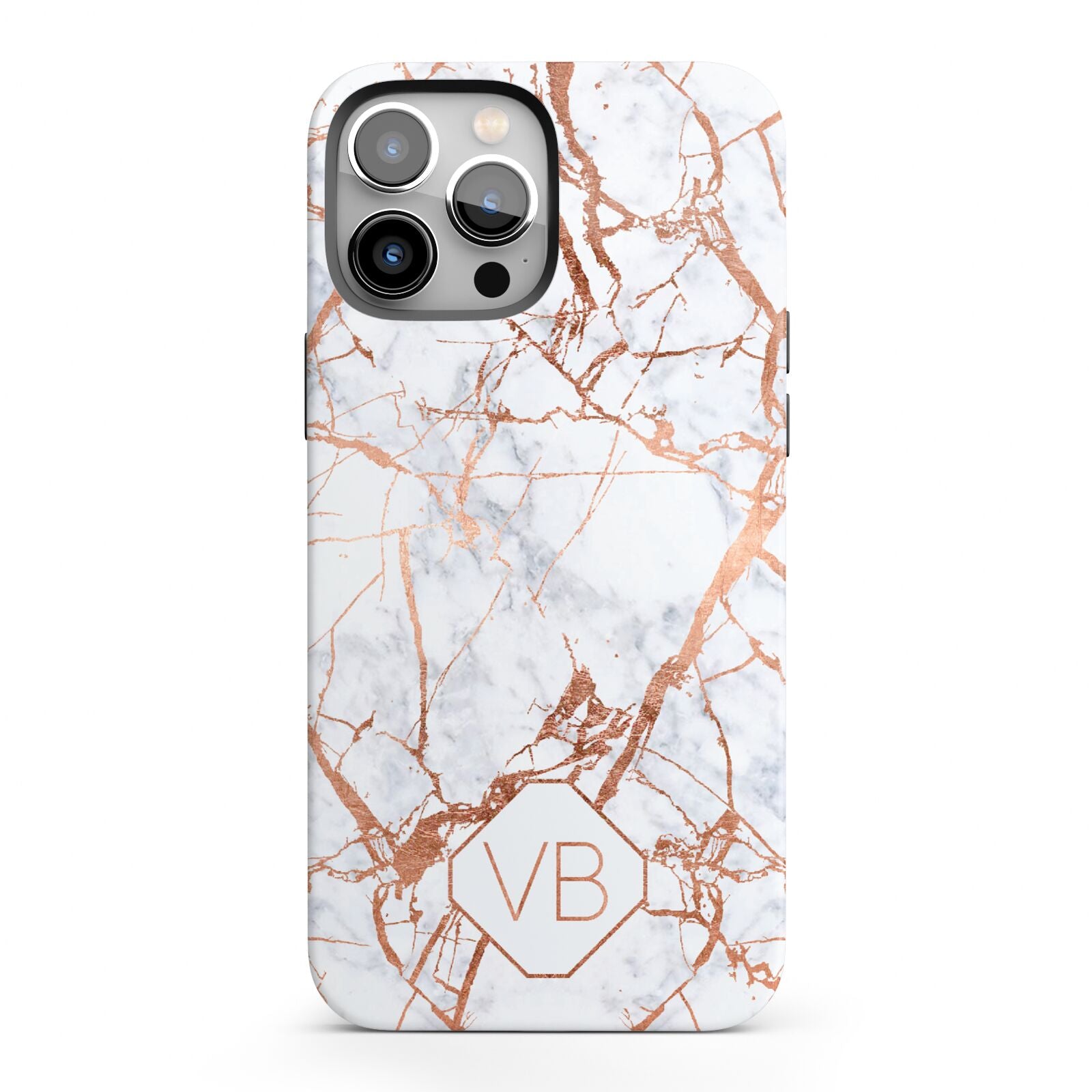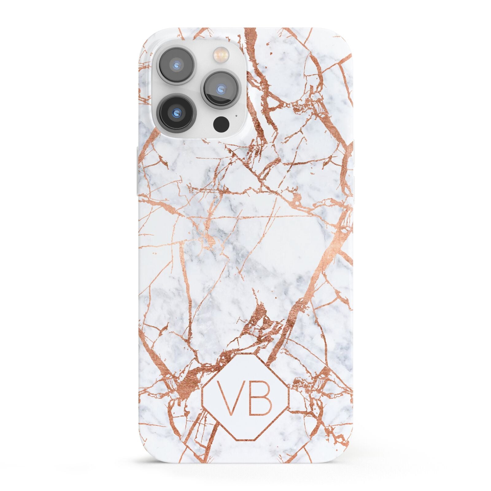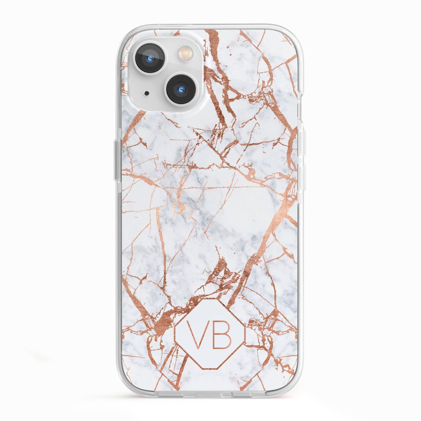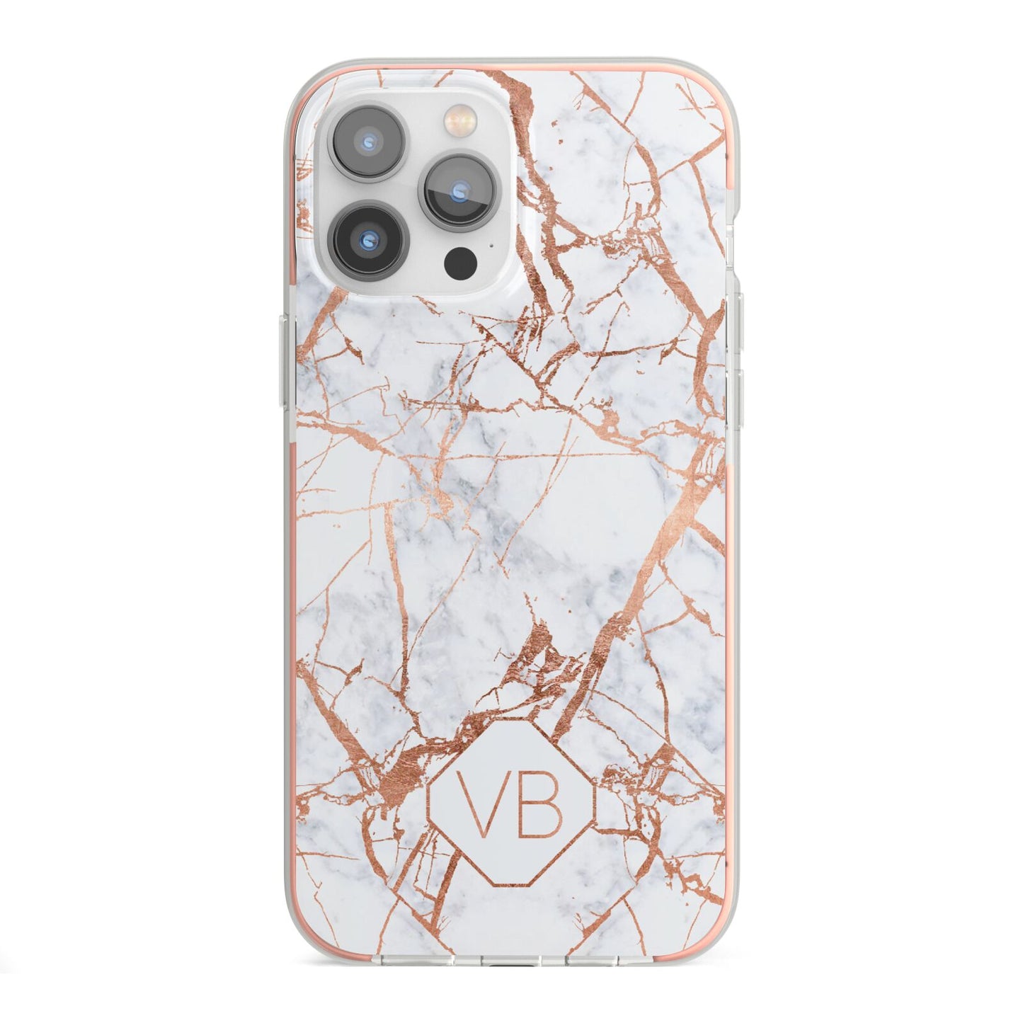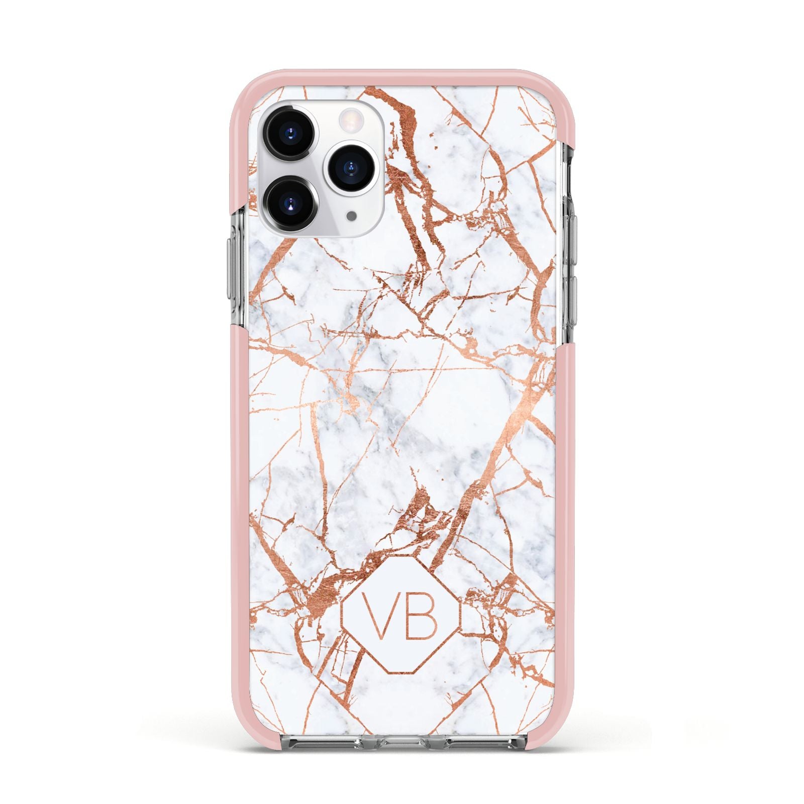 Personalised Rose Gold Vein Marble Initials Apple iPhone Case