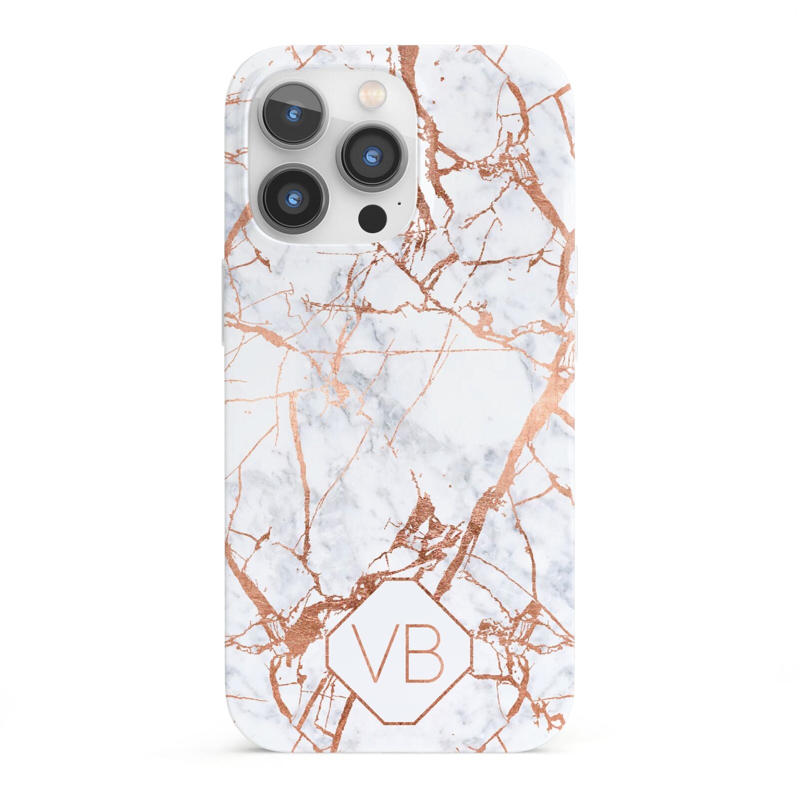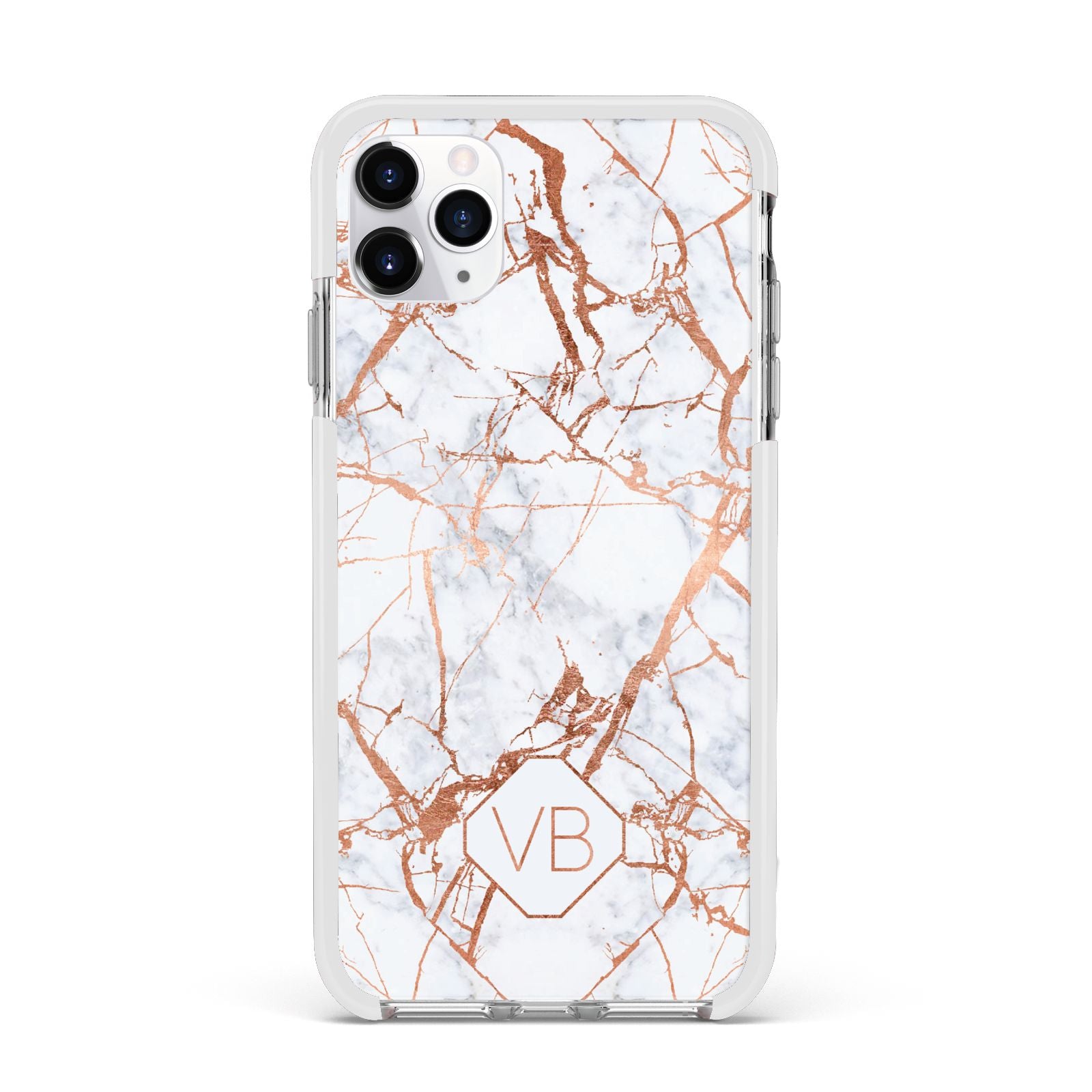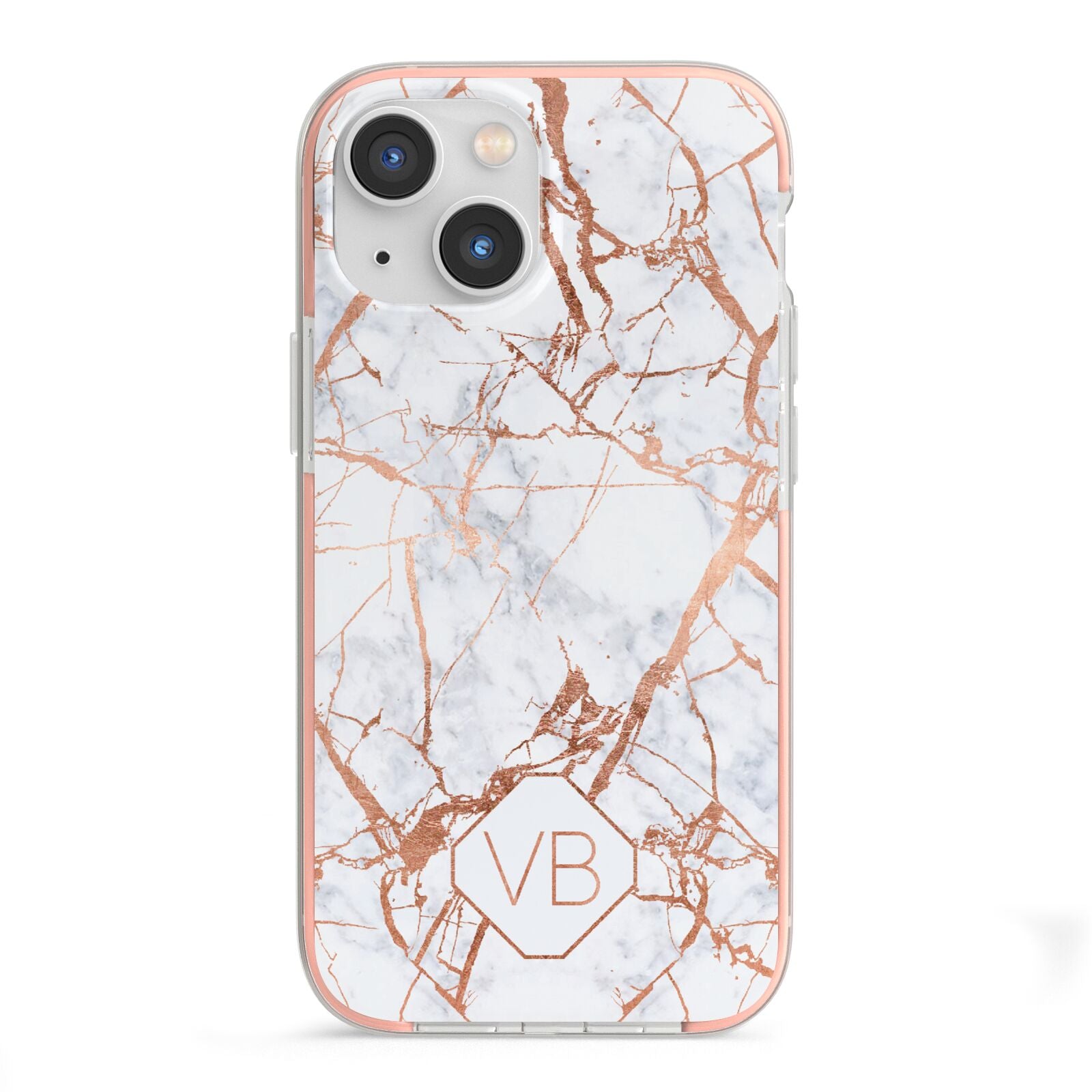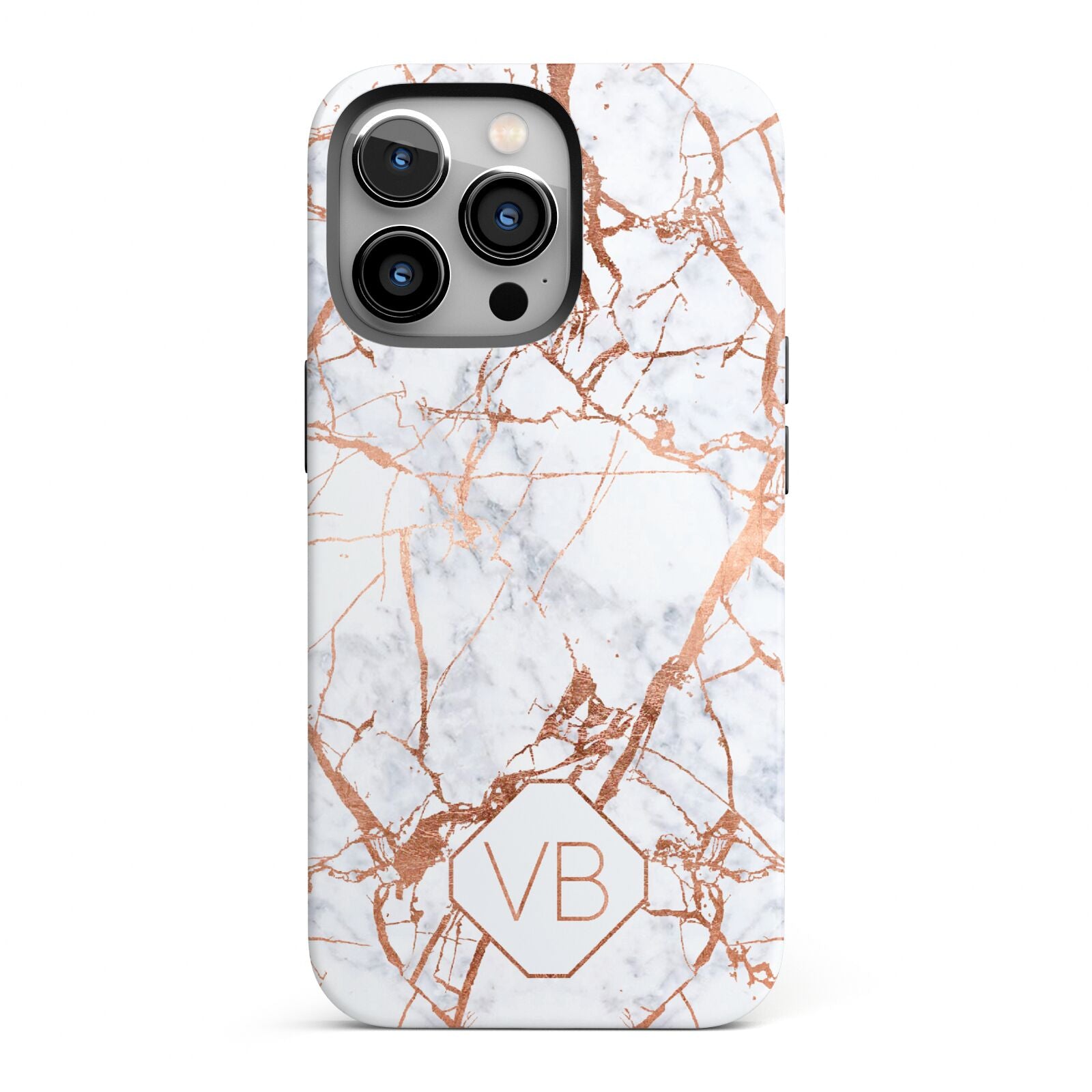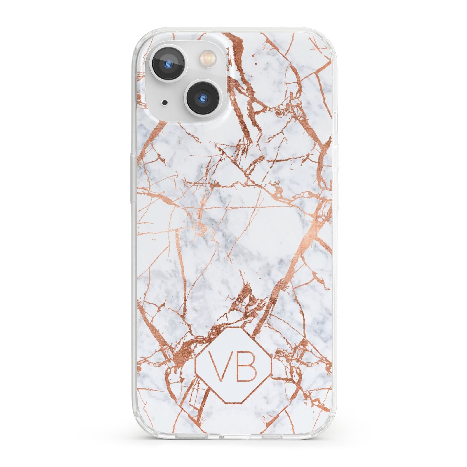 Personalised Rose Gold Vein Marble Initials Apple iPhone Case