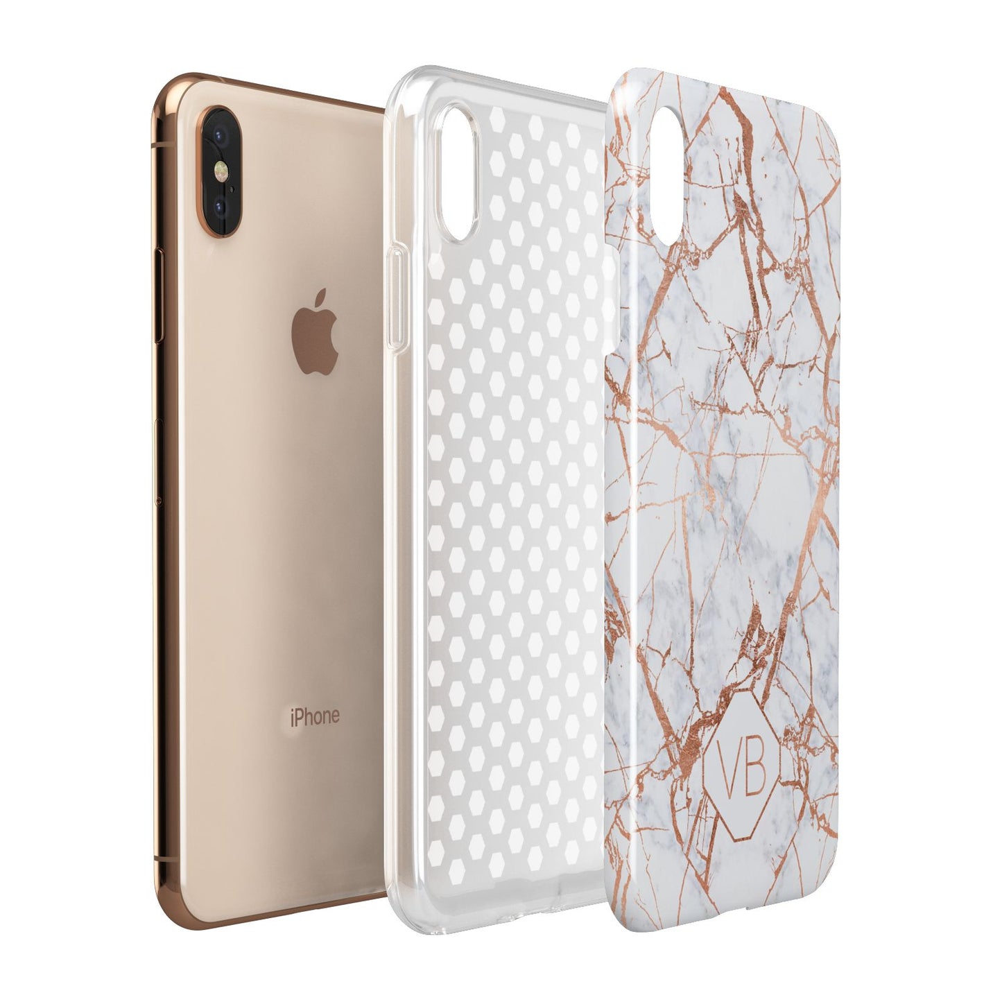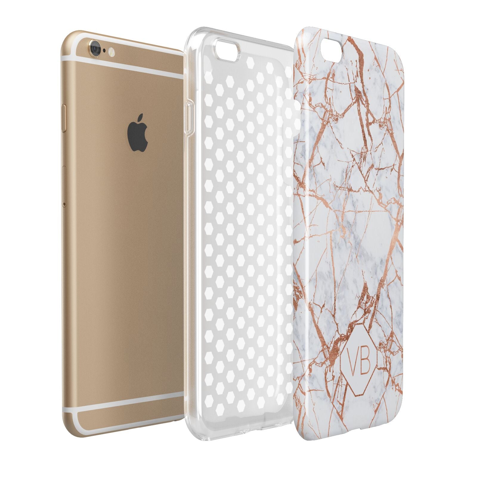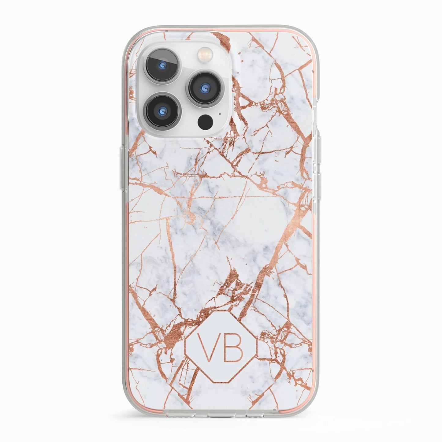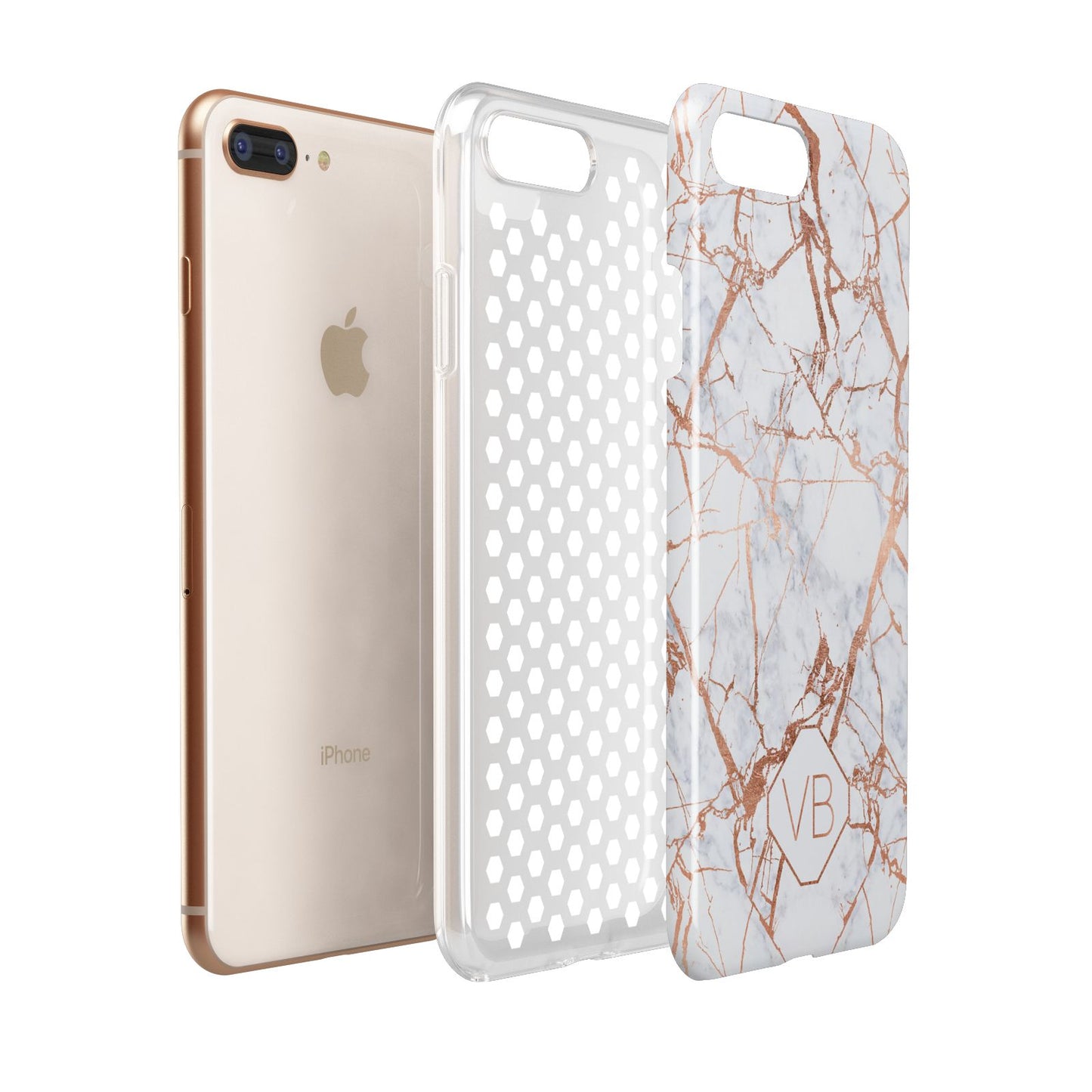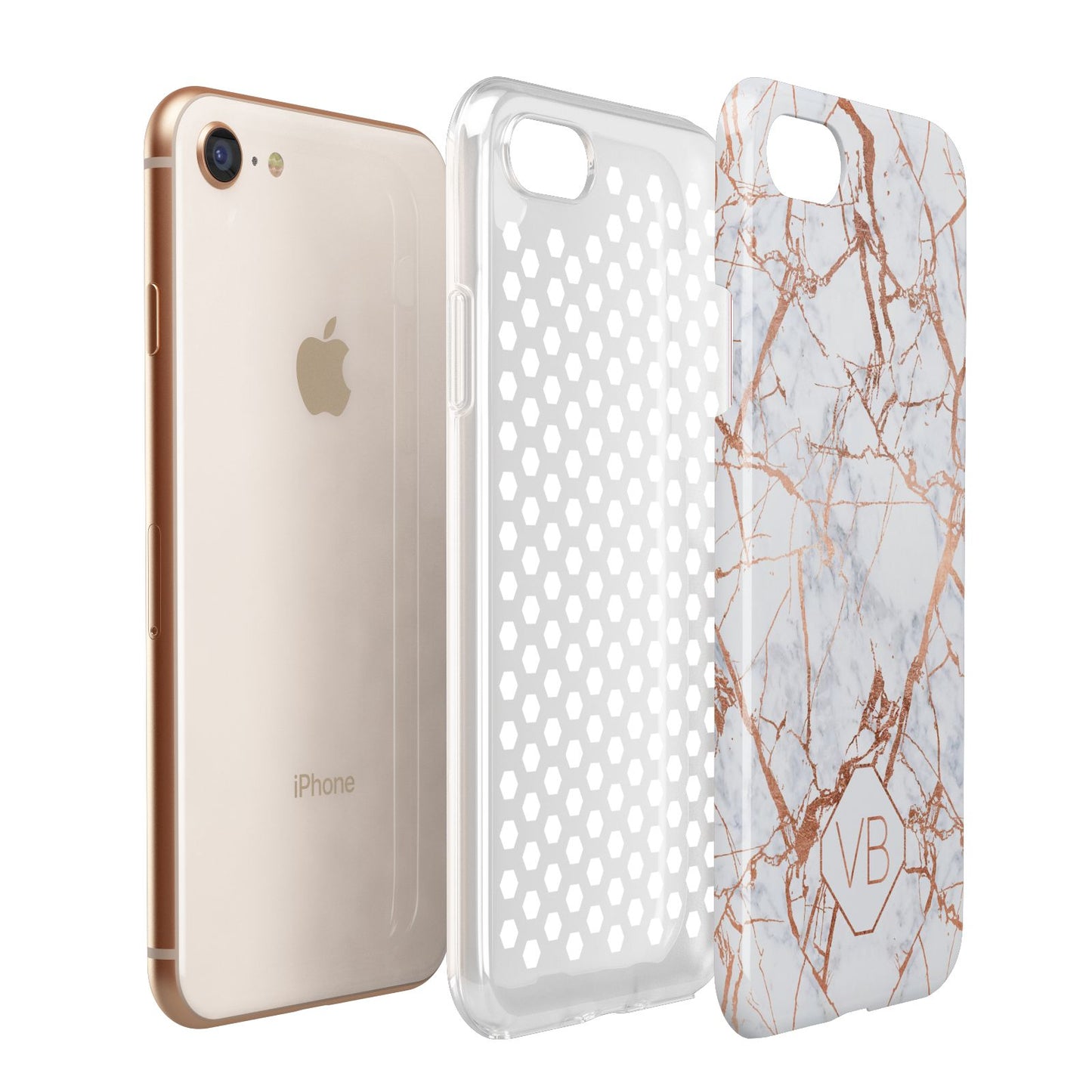 Personalised Rose Gold Vein Marble Initials Apple iPhone Case