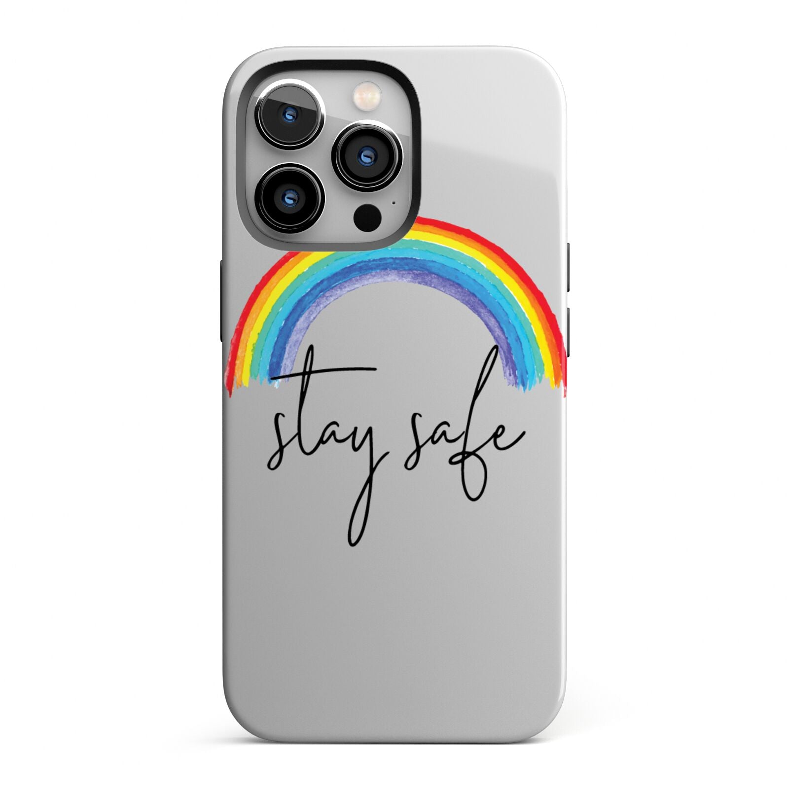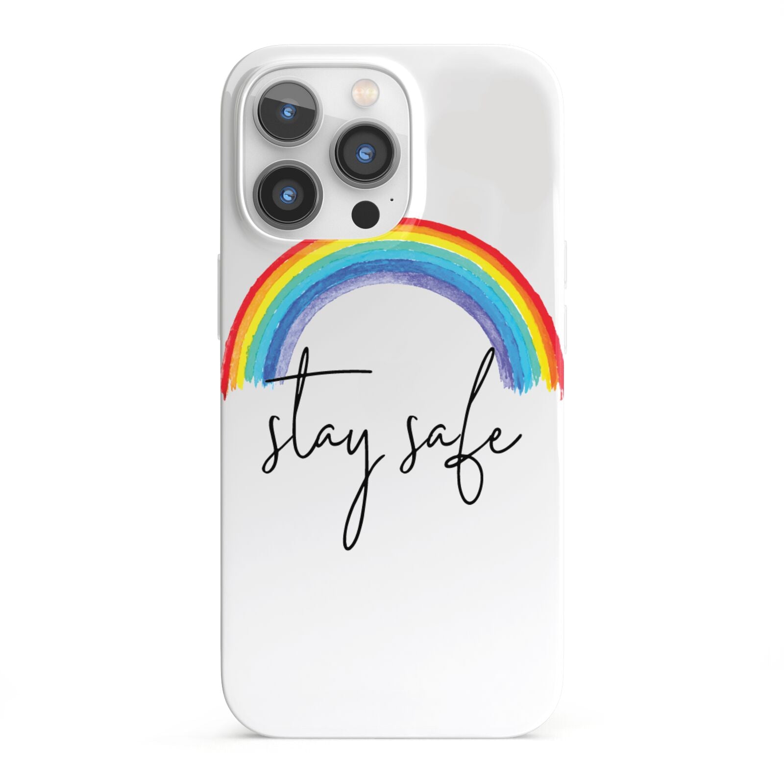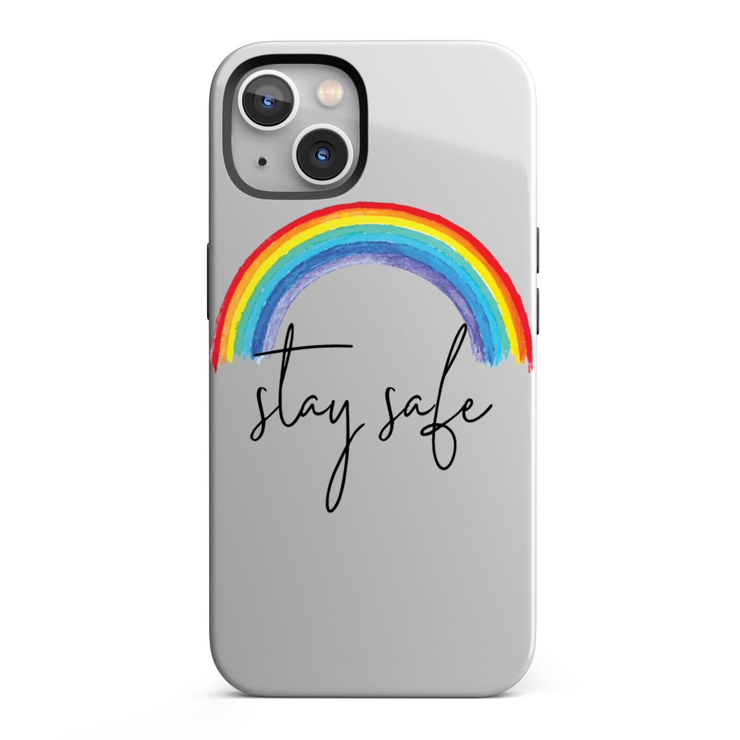 Our Stay Safe Rainbow phone case is the perfect message to send to a loved one during a difficult time. This watercolour rainbow looks great against our transparent cases. Featuring script font 'stay safe' underneath the rainbow. To relatives afar send this as a gift so that they know you're thinking of them. Alternatively this makes a wonderful purchase for yourself.