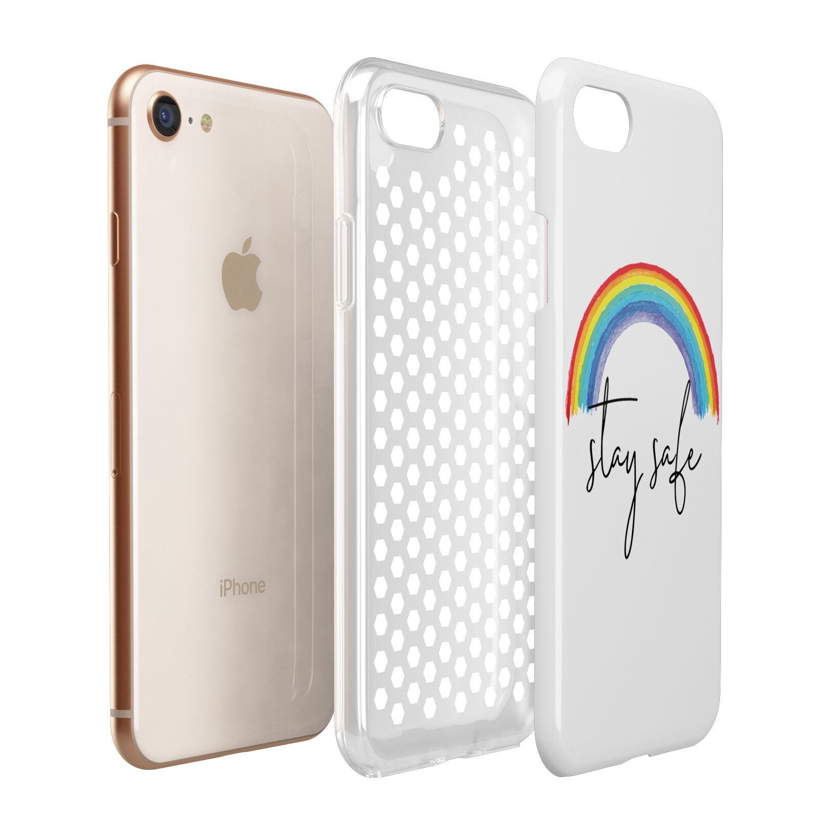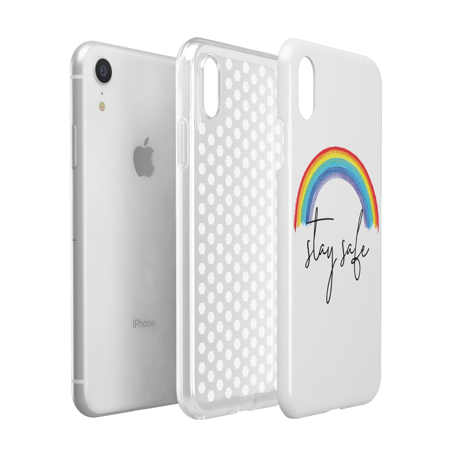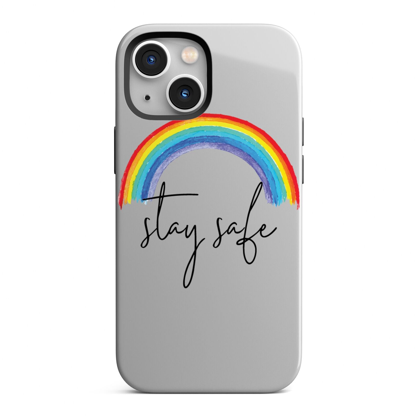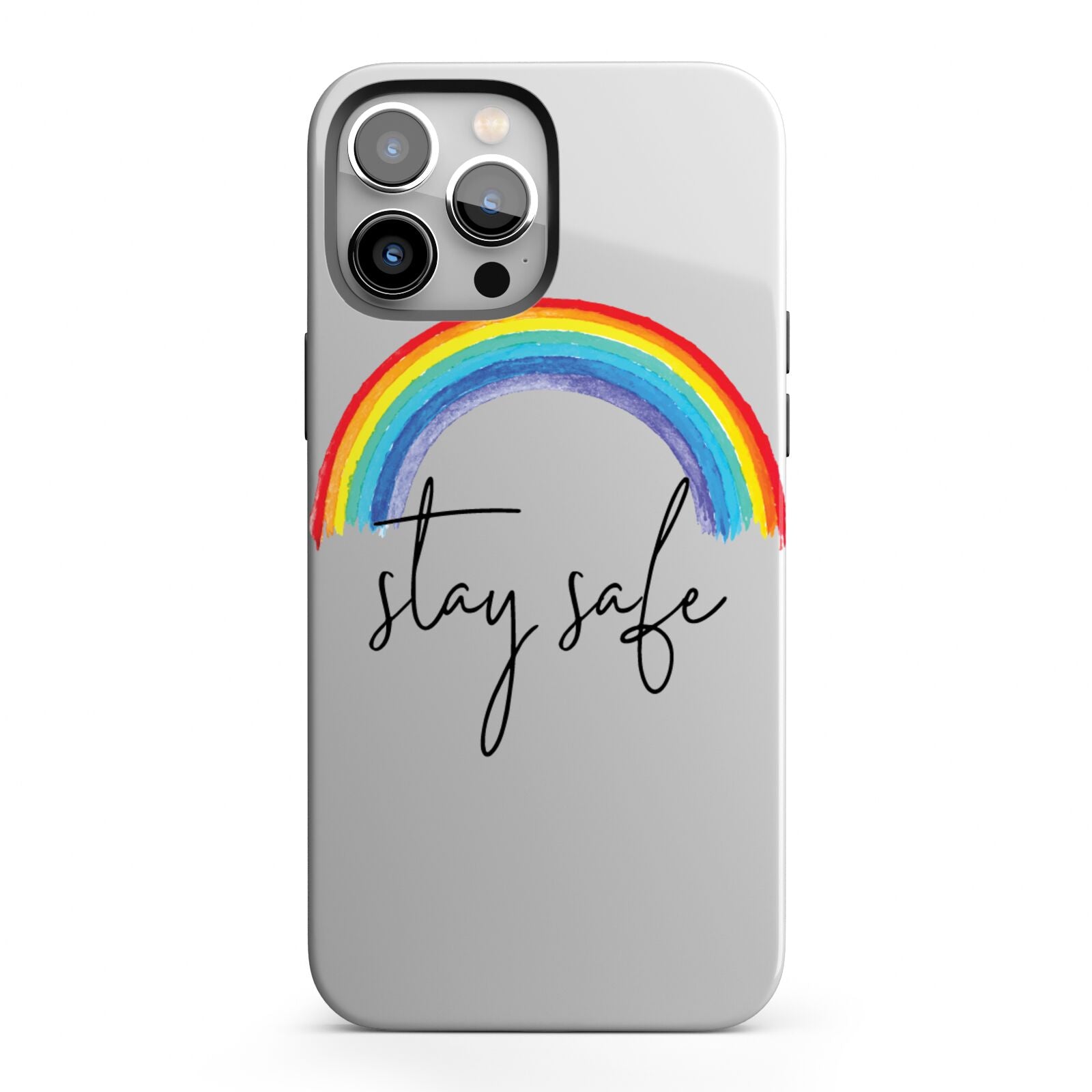 Our Stay Safe Rainbow phone case is the perfect message to send to a loved one during a difficult time. This watercolour rainbow looks great against our transparent cases. Featuring script font 'stay safe' underneath the rainbow. To relatives afar send this as a gift so that they know you're thinking of them. Alternatively this makes a wonderful purchase for yourself.
