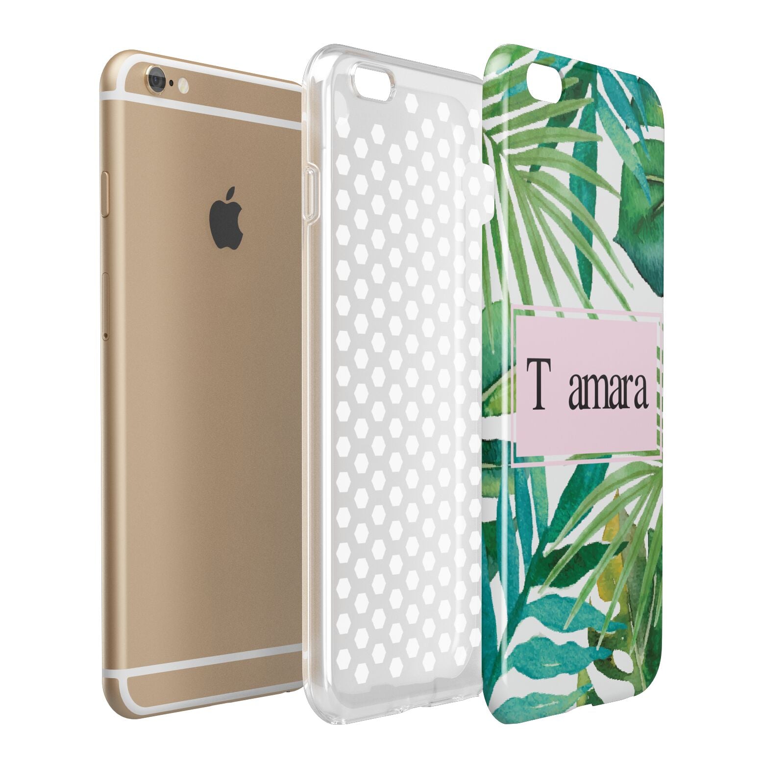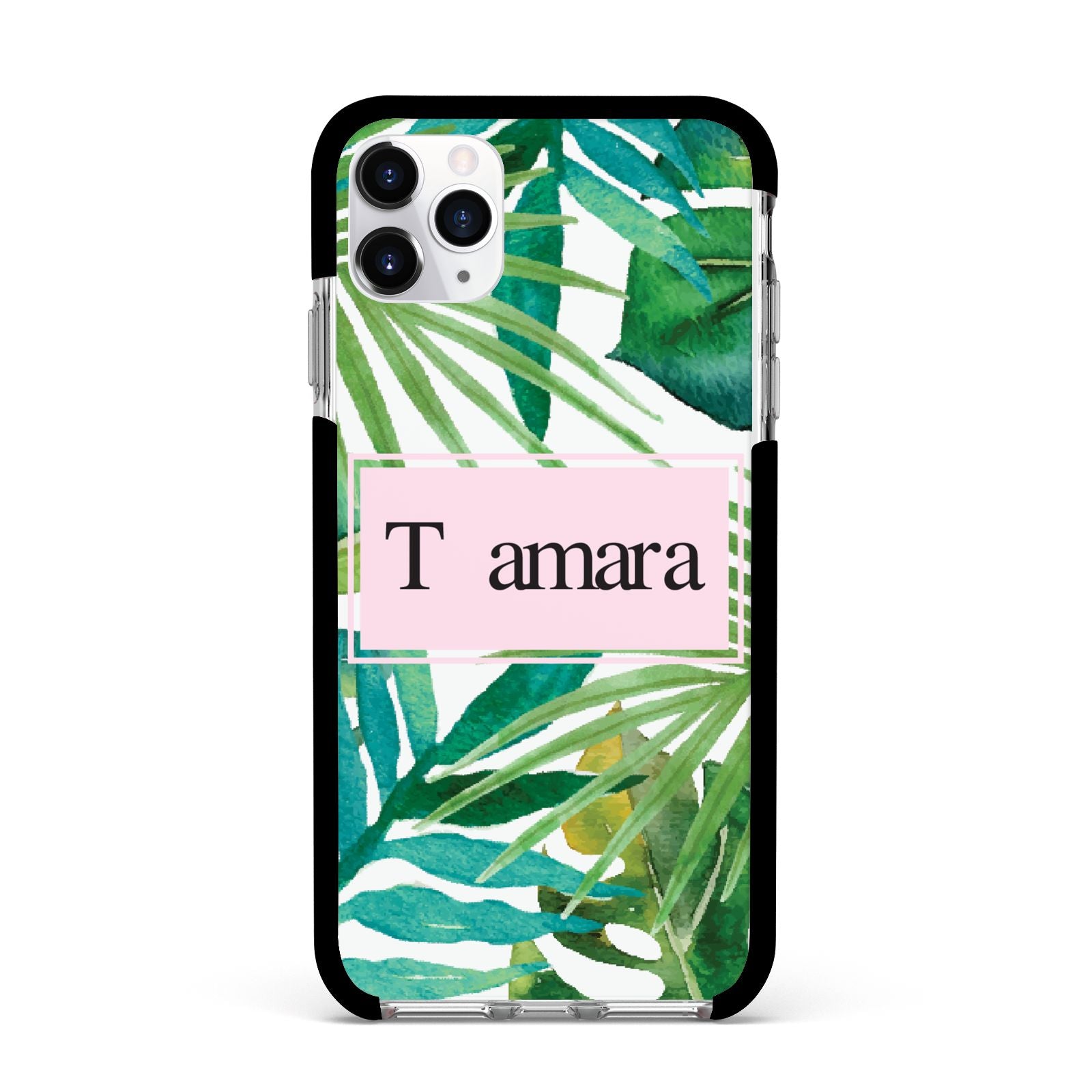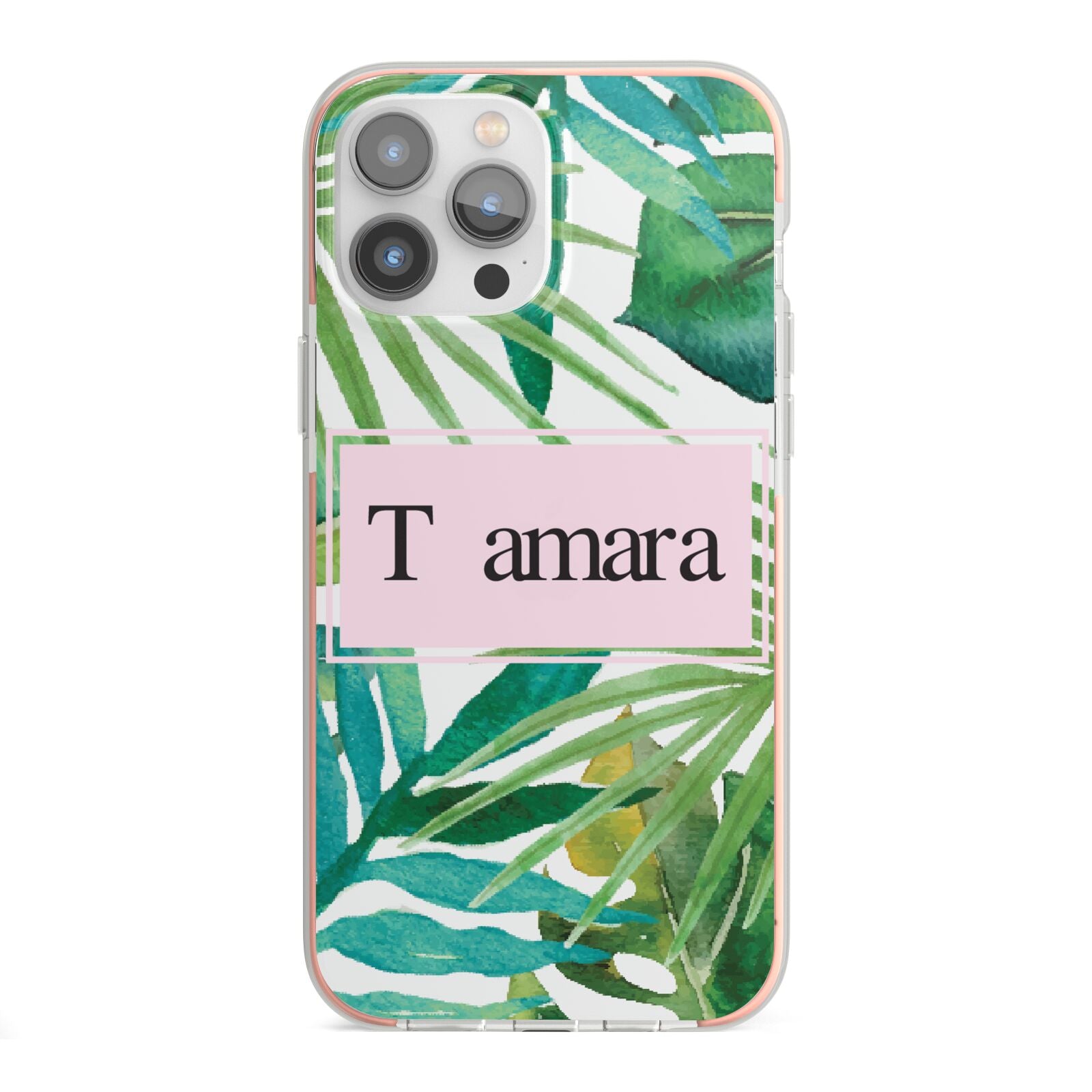 Personalised Tropical Leaf Pink Name Apple iPhone Case