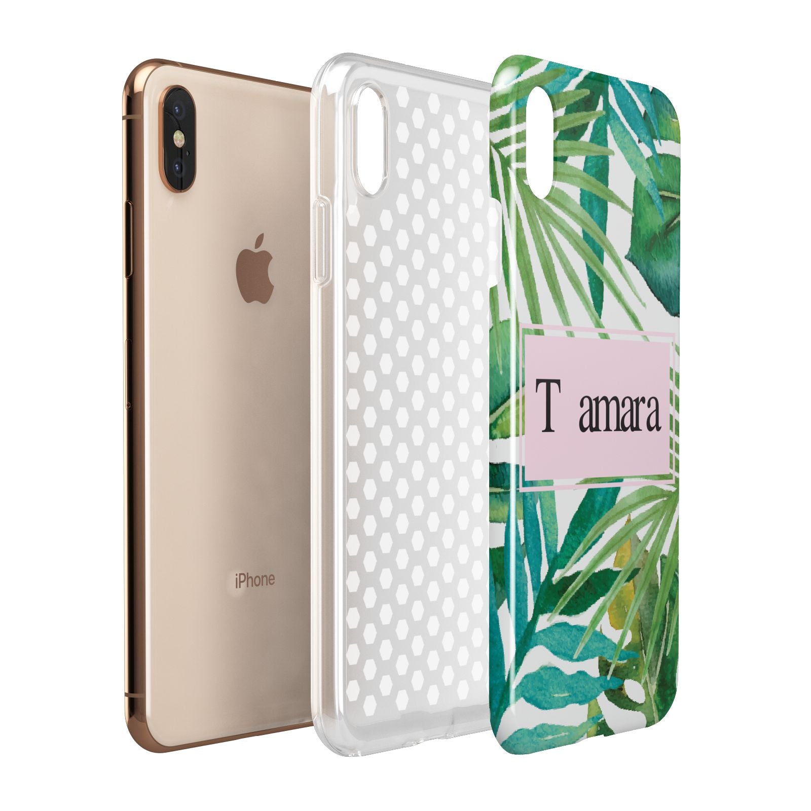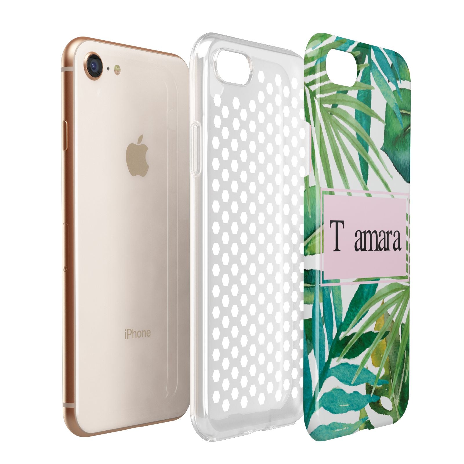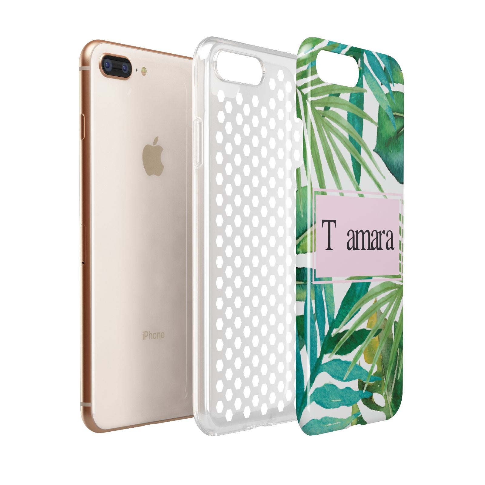 Personalised Tropical Leaf Pink Name Apple iPhone Case