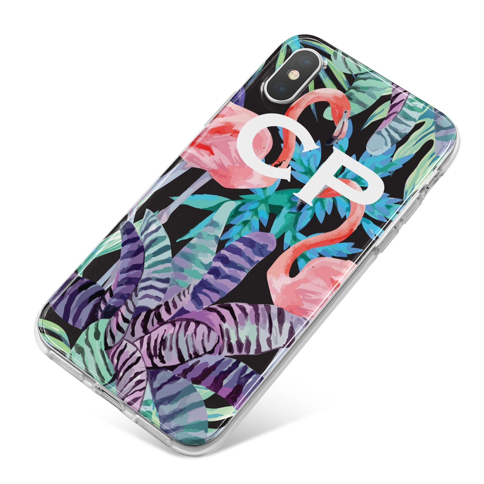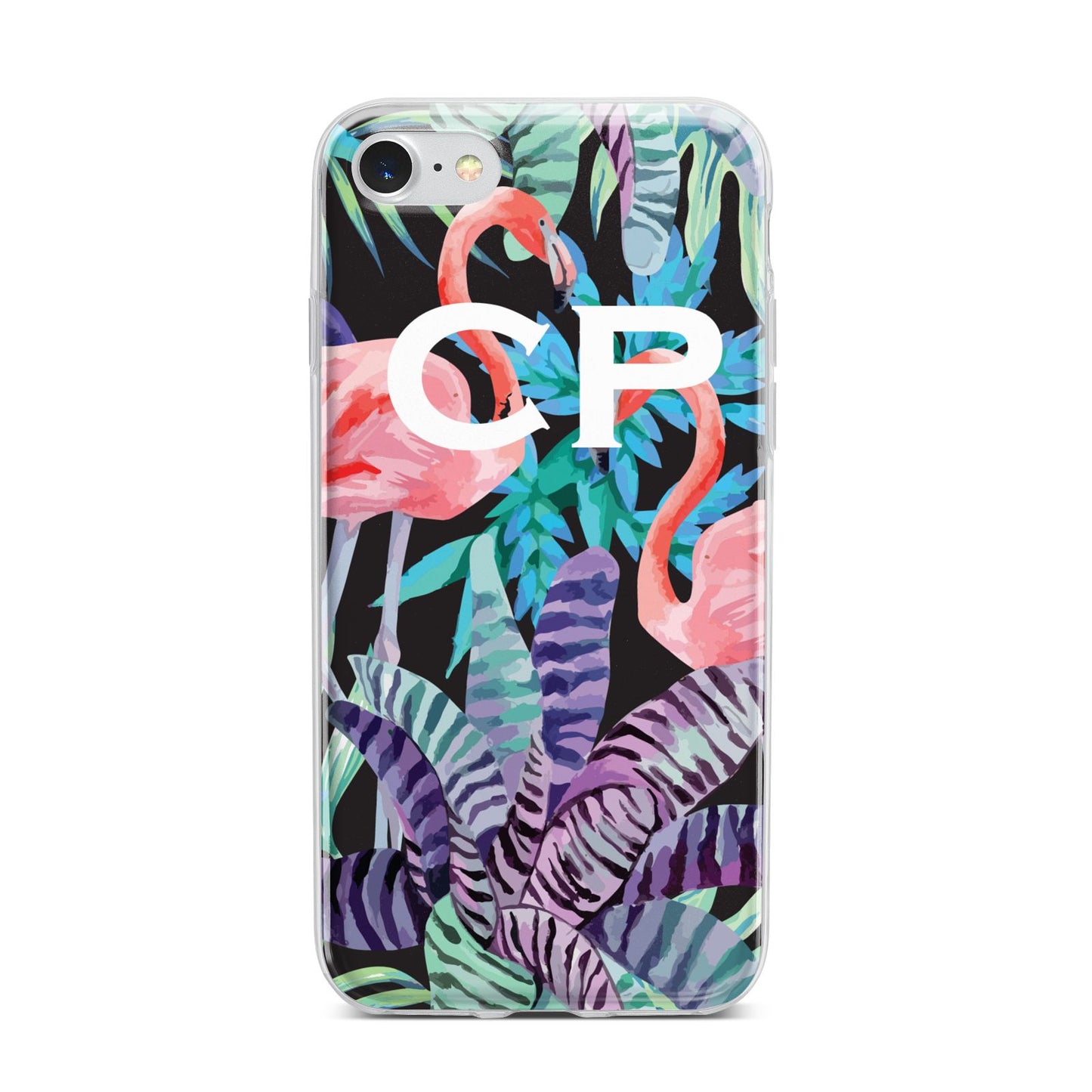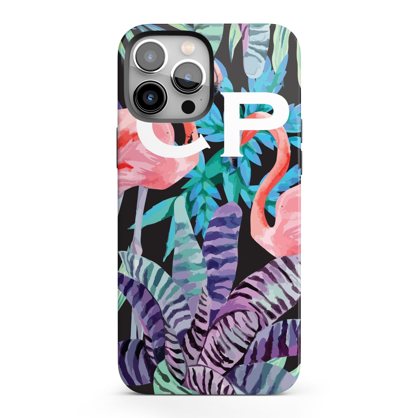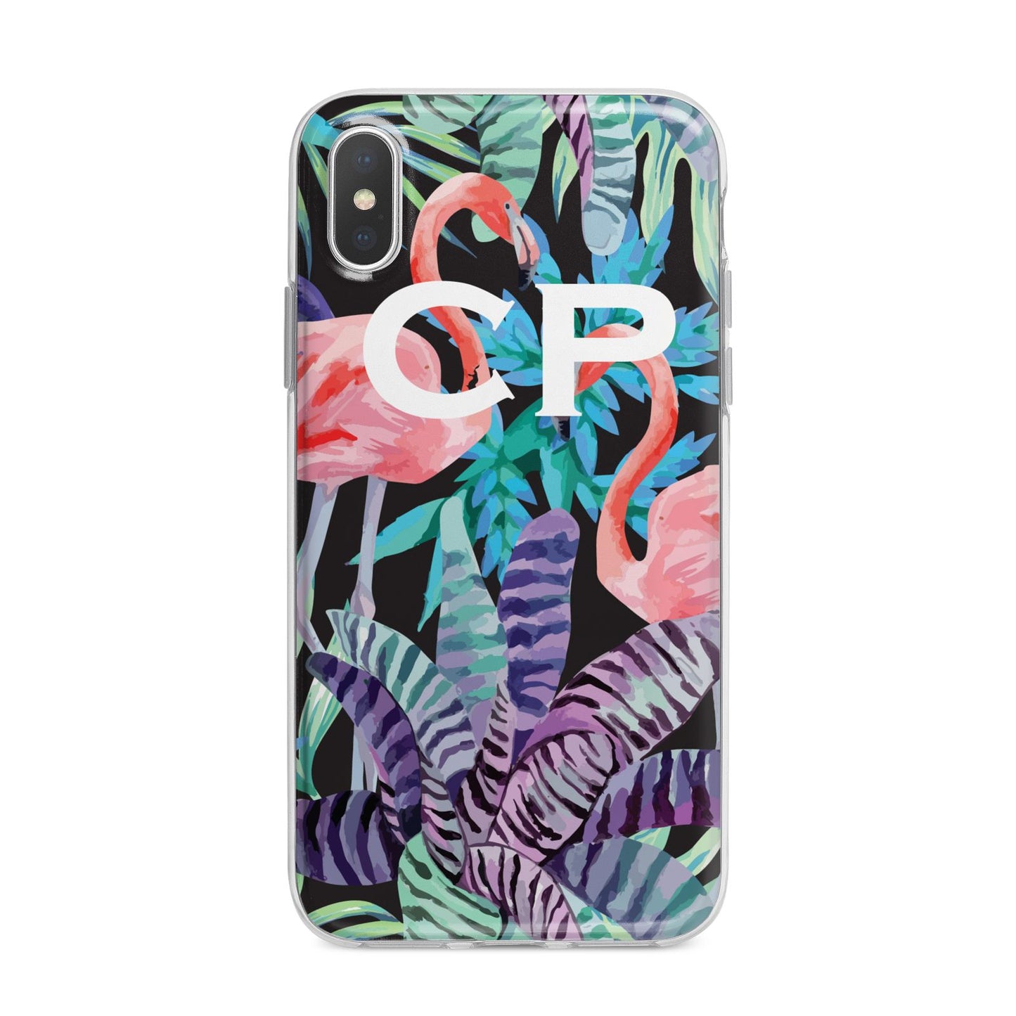 Personalised Tropical Leaves & Flamingos Apple iPhone Case