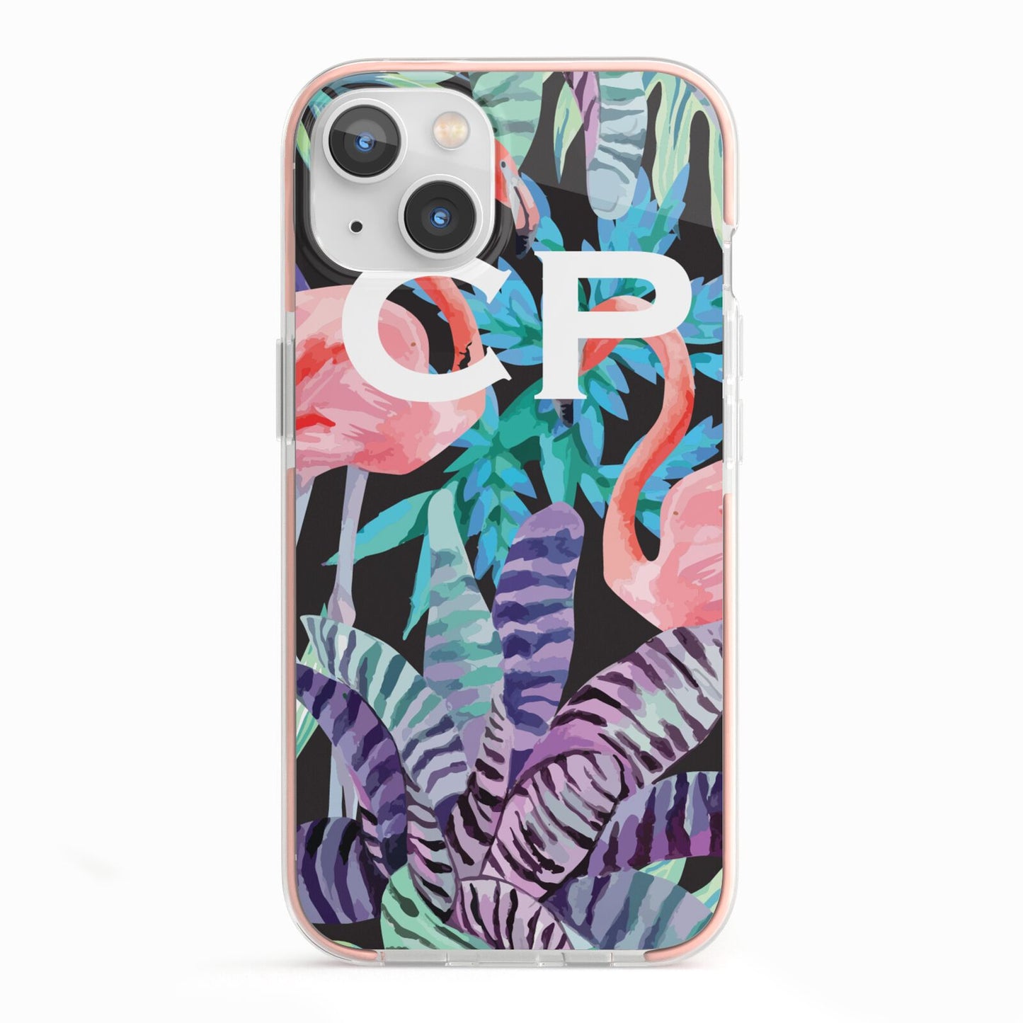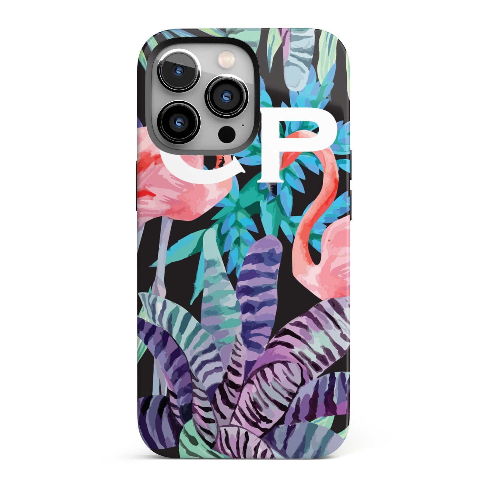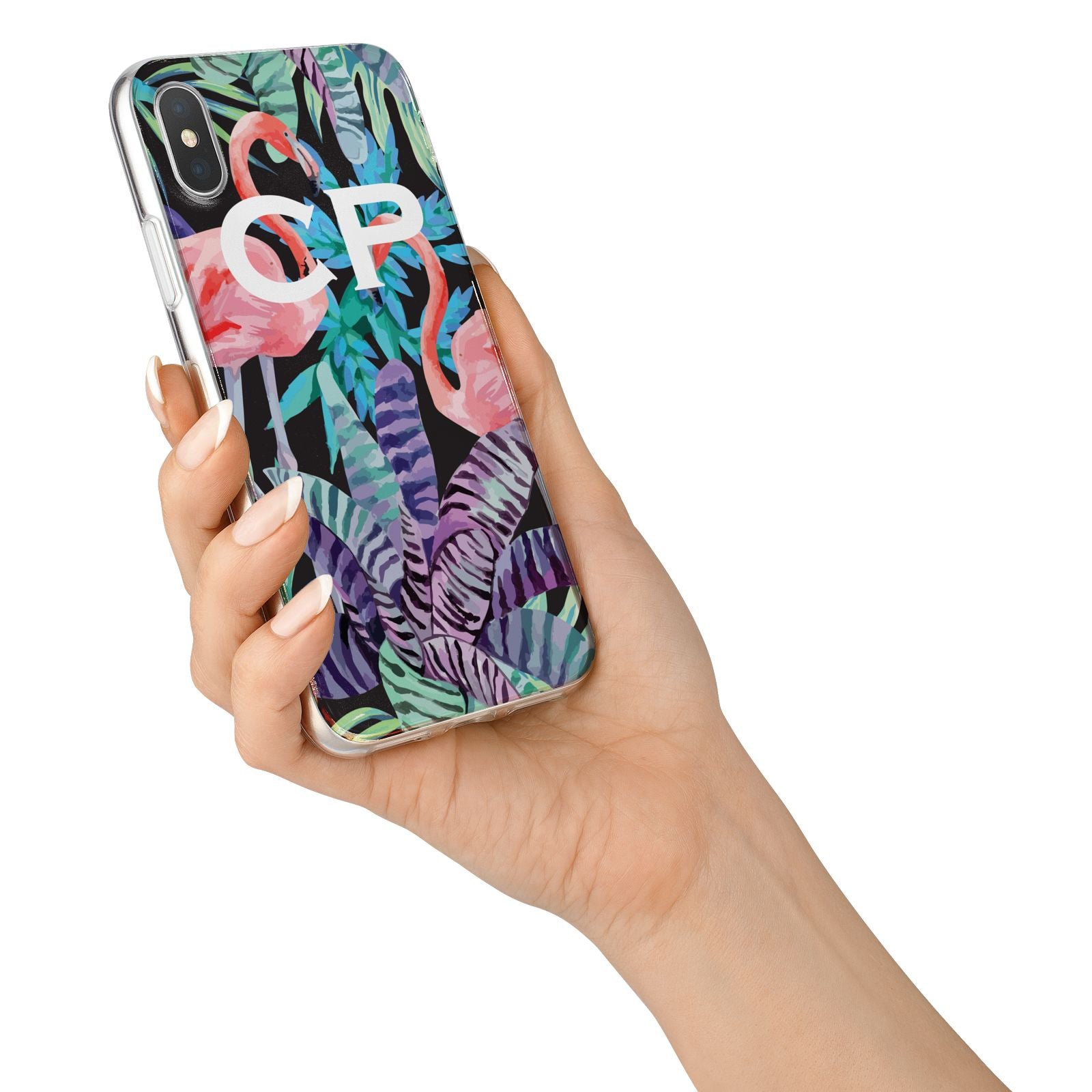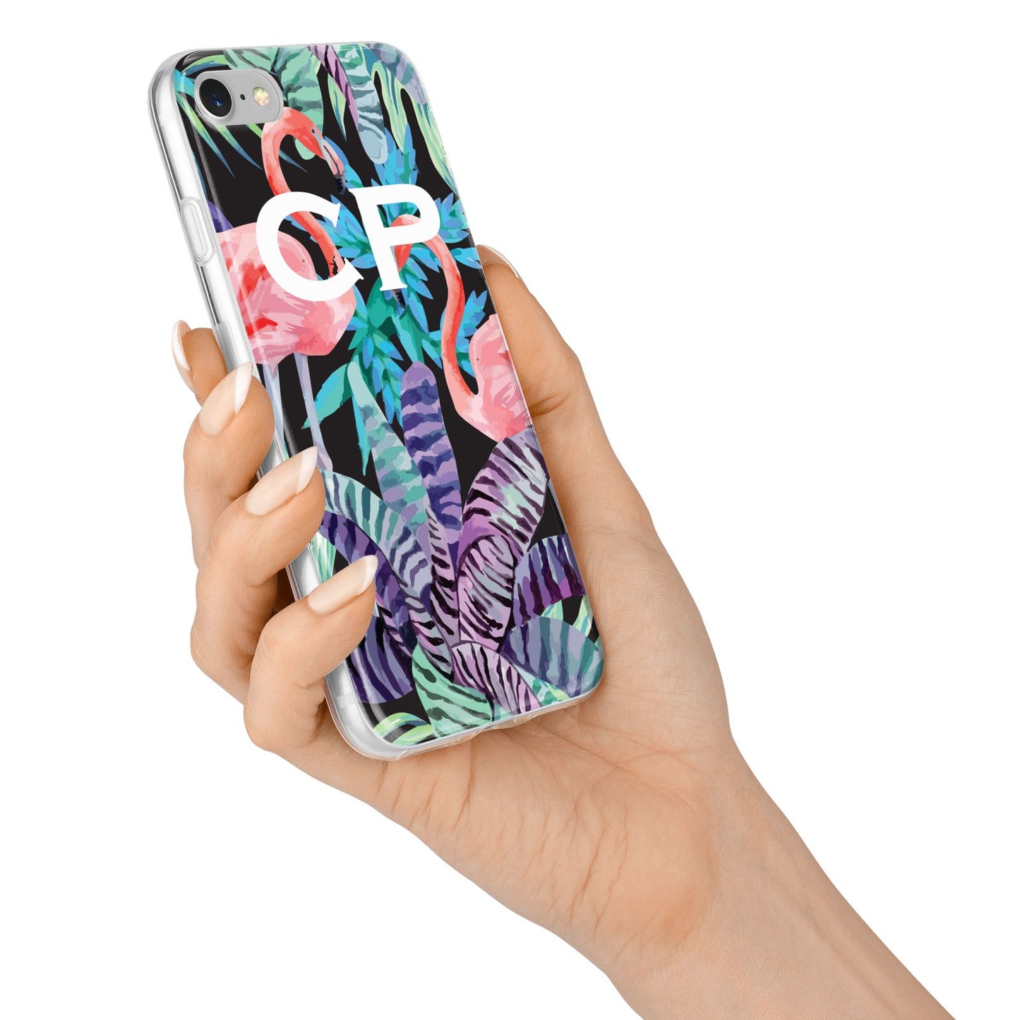 Personalised Tropical Leaves & Flamingos Apple iPhone Case