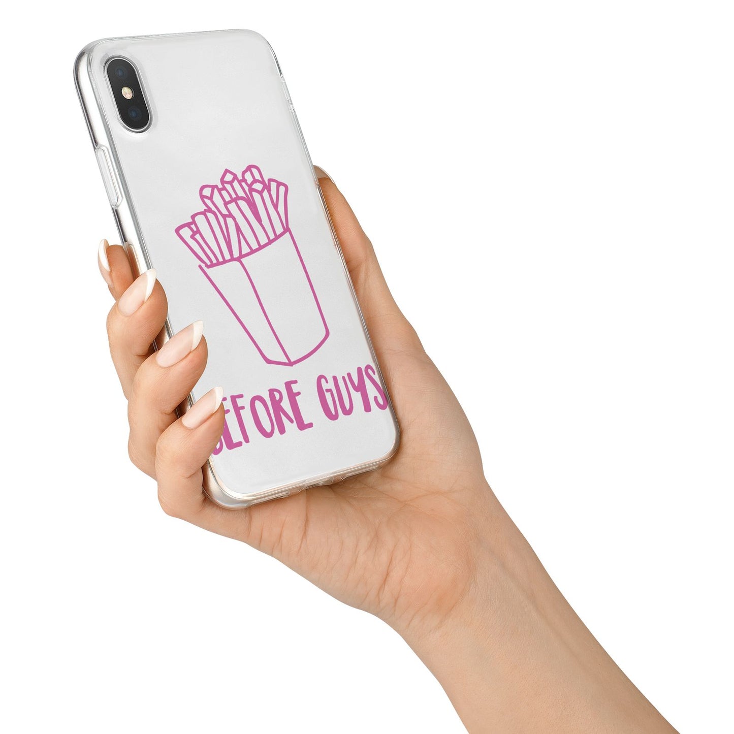 Grab our Valentines Fries Before Guys iPhone Case and feel the good vibes this season. Our new must have staple. This case is pure flirtation. Say goodbye to your boring old phone case, and say hello to this hot little number, personalised with your initials. Rock on like the hot little boss that you are. Not only will this case look great - it will actually protect against bumps & knocks also. Yay! Apple Brand Sentence