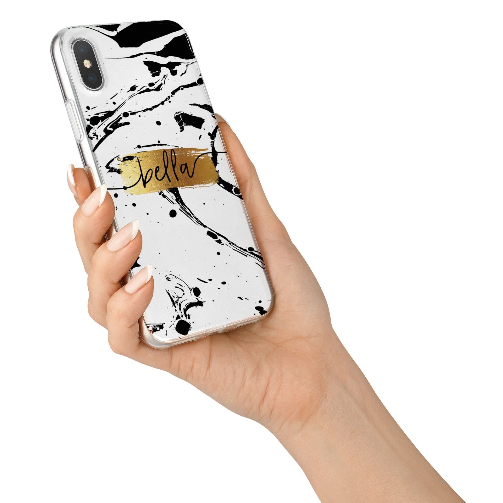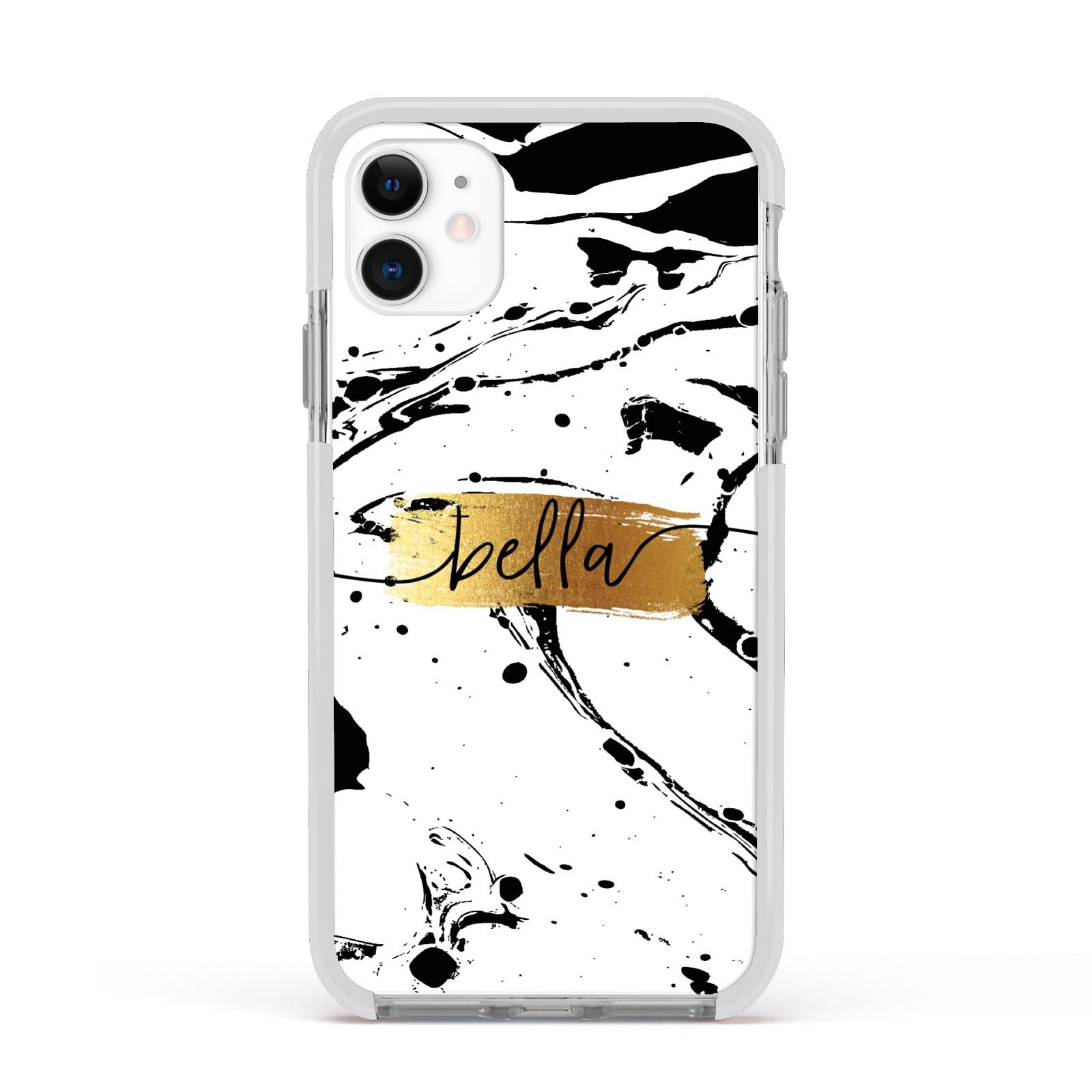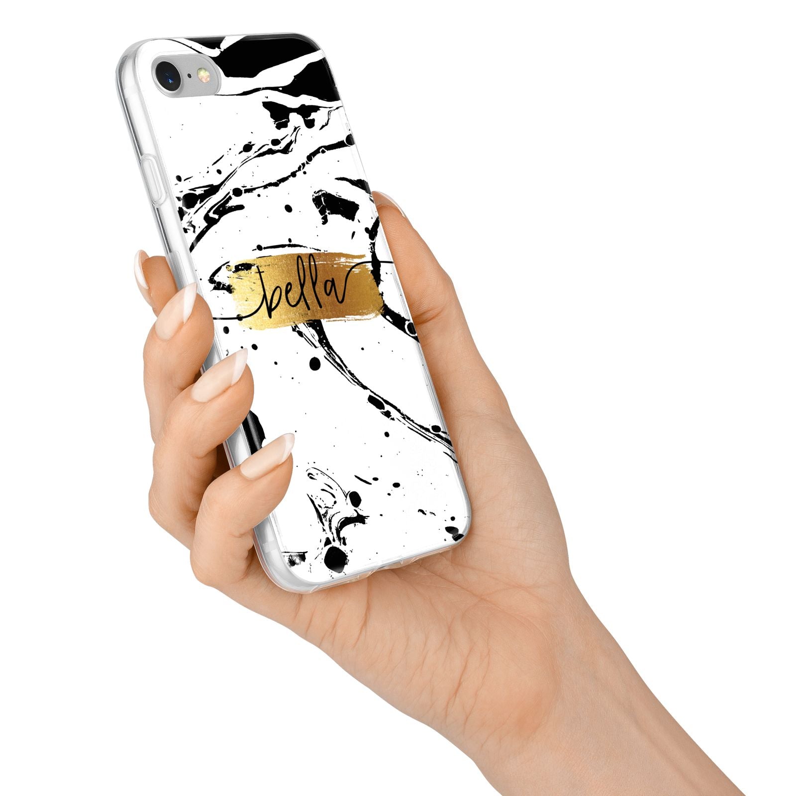 Personalised White & Gold Swirl Marble Apple iPhone Case