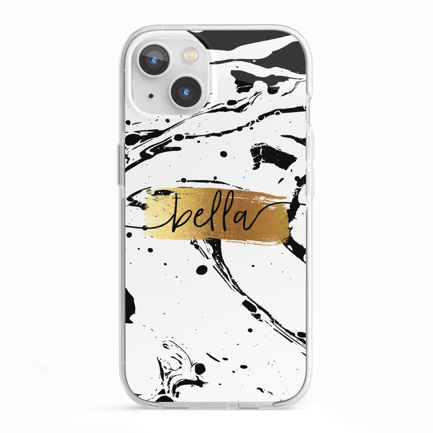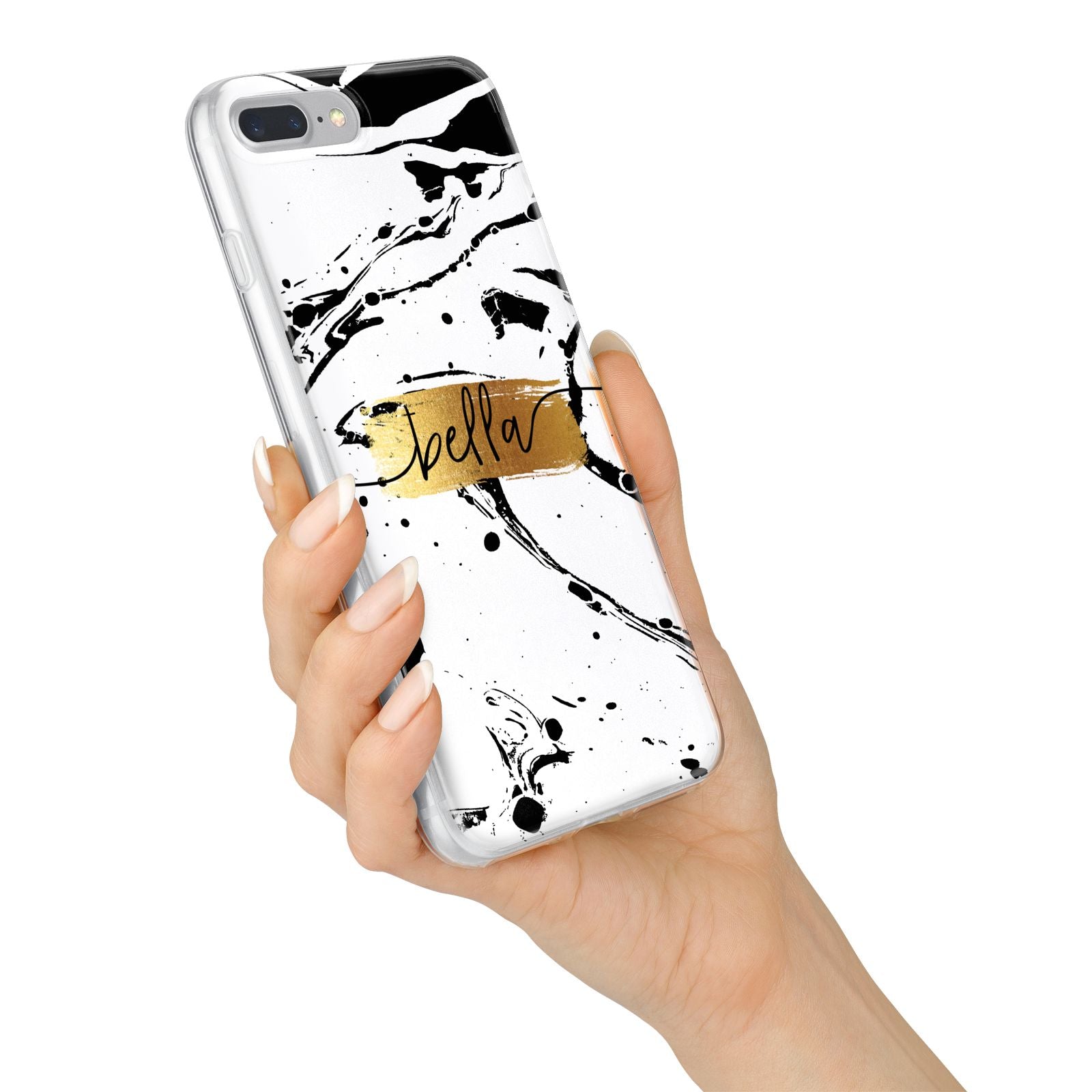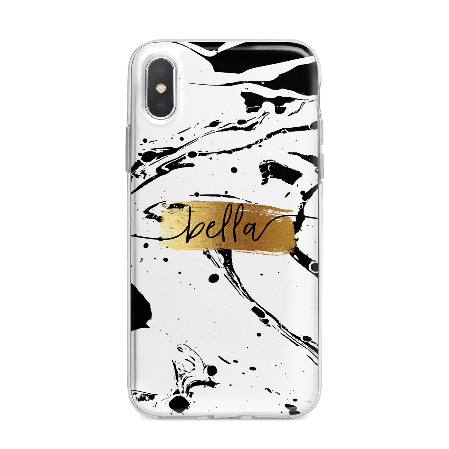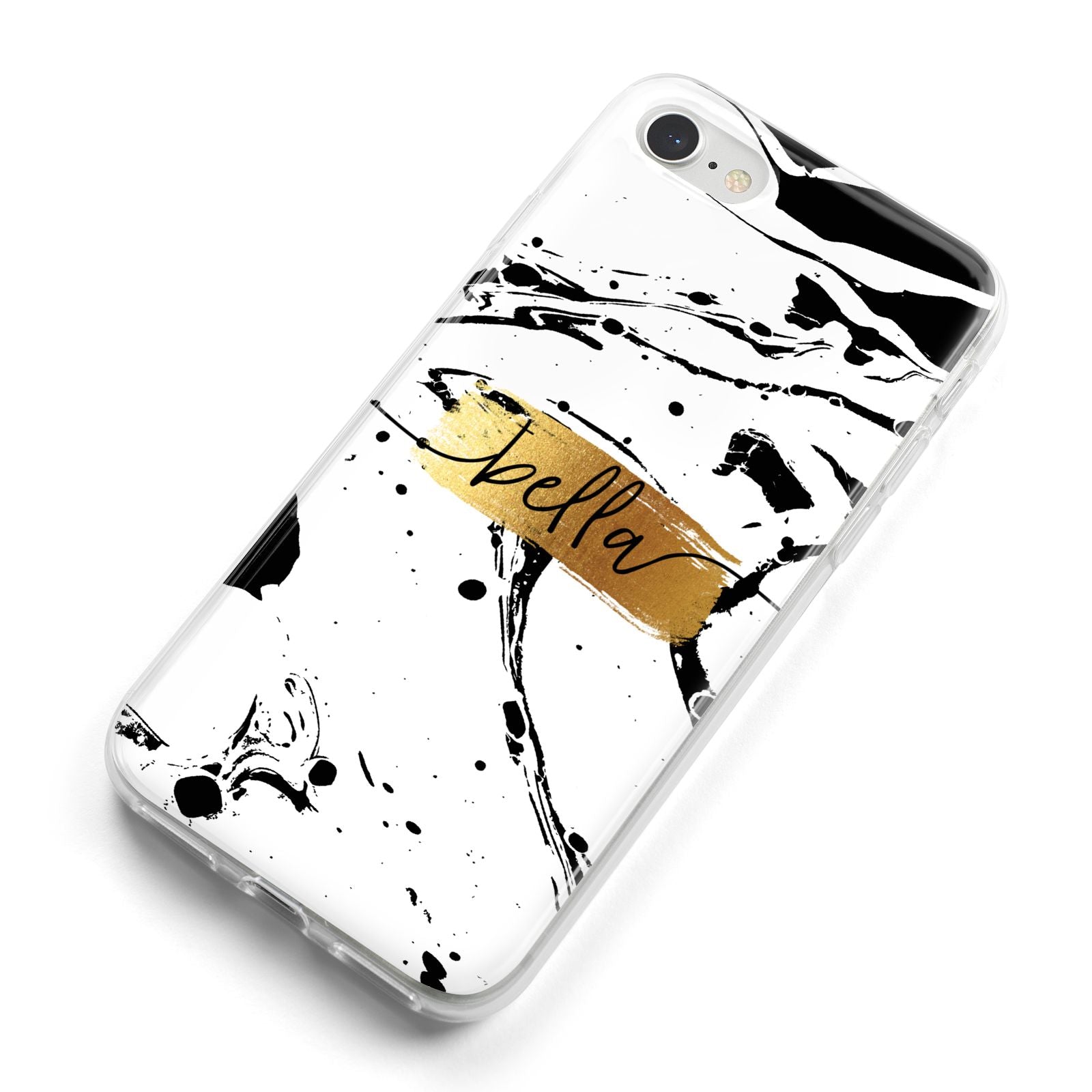 Personalised White & Gold Swirl Marble Apple iPhone Case