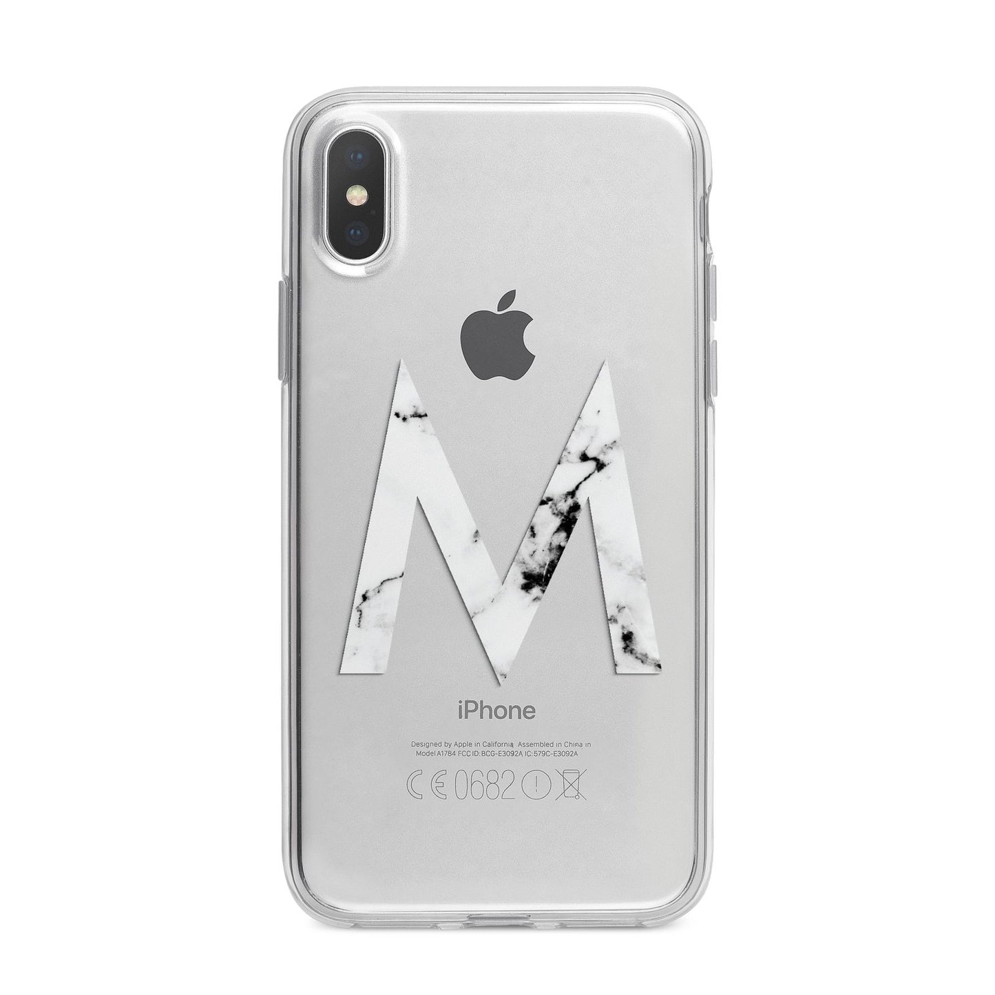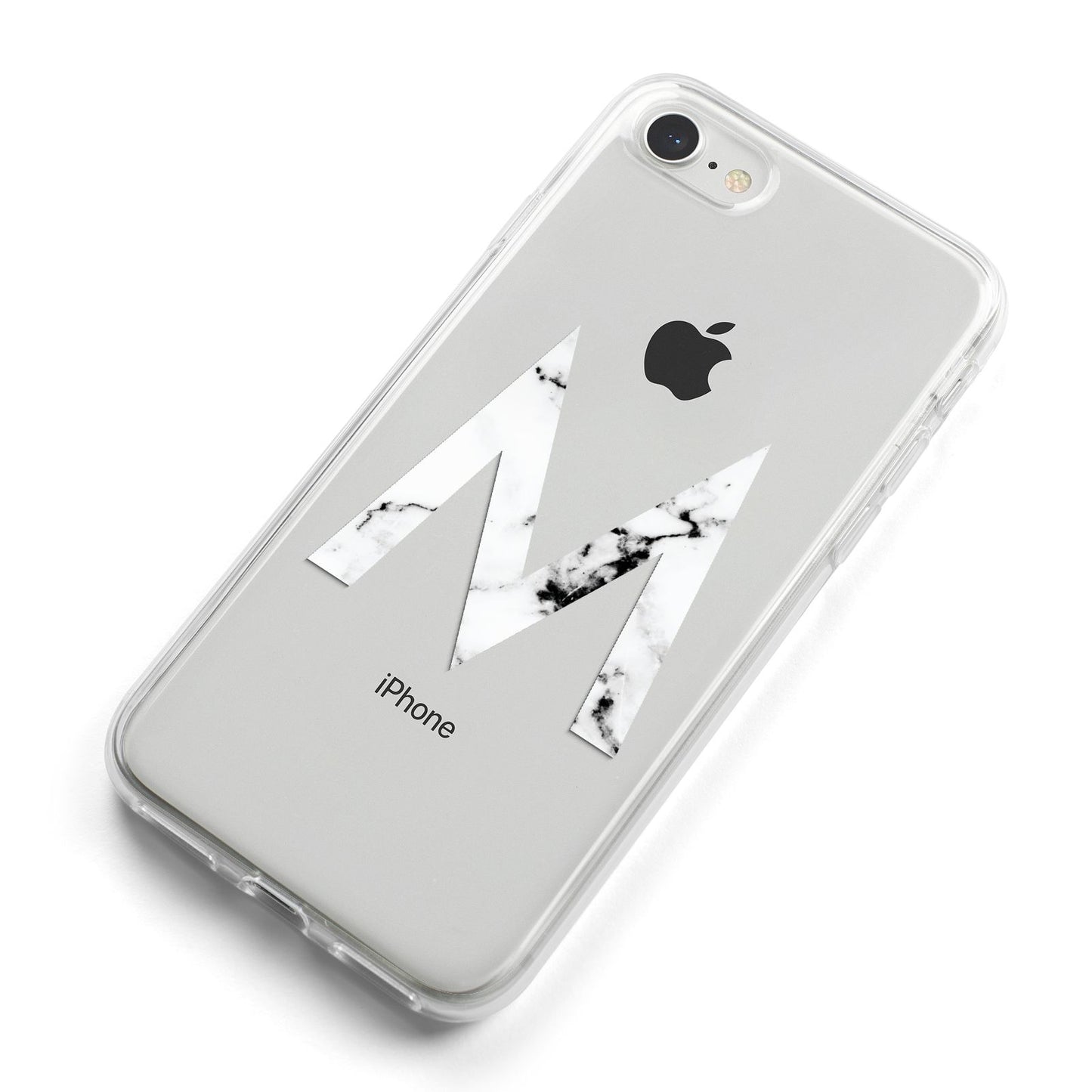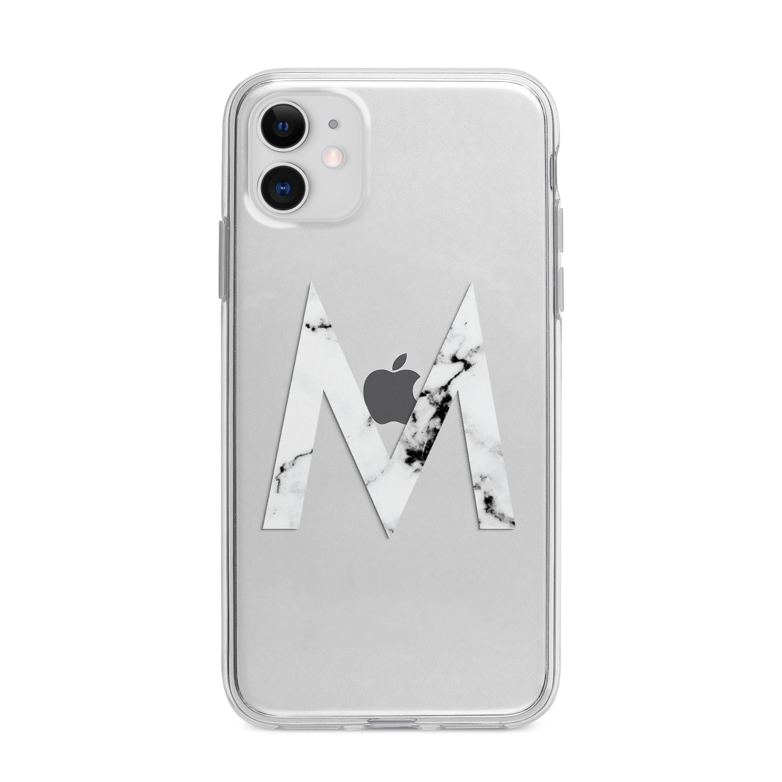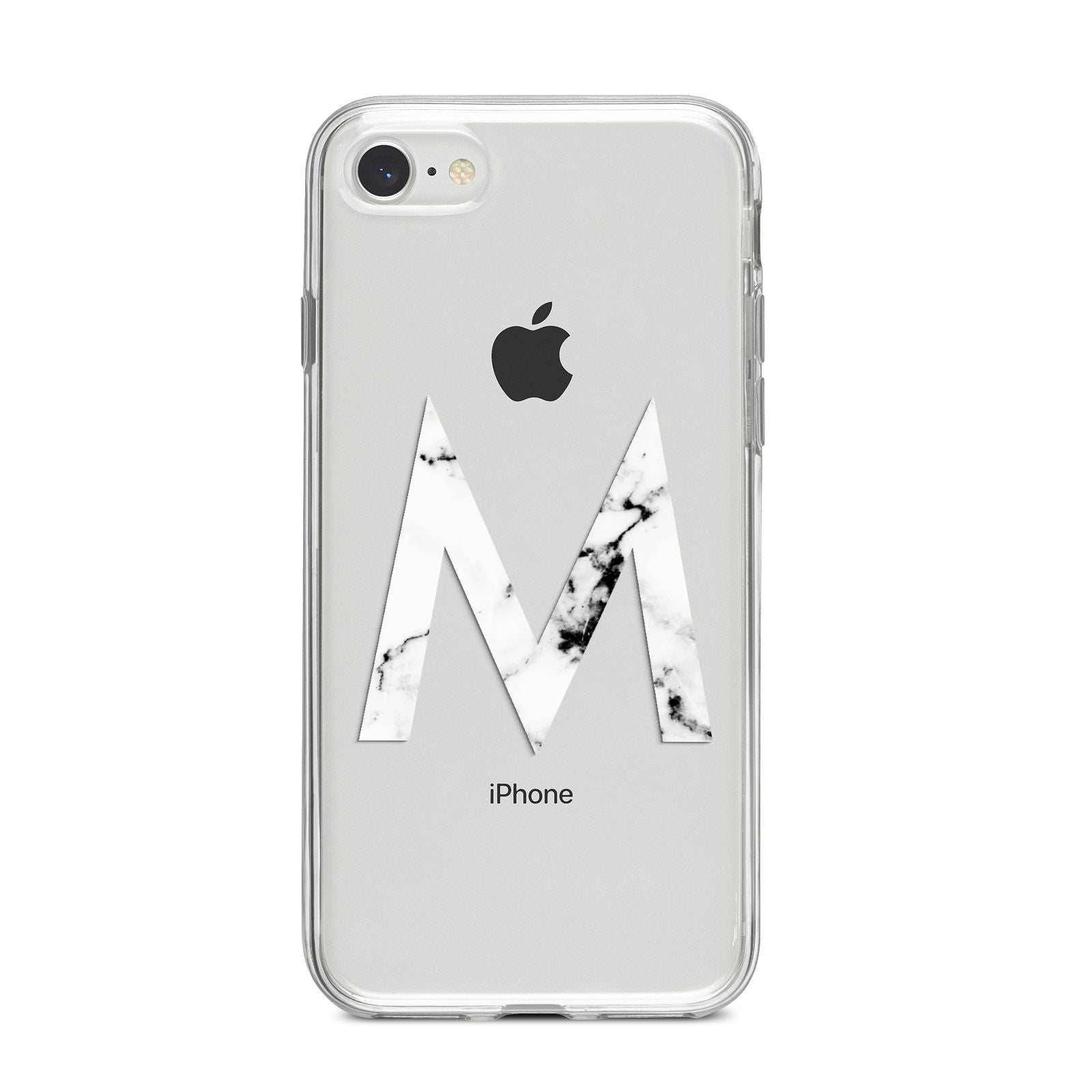 Personalised White Marble Initial Clear Custom Apple iPhone Case